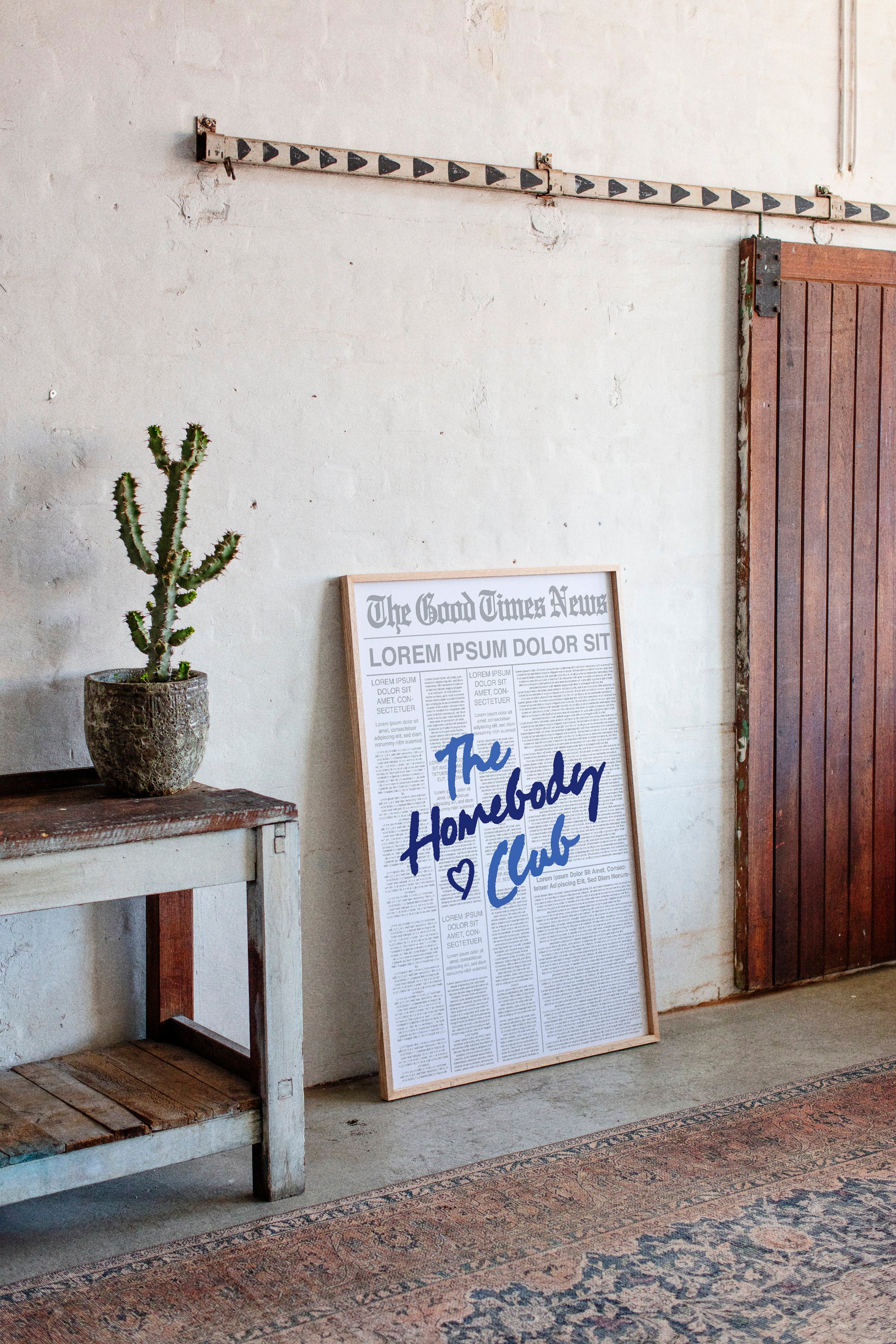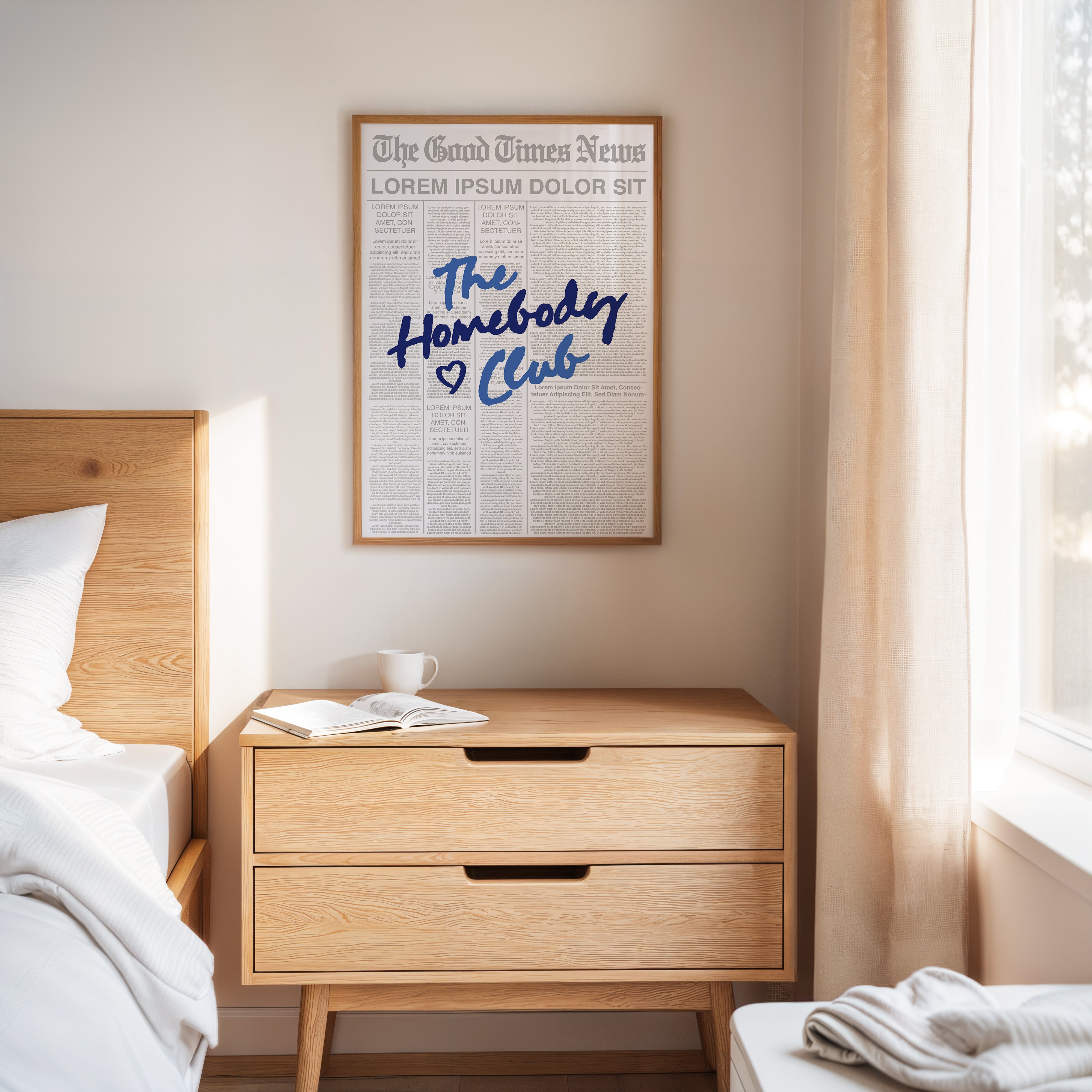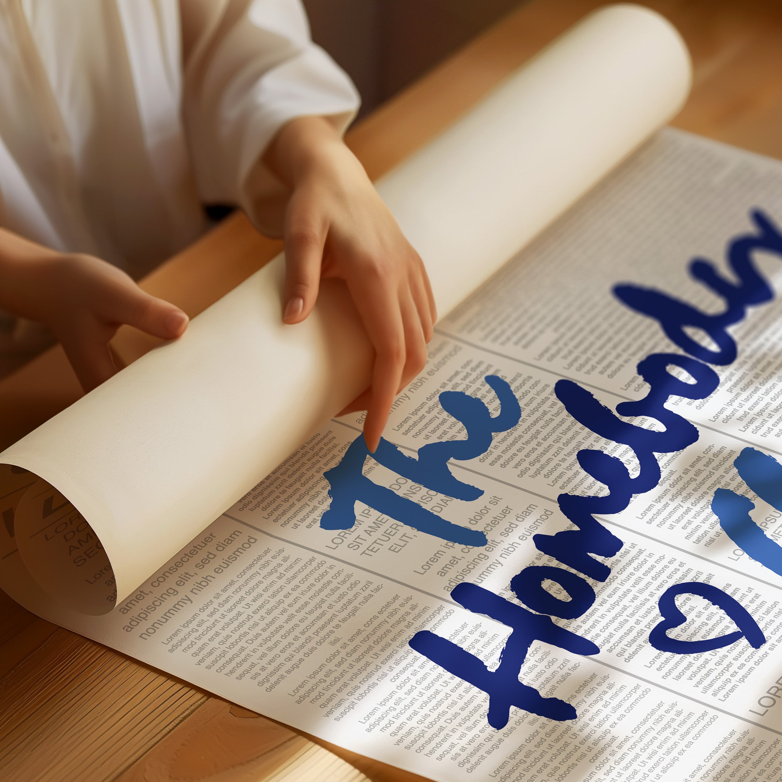 Sunlight streams across white wooden floors, illuminating a nostalgic newspaper print where bold blue script cuts through grey columns with heartfelt intention. This piece from our Contemporary collection reimagines the classic newspaper format with a modern, emotionally resonant twist. Against crisp newsprint, the handwritten message creates a striking contrast - raw, personal, and immediate - while dried flowers in a glass vase echo the organic, lived-in feeling of cherished correspondence. Perfect for modern minimalist spaces that celebrate the intersection of traditional media and personal expression. This piece brings warmth and narrative depth to home offices, reading nooks, or any space where stories matter.