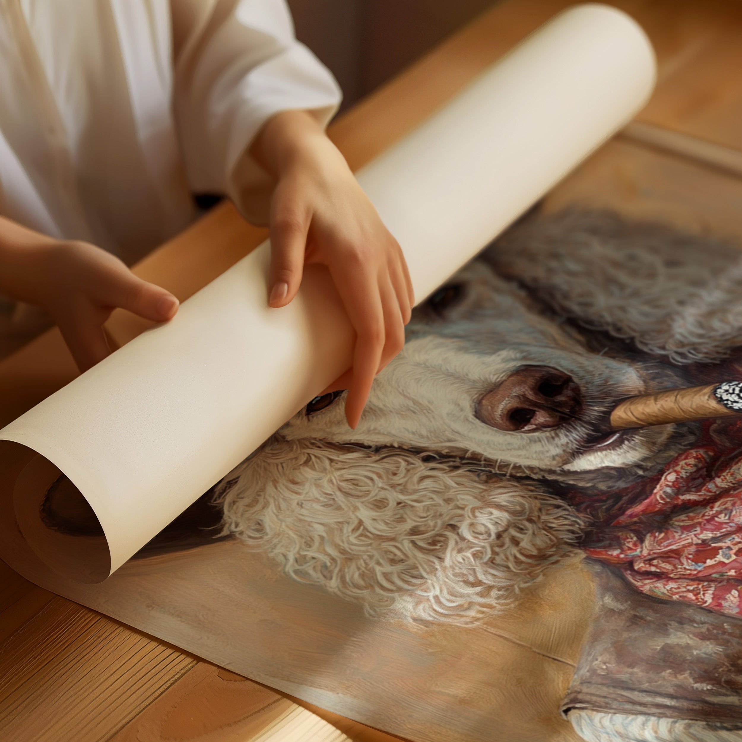 Museum-grade means pigment-based archival inks, acid-free cotton papers, and 100+ year fade resistance—the same standards used by major museums worldwide.
