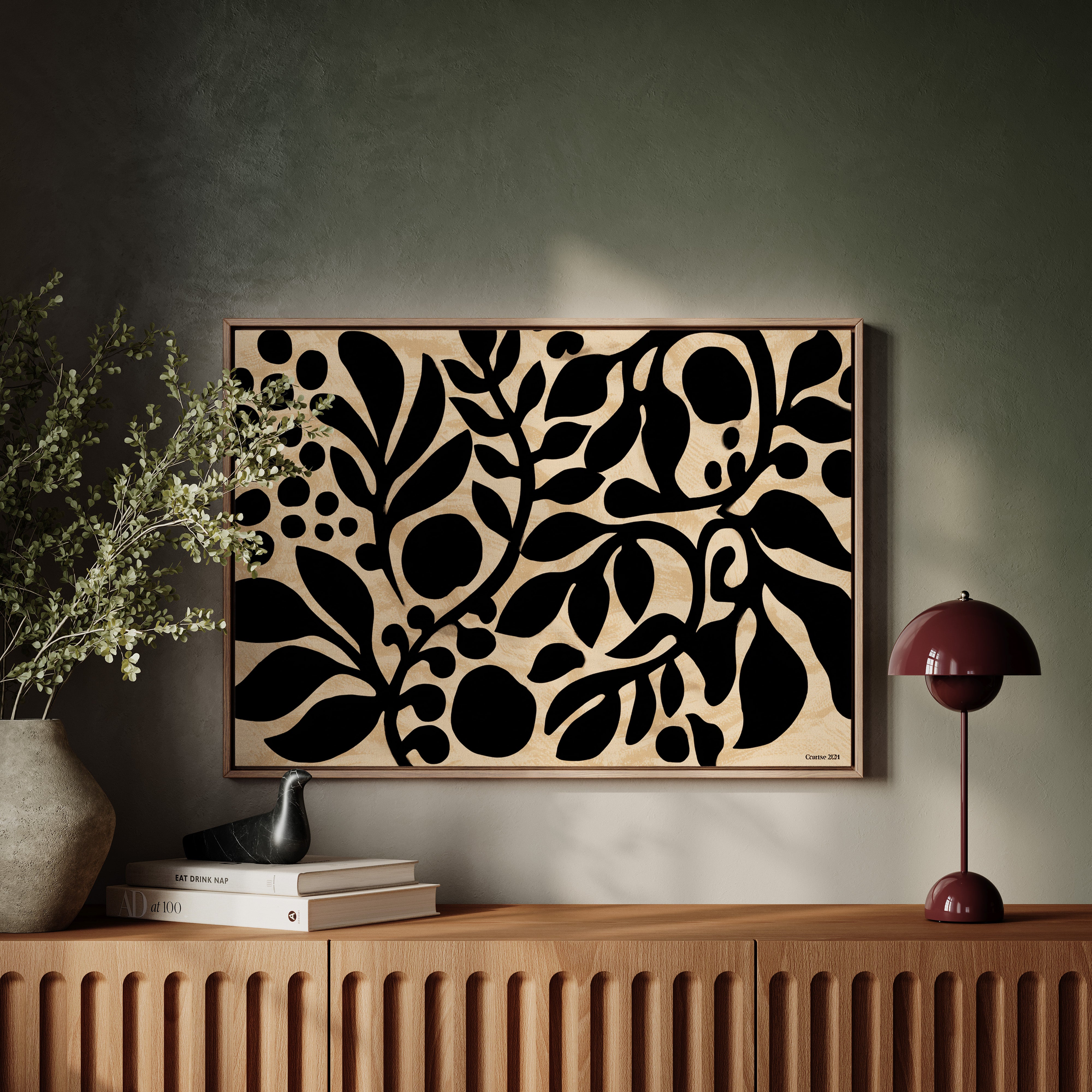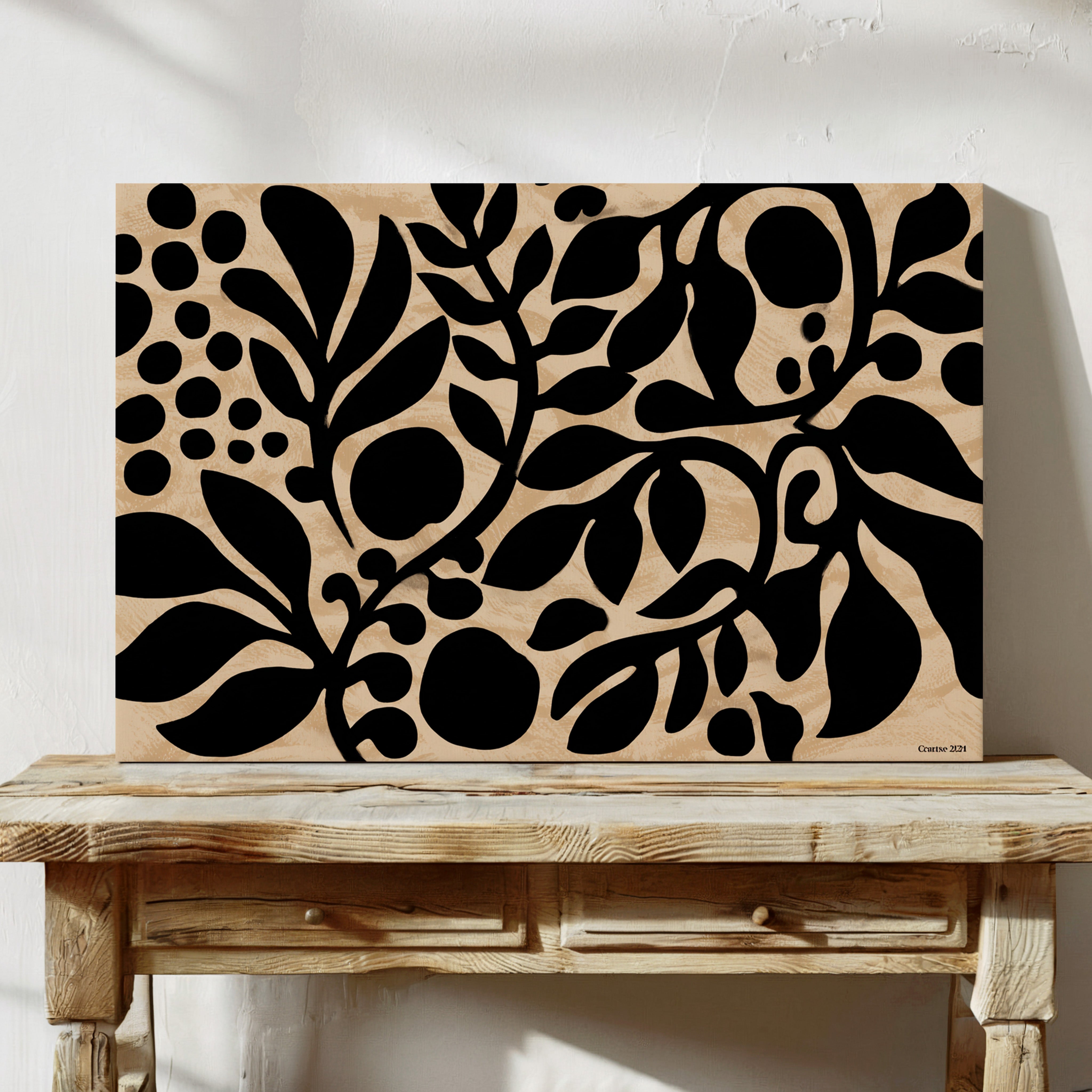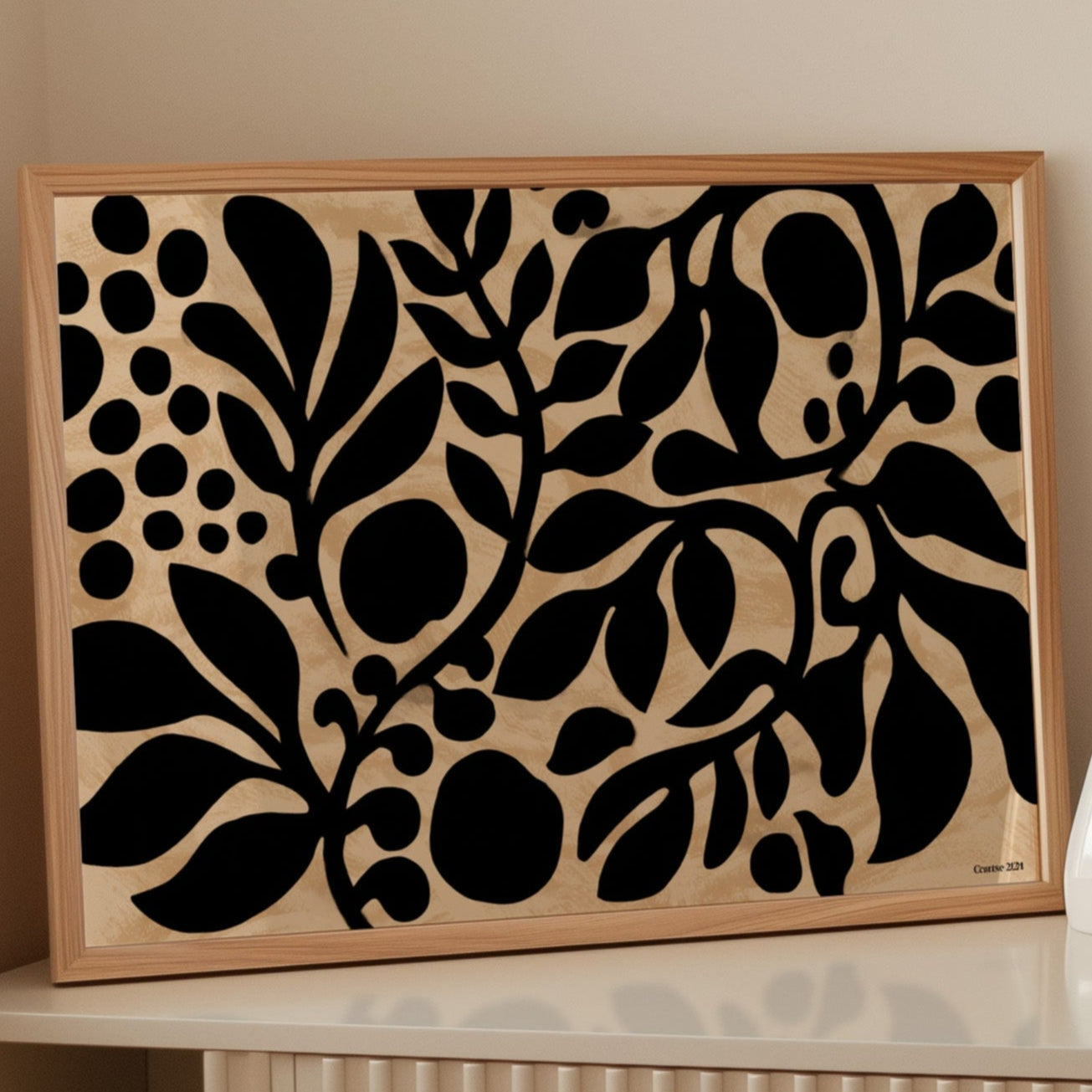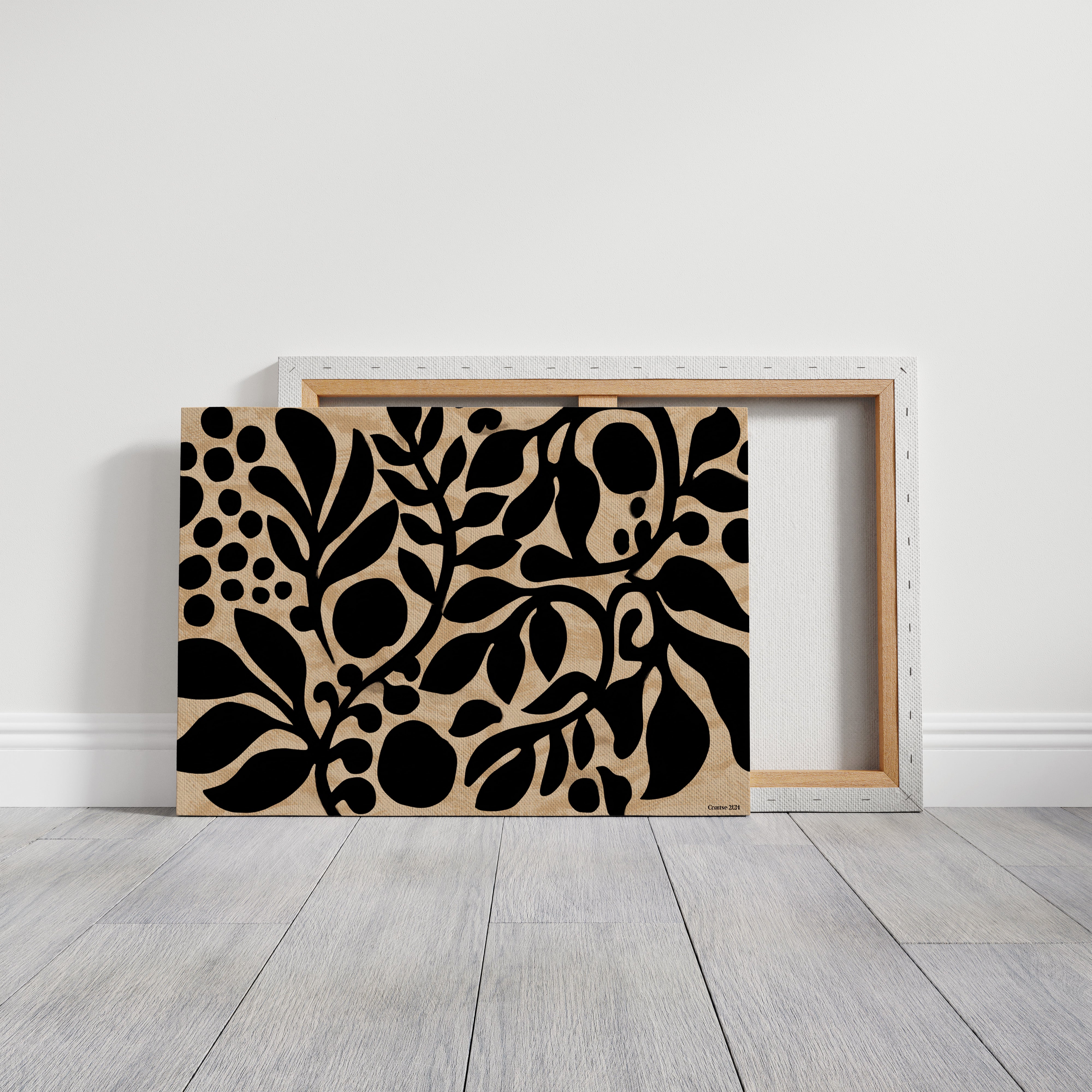 Amidst a tapestry of bold silhouettes, nature's secrets unfold, inviting the eye to wander and wonder. This piece embodies the artisanal spirit, celebrating the beauty of organic forms. Rich black shapes dance against a soft, textured backdrop, evoking an intimate connection to the earth; each curve and contour tells a story of growth and resilience. Ideal for a cozy nook or creative workspace, this artwork transforms any space into a sanctuary of inspiration.