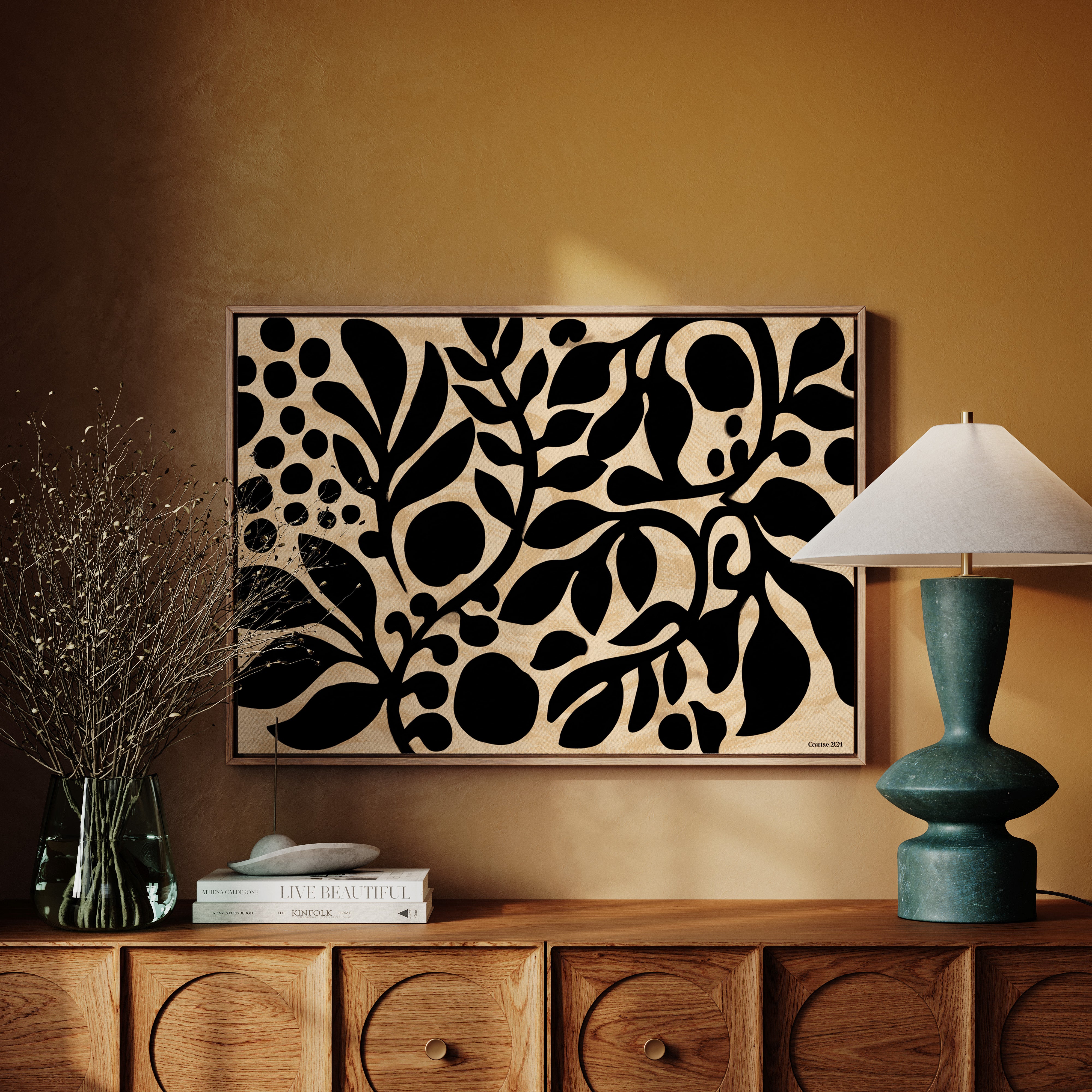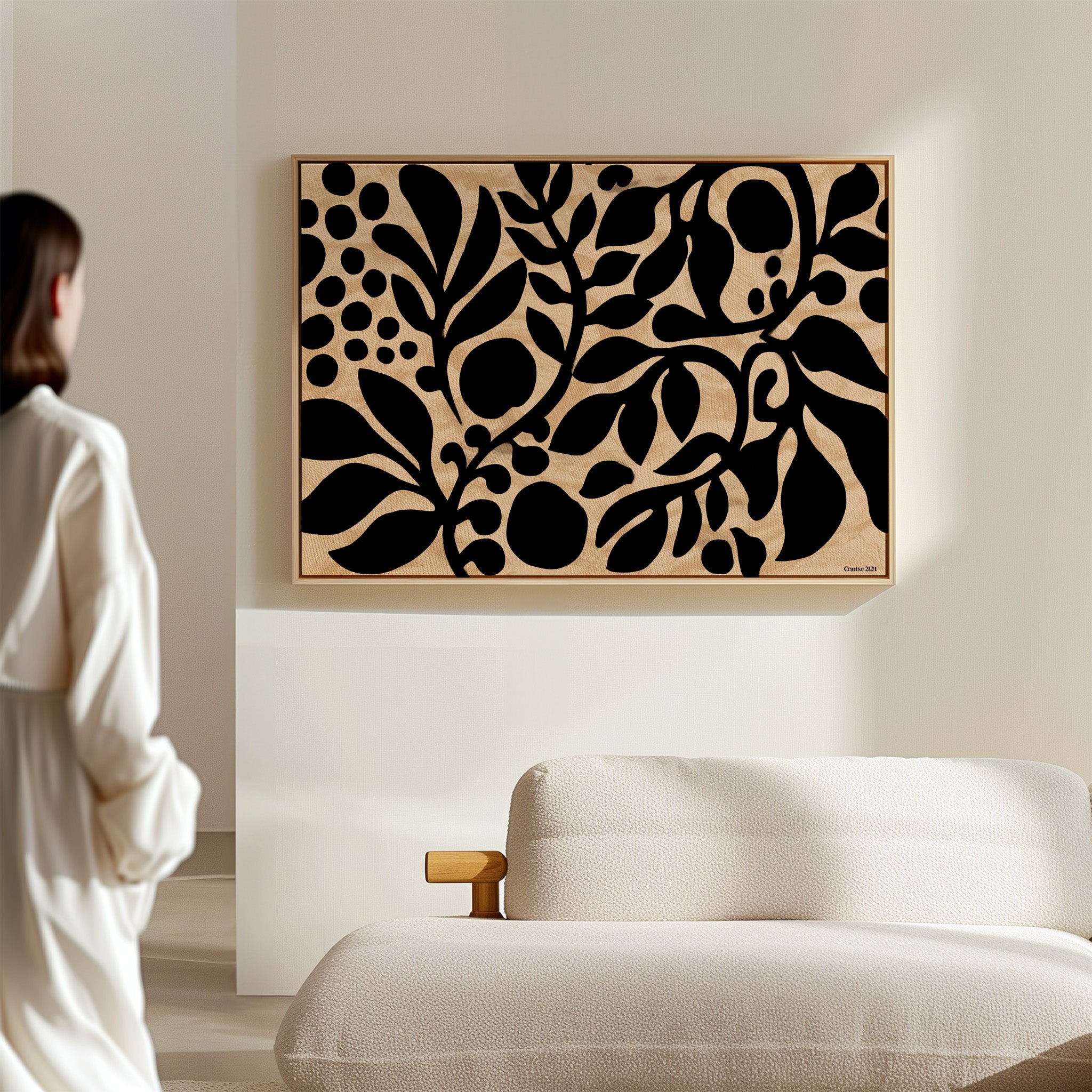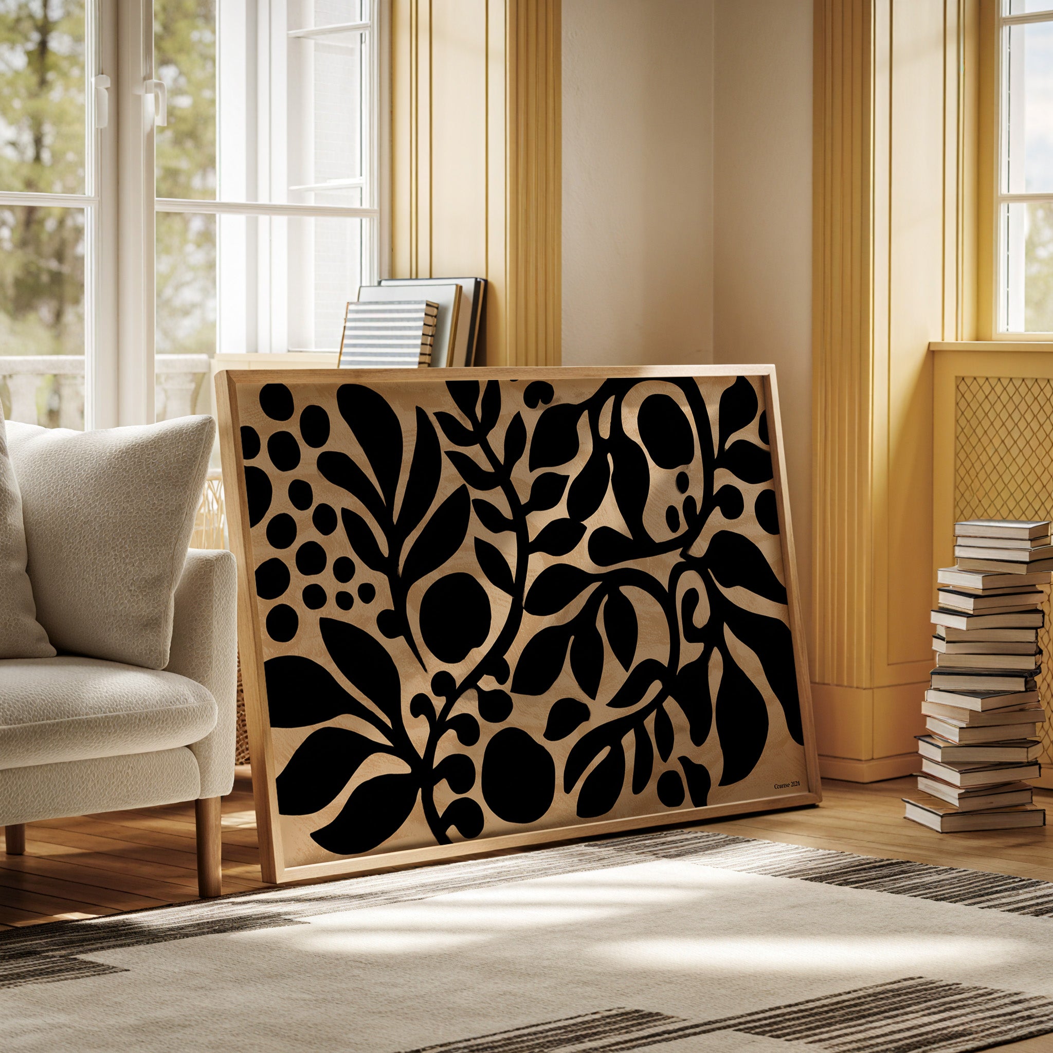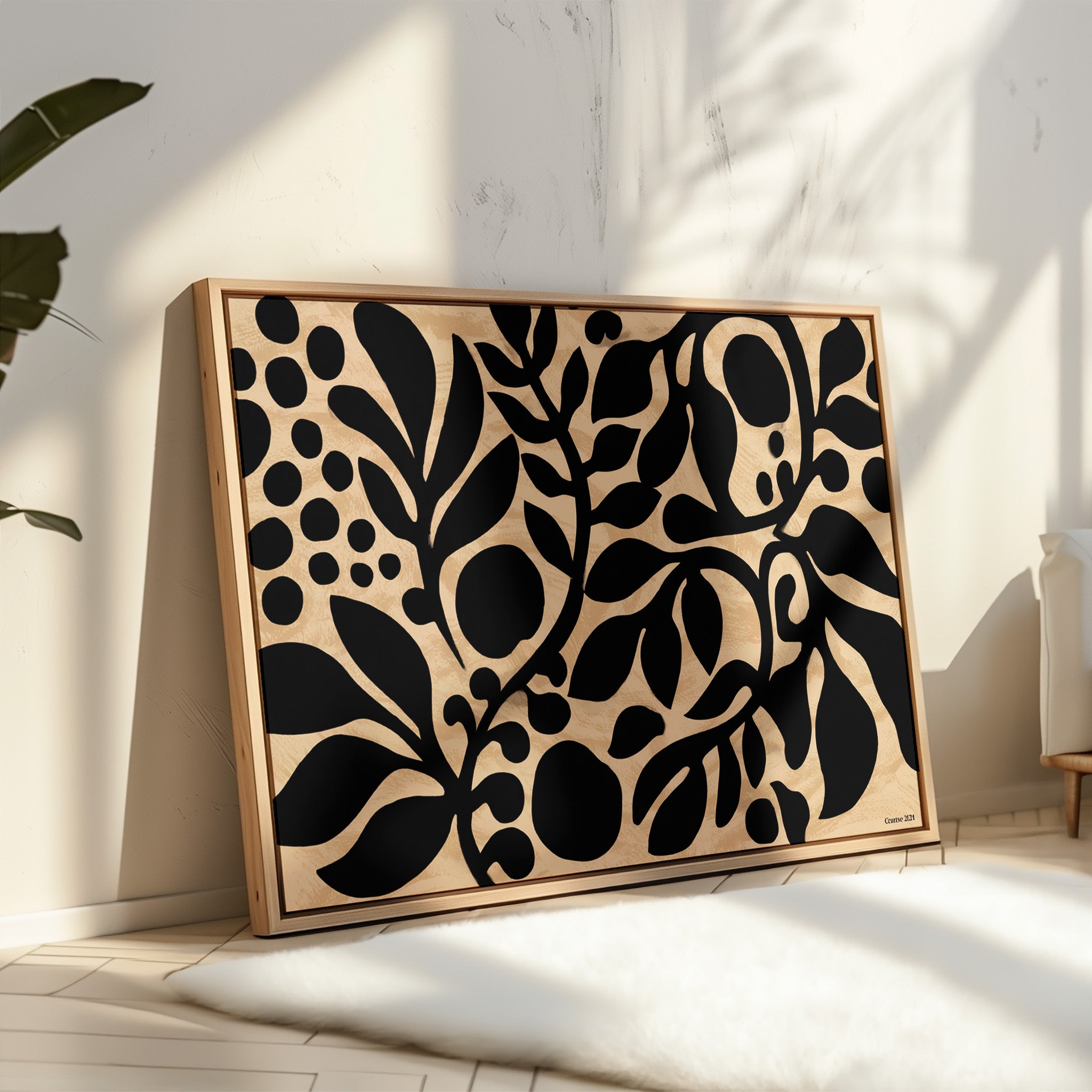 Amidst a tapestry of bold silhouettes, nature's secrets unfold, inviting the eye to wander and wonder. This piece embodies the artisanal spirit, celebrating the beauty of organic forms. Rich black shapes dance against a soft, textured backdrop, evoking an intimate connection to the earth; each curve and contour tells a story of growth and resilience. Ideal for a cozy nook or creative workspace, this artwork transforms any space into a sanctuary of inspiration.