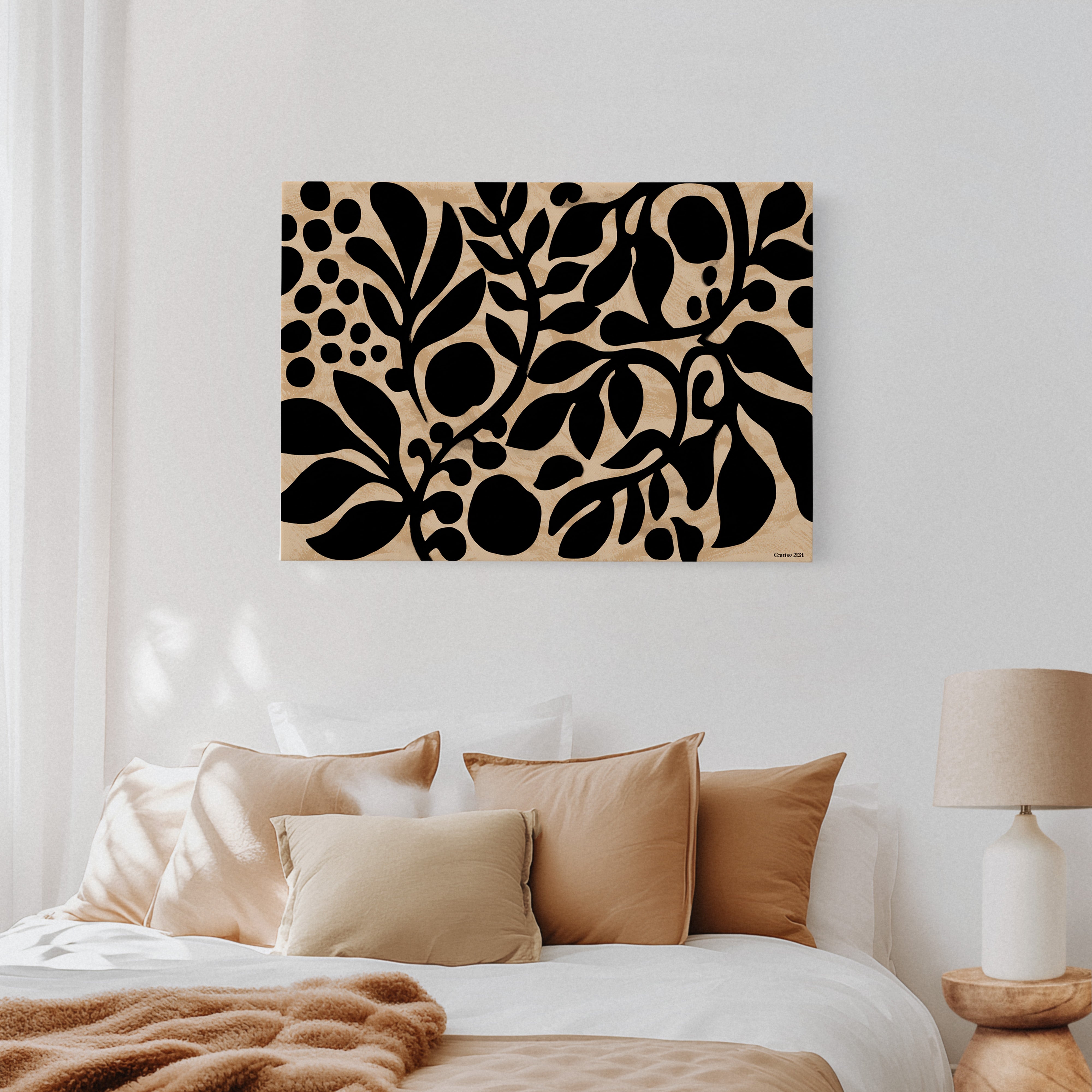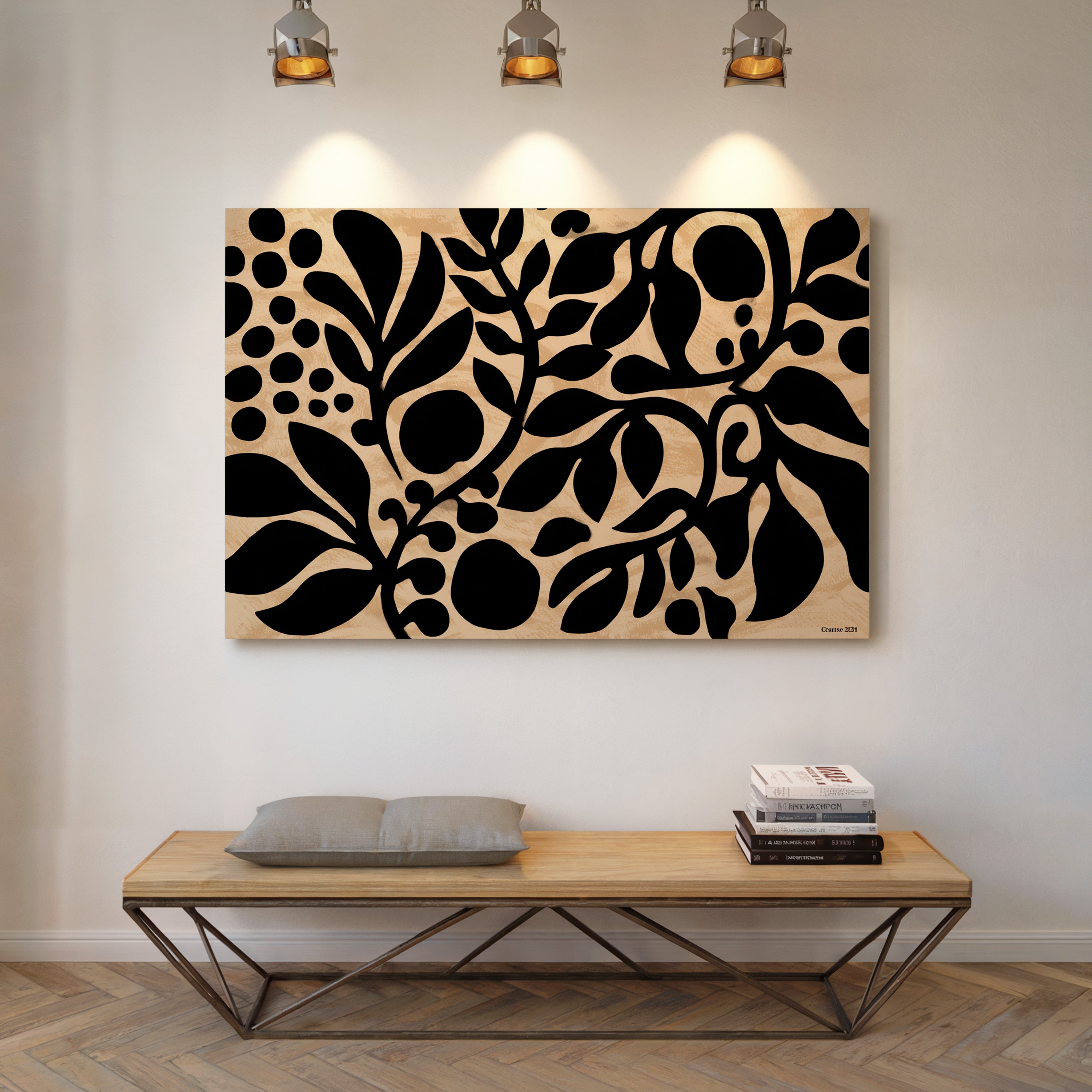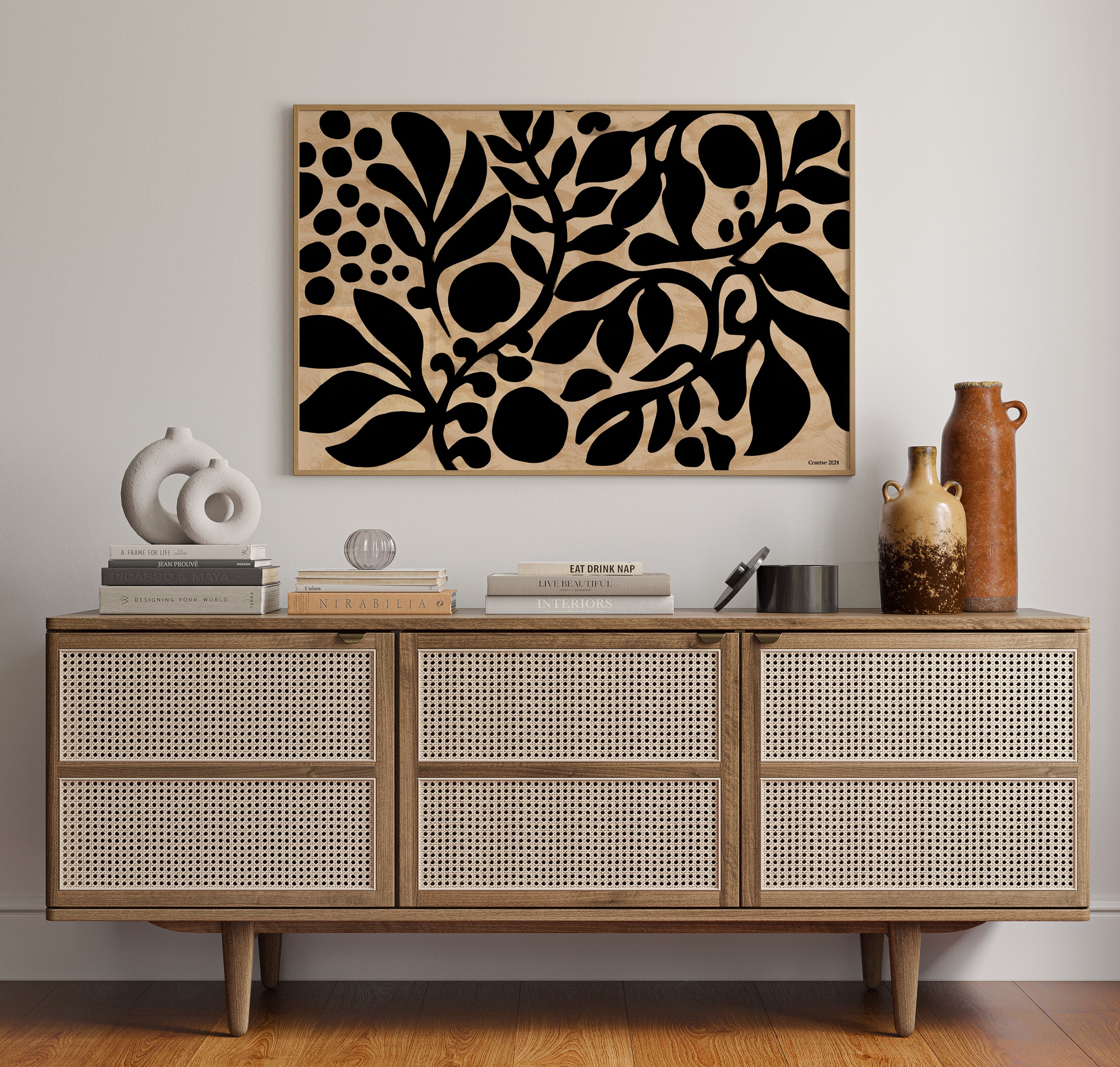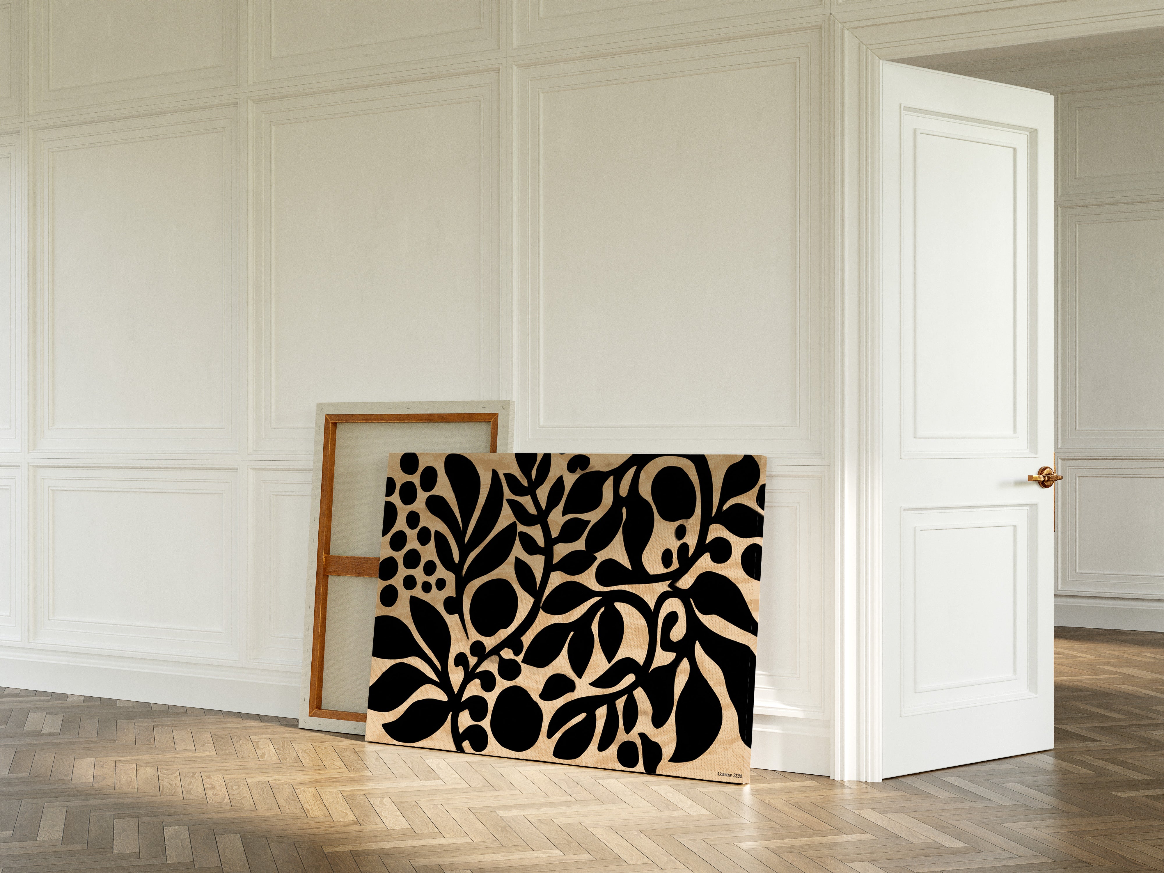 Amidst a tapestry of bold silhouettes, nature's secrets unfold, inviting the eye to wander and wonder. This piece embodies the artisanal spirit, celebrating the beauty of organic forms. Rich black shapes dance against a soft, textured backdrop, evoking an intimate connection to the earth; each curve and contour tells a story of growth and resilience. Ideal for a cozy nook or creative workspace, this artwork transforms any space into a sanctuary of inspiration.