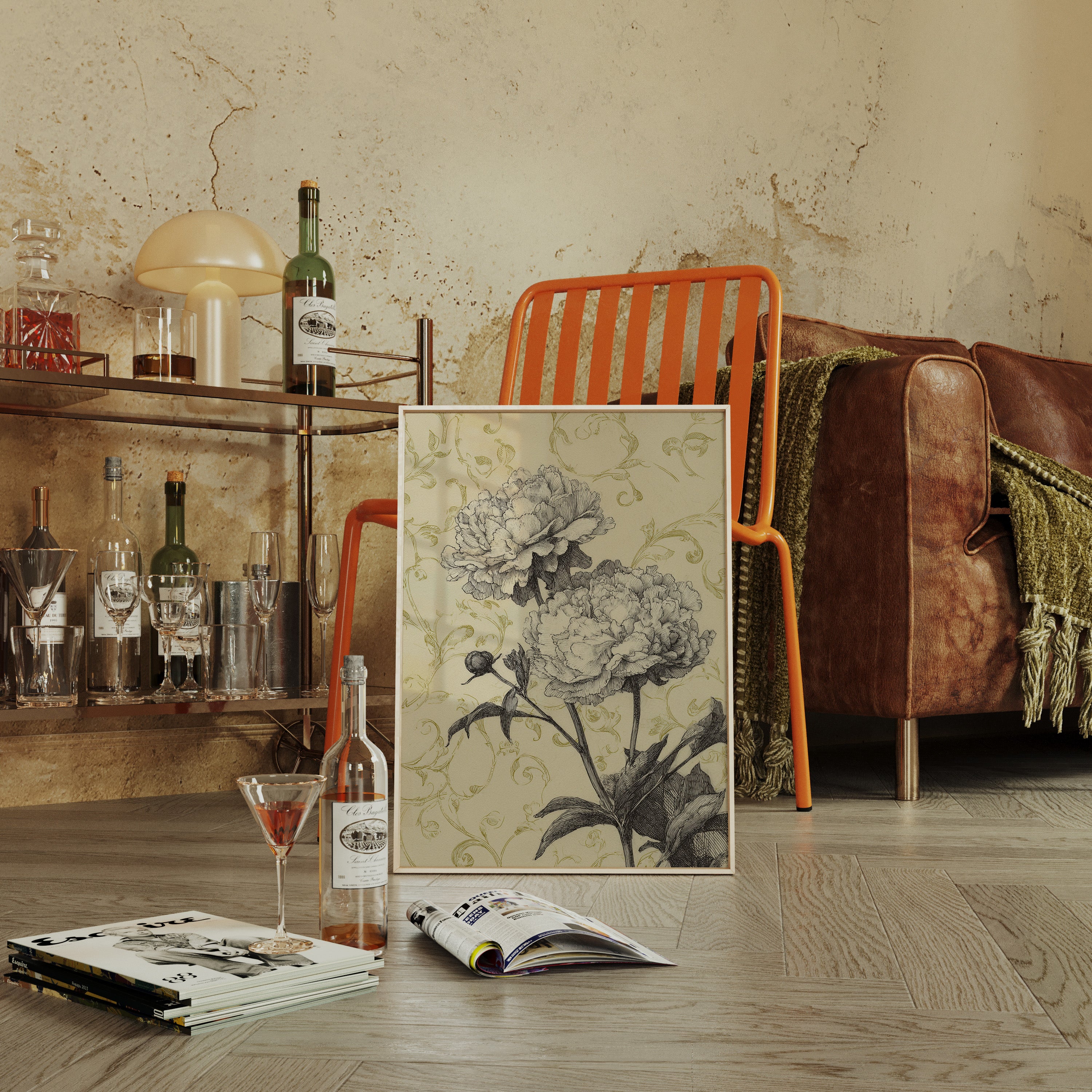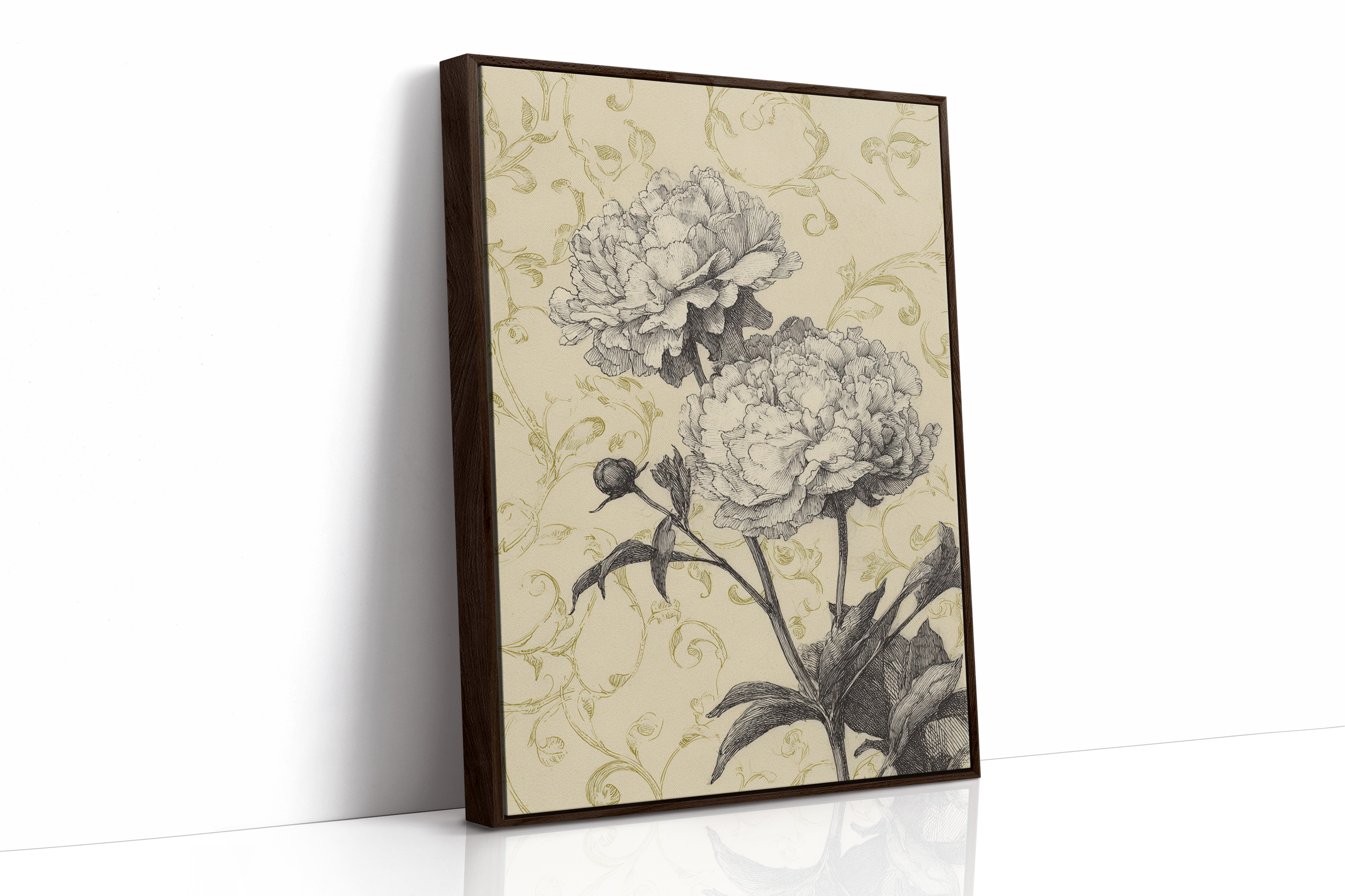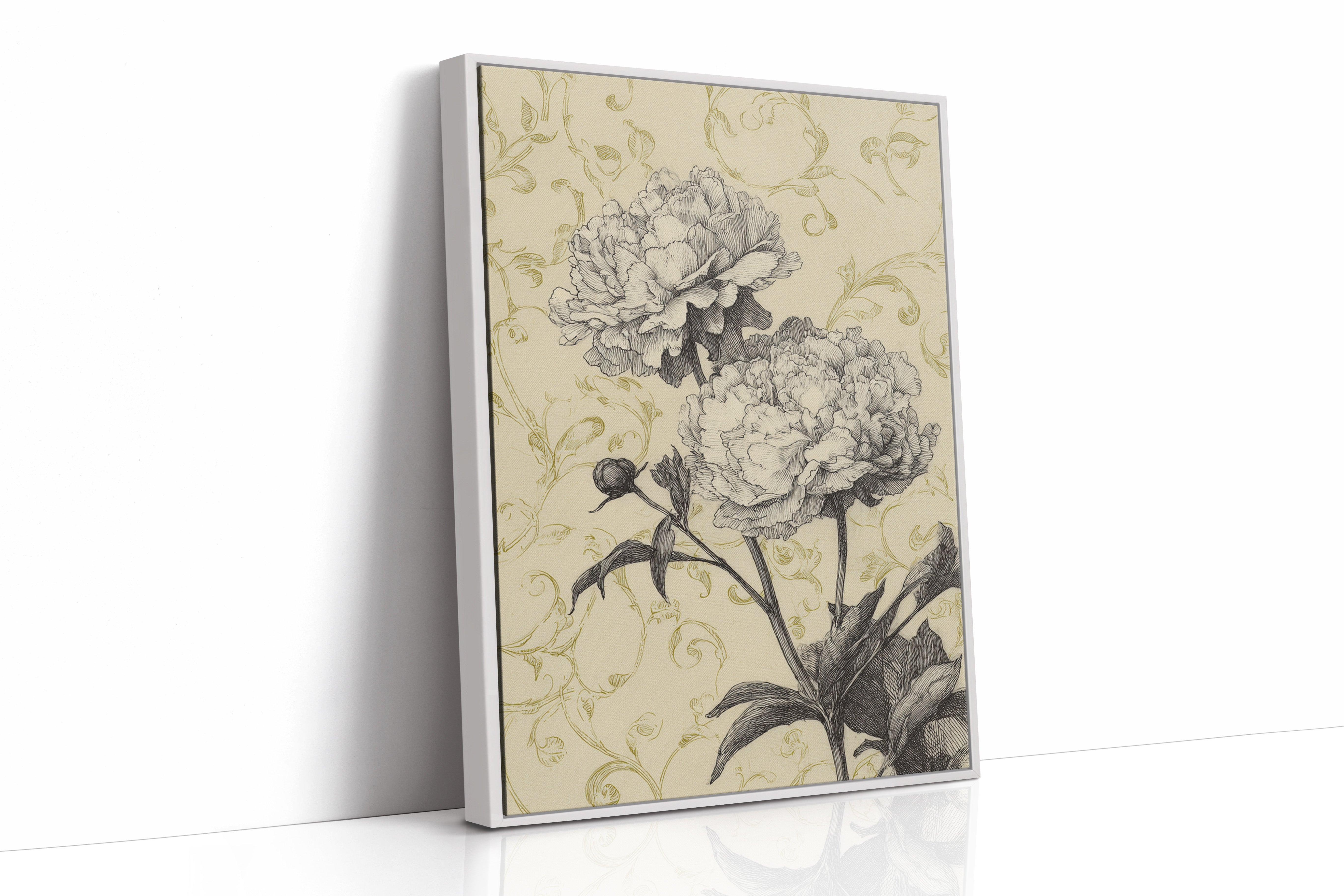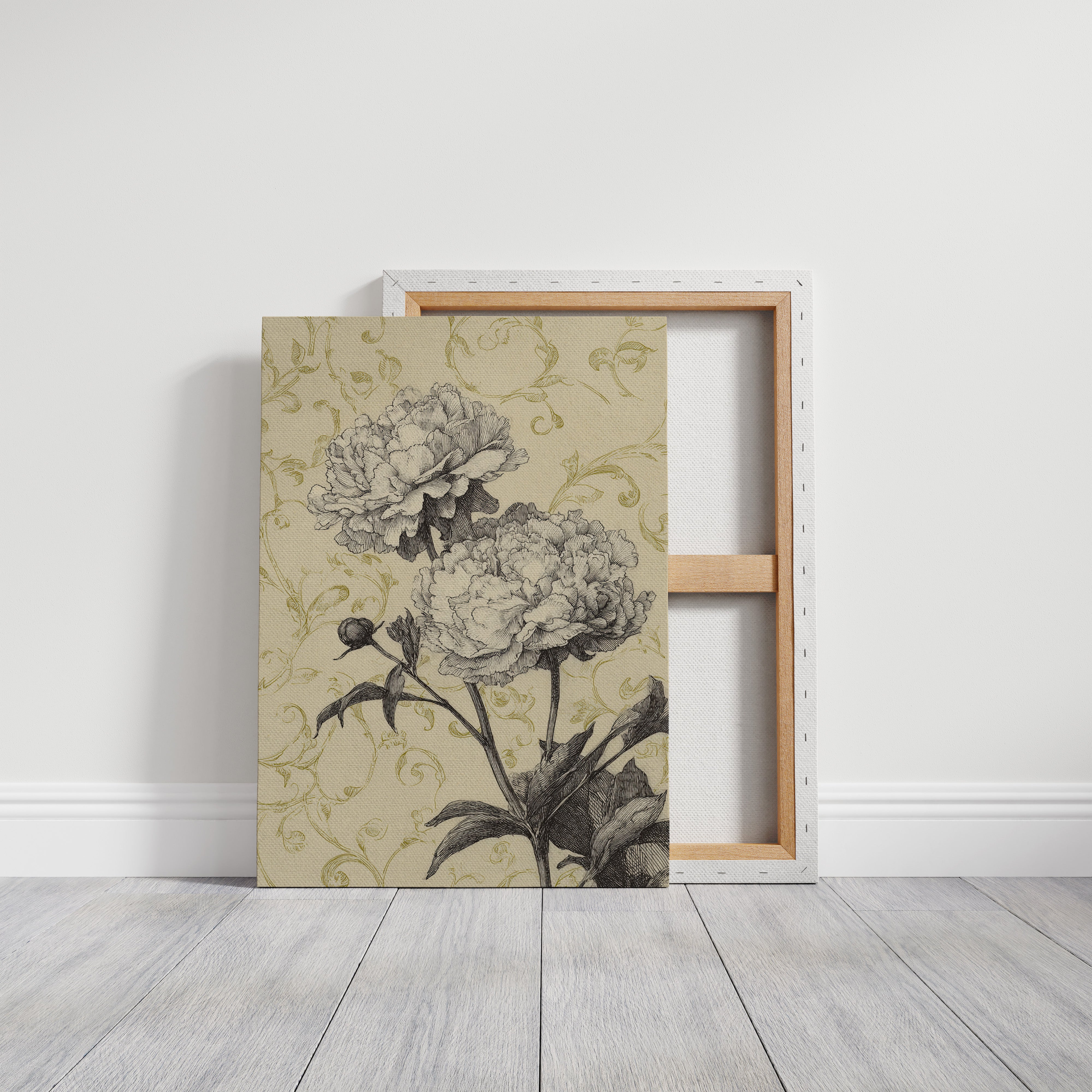 Amidst the soft hues of a bygone era, two peonies stand elegantly, their petals unfurling like whispered secrets. This piece captures the essence of artisanal beauty, merging botanical intricacy with timeless charm. The delicate lines and muted background evoke a sense of nostalgia, inviting viewers to reflect on fleeting moments of grace and tranquility. Perfect for a serene reading nook or a cozy corner, this art piece enhances any space with its gentle allure.