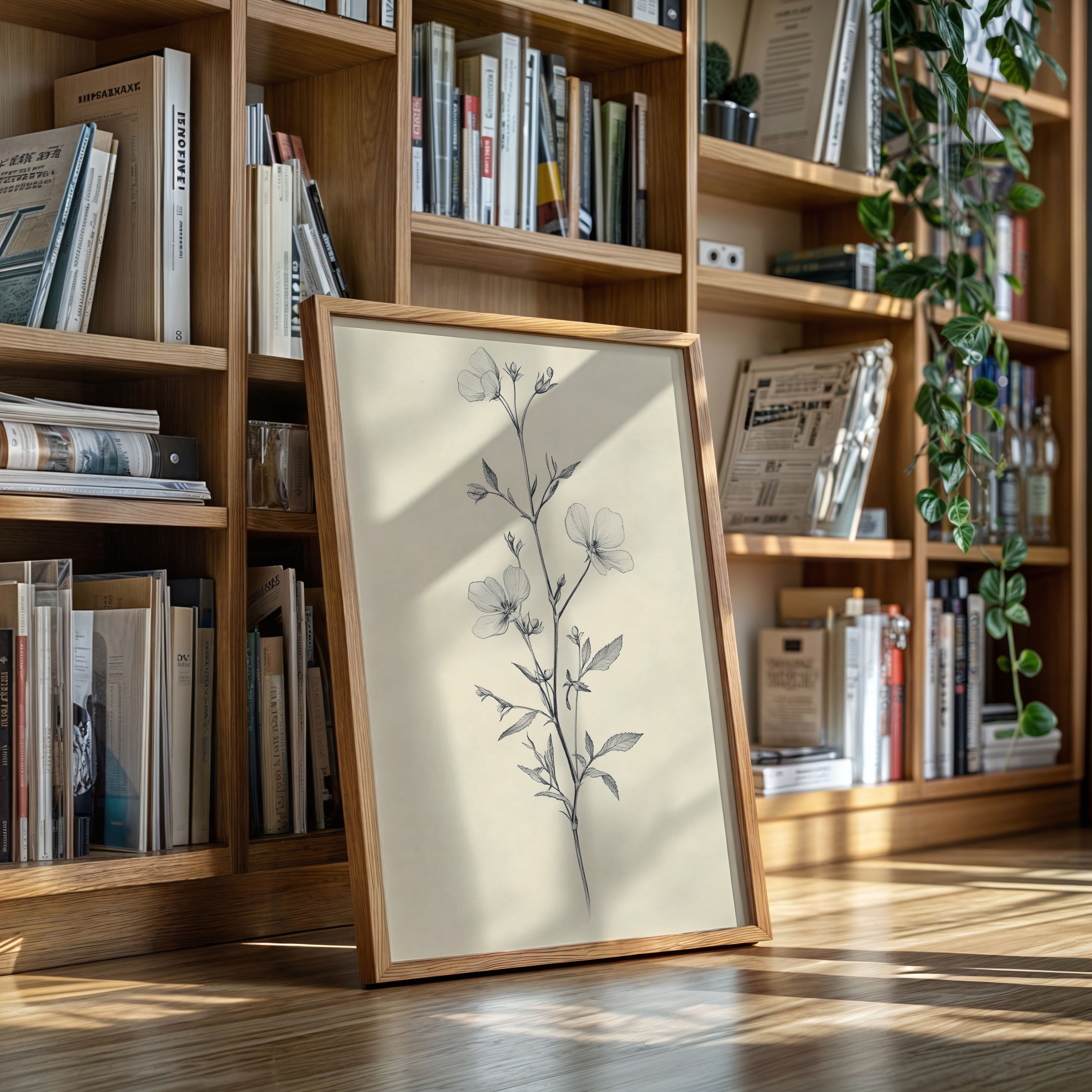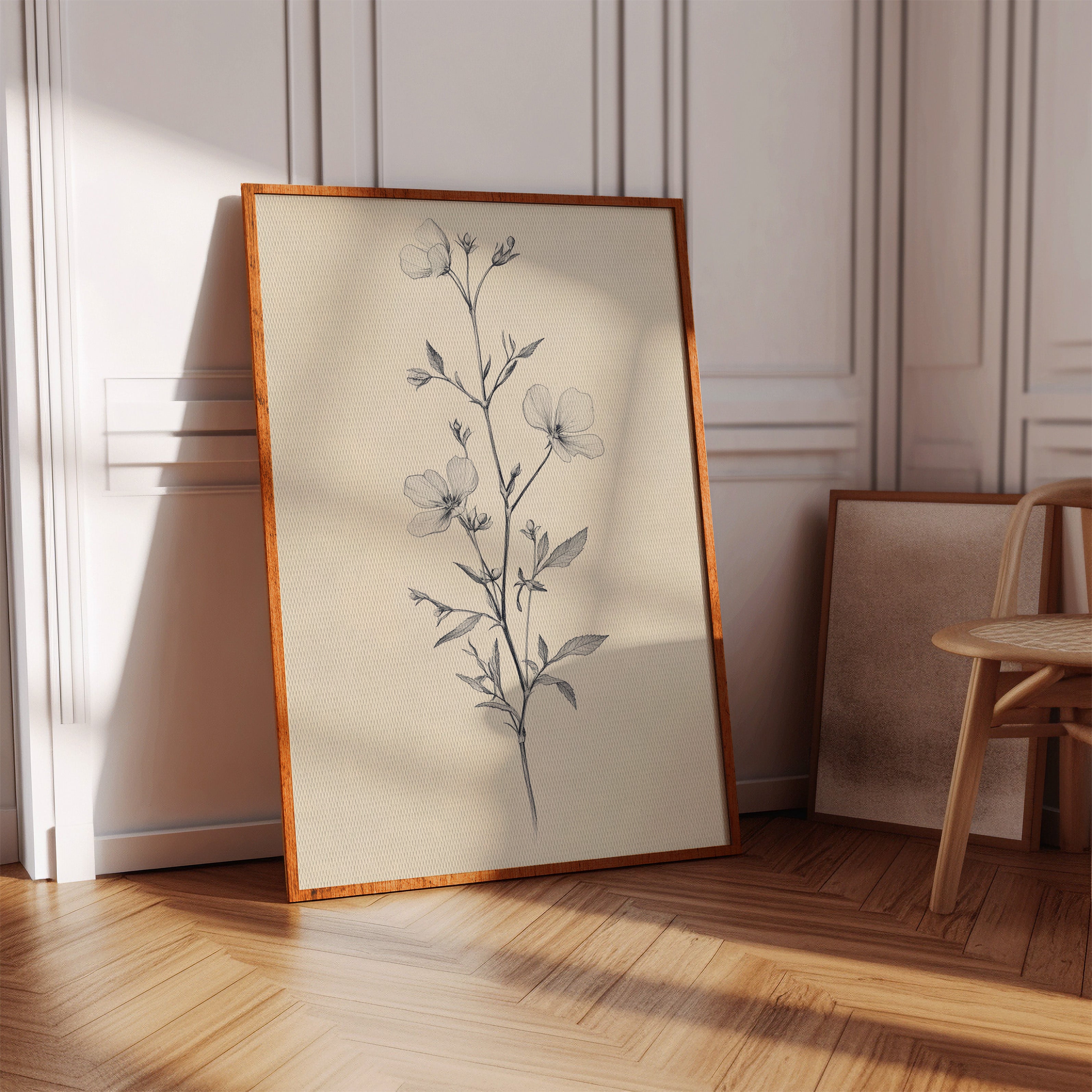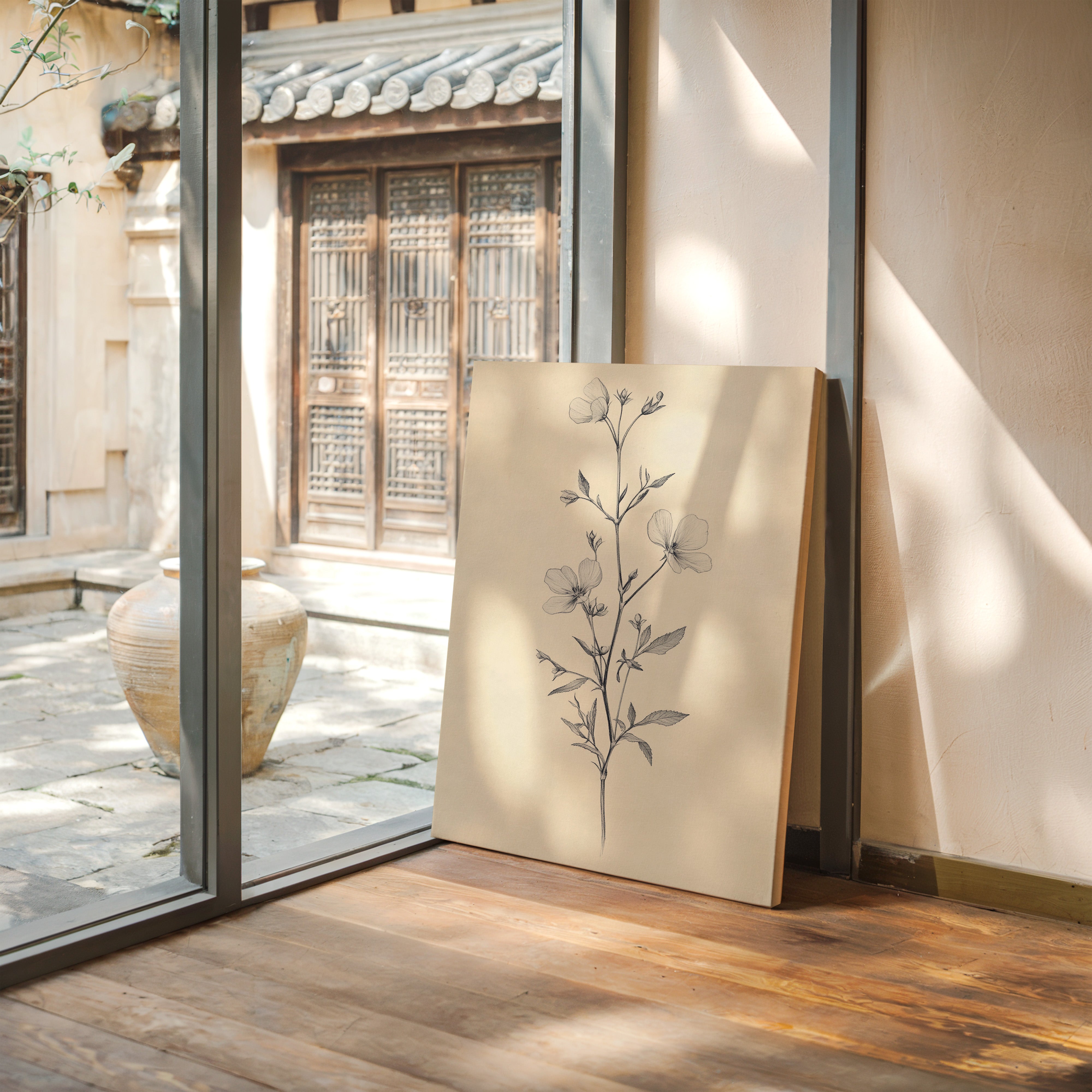 A solitary bloom reaches upward, delicately poised against a soft backdrop, inviting contemplation and stillness. This piece embodies the artisanal spirit, celebrating the beauty found in simplicity and nature's elegance. Fine lines and gentle curves weave a narrative of growth and resilience, where each petal tells a story of the seasons. Ideal for a serene bedroom or a tranquil reading nook, this artwork brings a touch of nature indoors.