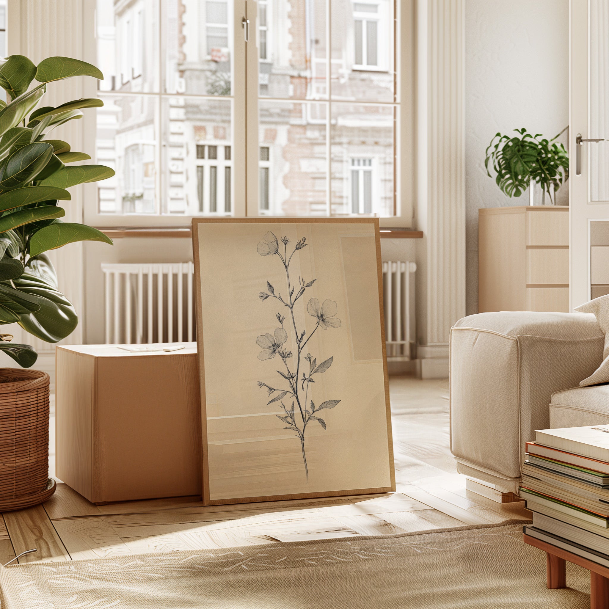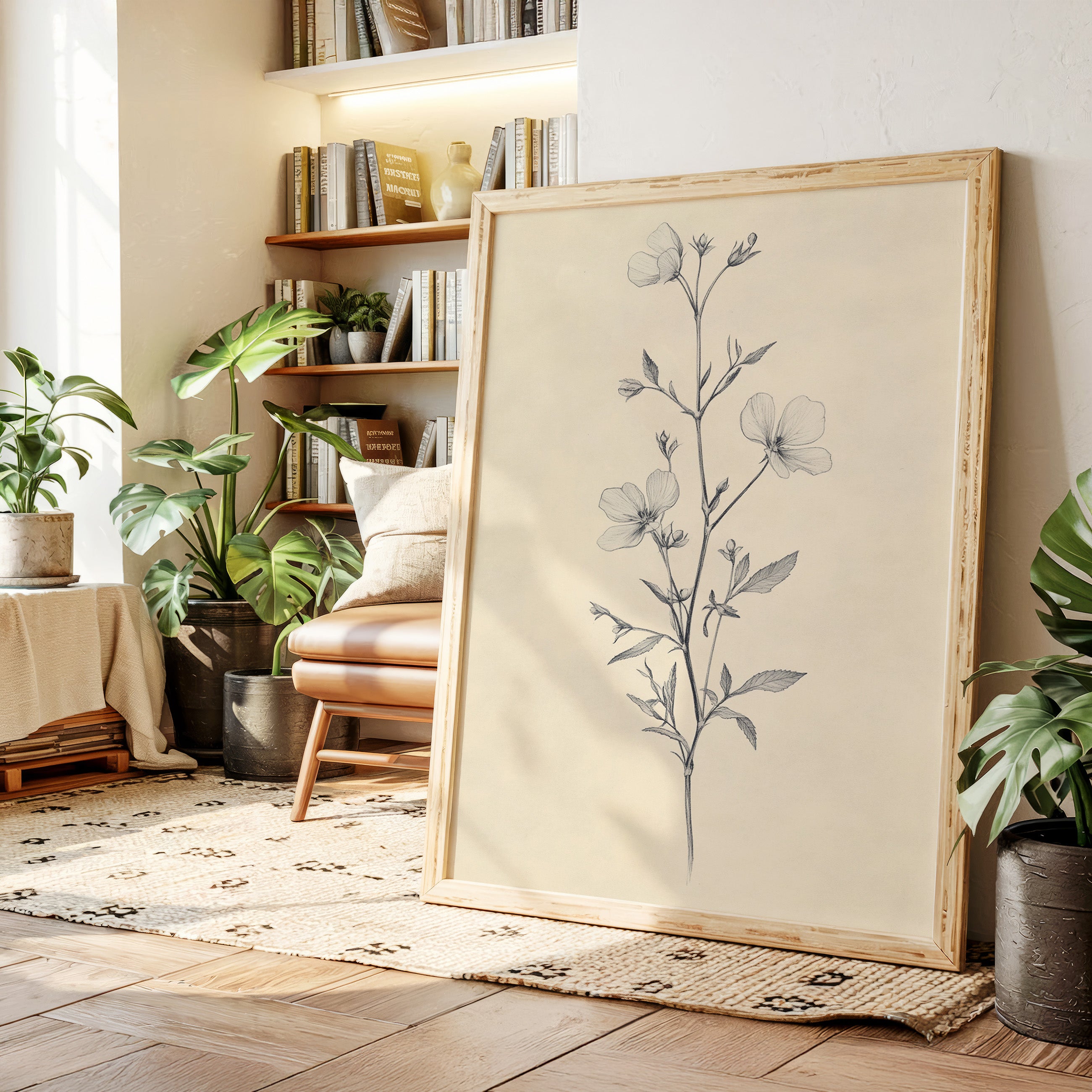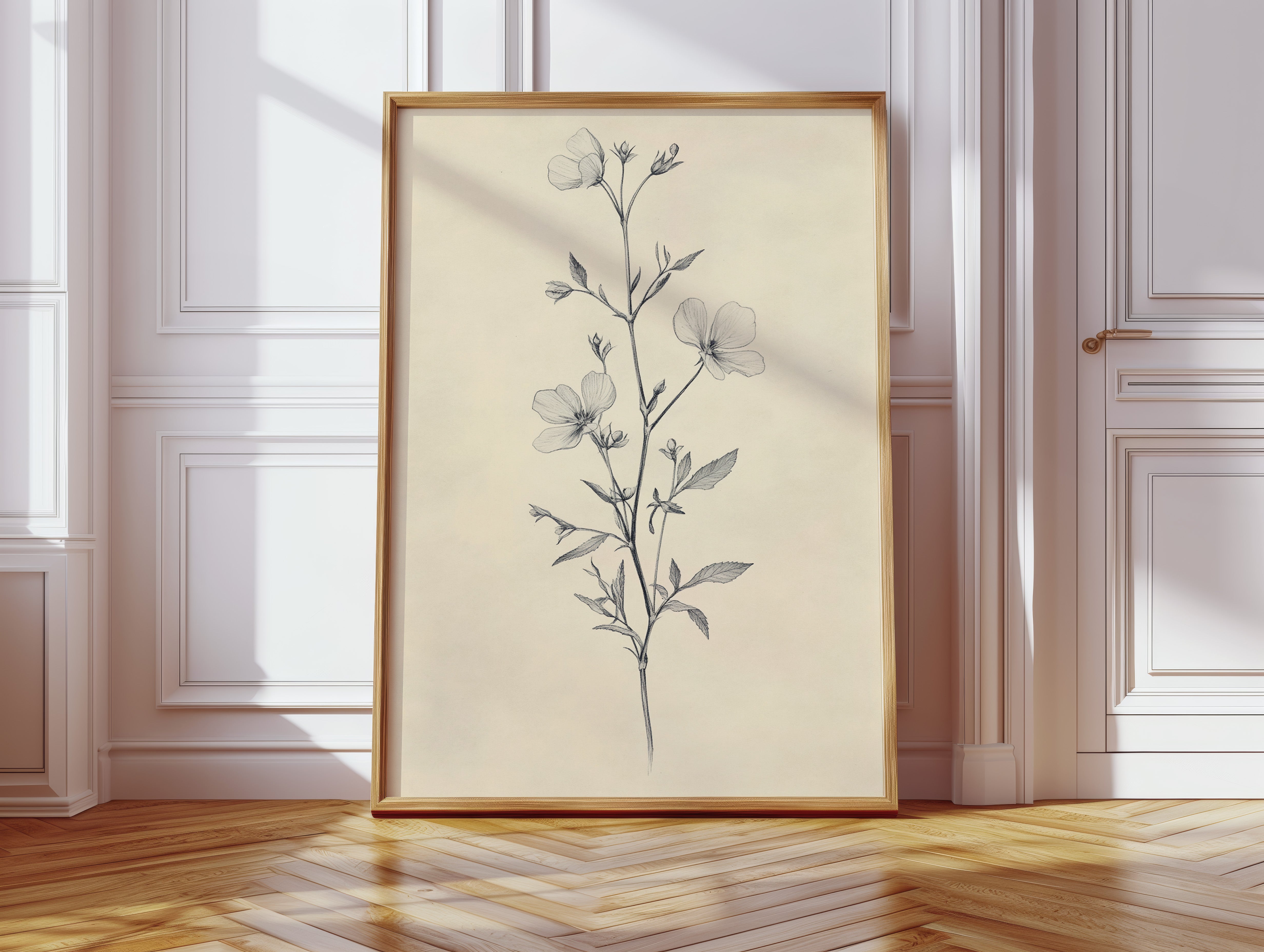 A solitary bloom reaches upward, delicately poised against a soft backdrop, inviting contemplation and stillness. This piece embodies the artisanal spirit, celebrating the beauty found in simplicity and nature's elegance. Fine lines and gentle curves weave a narrative of growth and resilience, where each petal tells a story of the seasons. Ideal for a serene bedroom or a tranquil reading nook, this artwork brings a touch of nature indoors.