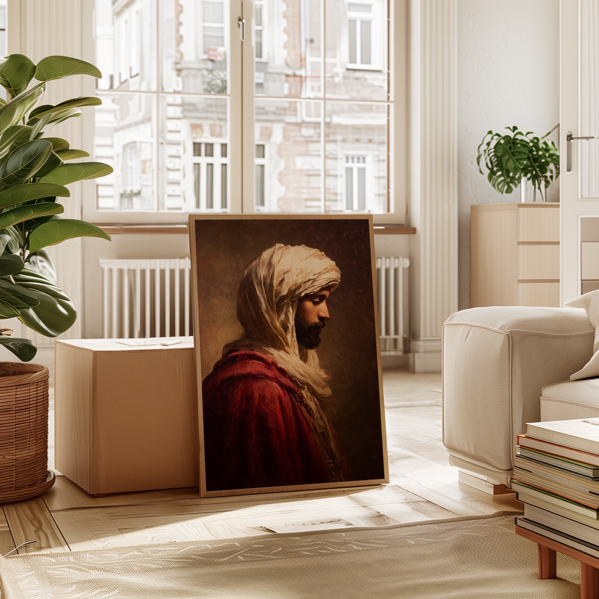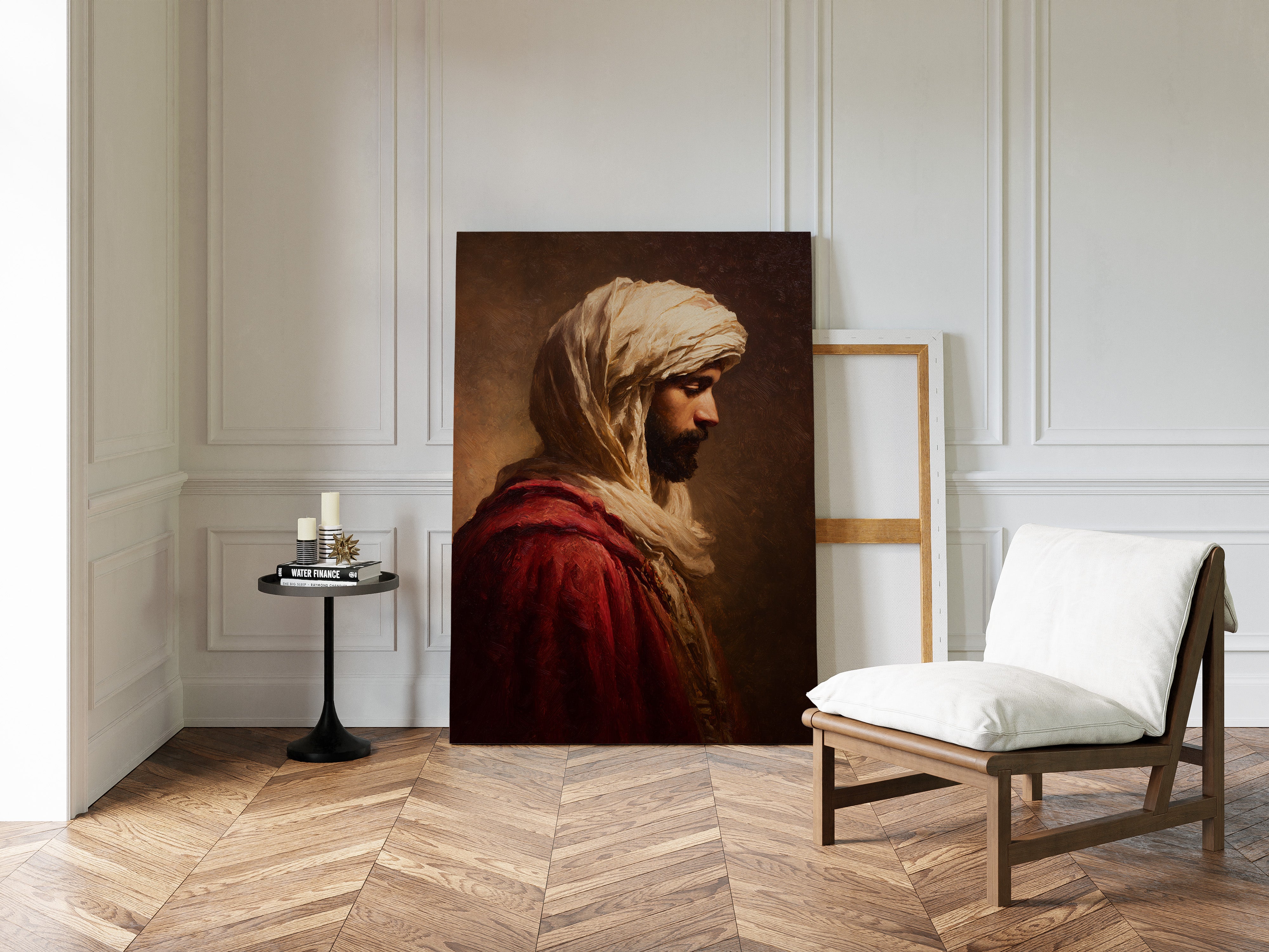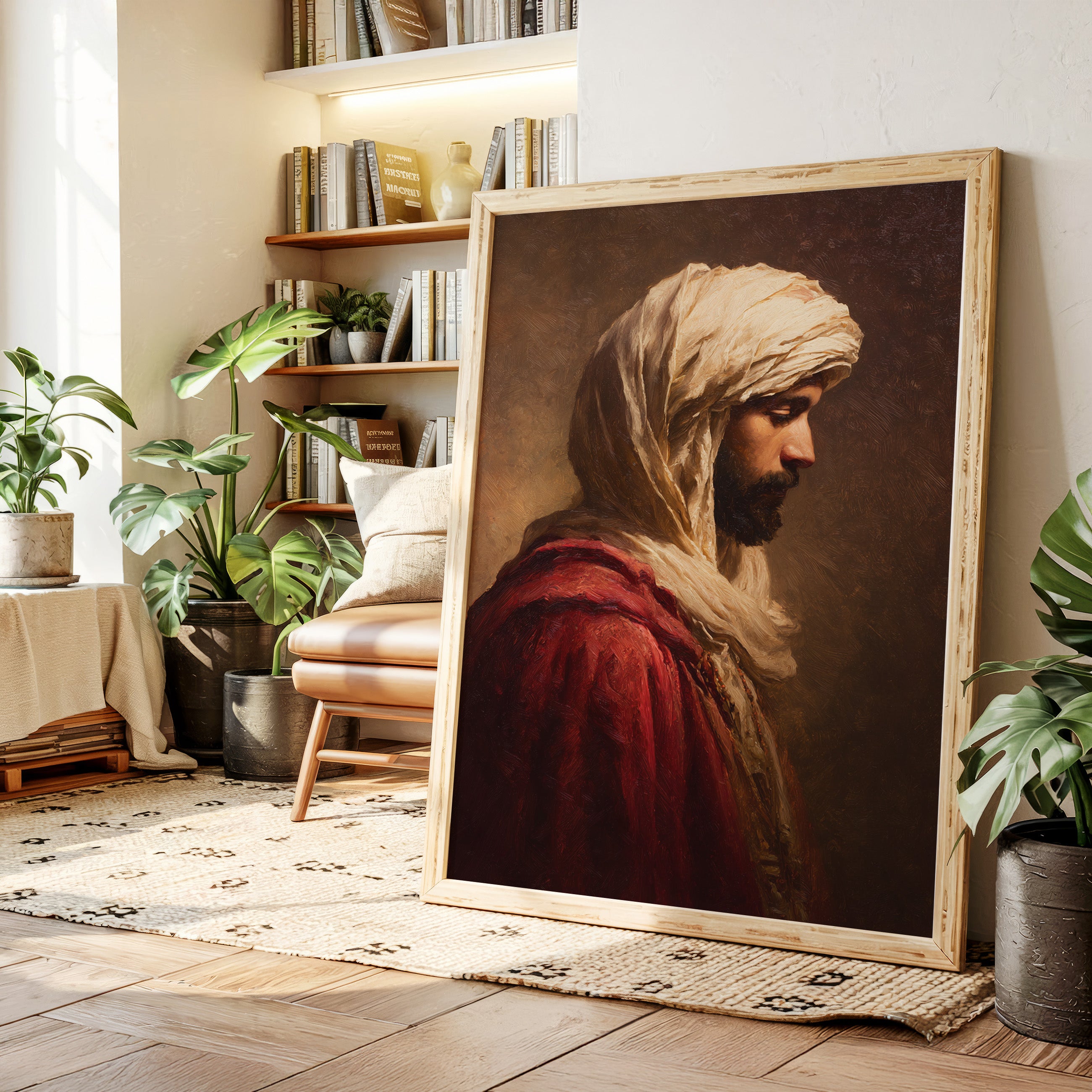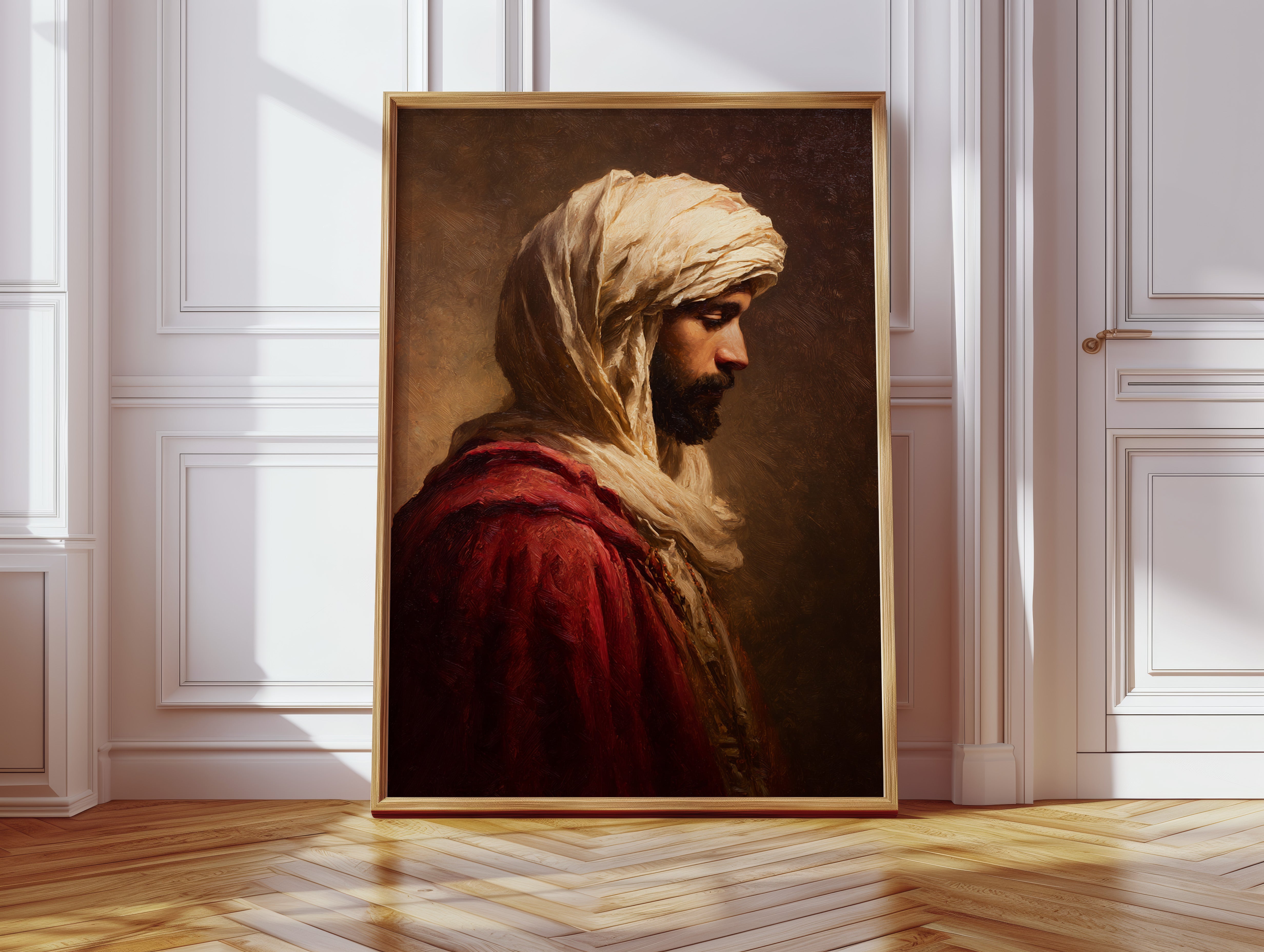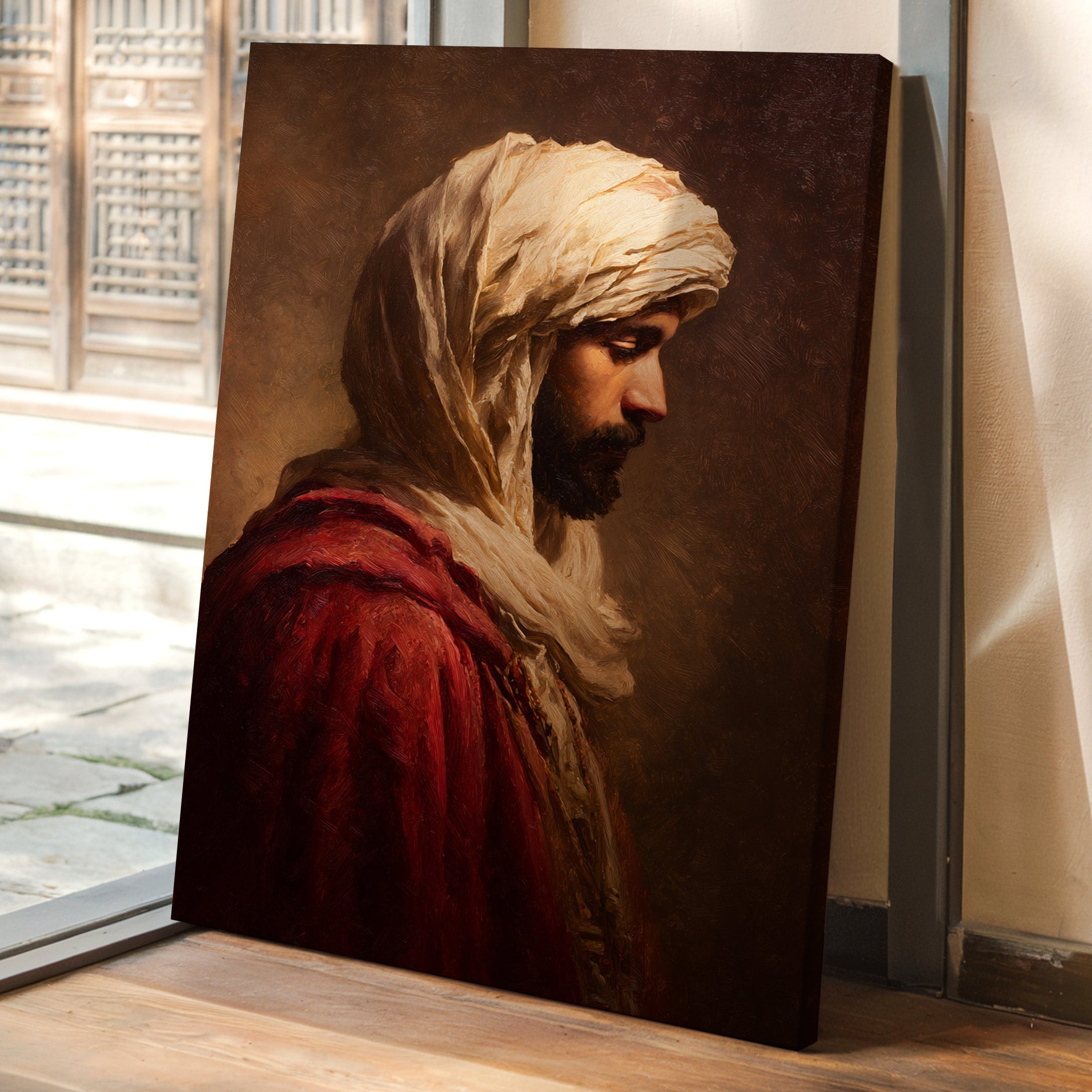 A moment suspended in time, where the fabric of tradition weaves through the air, inviting contemplation. This piece embodies the artisanal spirit, capturing the essence of heritage and craftsmanship. The rich textures of the robe contrast with the soft hues of the background, creating a dialogue between presence and absence, strength and vulnerability. Ideal for a serene reading nook or a contemplative corner, this artwork serves as a reminder of the stories held within each stitch and fold.