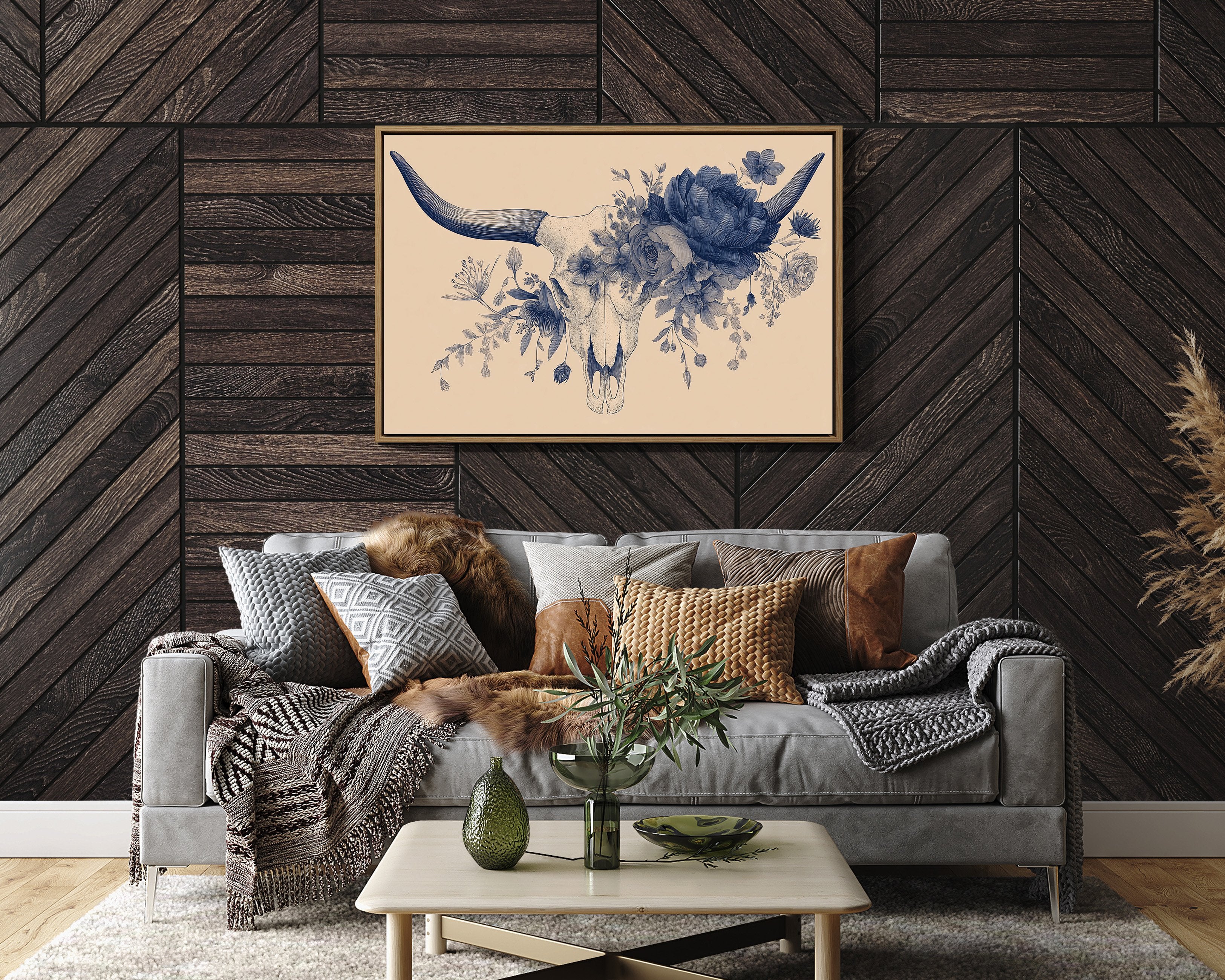 Your artwork should take up 60-75% of wall space above furniture. For standard sofas, choose 24"x36" or larger. When in doubt, go slightly bigger.