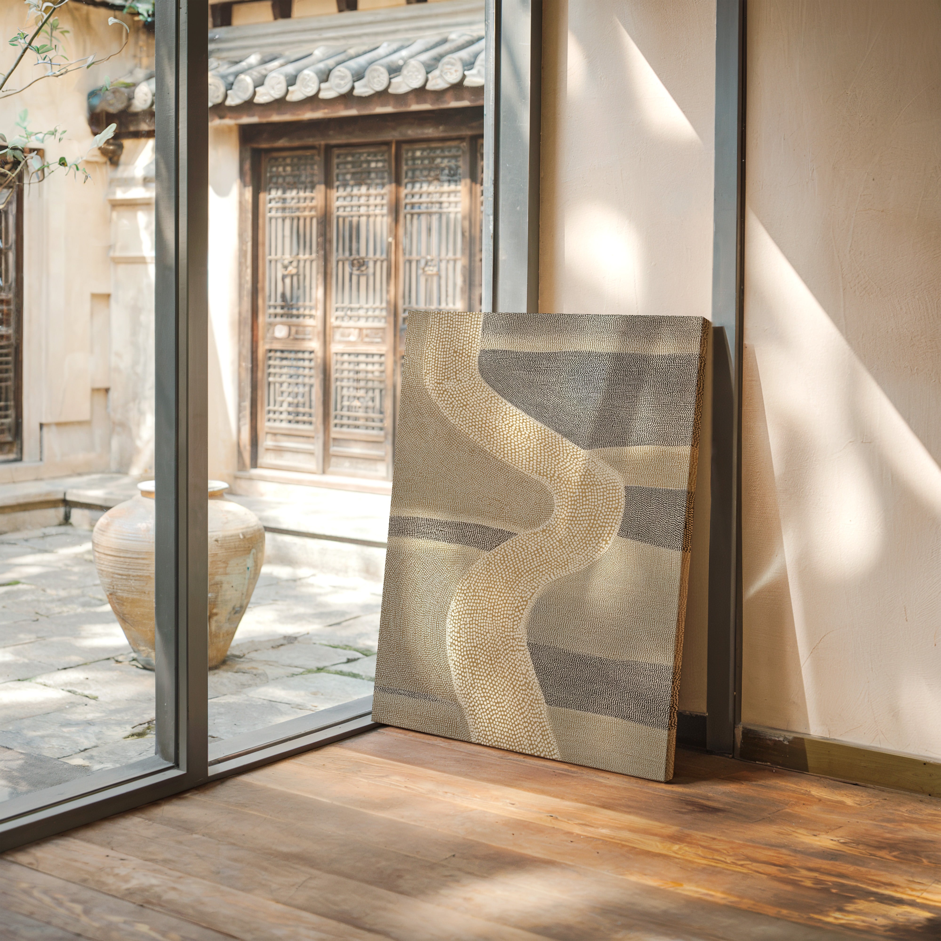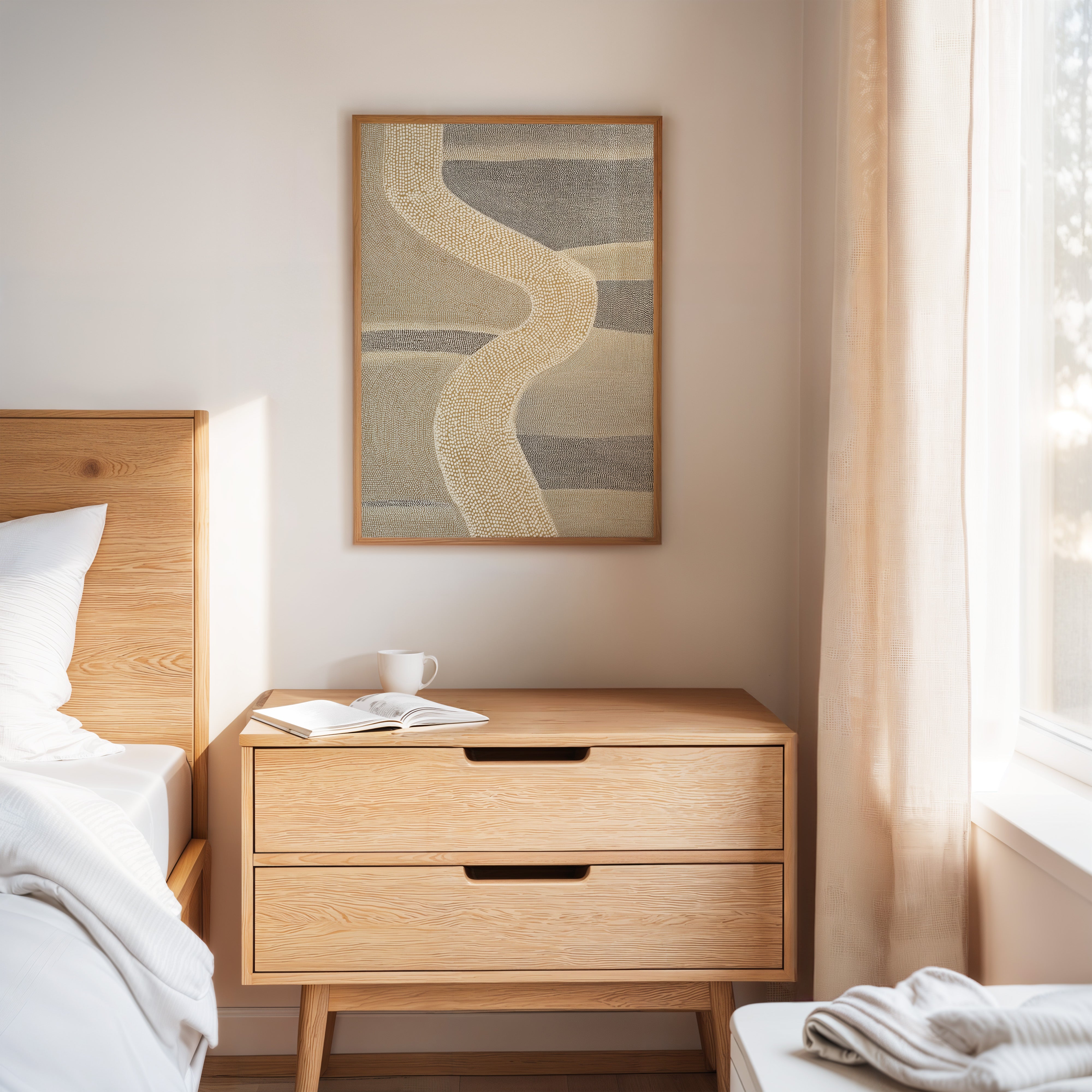 A gentle river of texture weaves through a landscape of muted tones, inviting reflection and exploration. This piece embodies the artisanal spirit, showcasing the beauty found in handcrafted details. Delicate strokes of cream and grey dance together, creating a harmonious flow reminiscent of nature's pathways. Ideal for a serene reading nook or a cozy living space, this work invites calm into your home.