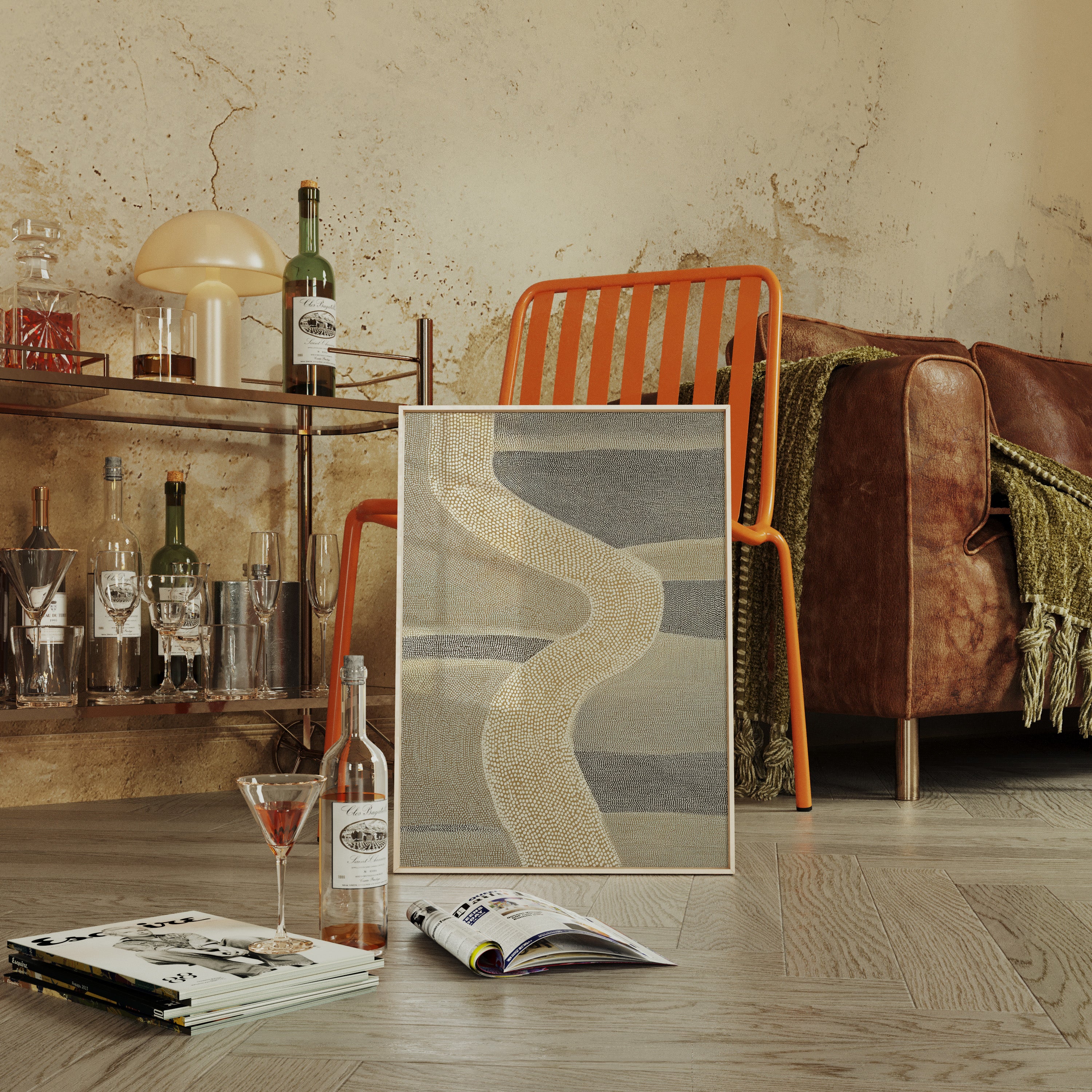 Your artwork should take up 60-75% of wall space above furniture. For standard sofas, choose 24"x36" or larger. When in doubt, go slightly bigger.
