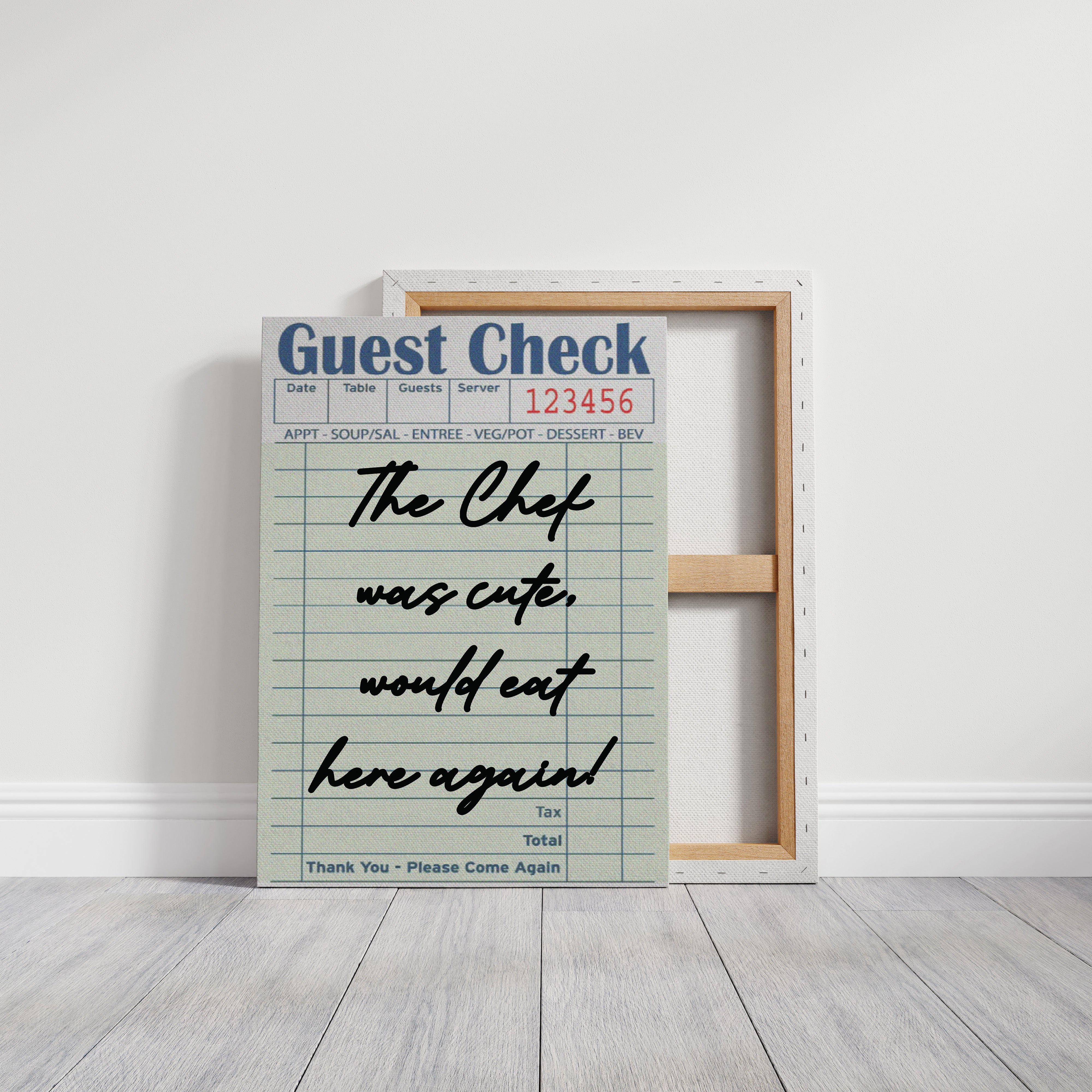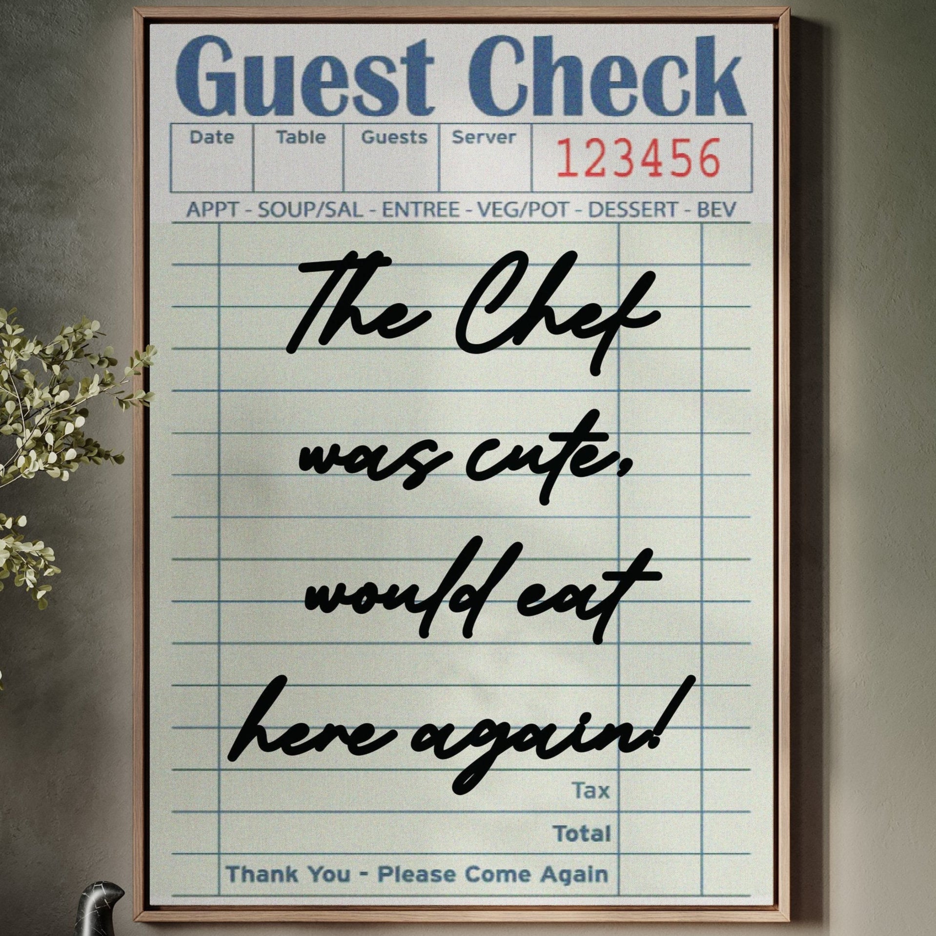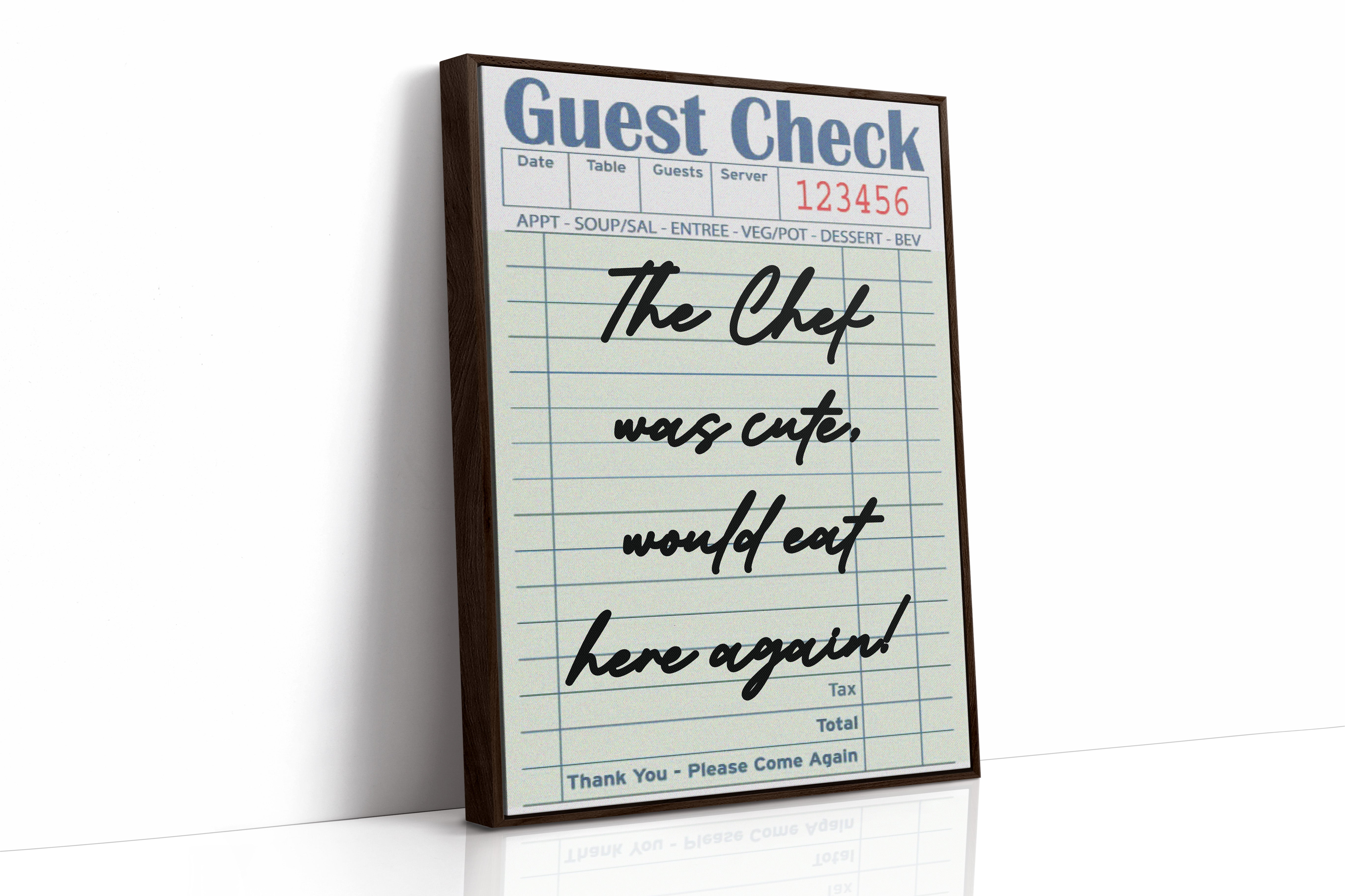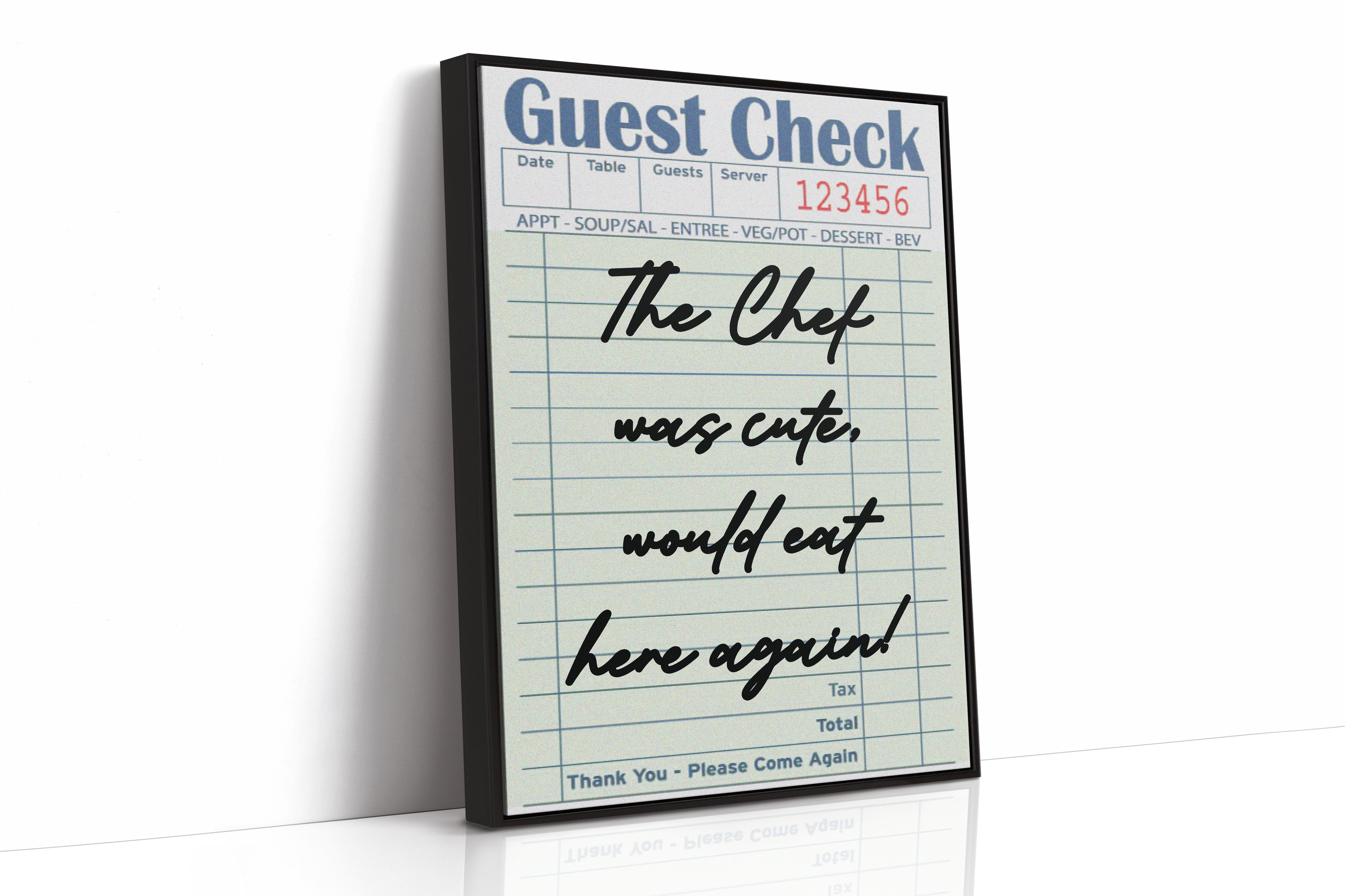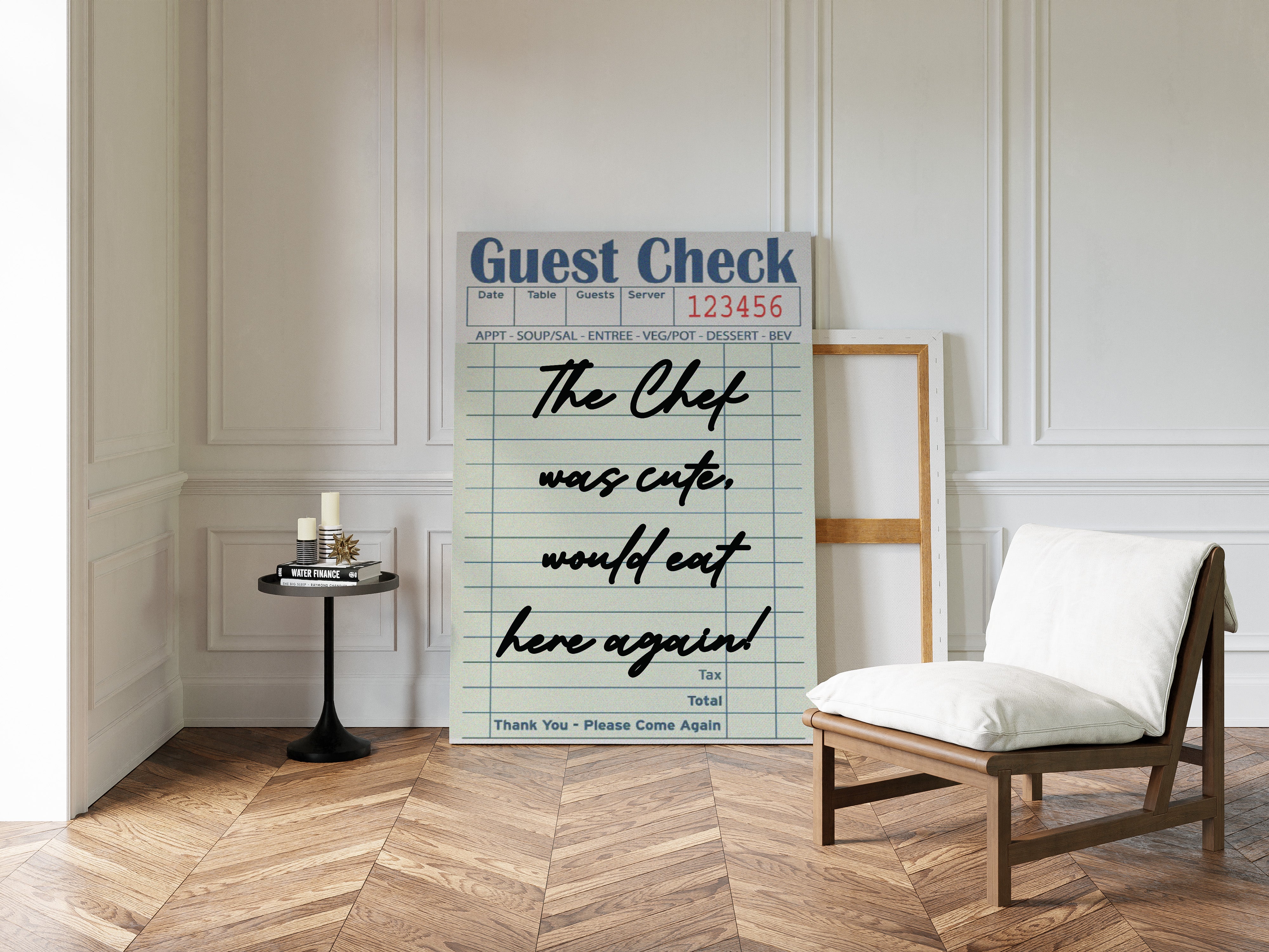 A simple guest check transforms into a love letter to exceptional dining, where handwritten praise dances across lined paper in bold, confident strokes. This contemporary piece captures the authentic spirit of hospitality and culinary excellence. The vintage-inspired receipt format contrasts beautifully with modern calligraphy, creating a playful narrative about a memorable dining experience. Soft morning light bathes the scene, highlighting the warm oak furnishings and crisp white linens that frame this charming restaurant memento. Perfect for adding personality to a modern dining room, kitchen, or restaurant-inspired space. The piece invites conversation while celebrating the simple joy of a meal well served.