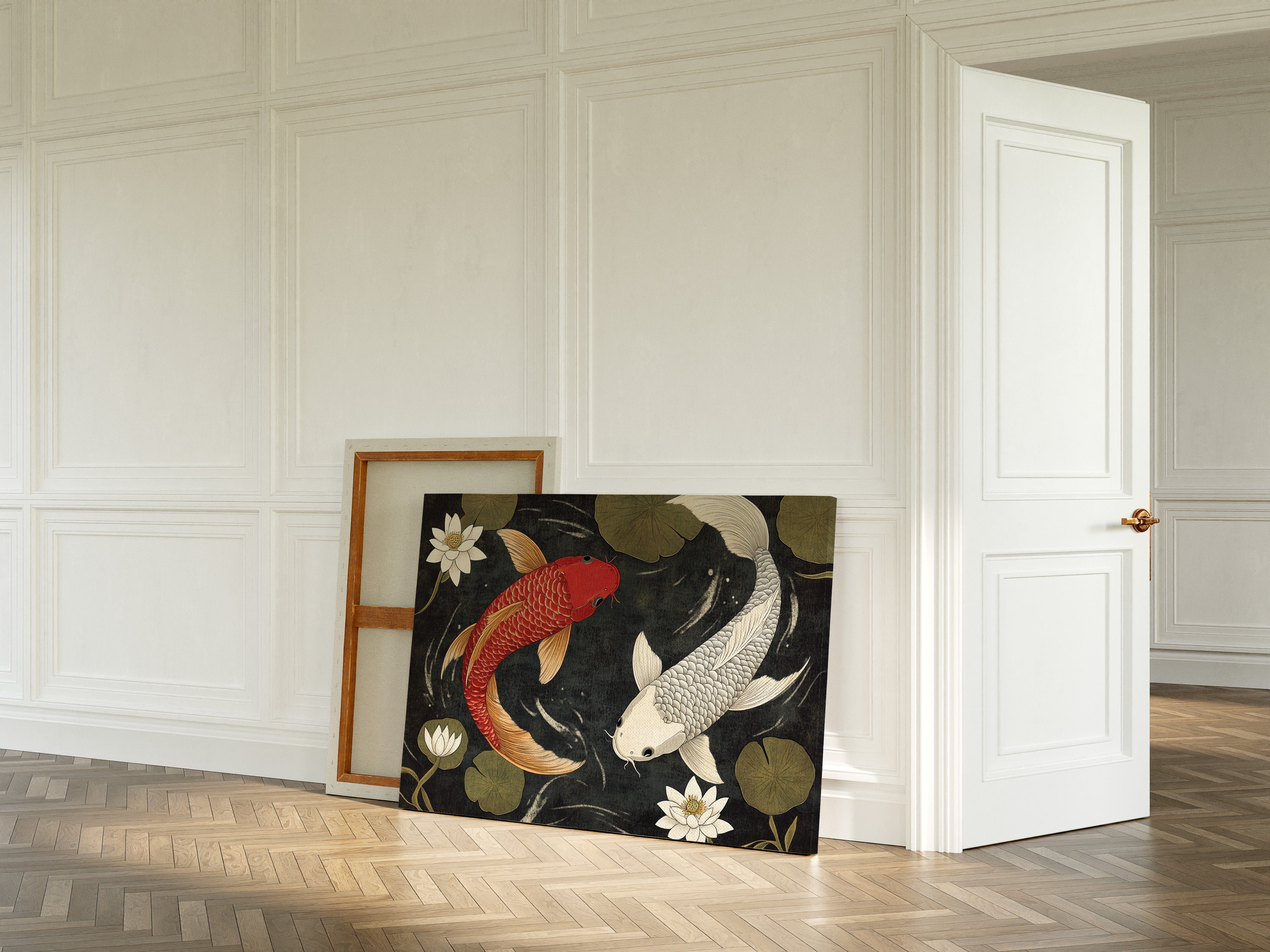 Koi Dance Among Midnight Lotuses | Gallery Canvas / 11" x 9" | $65.00