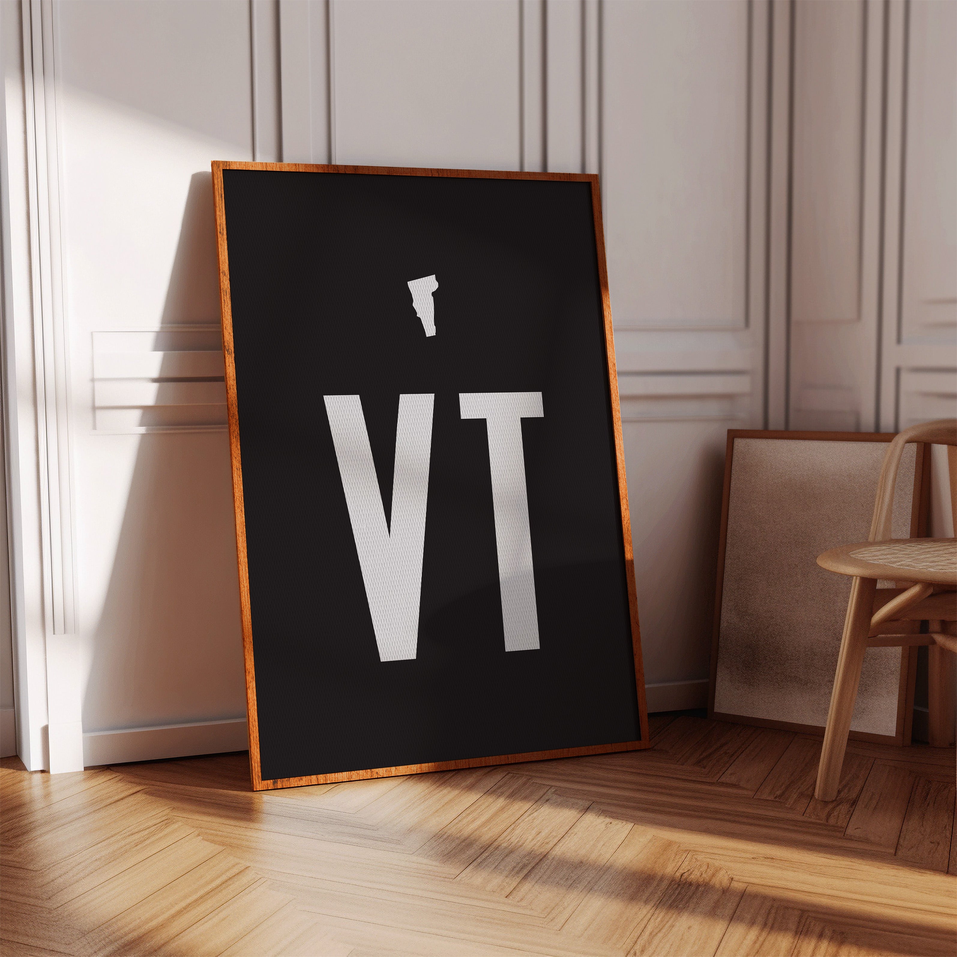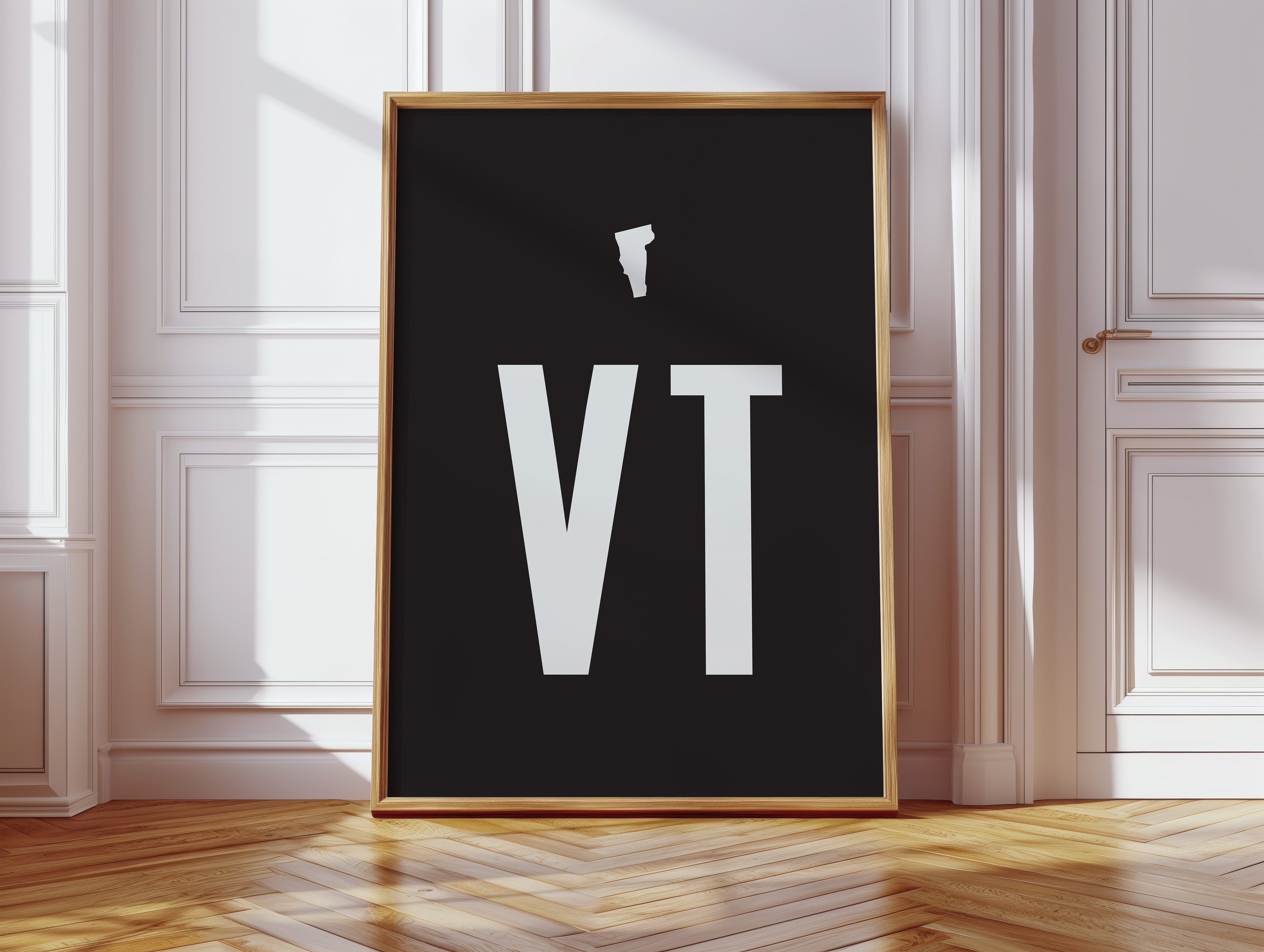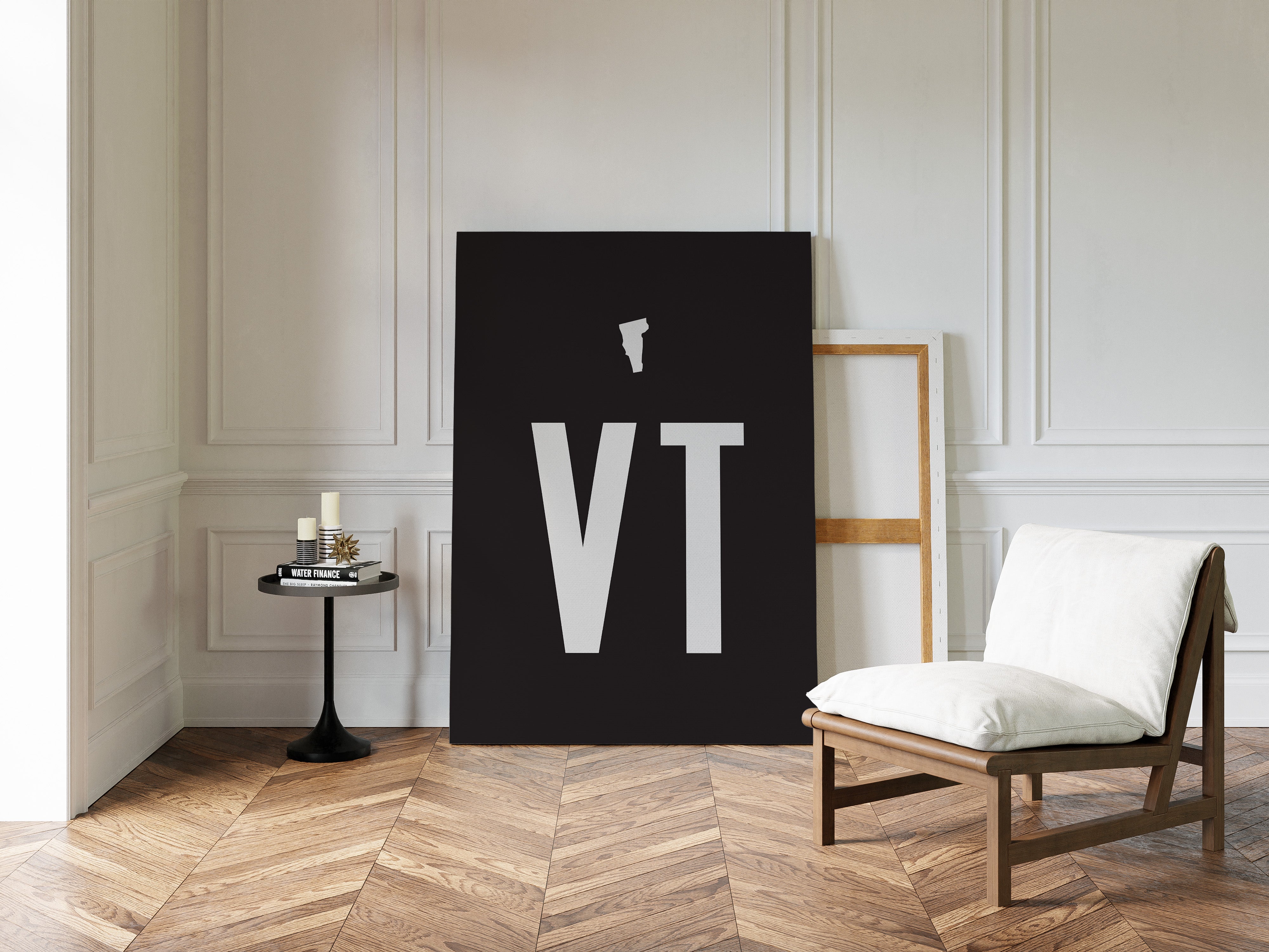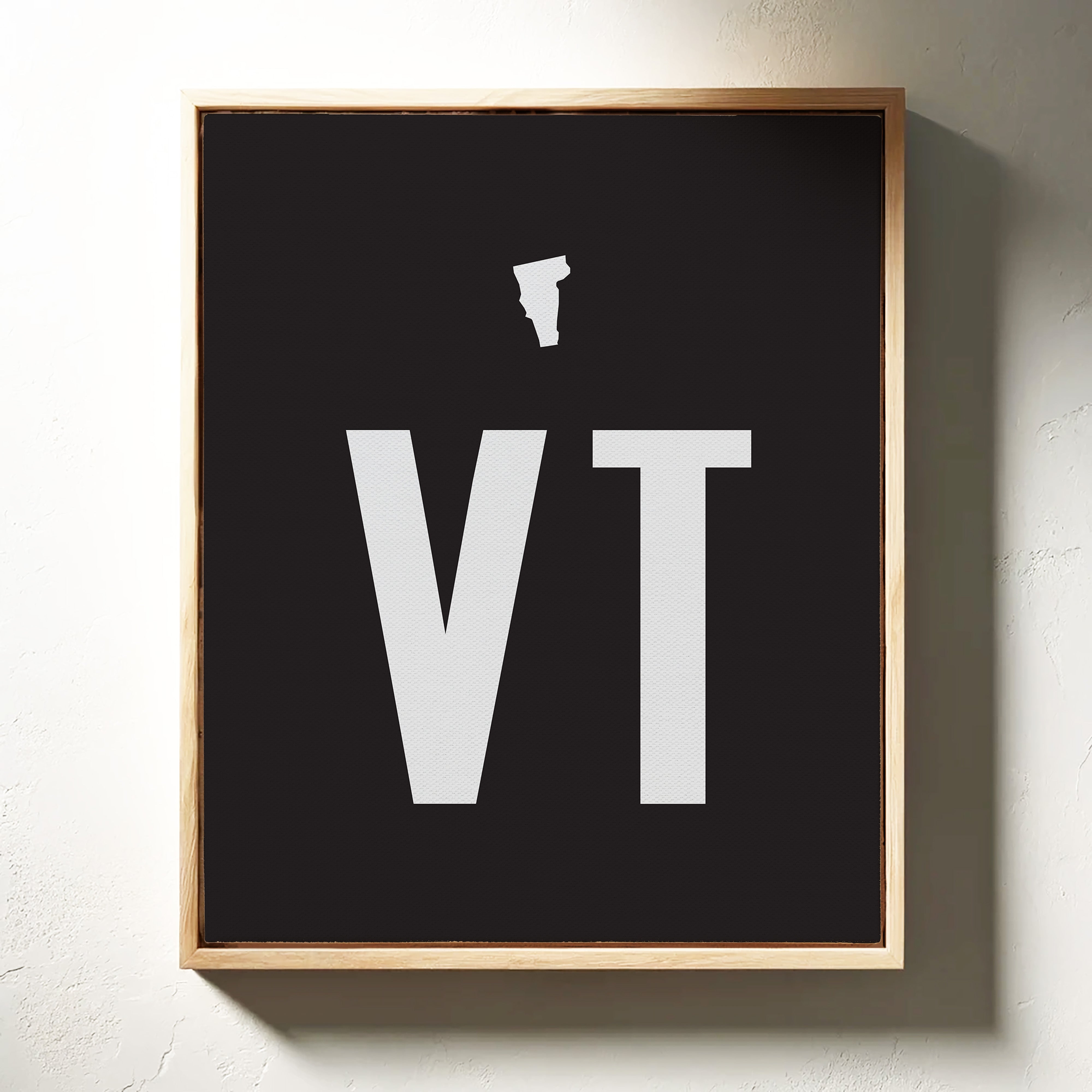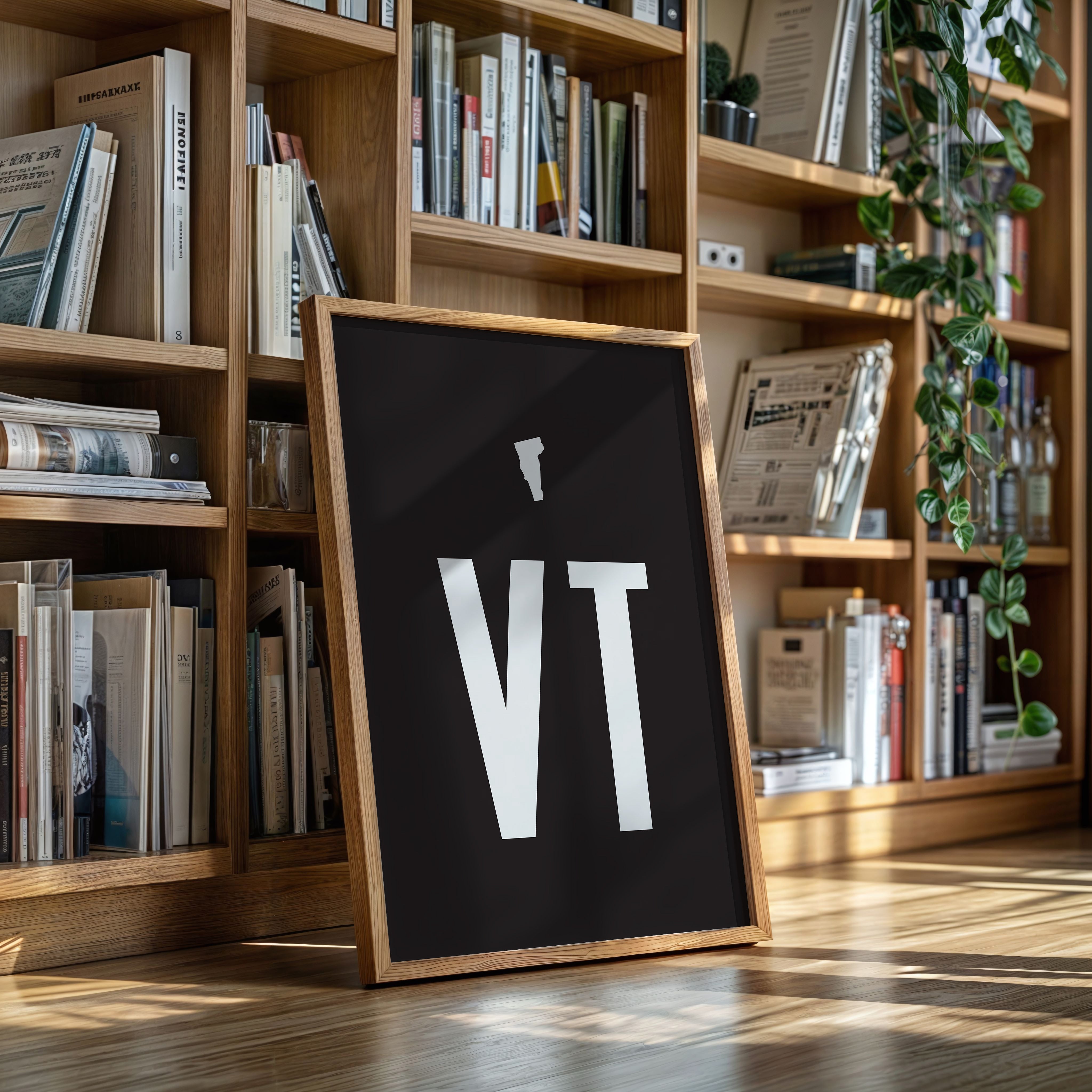 Stark white typography emerges from the depths of darkness, commanding attention with its minimalist presence. The letters ""VT"" rise with architectural precision, their clean lines and geometric forms creating a powerful statement against the deep black background. This contemporary composition speaks to the beauty of simplicity, where negative space becomes as important as the forms themselves. This piece would make a striking statement in a modern office space or creative studio, where its bold minimalism can inspire clear thinking and creative focus.