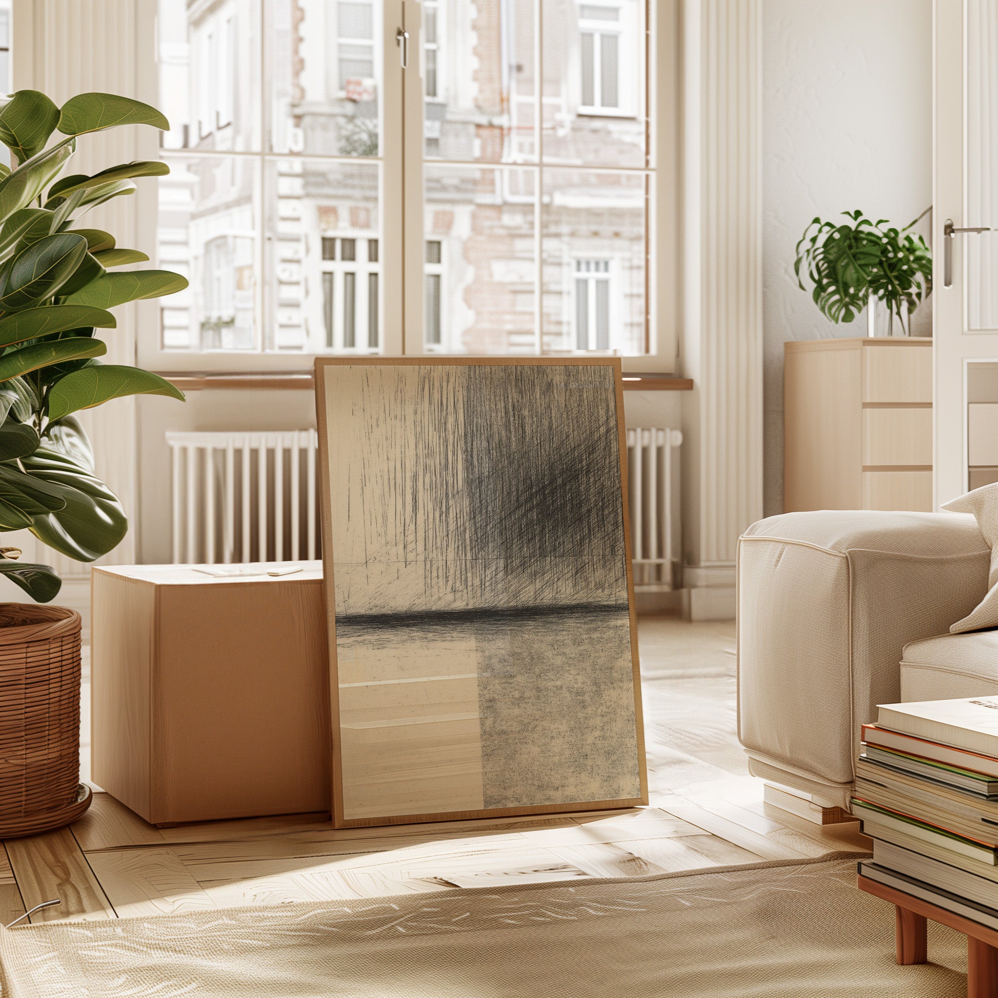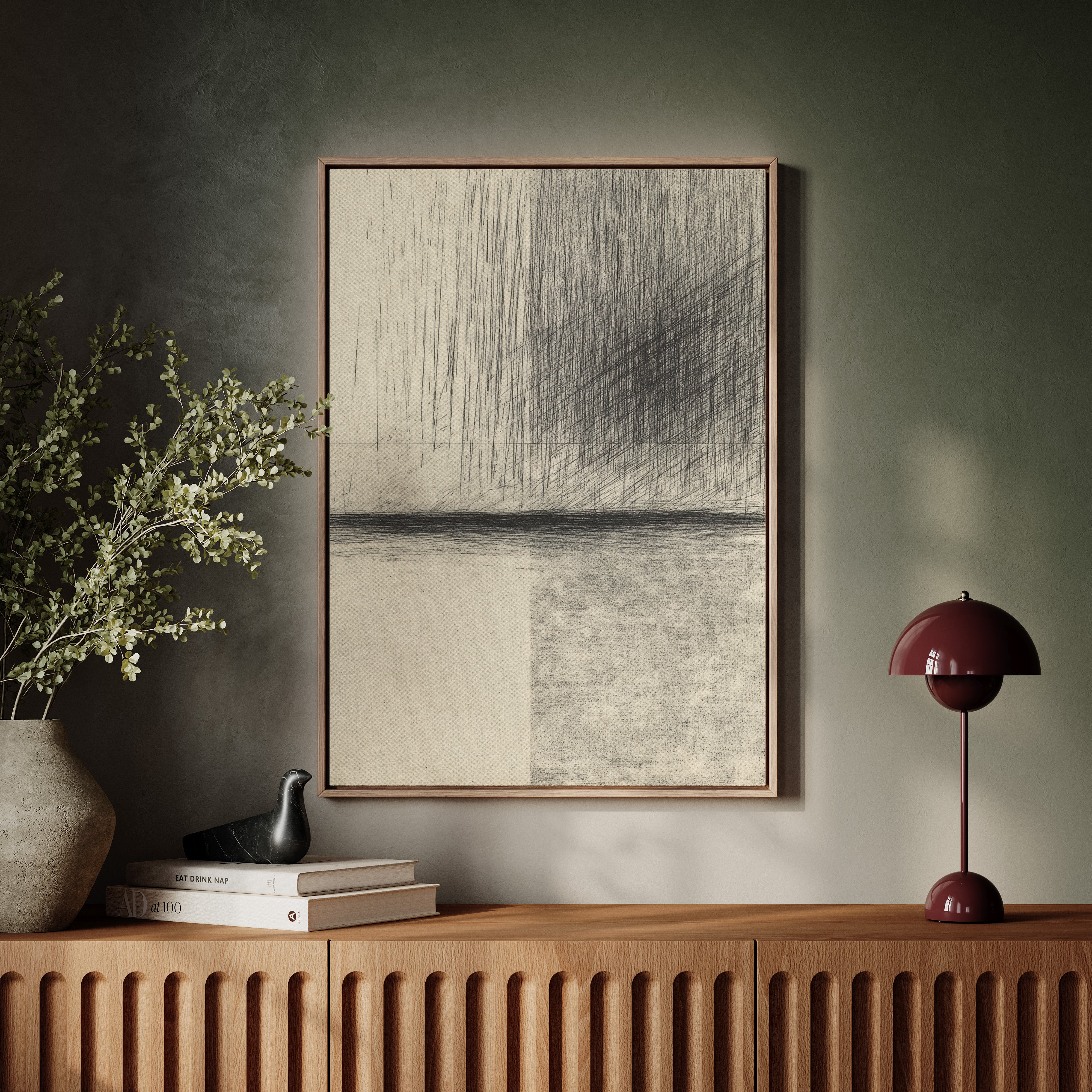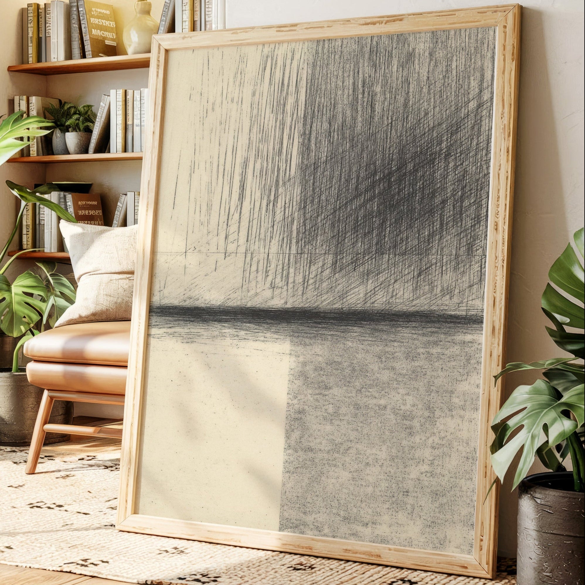 Your artwork should take up 60-75% of wall space above furniture. For standard sofas, choose 24"x36" or larger. When in doubt, go slightly bigger.
