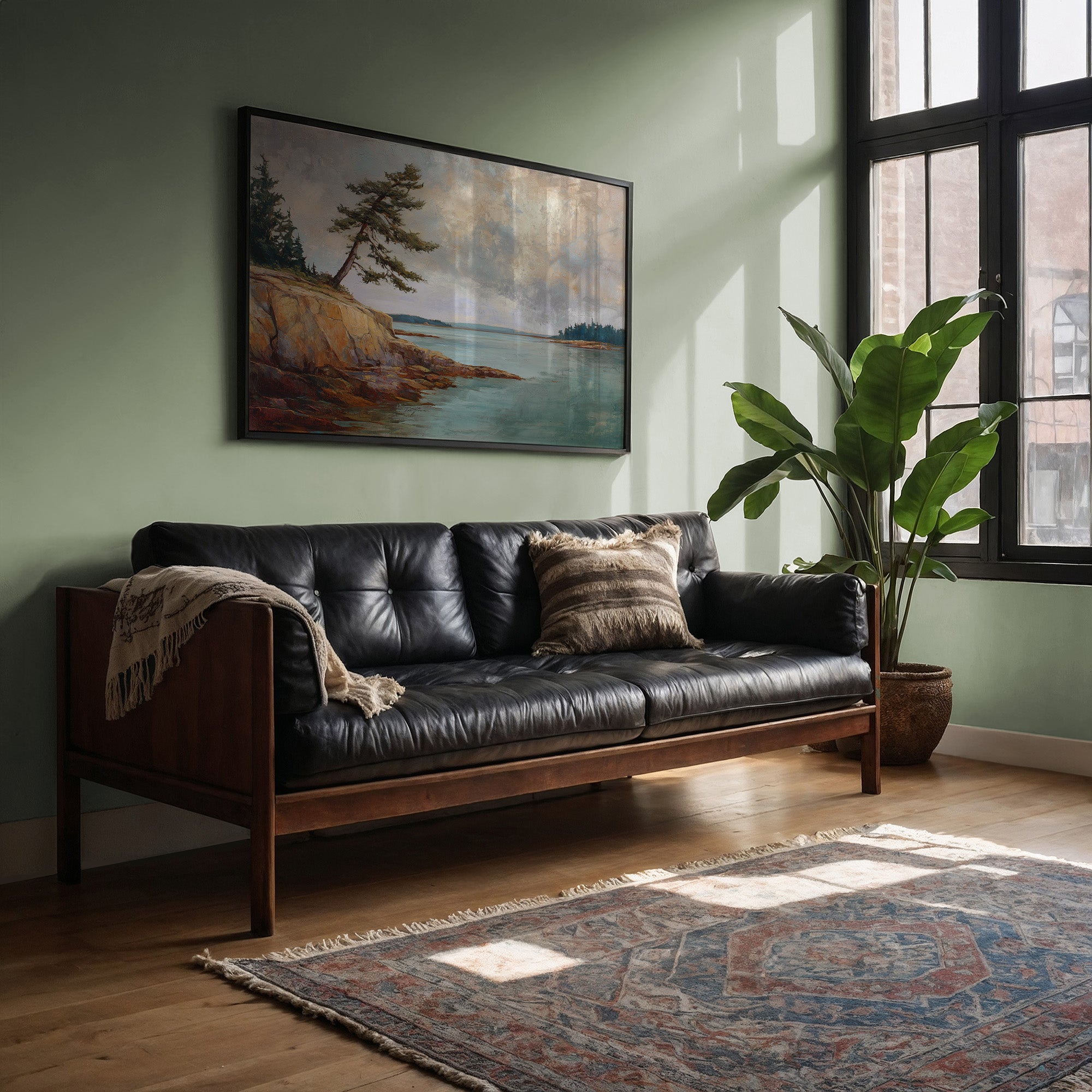 Your artwork should take up 60-75% of wall space above furniture. For standard sofas, choose 24"x36" or larger. When in doubt, go slightly bigger.