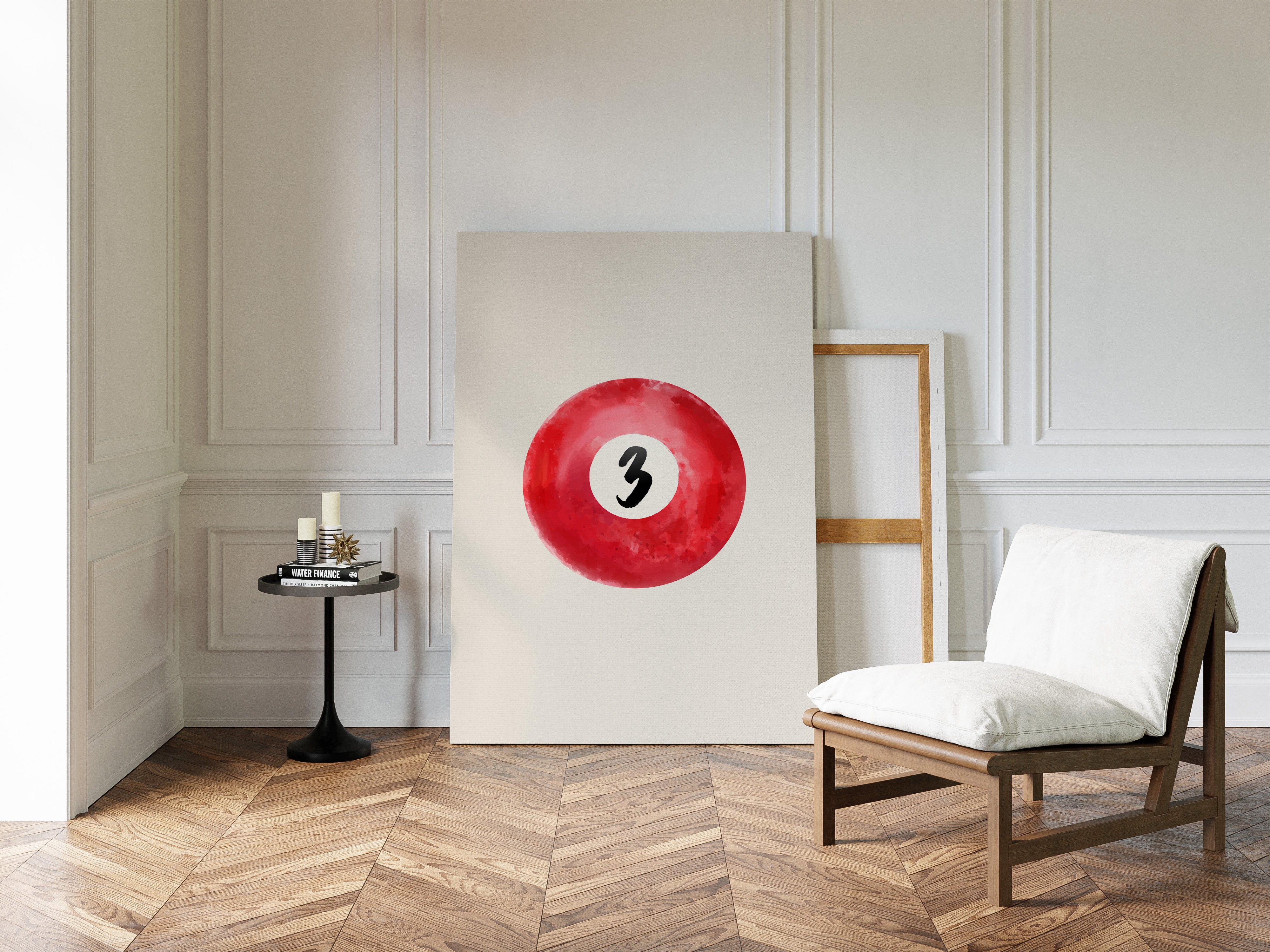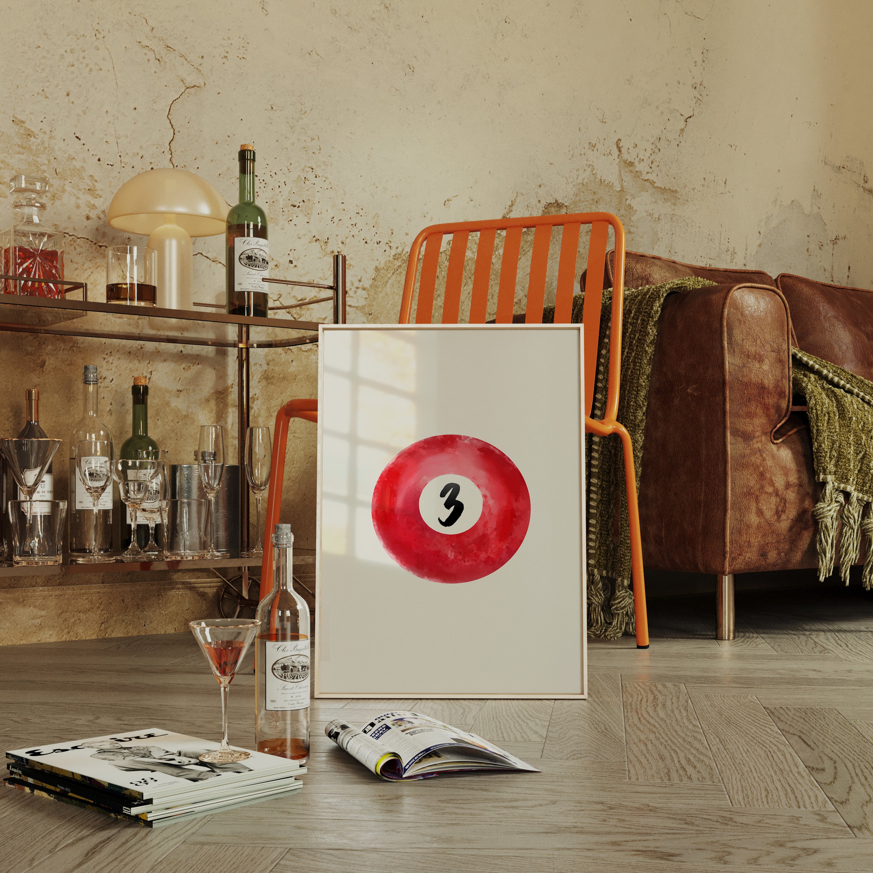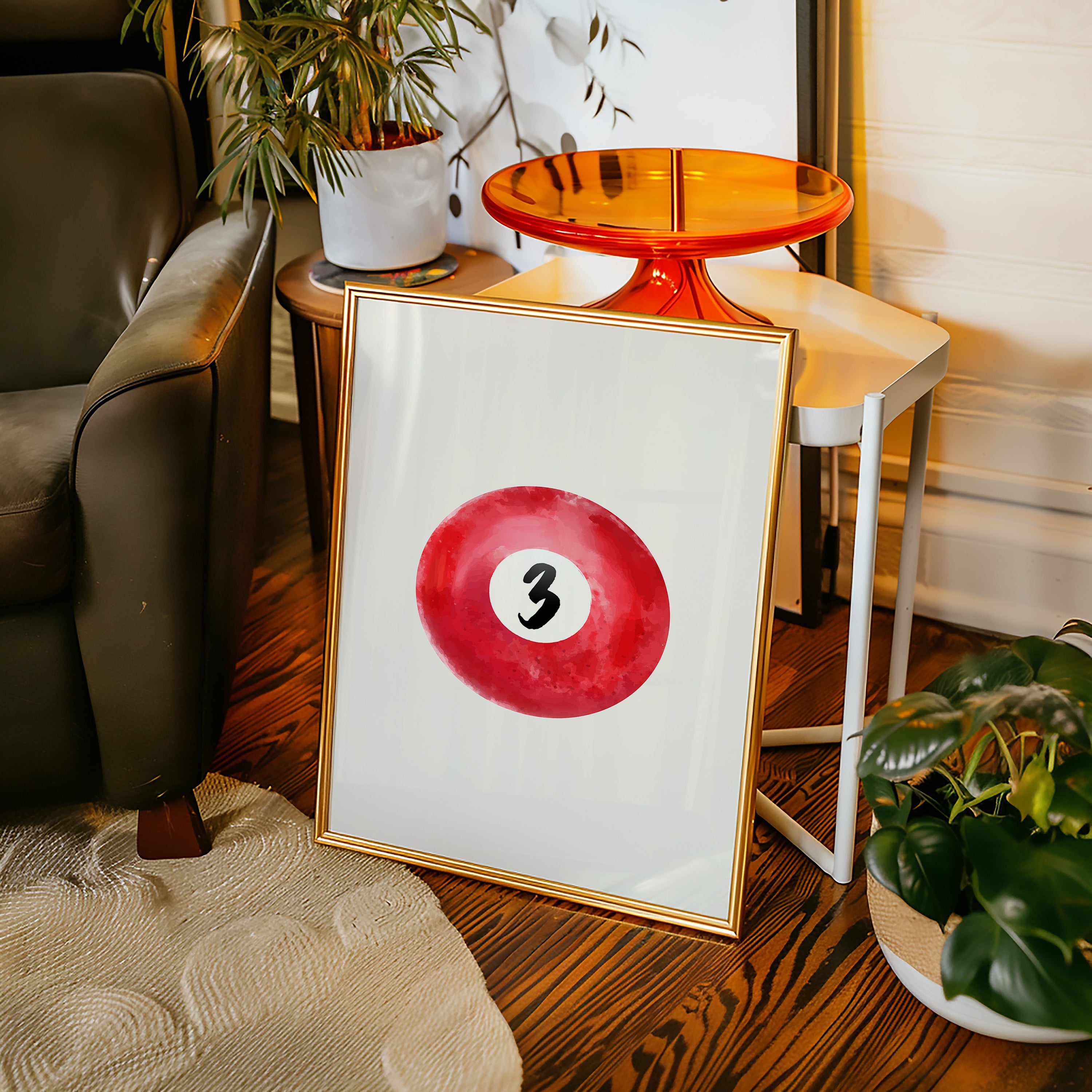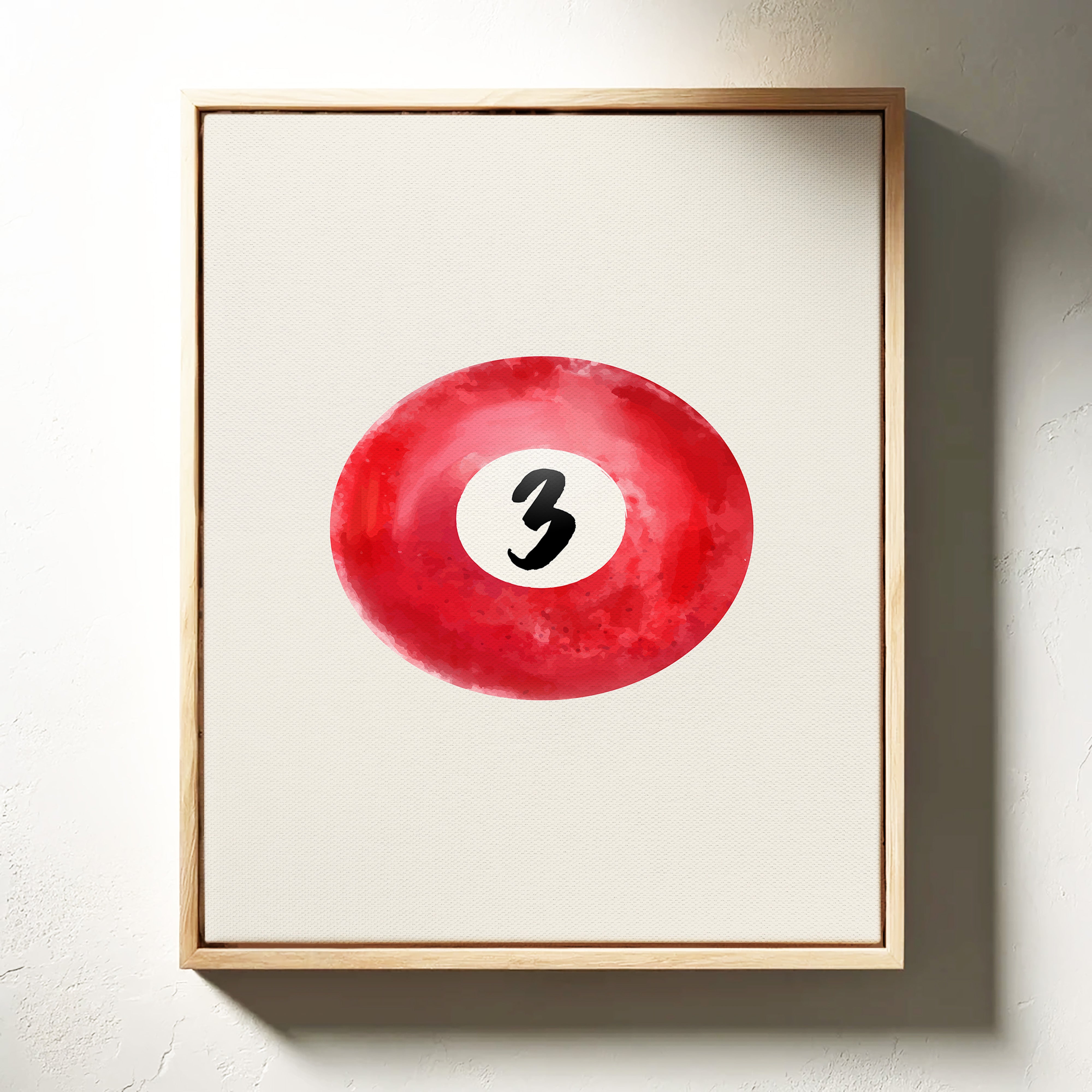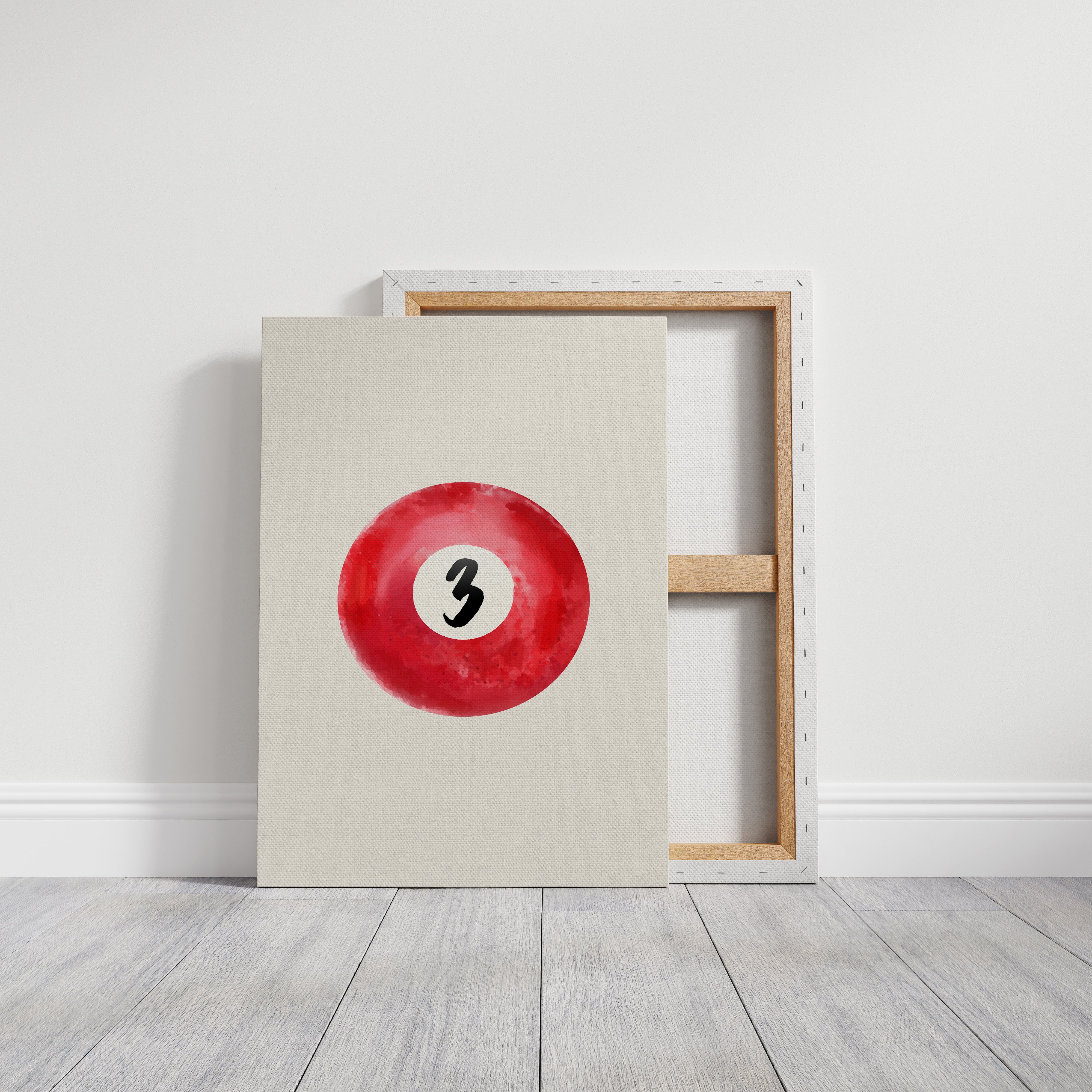 A vibrant red billiard ball radiates with the intensity of a summer sunset, its number three standing bold against pristine white. This piece from our Contemporary collection captures the essence of modern minimalism with a playful twist. The watercolor-like texture creates a mesmerizing depth, as if the pigment is still dancing across the surface, while subtle variations in the crimson tones suggest movement and life within the static form. Perfect for adding a pop of sophisticated color to a game room, den, or modern living space. The piece invites both nostalgia and contemporary charm, creating an unexpected focal point that sparks conversation.