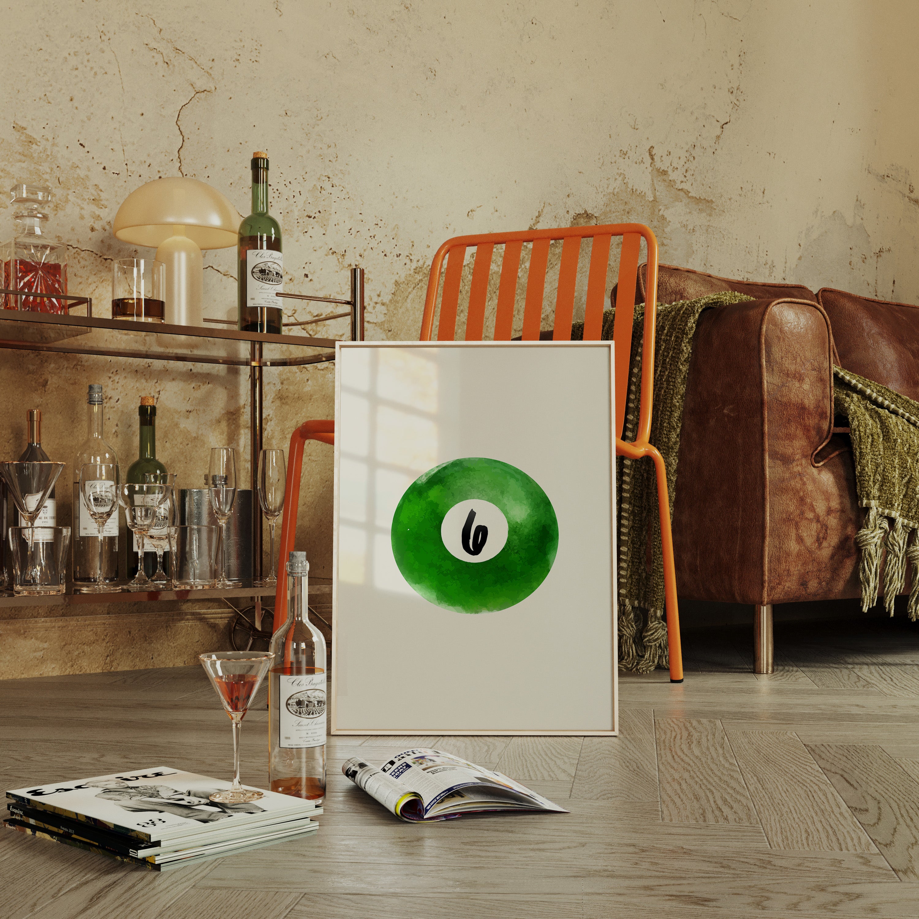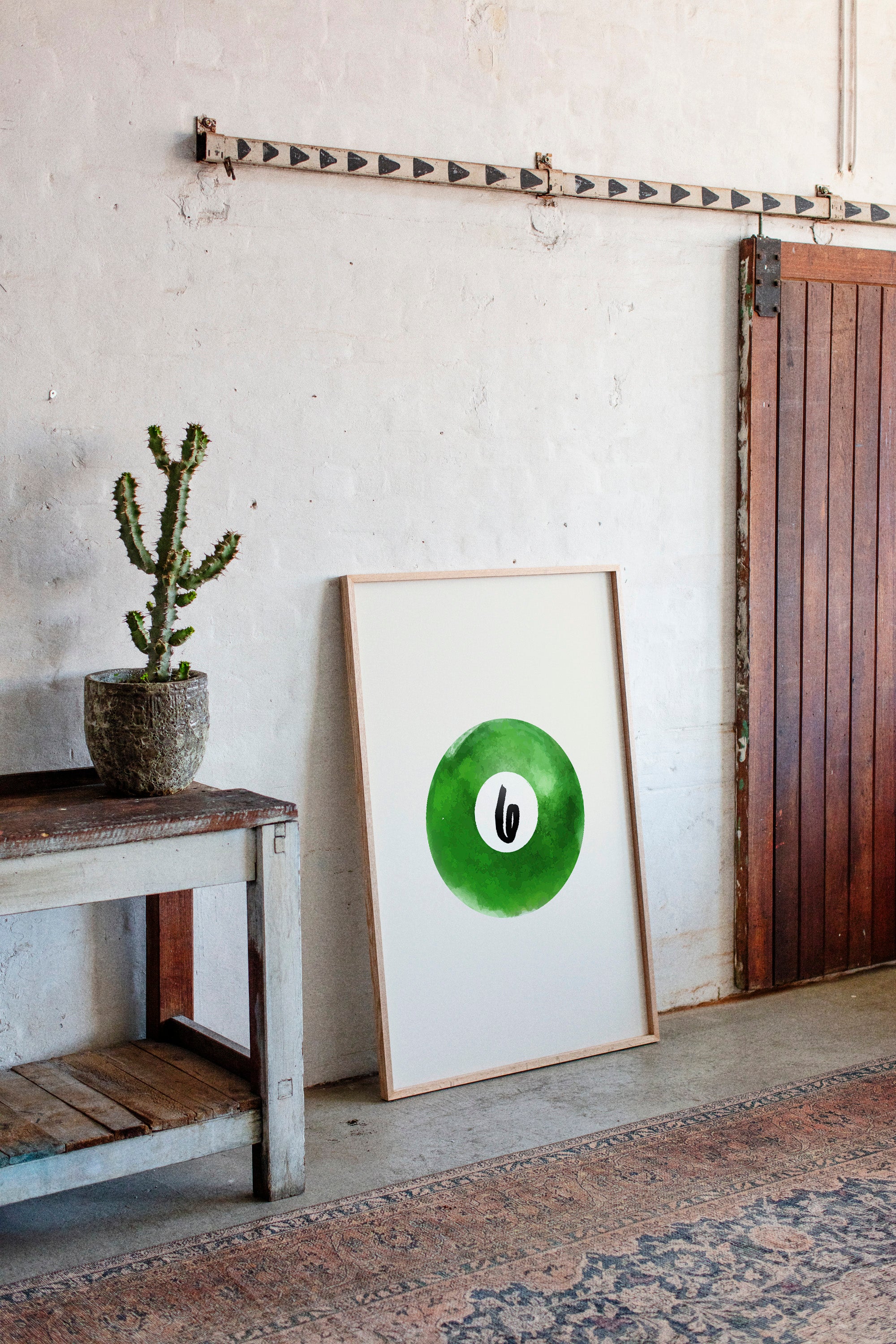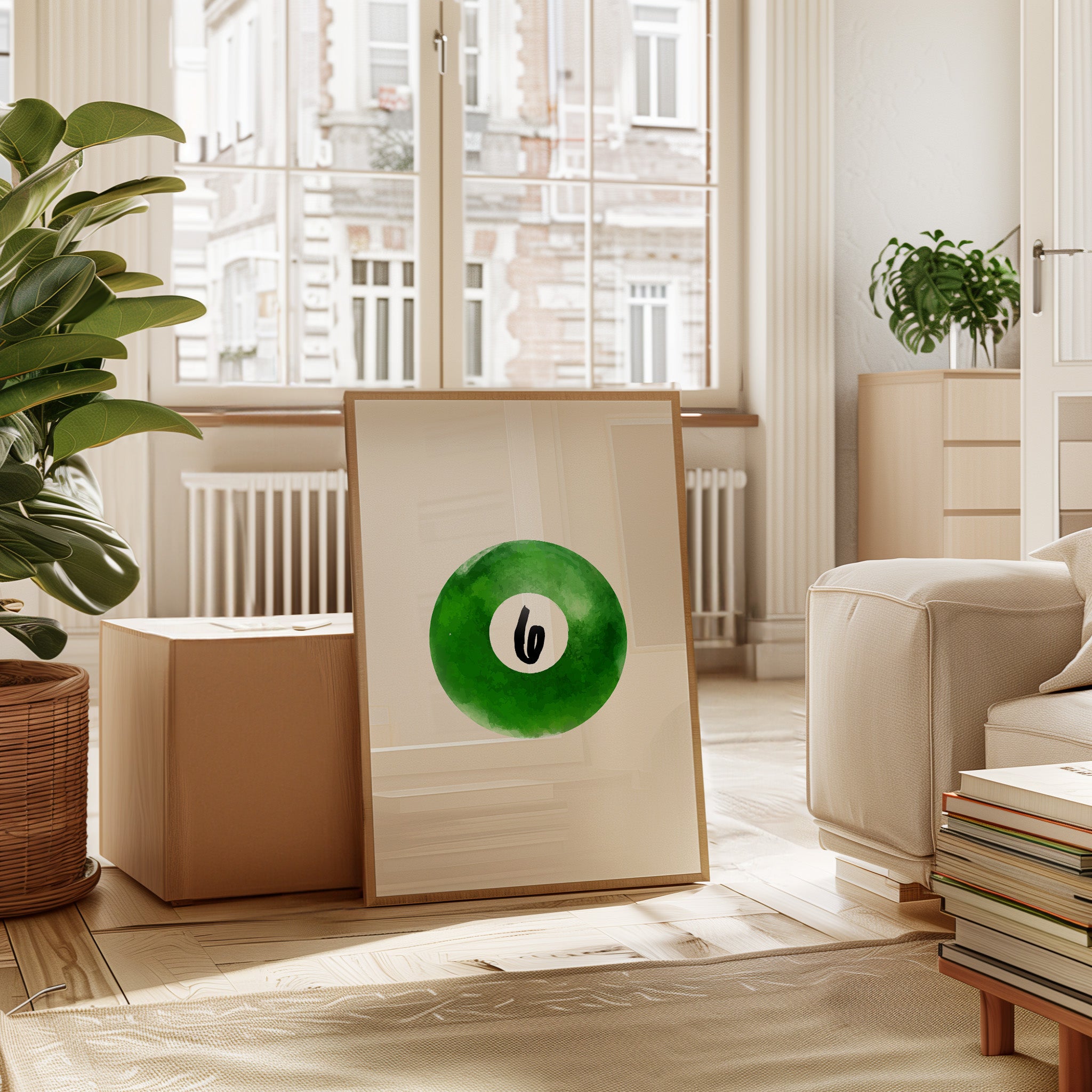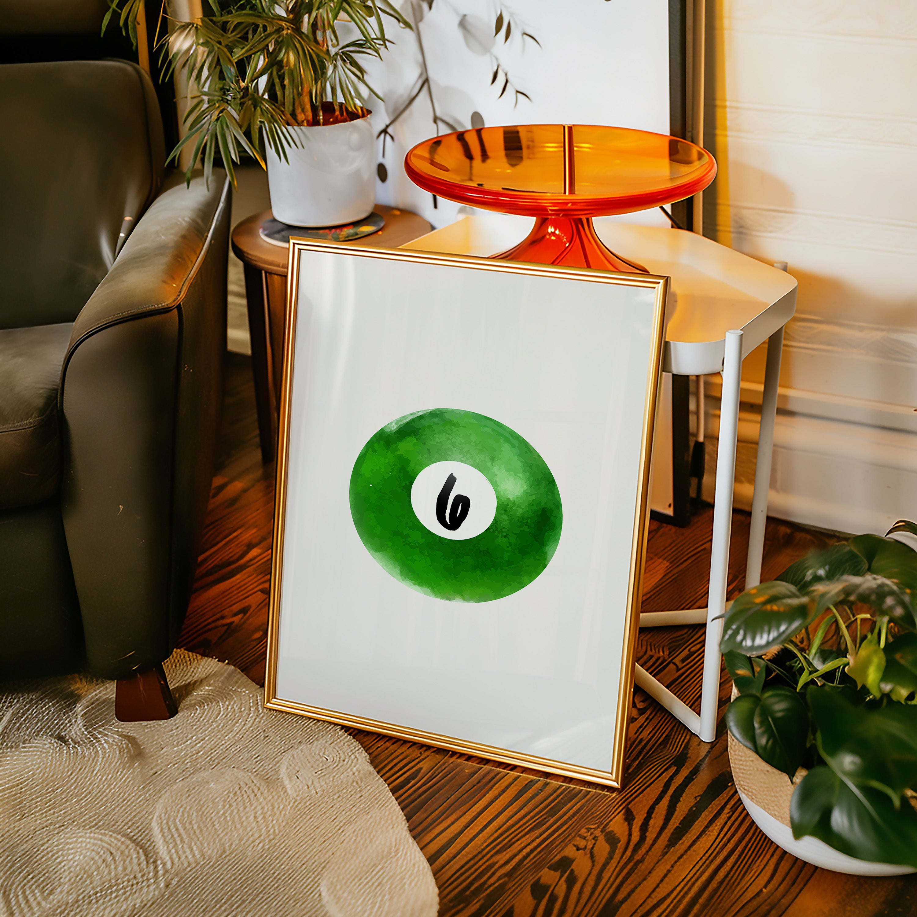 A single billiard ball hovers in pristine white space, its emerald surface catching invisible light like morning dew on grass. This piece exemplifies the Contemporary collection's mastery of minimalist sport aesthetics. The deep forest green watercolor effect creates a mesmerizing depth, while the crisp number six stands in bold contrast, suggesting both playfulness and precision. The composition speaks to moments of perfect alignment, when sport meets artistry. Perfect for a game room, modern office, or any space seeking to blend recreational spirit with refined design. The piece invites both nostalgia and contemplation, bridging the gap between play and sophistication.