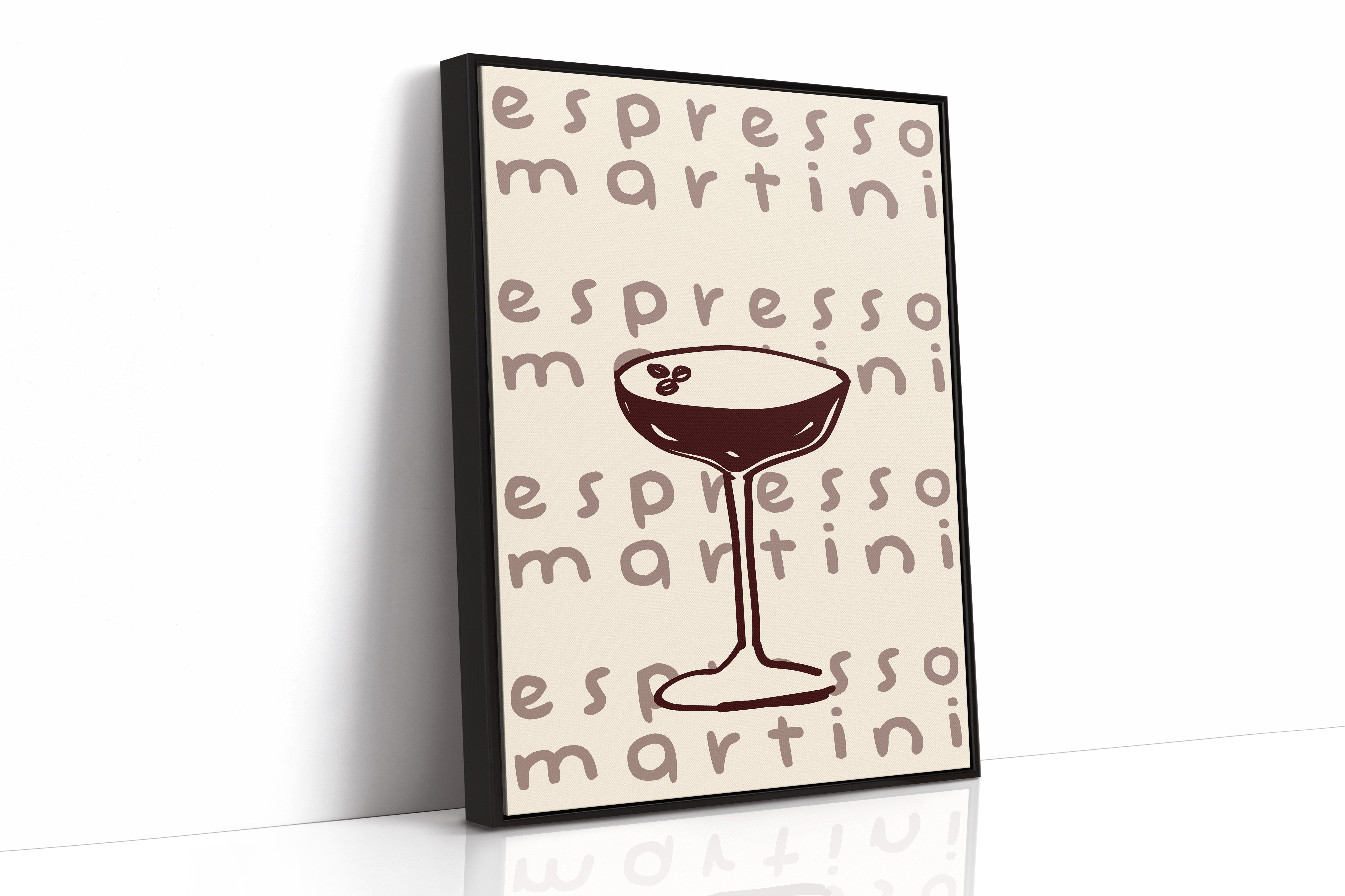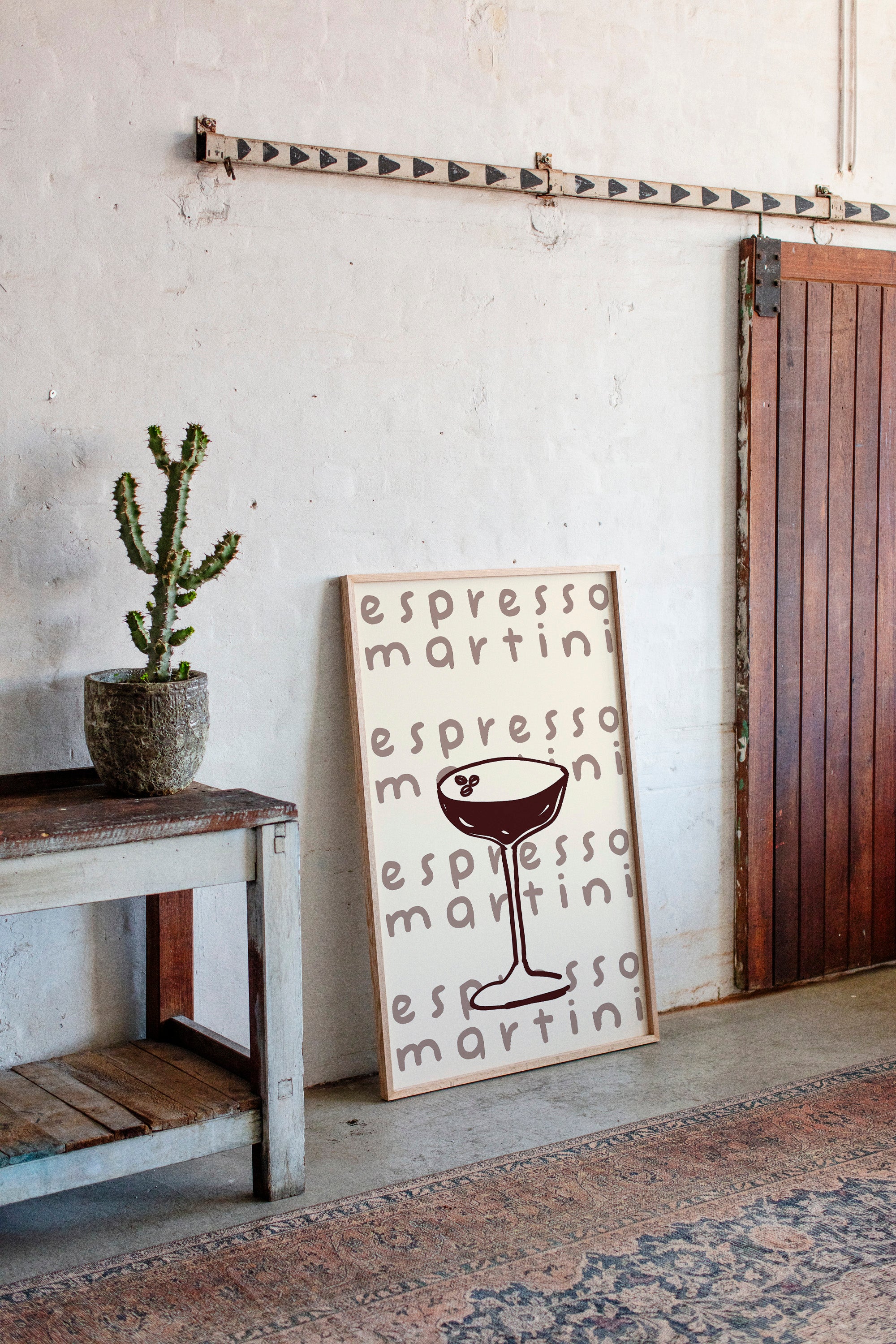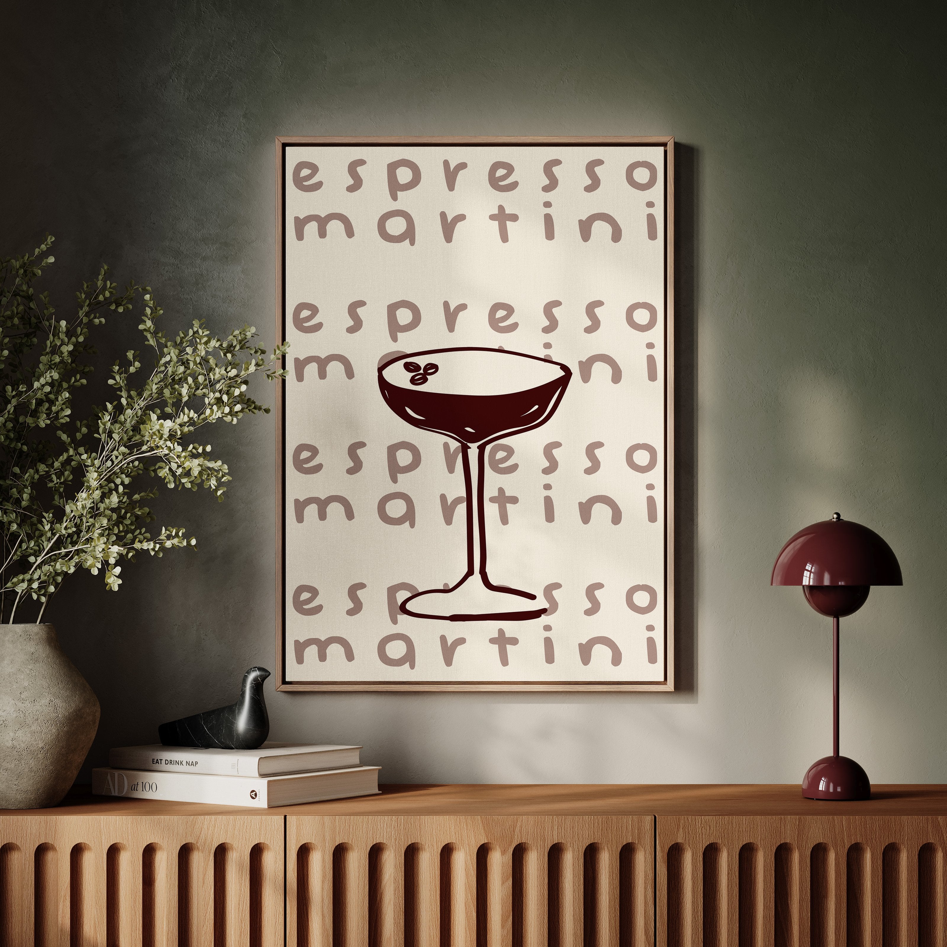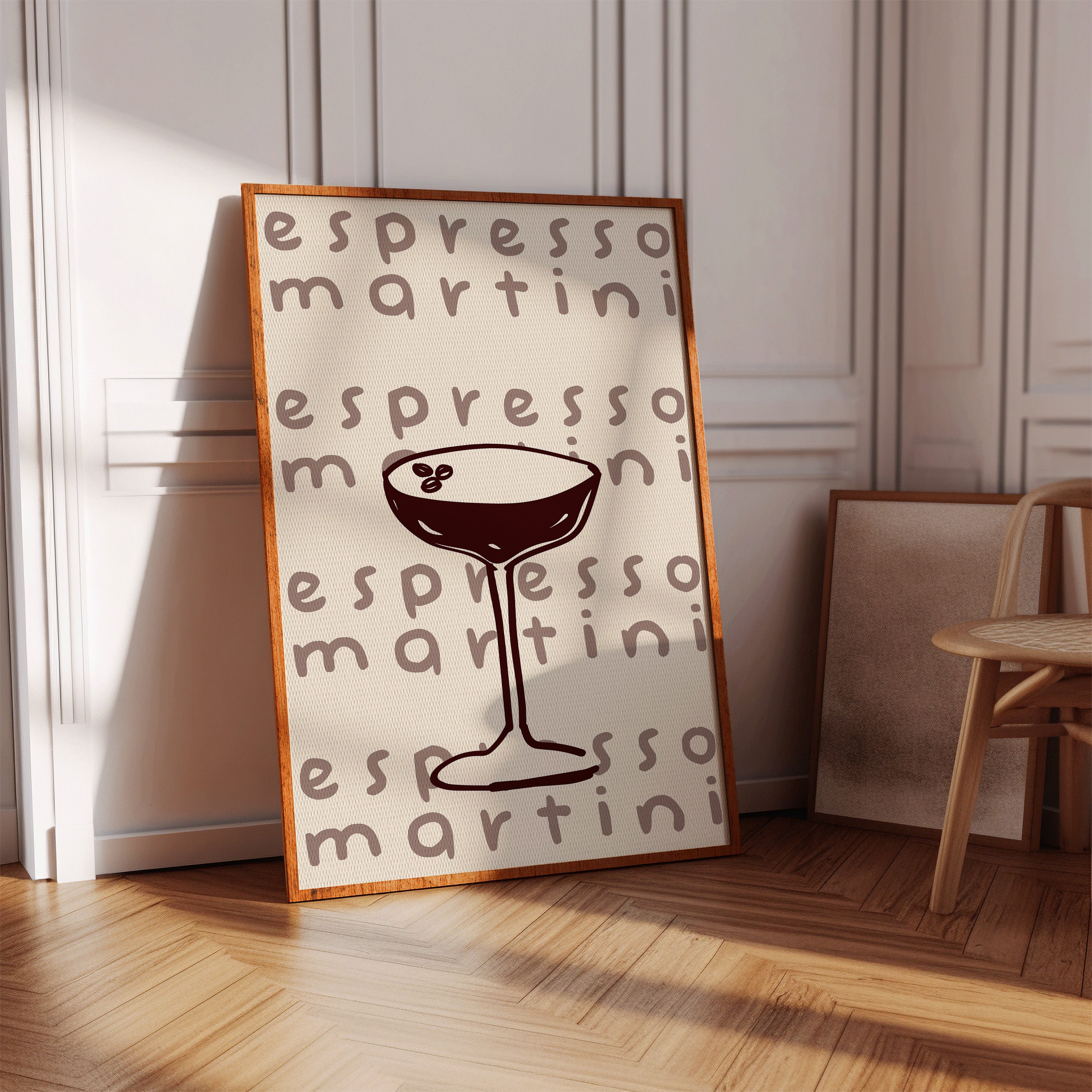 The elegant simplicity of coffee meets cocktail culture in this playful fusion of caffeine and sophistication. Part of our Contemporary collection, this piece celebrates the artful intersection of day and night rituals. The clean lines of the martini glass cradle floating espresso beans against a backdrop of repeating text, creating a rhythmic pattern that speaks to both the buzz of a cafe and the hum of an evening lounge. Warm mocha tones and creamy neutrals blend in perfect harmony, suggesting both comfort and refinement. This piece brings character to a modern kitchen, coffee nook, or home bar area where it can inspire both morning meditation and evening conversation.