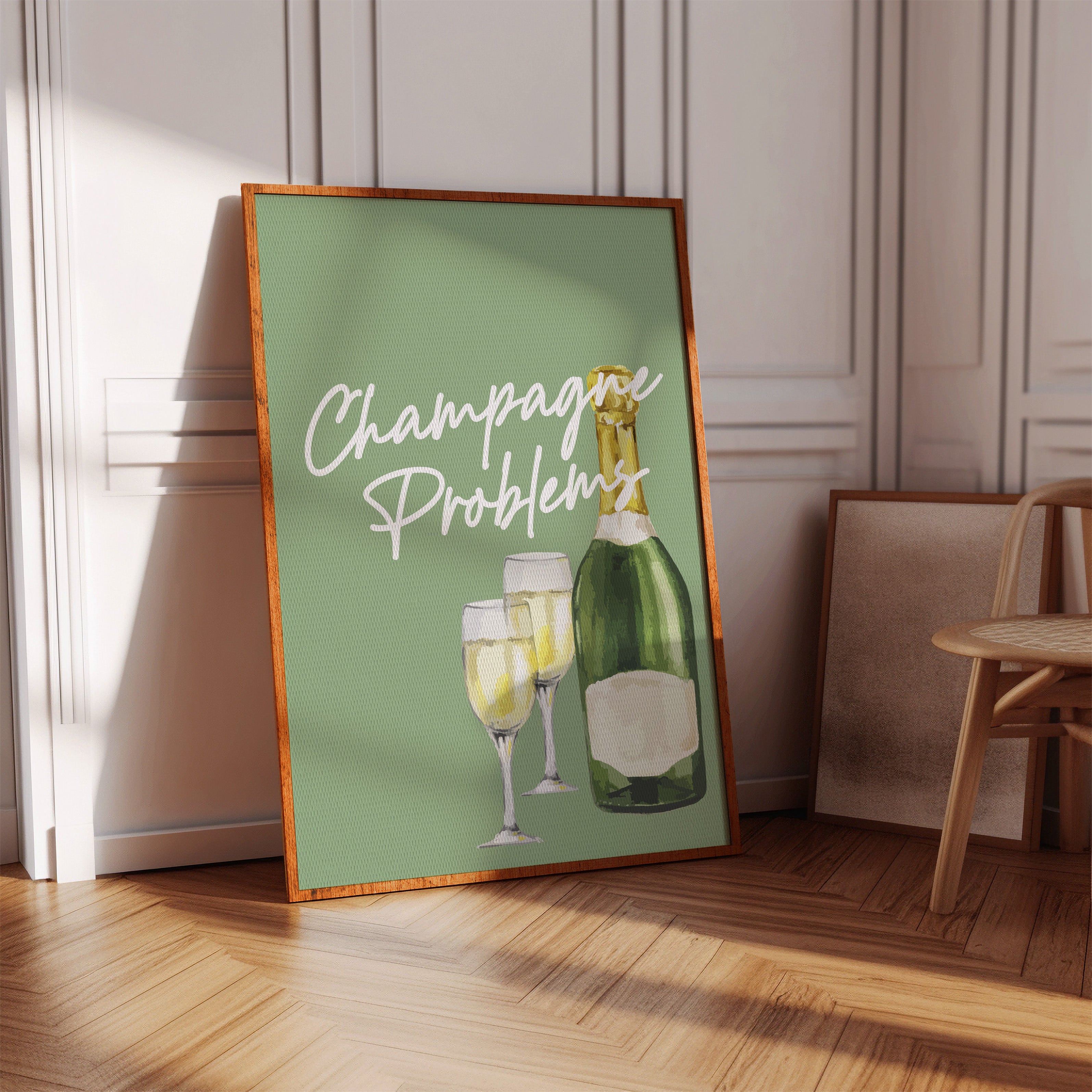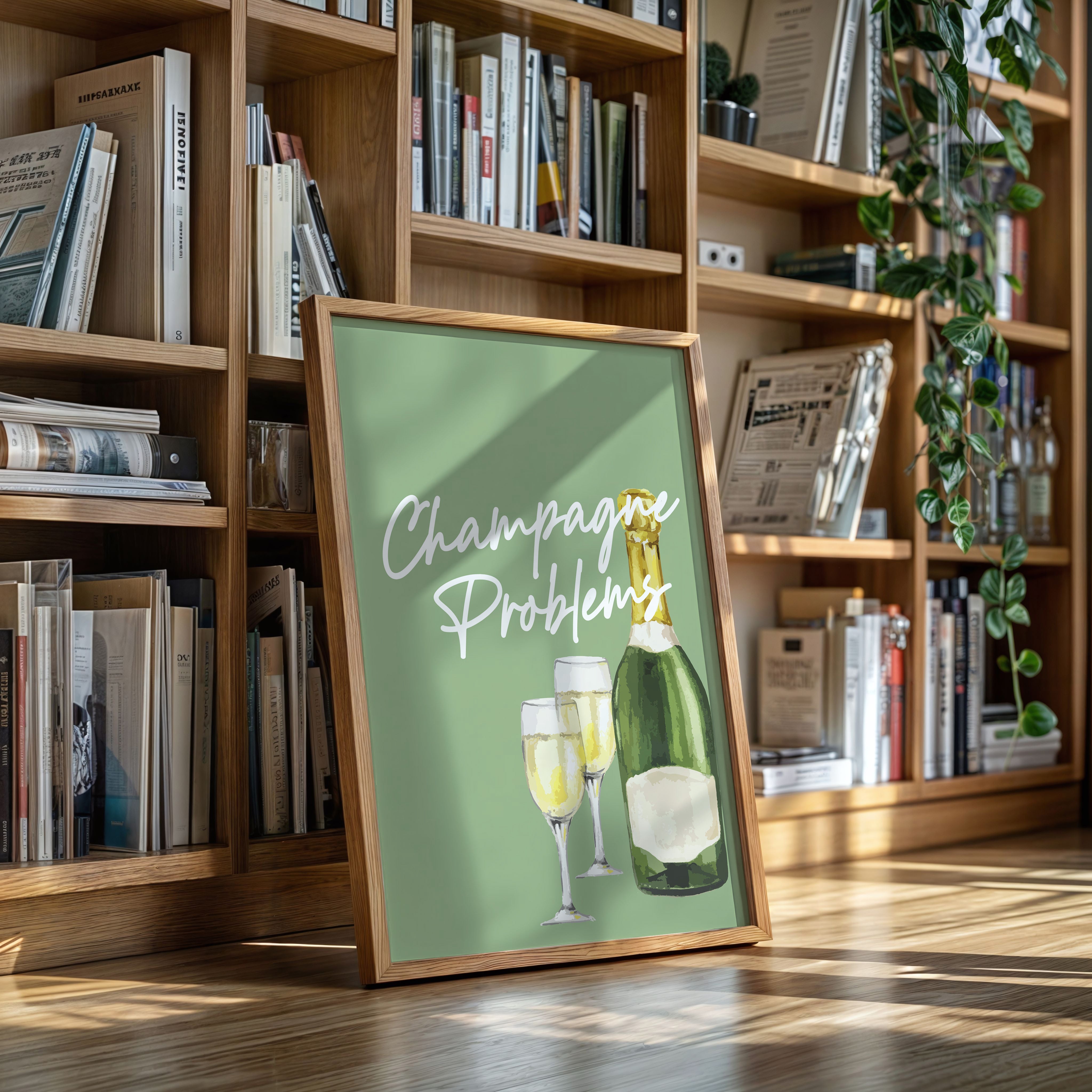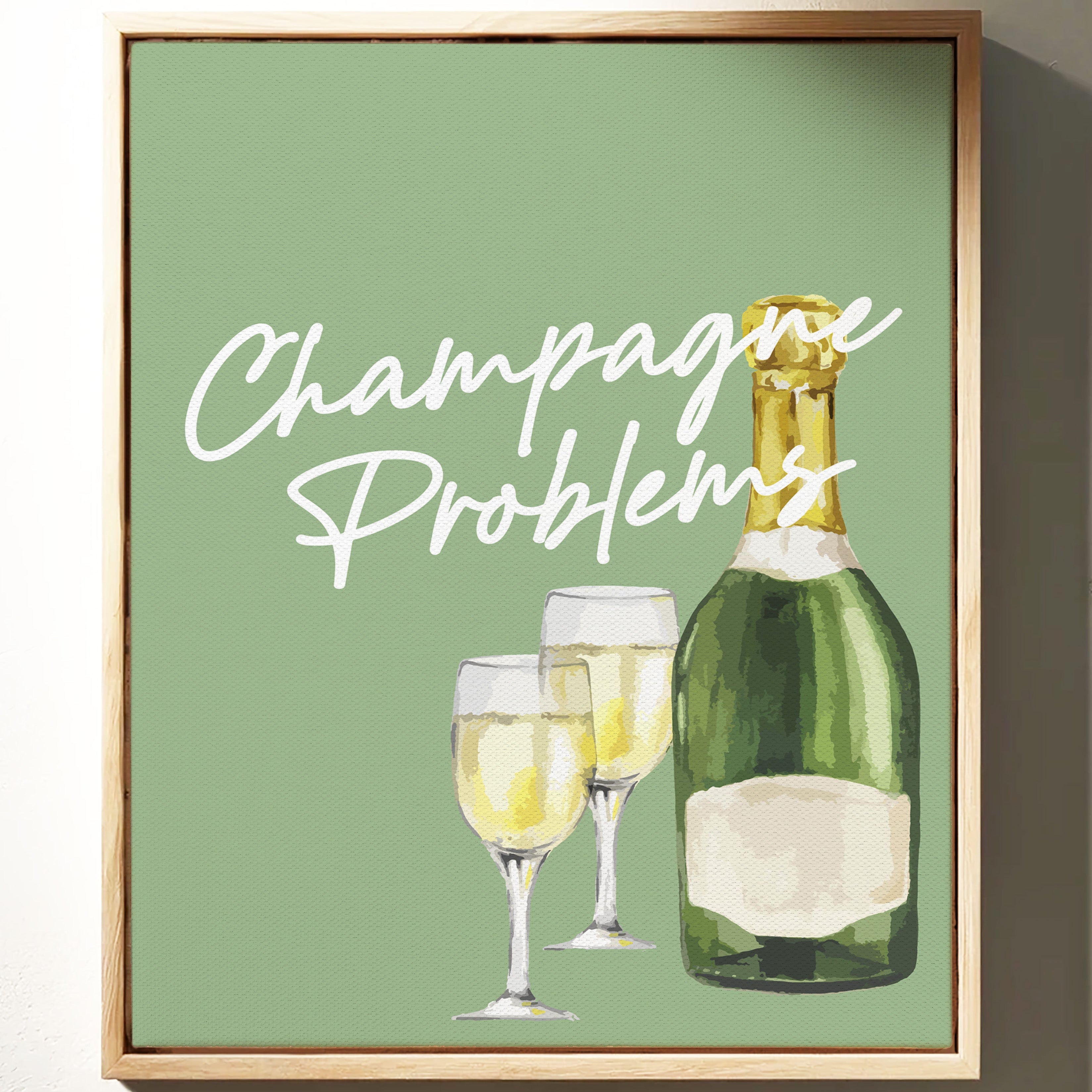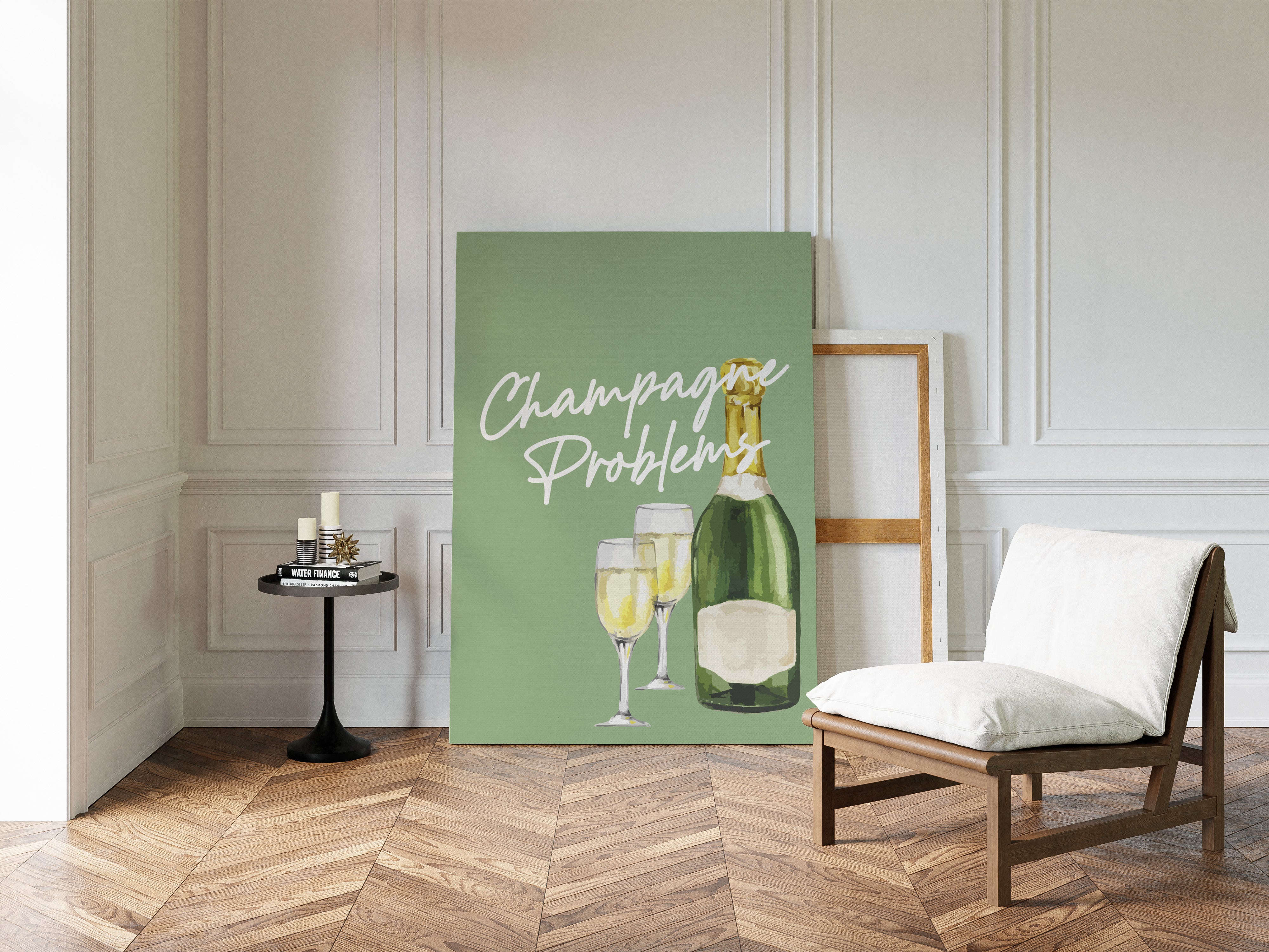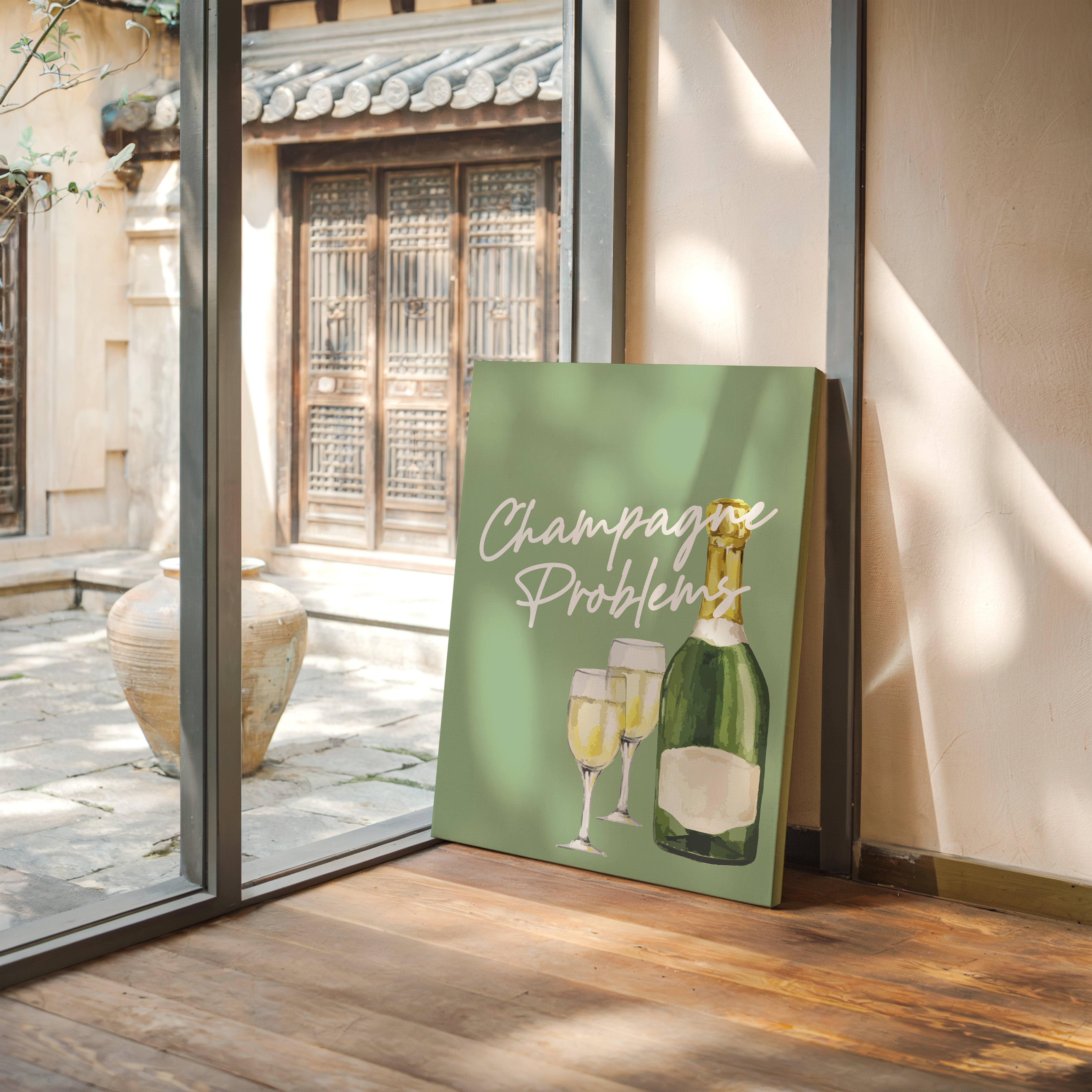 Golden effervescence rises against a backdrop of sage serenity, promising celebrations yet to come. This contemporary piece captures the playful sophistication of modern entertaining. The contrast between the deep emerald bottle and delicate flutes creates a story of anticipation and joy, while the minimalist sage background adds an unexpected touch of calm to this celebratory scene. Each bubble seems to carry its own tiny toast, ascending through crystal stems with quiet determination. Perfect for adding a dash of wit and sophistication to a dining room, home bar, or kitchen space where good times flow freely. The piece invites viewers to pause and appreciate life's effervescent moments.