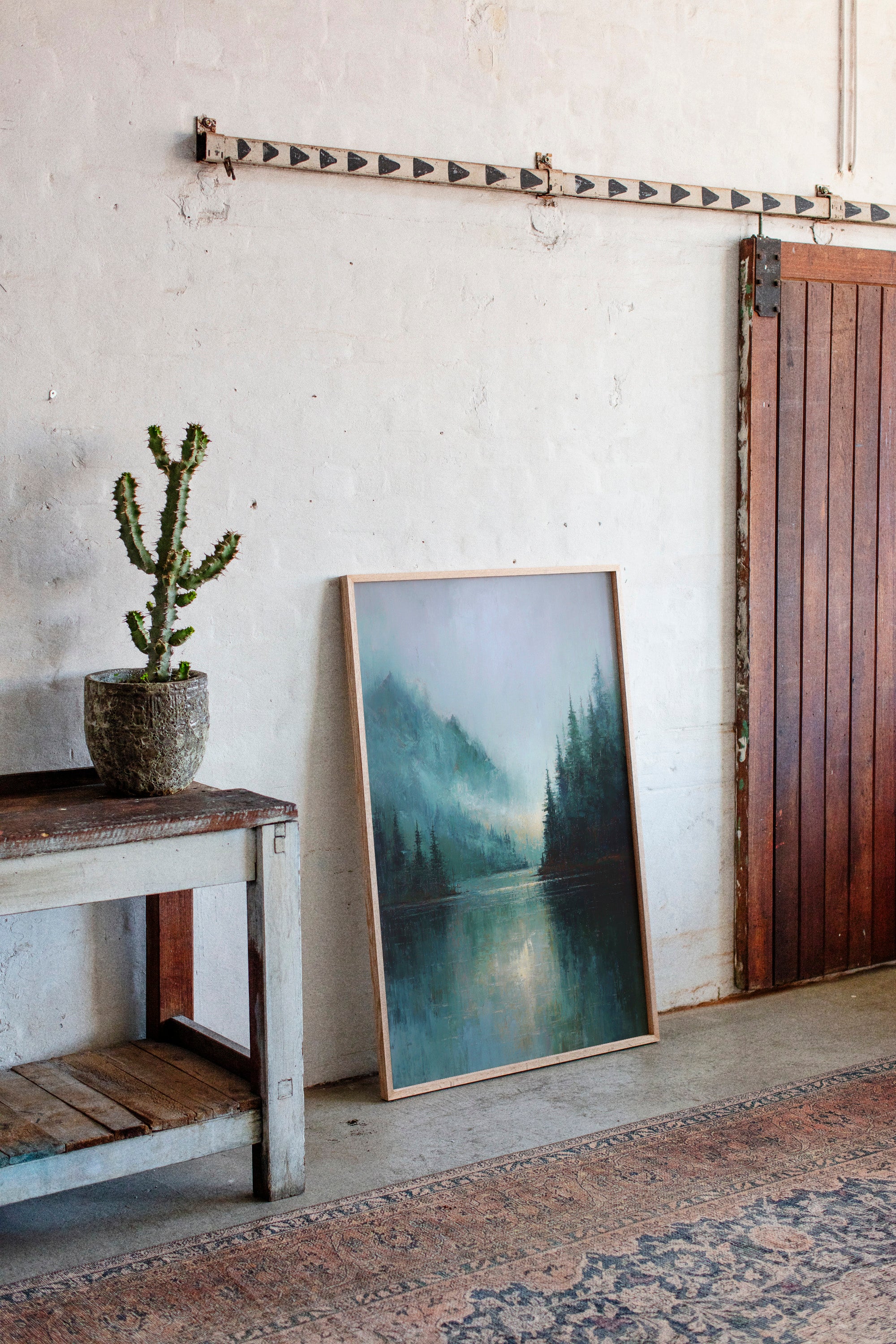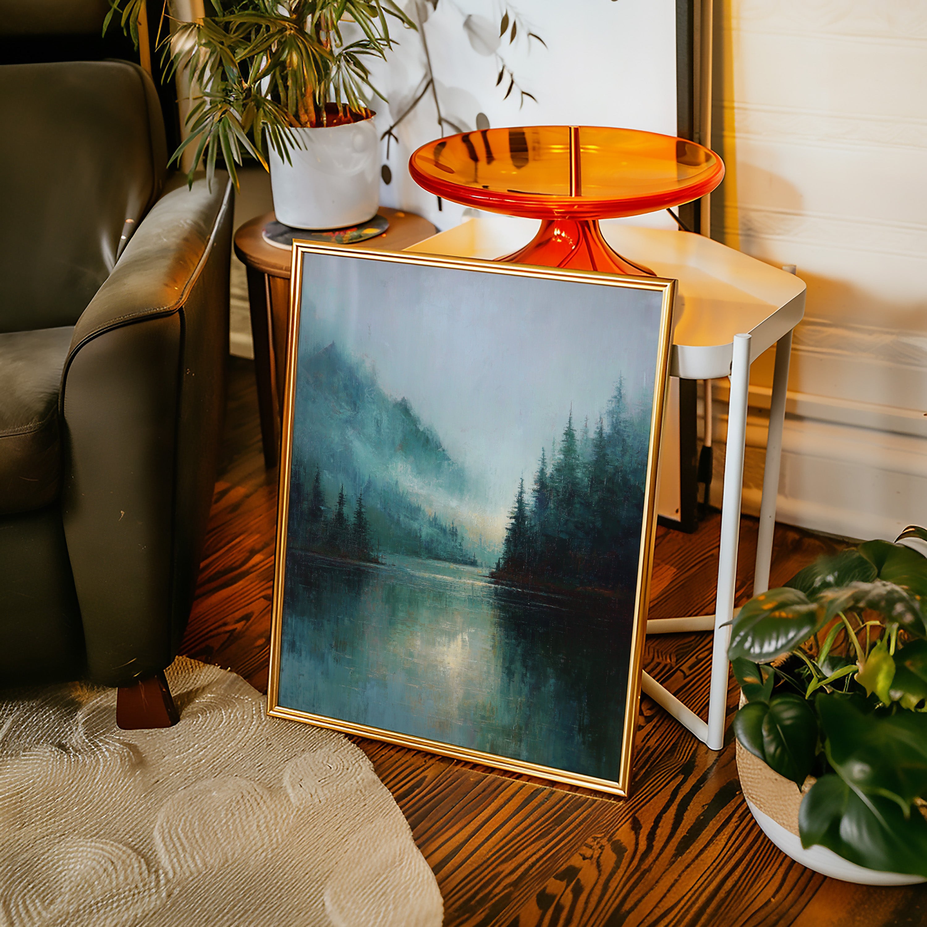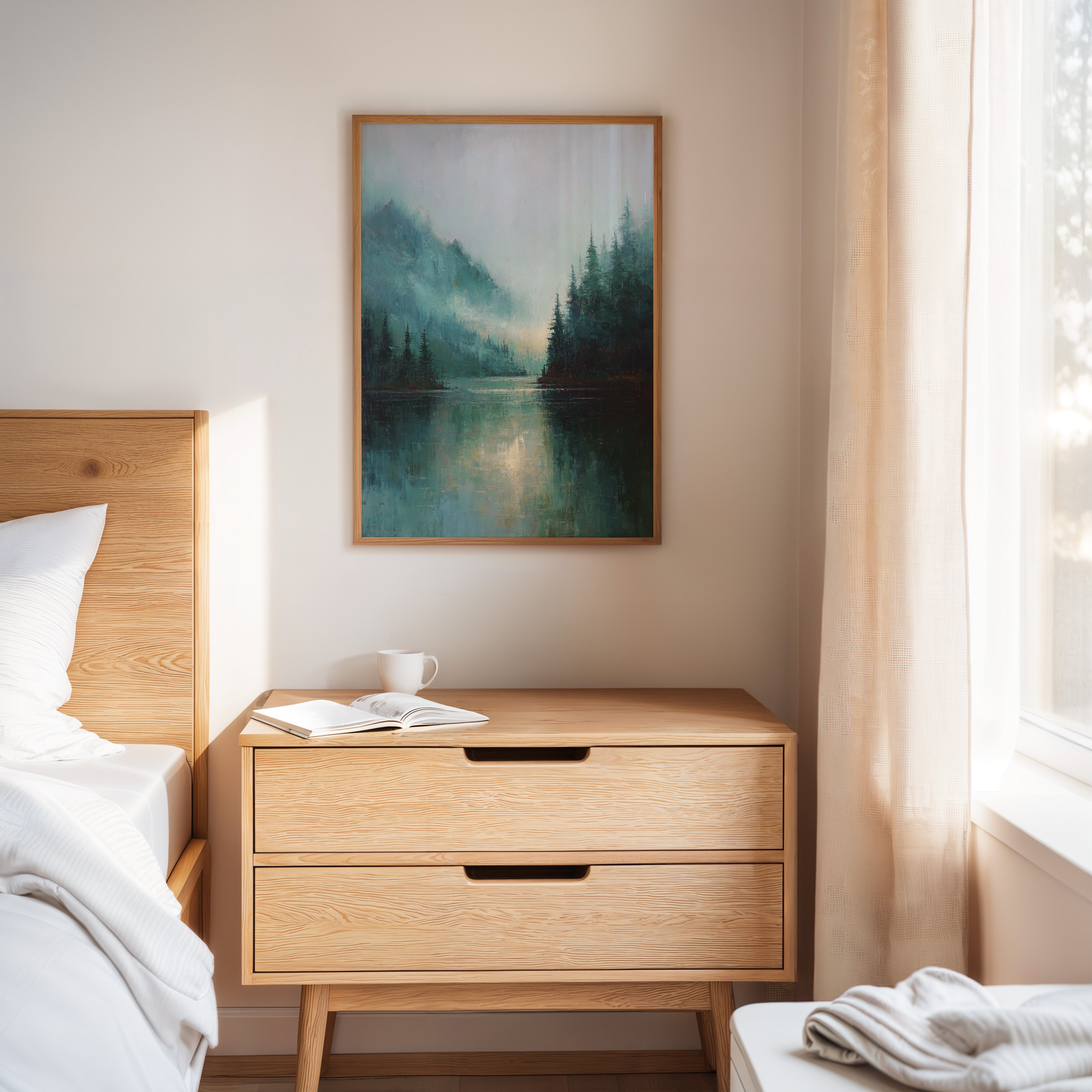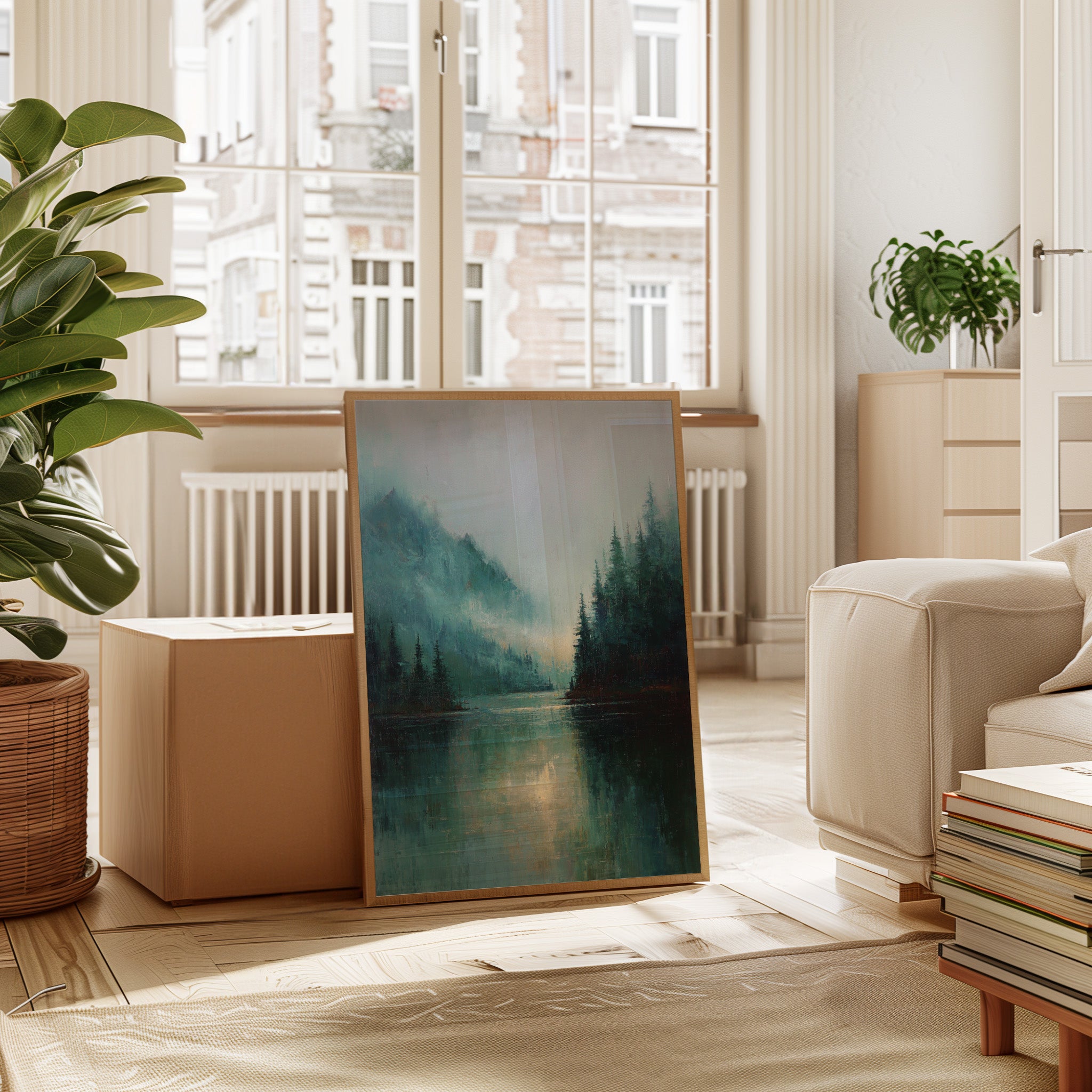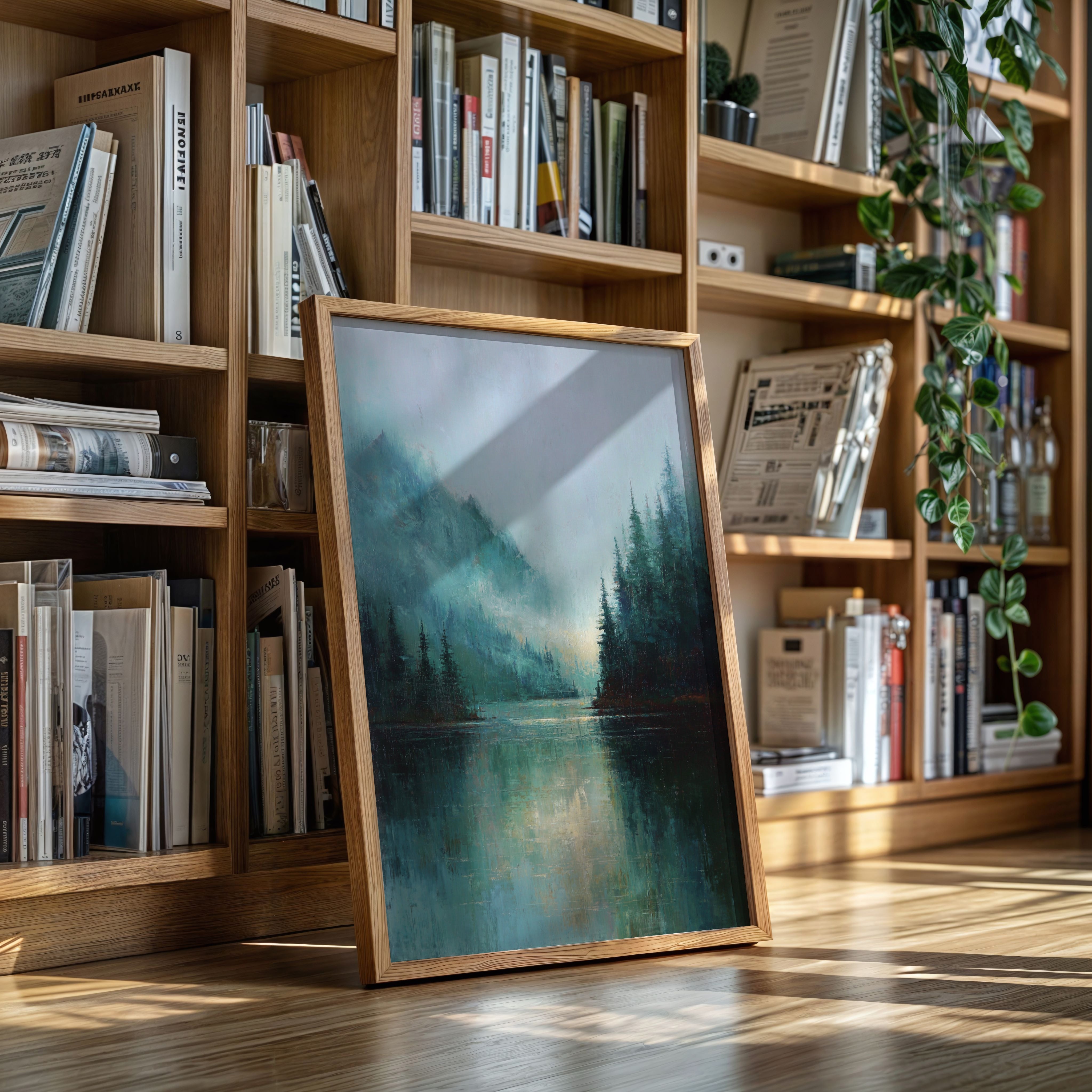 In the hushed embrace of dawn, a tranquil lake reflects the soft caress of mist and the gentle rise of the day. This piece captures the essence of the Artisanal collection, where nature's beauty is rendered with exquisite detail. The interplay of muted greens and blues conveys a sense of serenity, while the textured surfaces invite you to explore the hidden stories within the landscape. Perfect for a calming space, this artwork transforms any room into a sanctuary of peace and reflection.