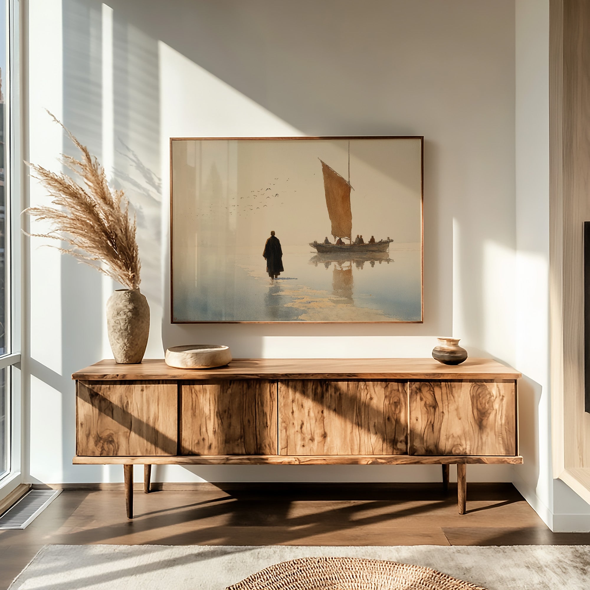 Your artwork should take up 60-75% of wall space above furniture. For standard sofas, choose 24"x36" or larger. When in doubt, go slightly bigger.