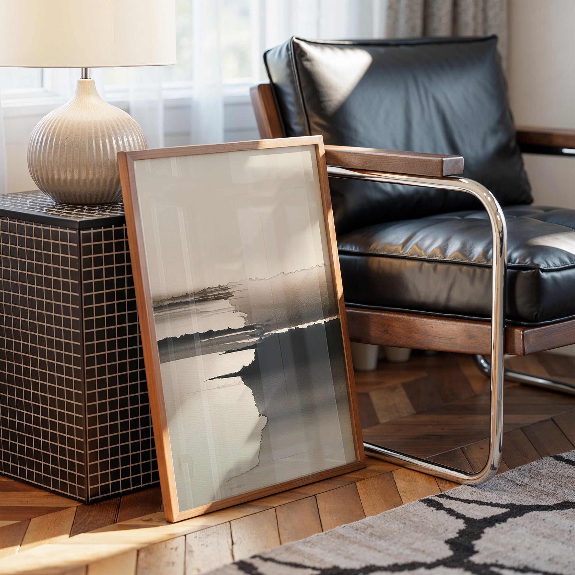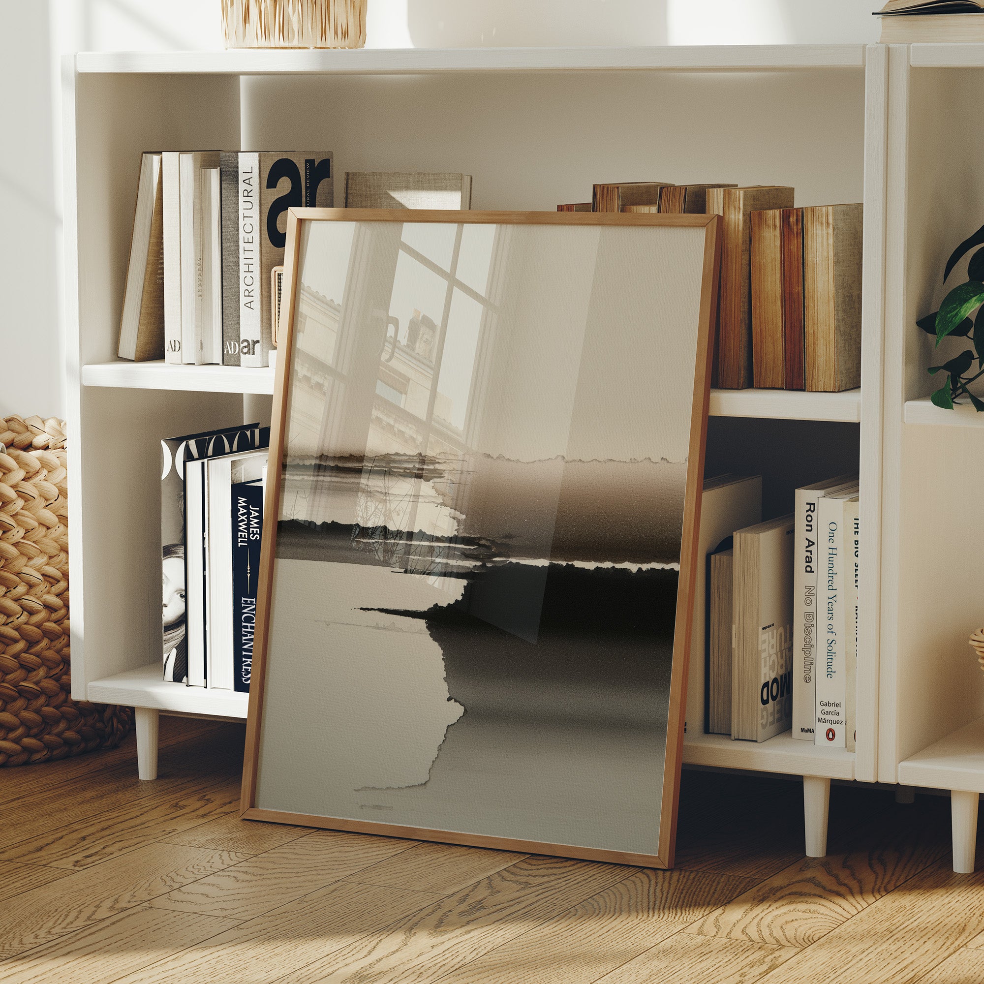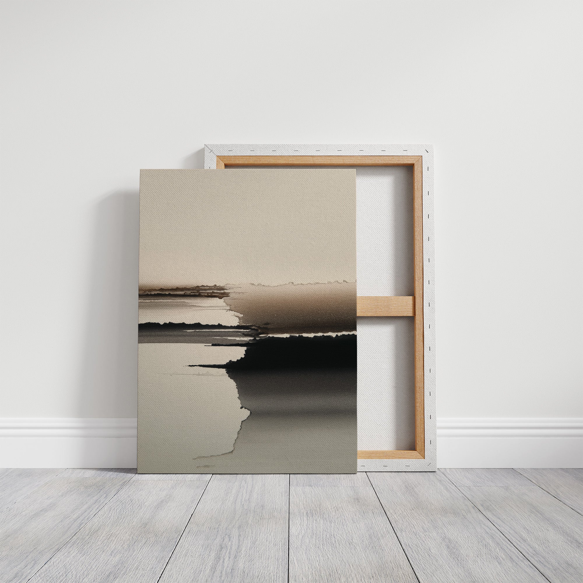 Soft grays blend into deep charcoal tones, creating a peaceful coastal meditation in abstract form. The composition flows like morning fog rolling over silent waters, with gentle horizontal movements that speak of nature's quiet moments. This contemporary piece balances minimalist design with organic texture, suggesting both movement and stillness in its monochromatic palette. This piece would bring sophisticated serenity to a modern living room or create a calming focal point in a home office, especially when paired with natural materials and clean lines.