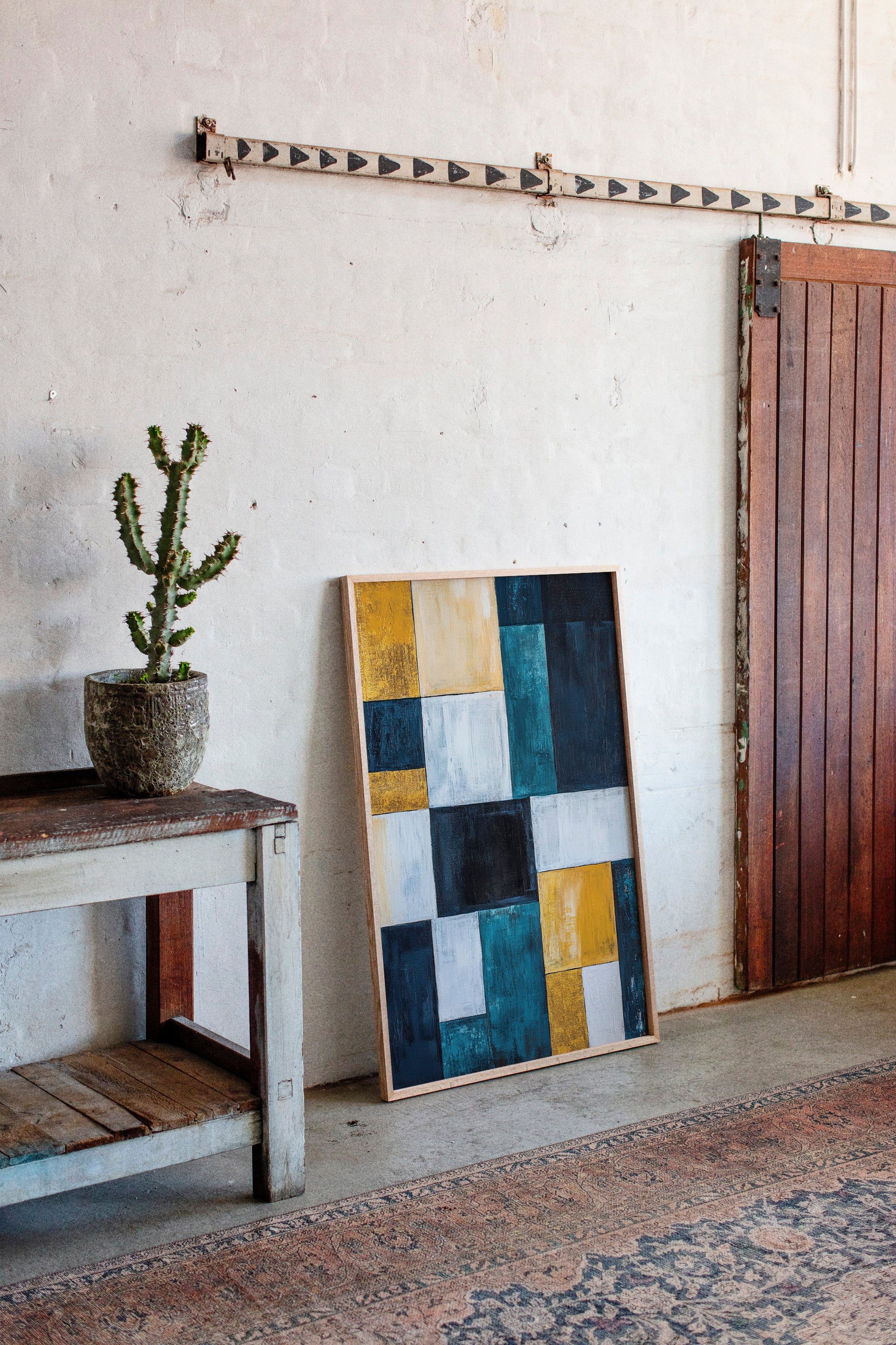 Modern Yellow and Blue Abstract Geometric Canvas | Gallery Canvas / 9" x 11" | $65.00