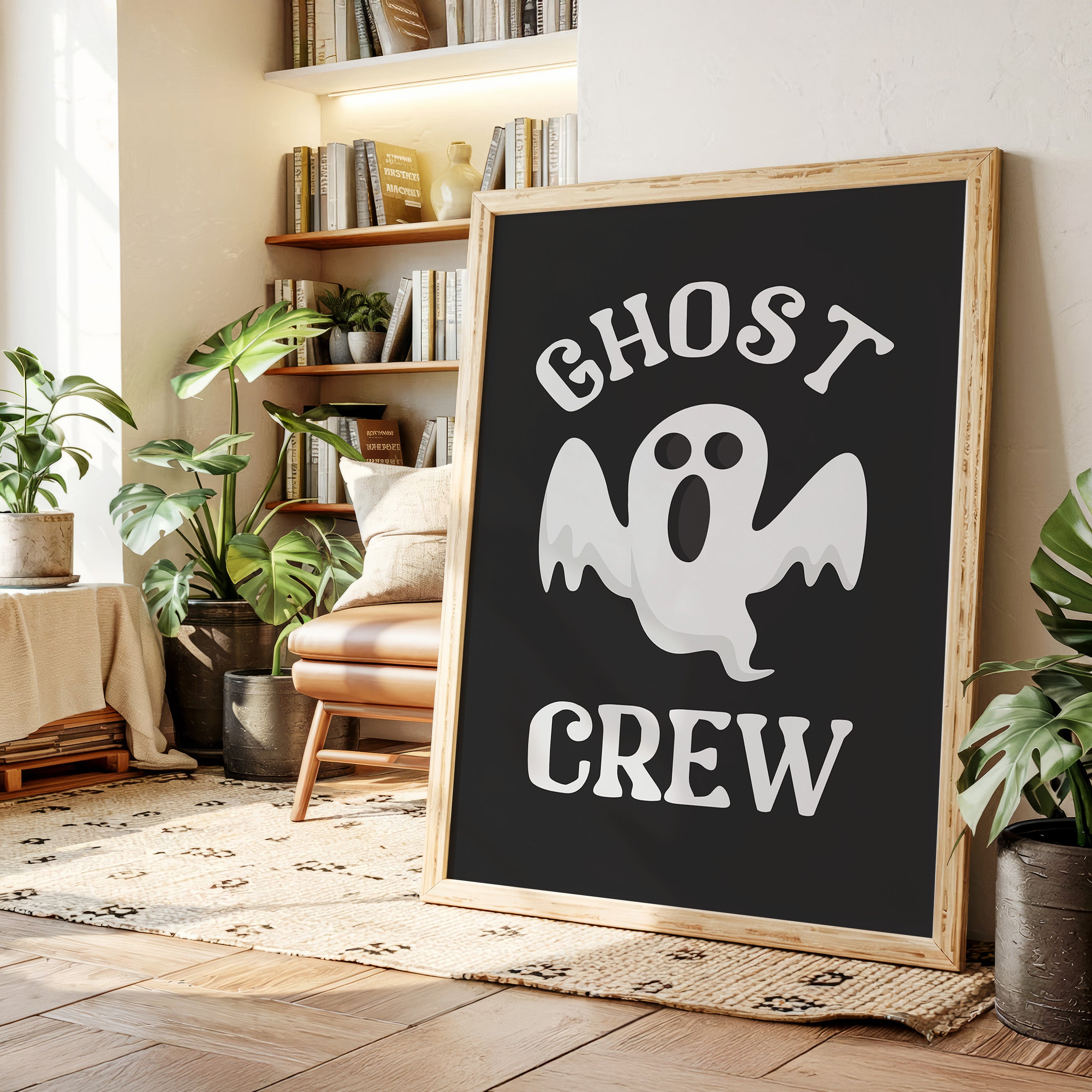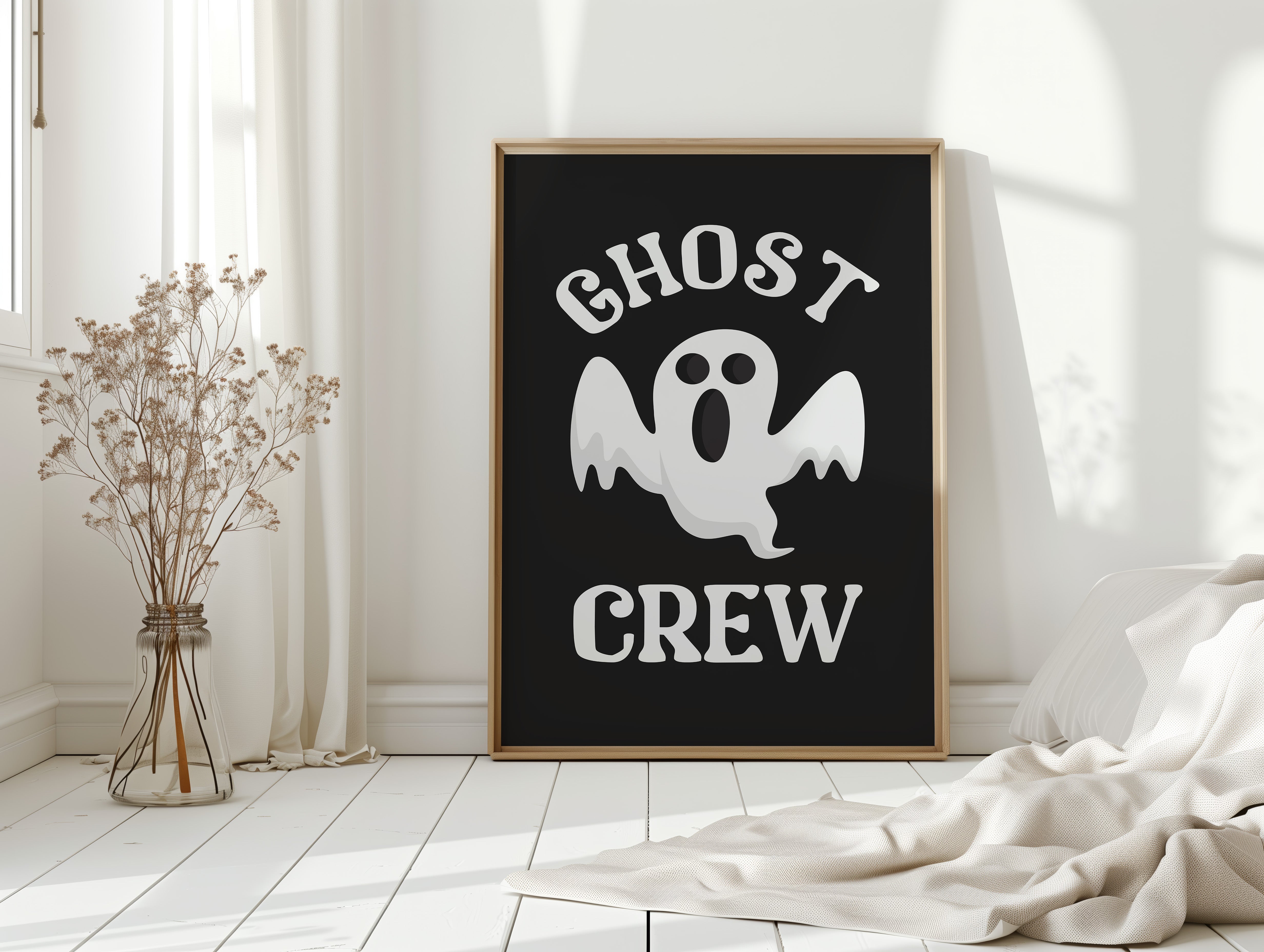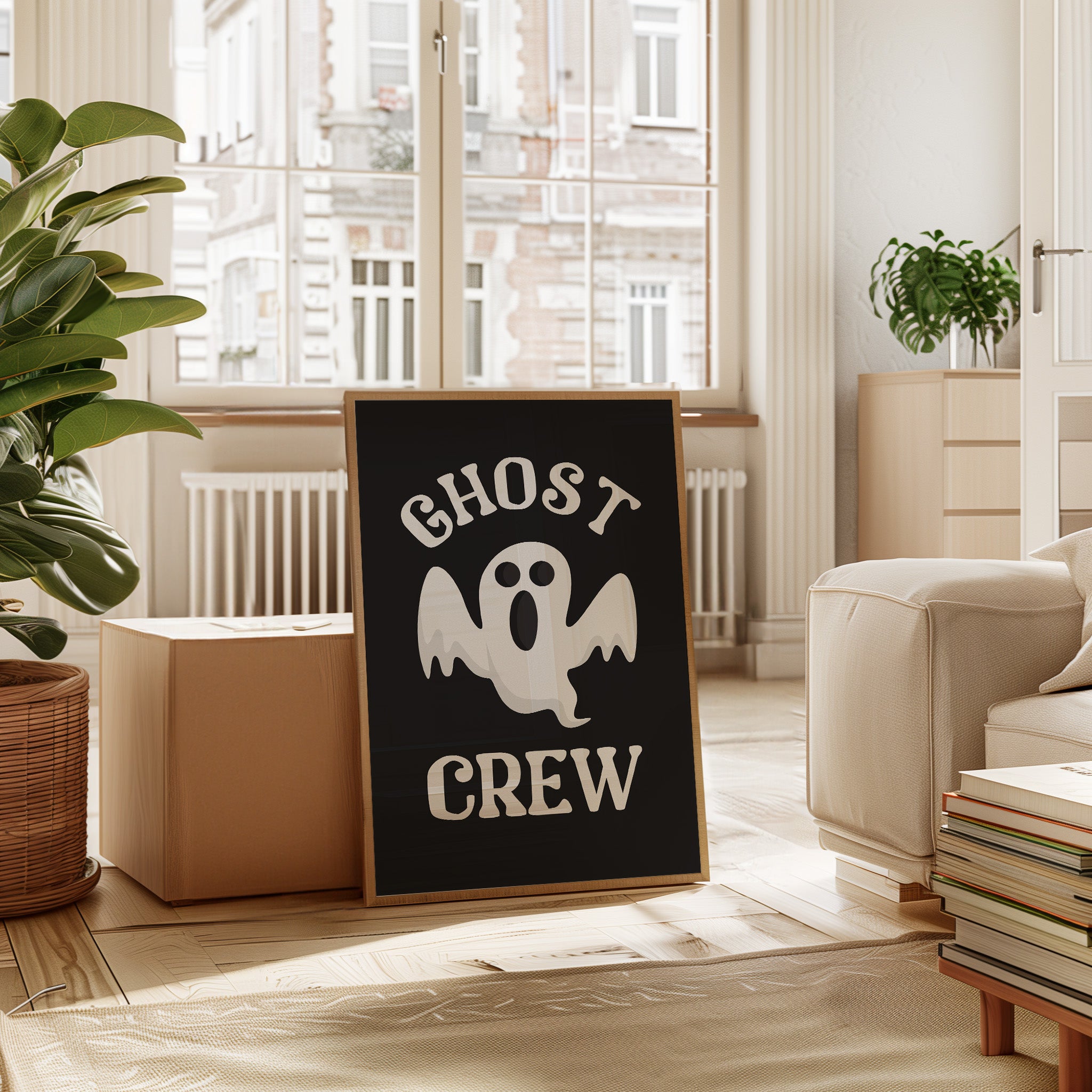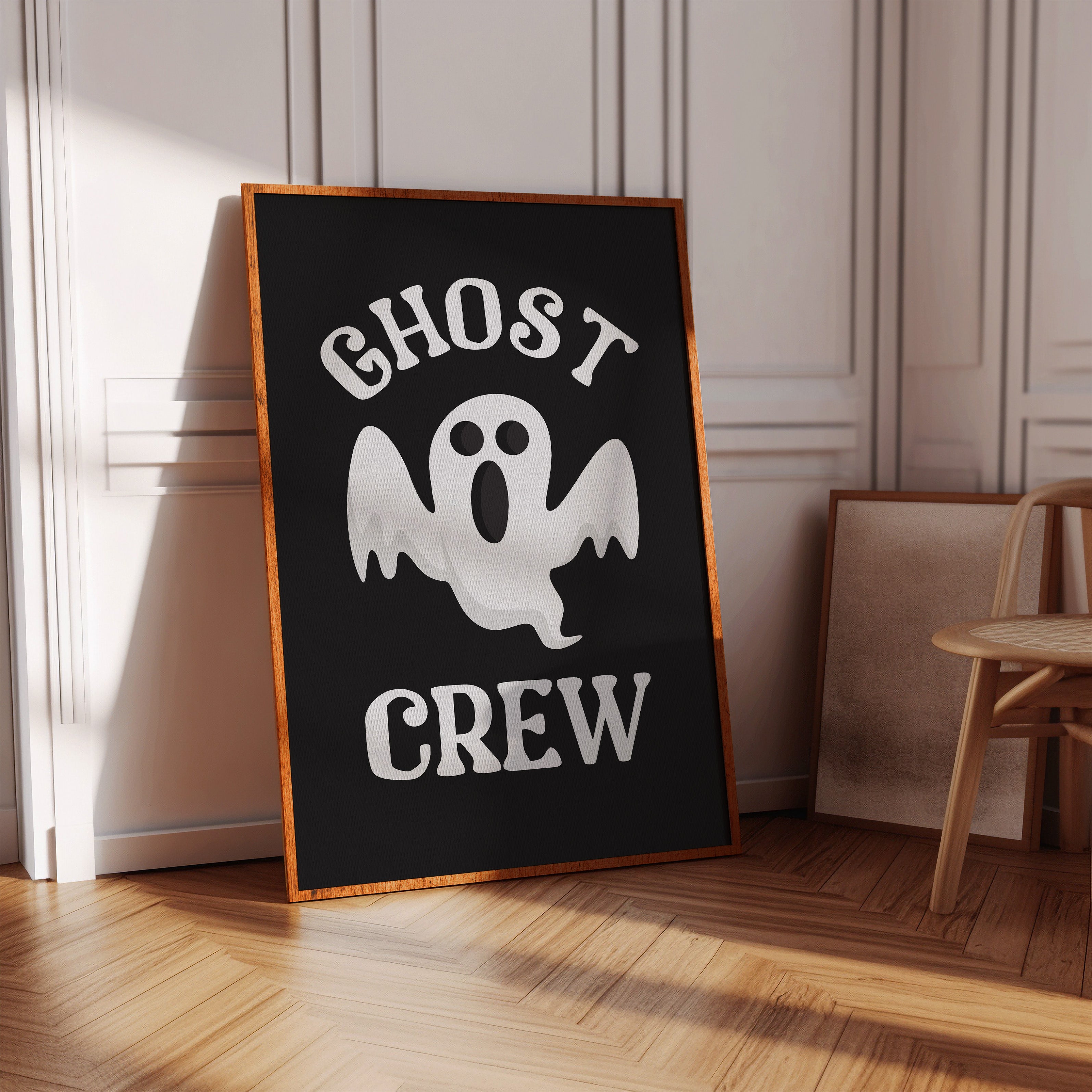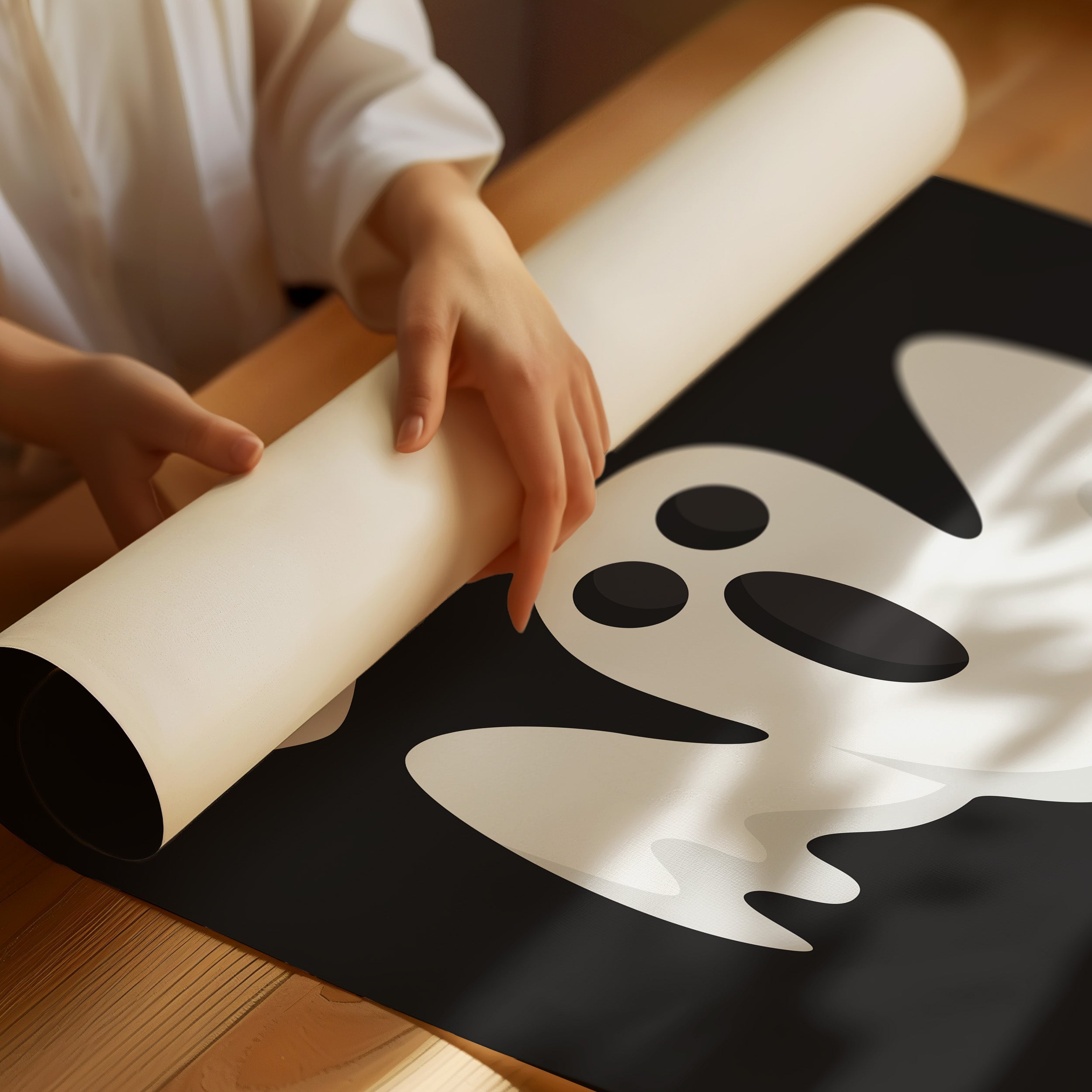 A charming ghost floats with personality and playful energy against a deep black backdrop, its expressive features capturing the perfect balance of spooky and sweet. This piece from our Contemporary collection brings modern whimsy to classic Halloween imagery. The bold typography and minimalist ghost design create a striking contrast, while the clean lines and simple color palette speak to current design trends. This spirited artwork adds character to any space, bringing a touch of year-round charm to a home office, game room, or creative space. The playful spirit of this piece invites smiles and sparks conversation.
