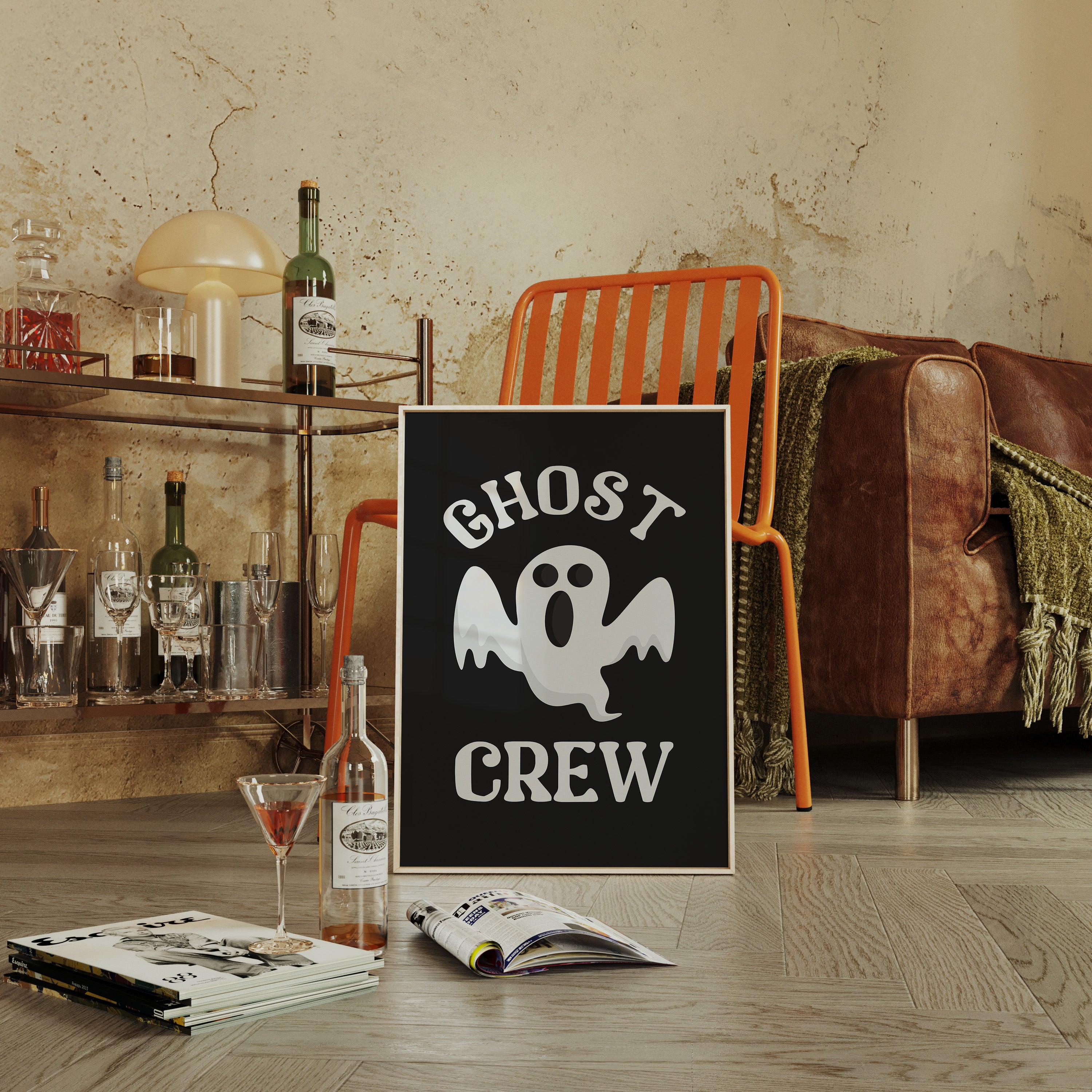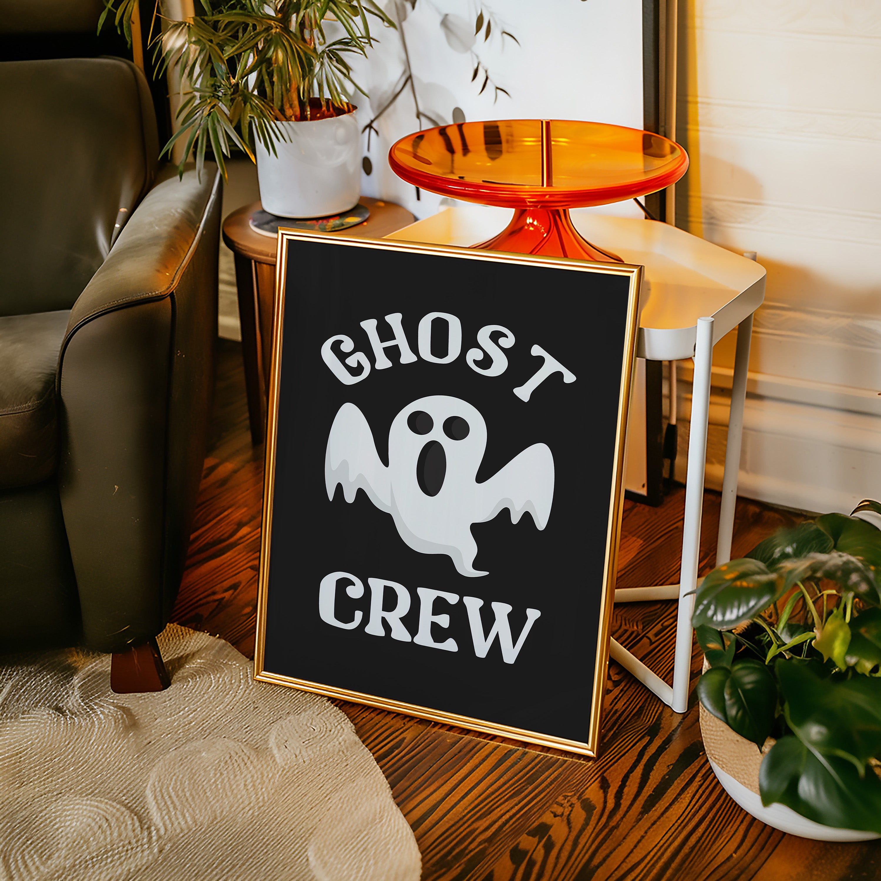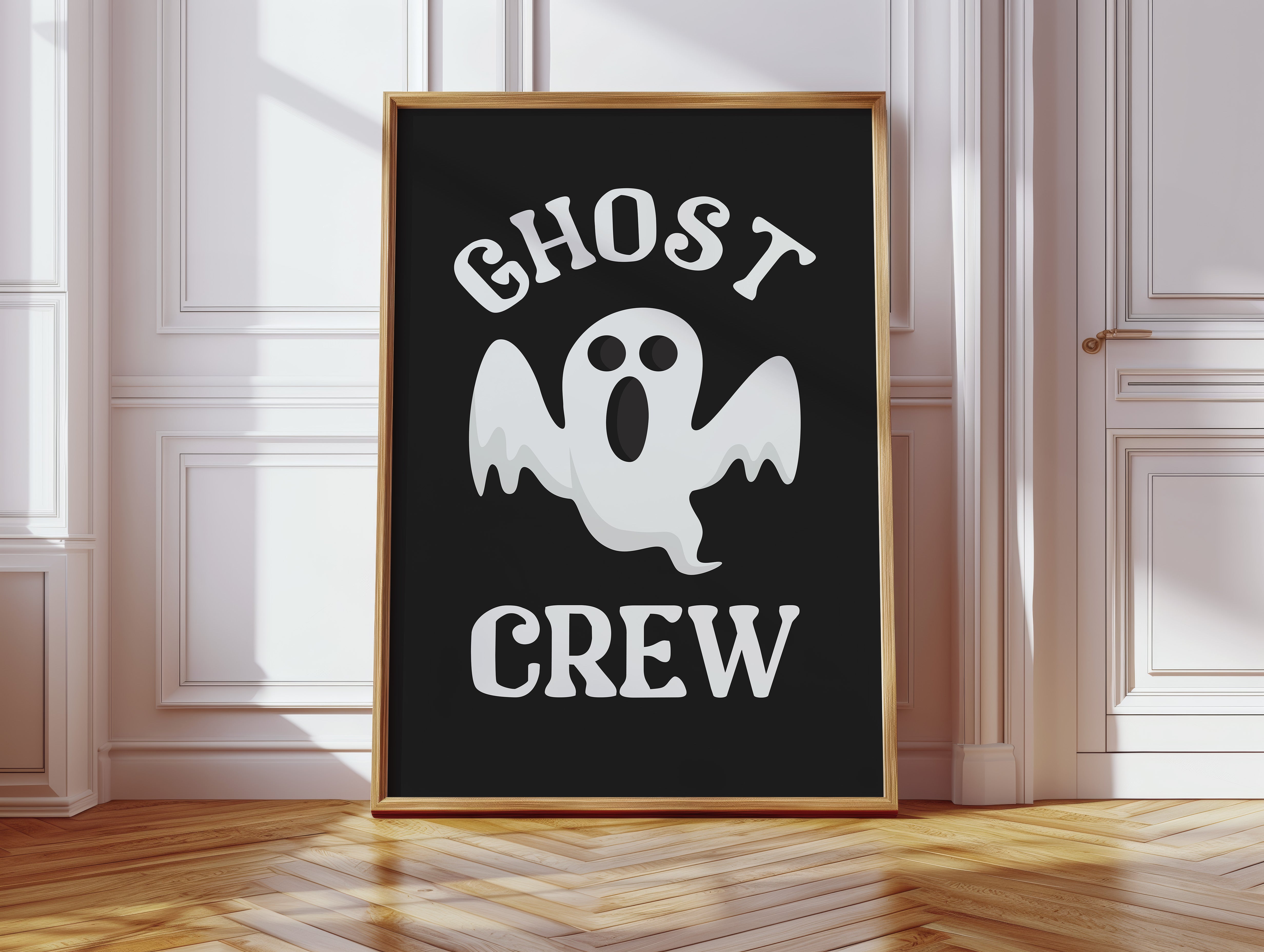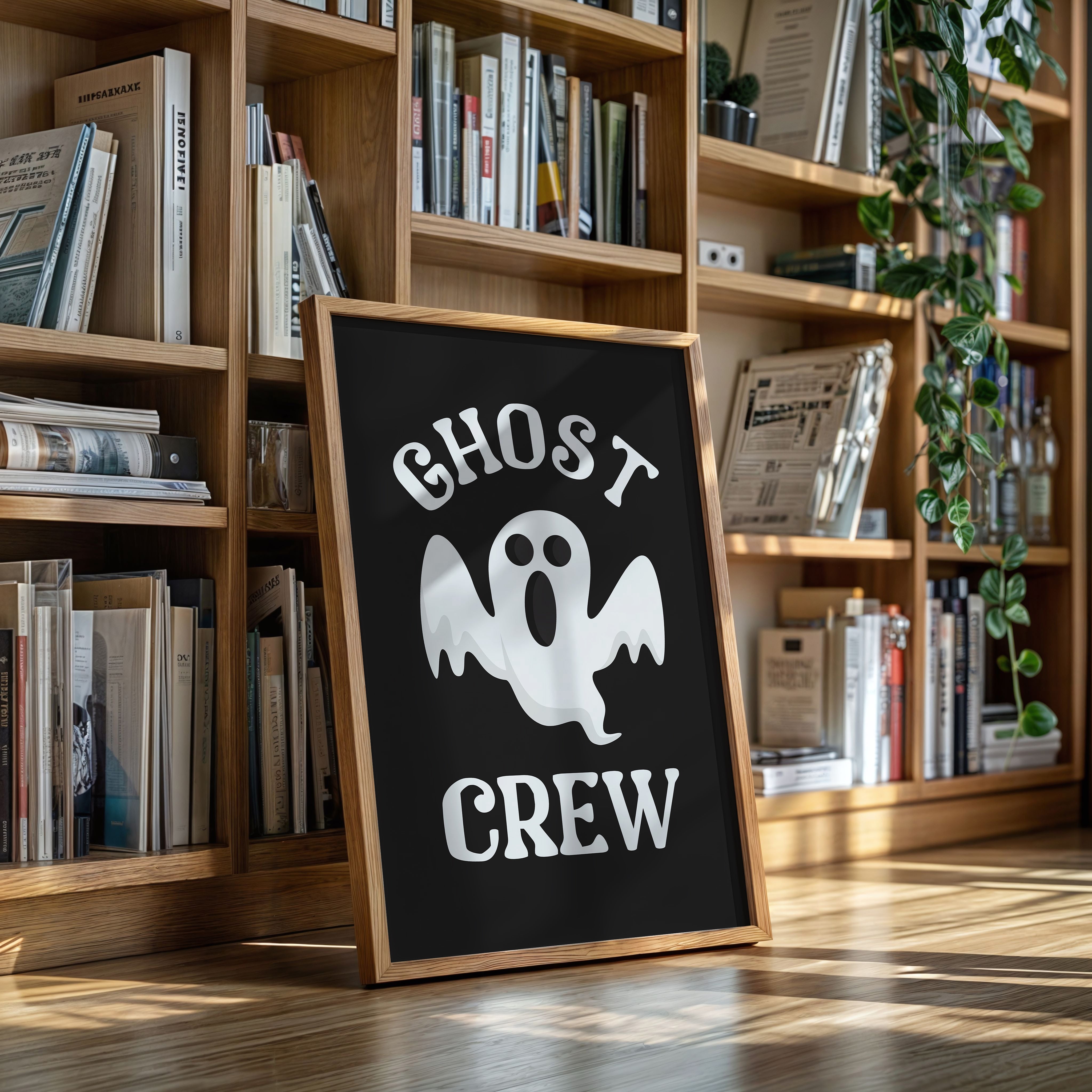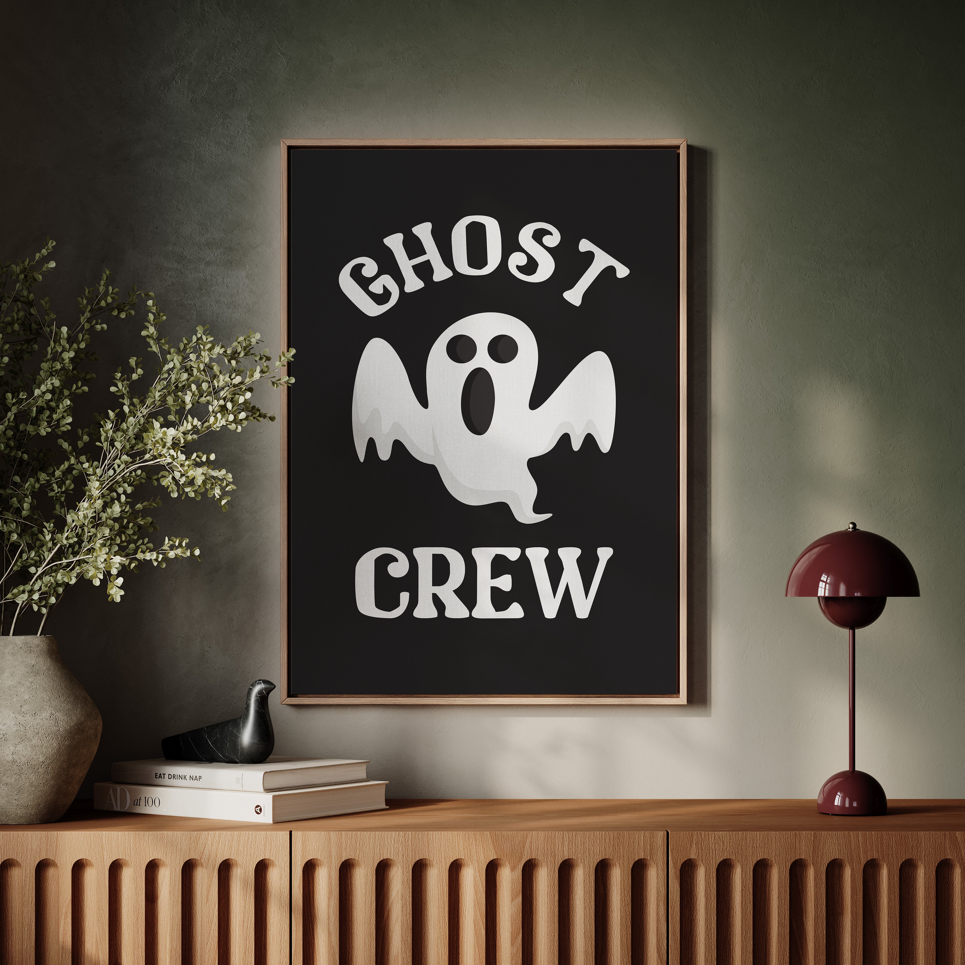 A charming ghost floats with personality and playful energy against a deep black backdrop, its expressive features capturing the perfect balance of spooky and sweet. This piece from our Contemporary collection brings modern whimsy to classic Halloween imagery. The bold typography and minimalist ghost design create a striking contrast, while the clean lines and simple color palette speak to current design trends. This spirited artwork adds character to any space, bringing a touch of year-round charm to a home office, game room, or creative space. The playful spirit of this piece invites smiles and sparks conversation.