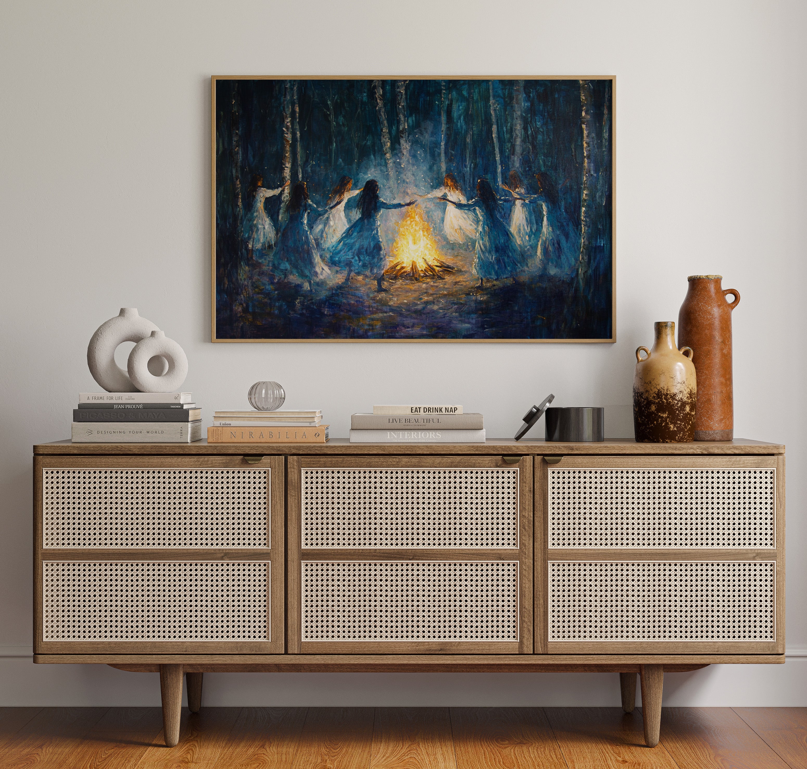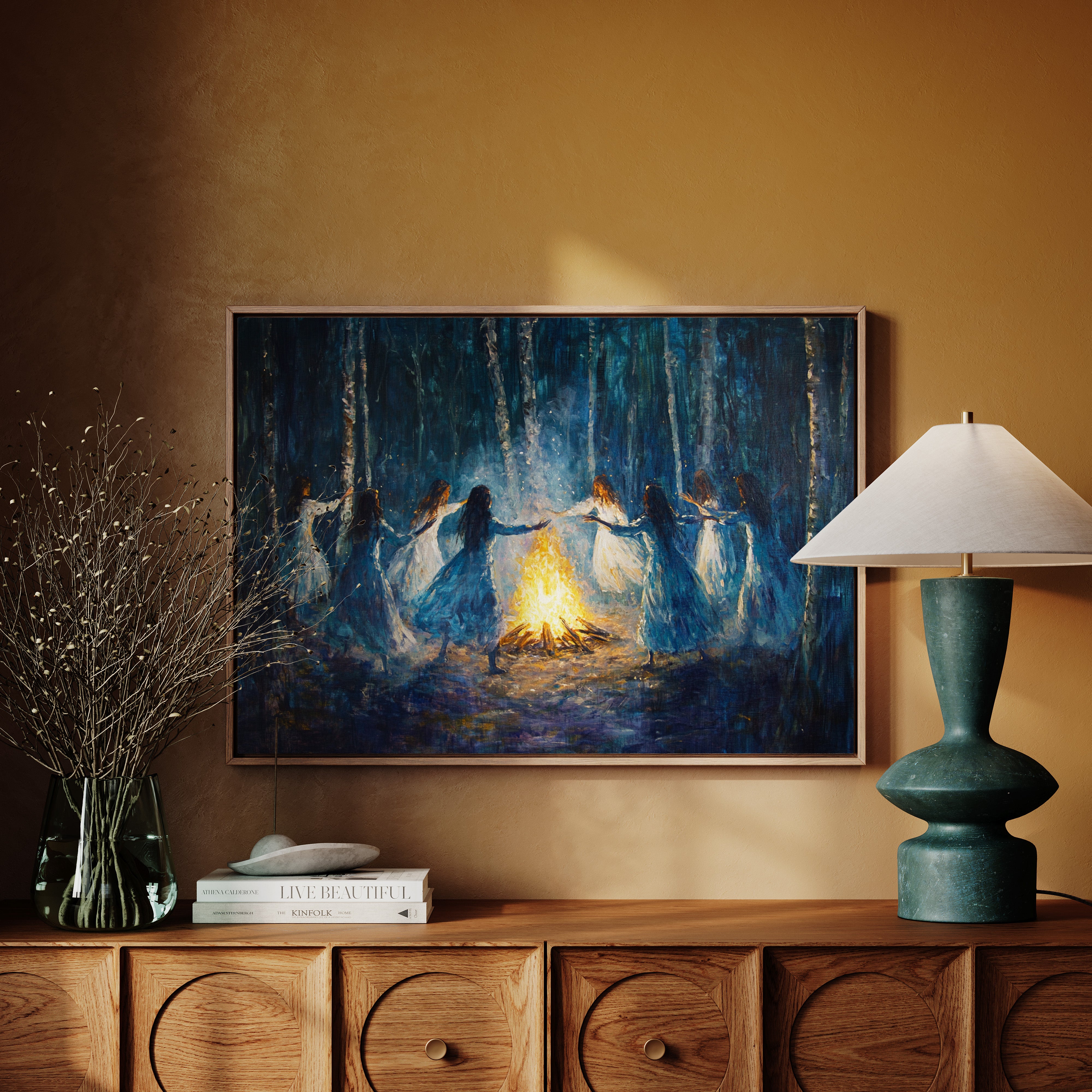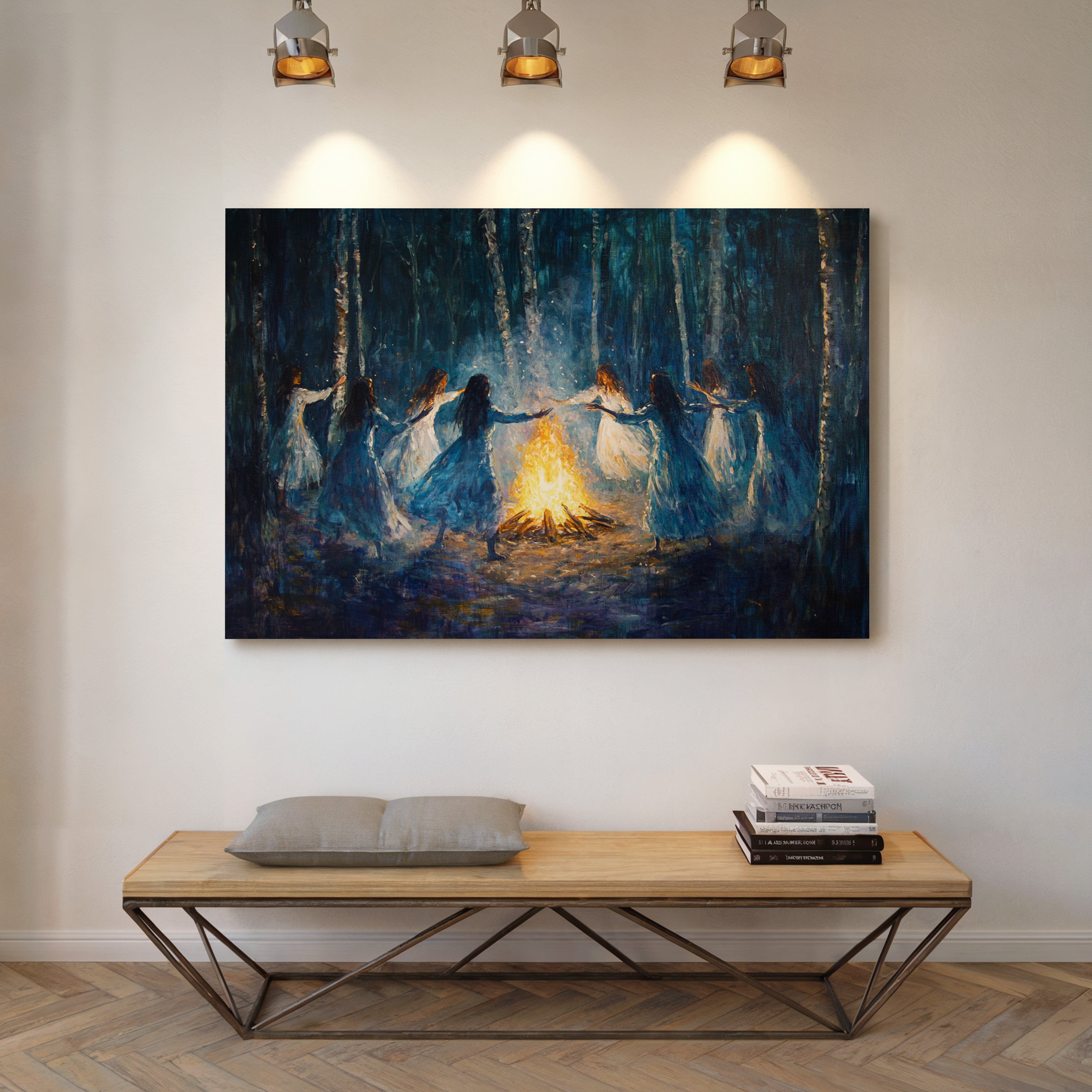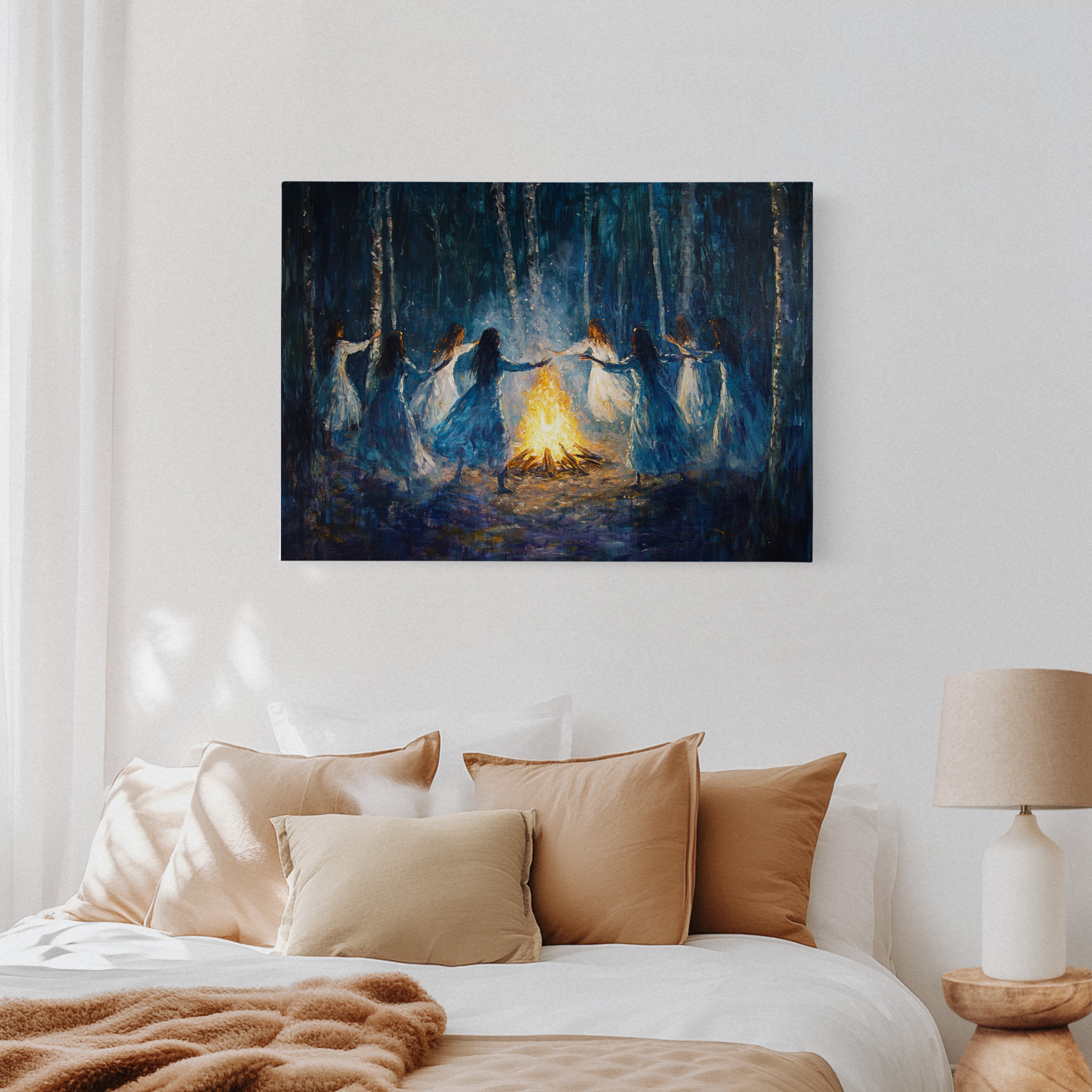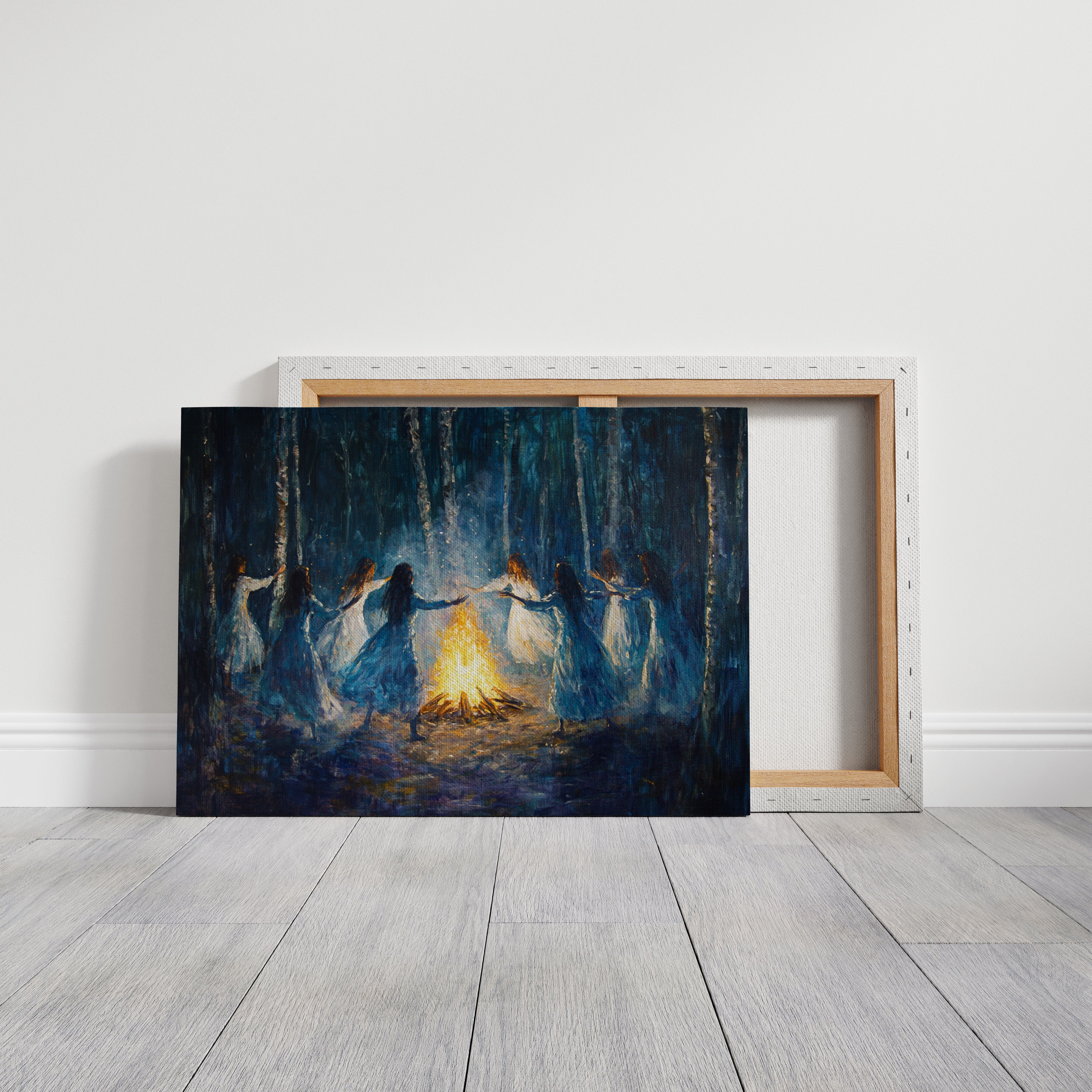 Moonlit Dance Around Sacred Flames | Gallery Canvas / 11" x 9" | $65.00