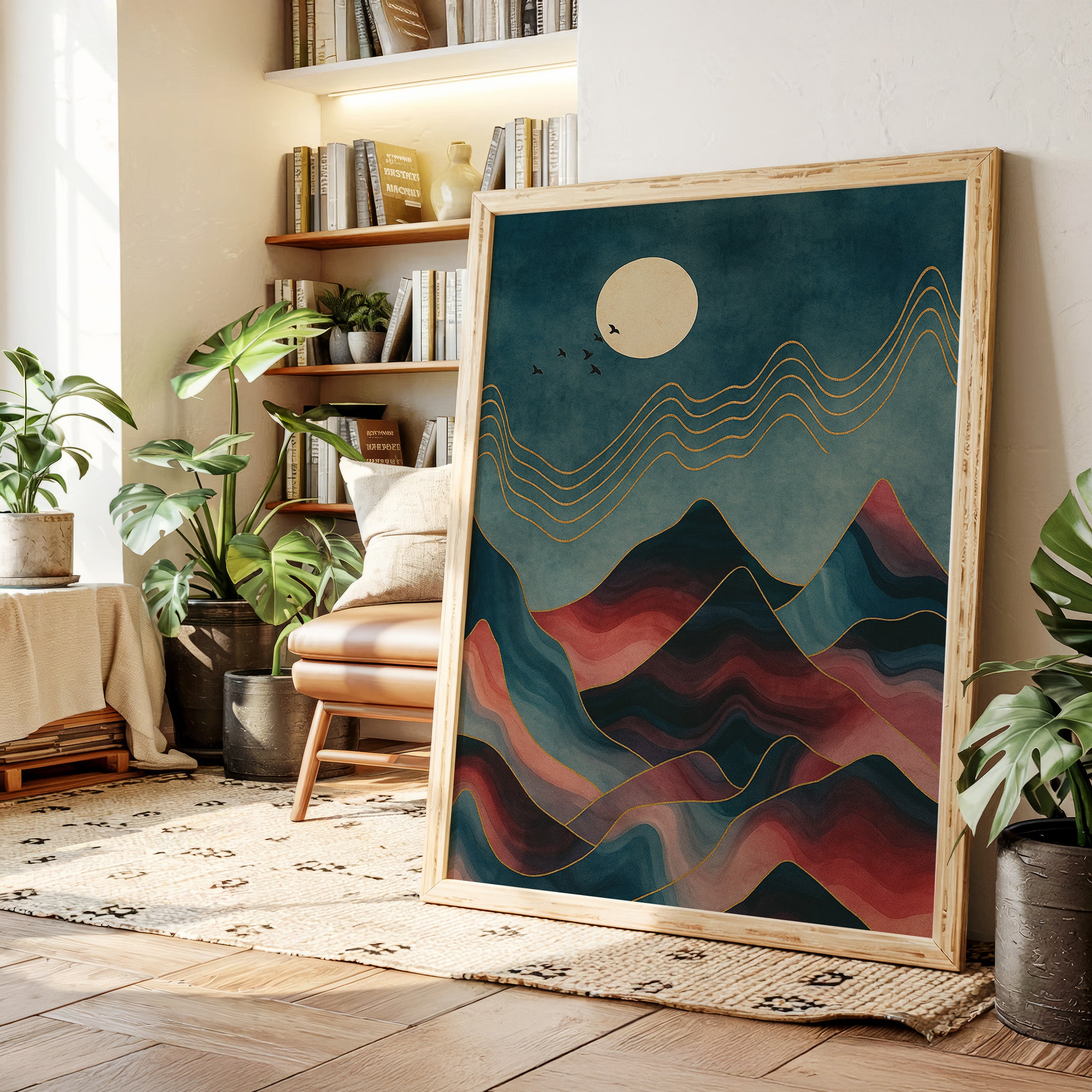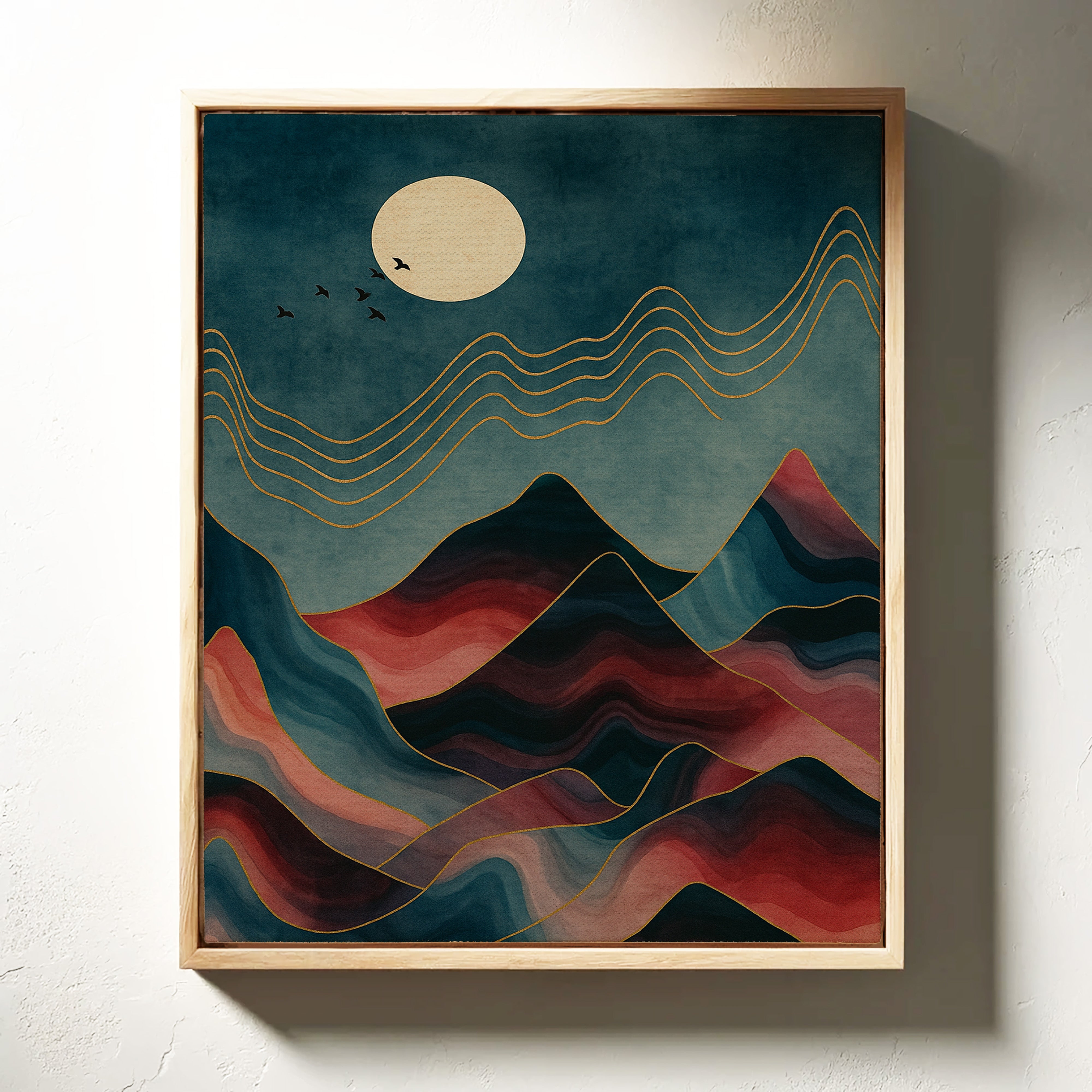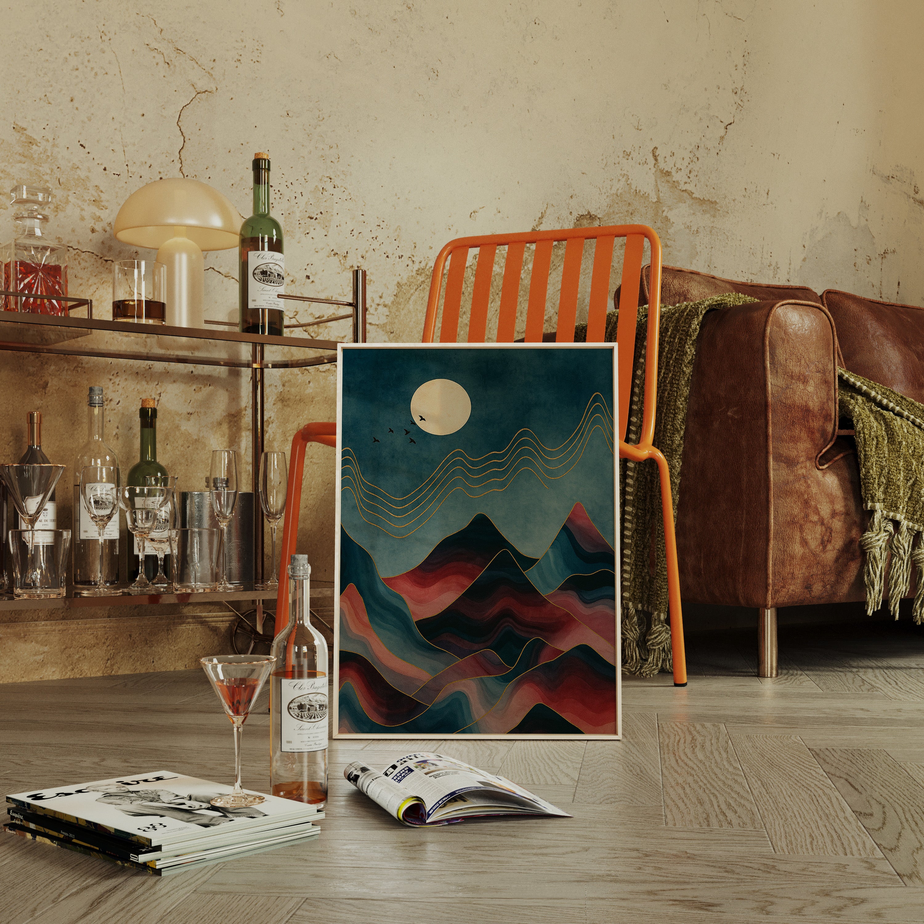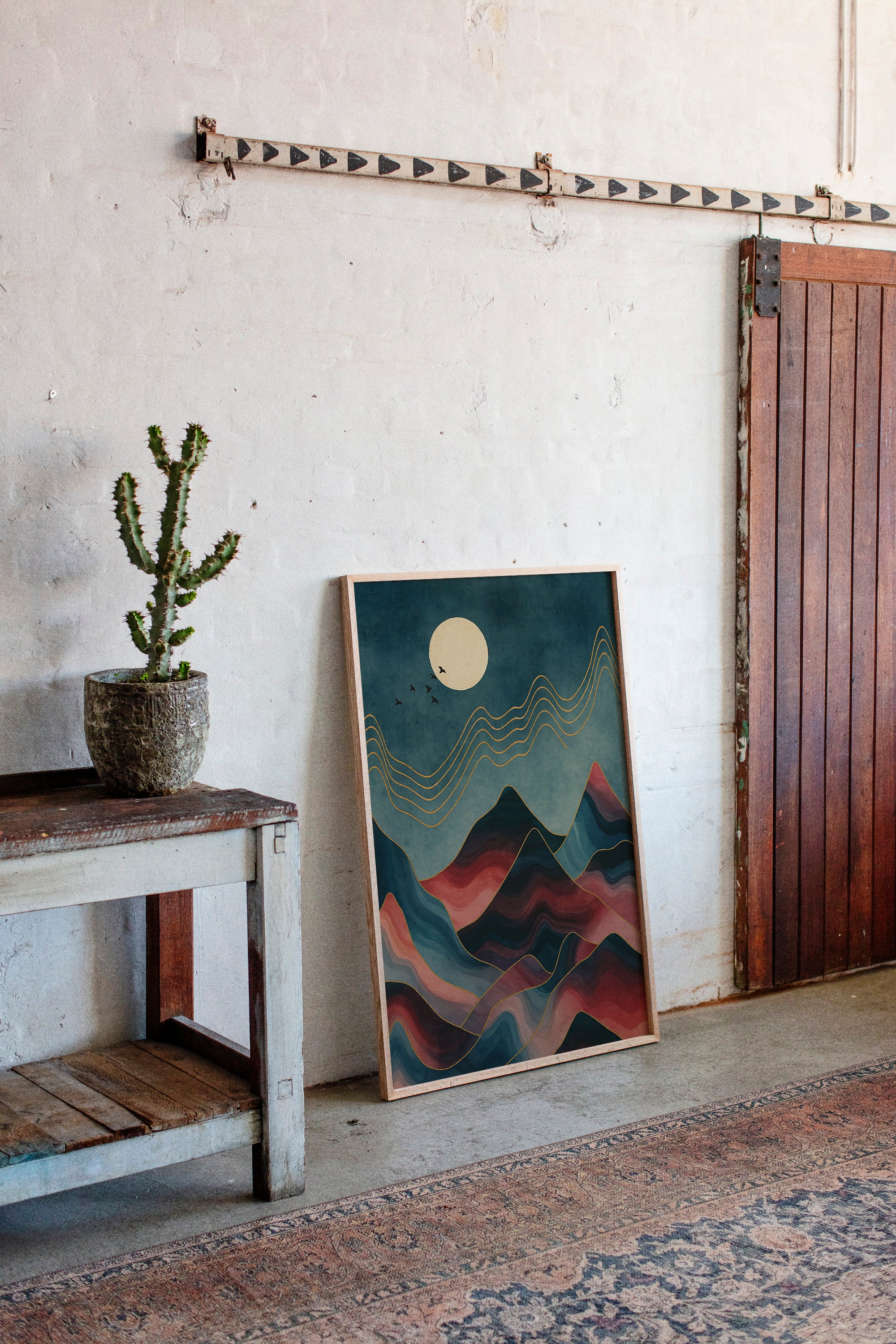 Step into a world of enchantment with our 'Moonlit Mountain Dreams' art print. This captivating piece captures the serene beauty of a moonlit night