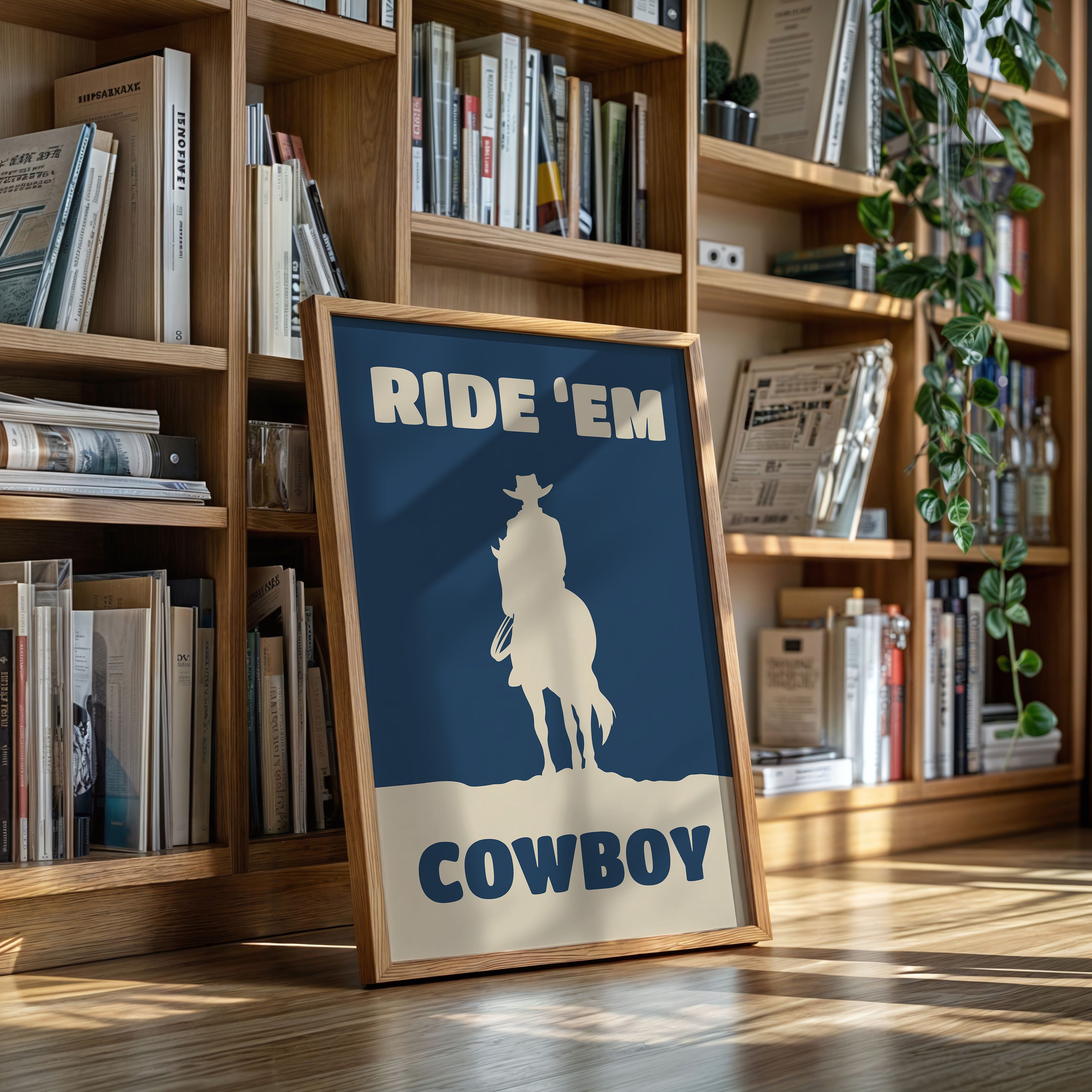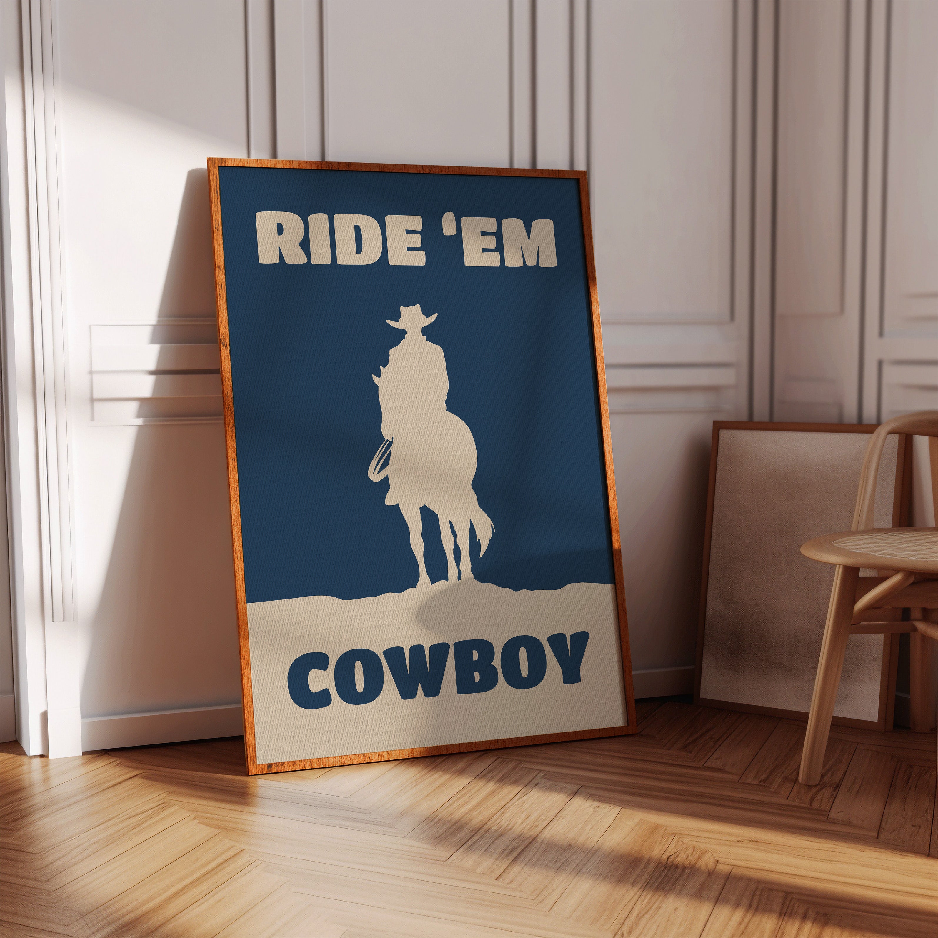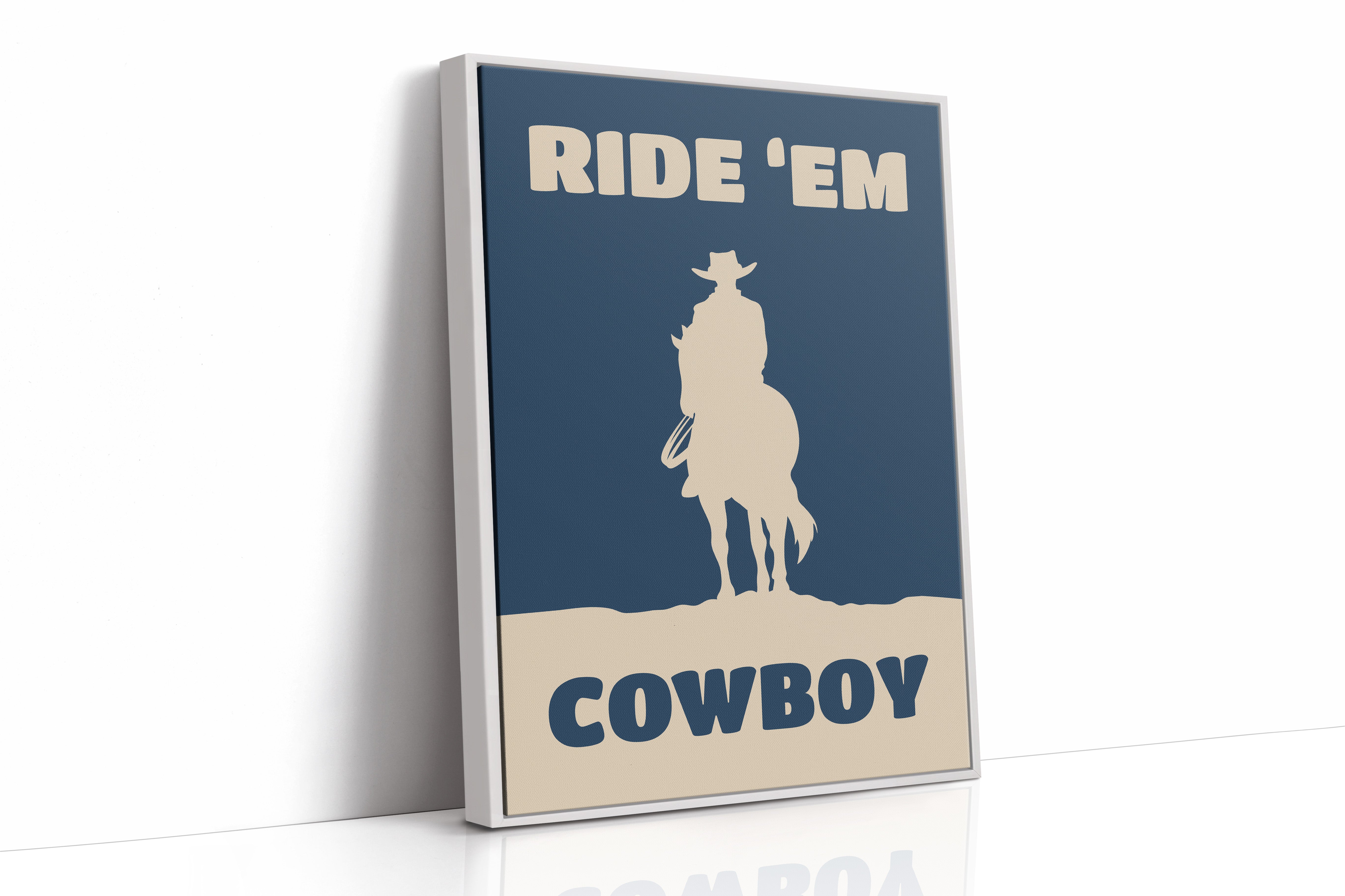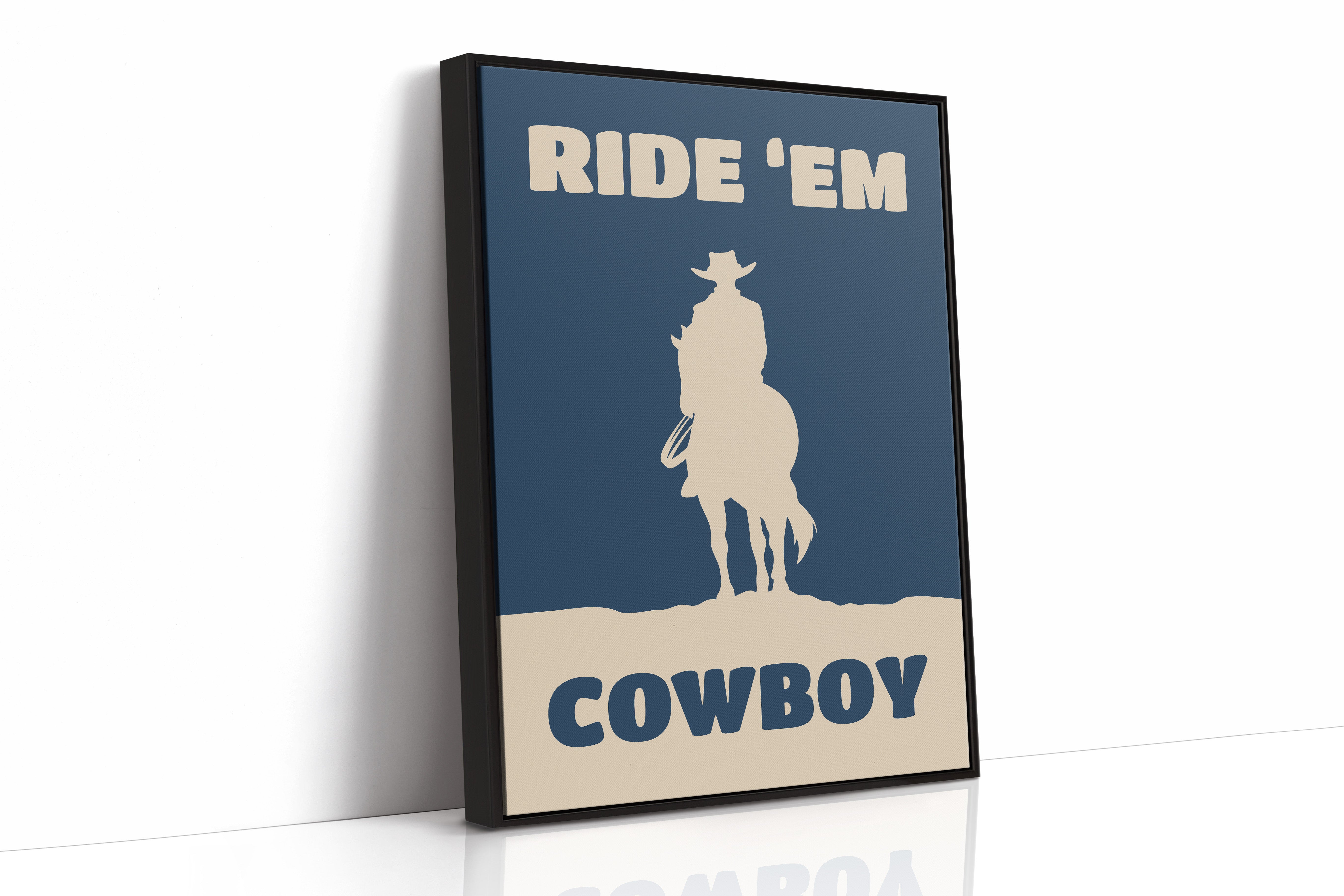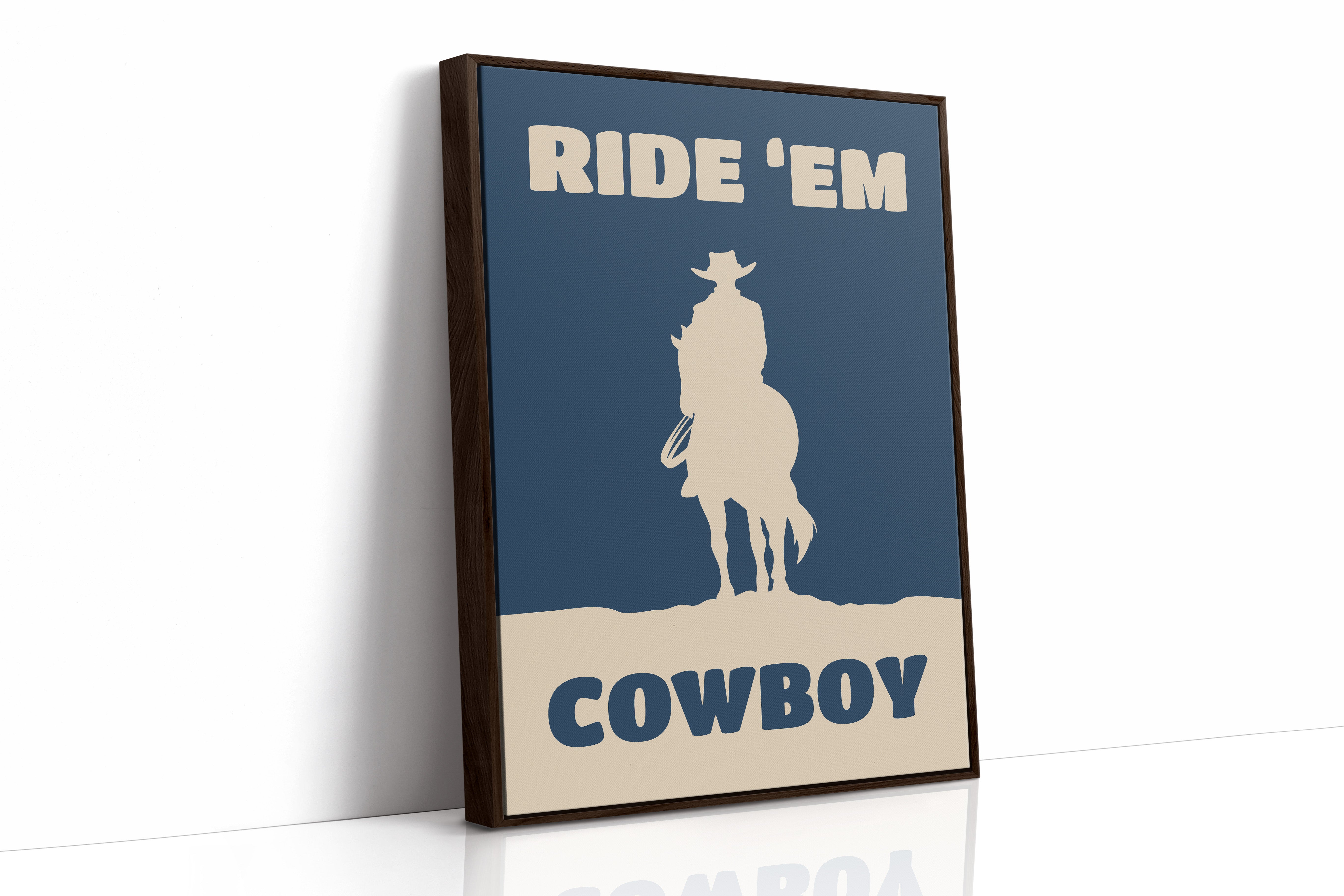 A lone silhouette stands proud against the deepening dusk, where tradition meets modern simplicity. Part of our Contemporary Western collection, this piece captures the timeless spirit of the American frontier through minimalist design. The stark contrast between the cream figure and navy background creates a powerful statement of strength and solitude, while the bold typography adds a modern edge to classic western imagery. The composition speaks to both heritage and innovation, making it a compelling focal point for any space. Perfect for adding character to a home office or bringing rugged elegance to a living room, this piece bridges the gap between classic western decor and contemporary aesthetic sensibilities.