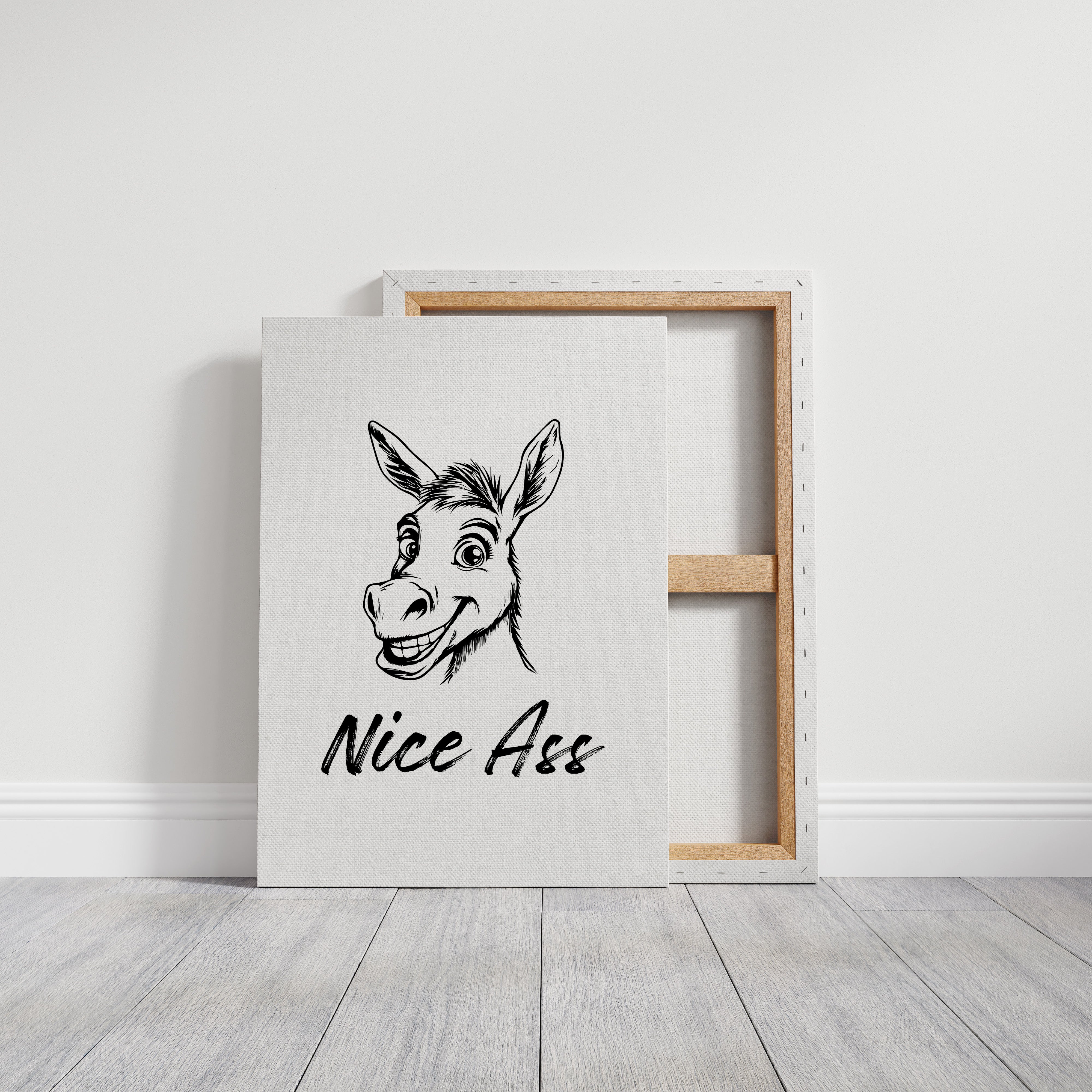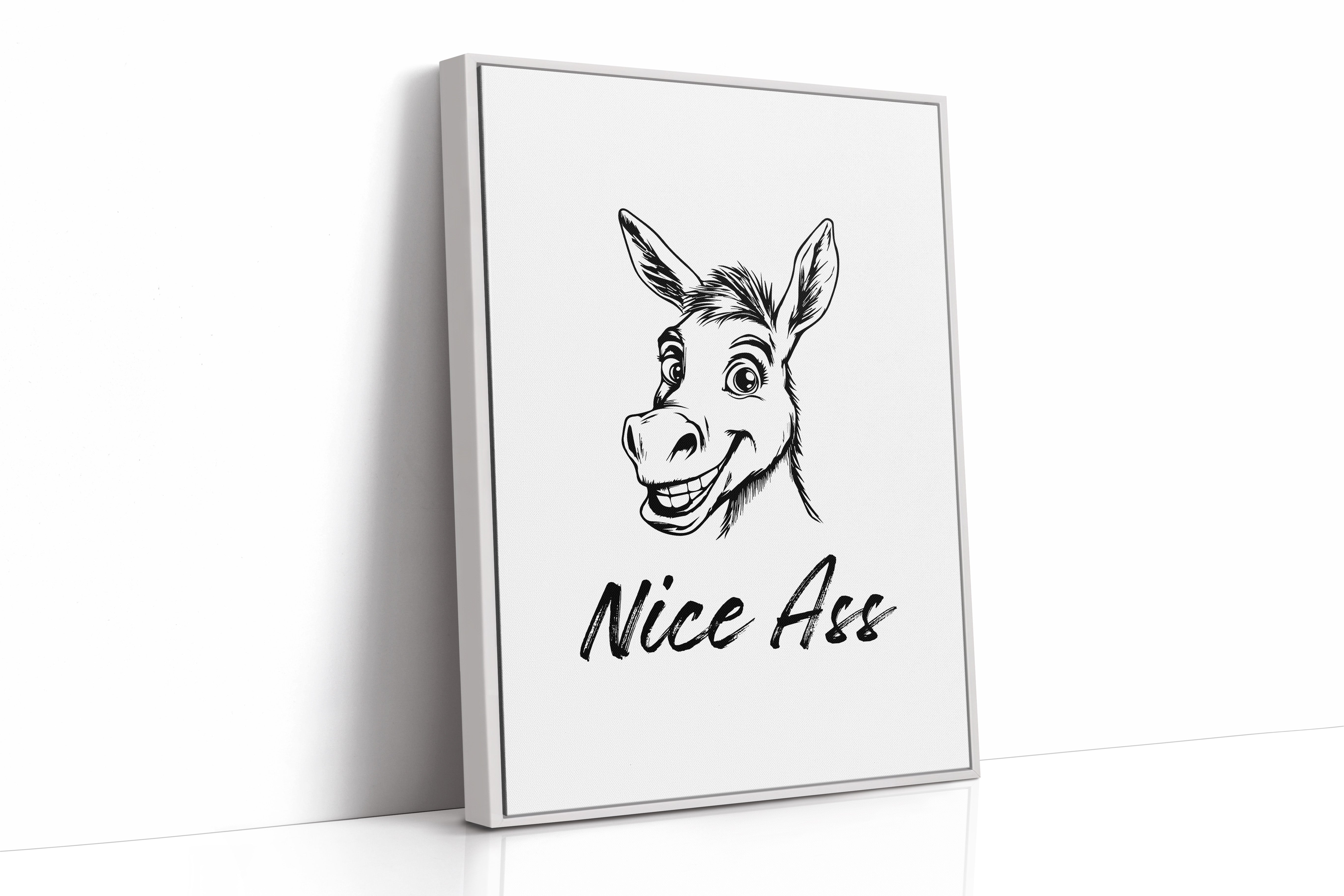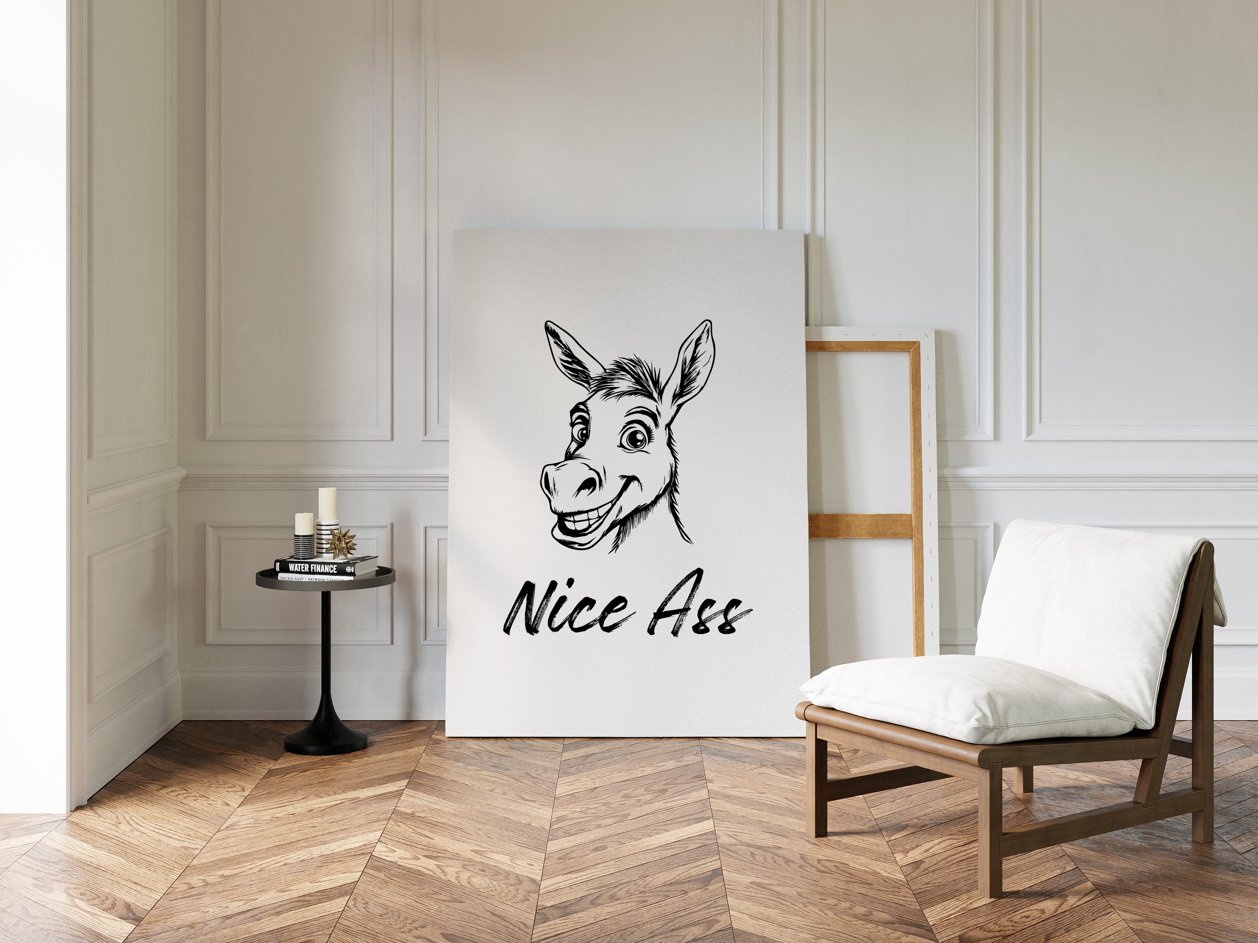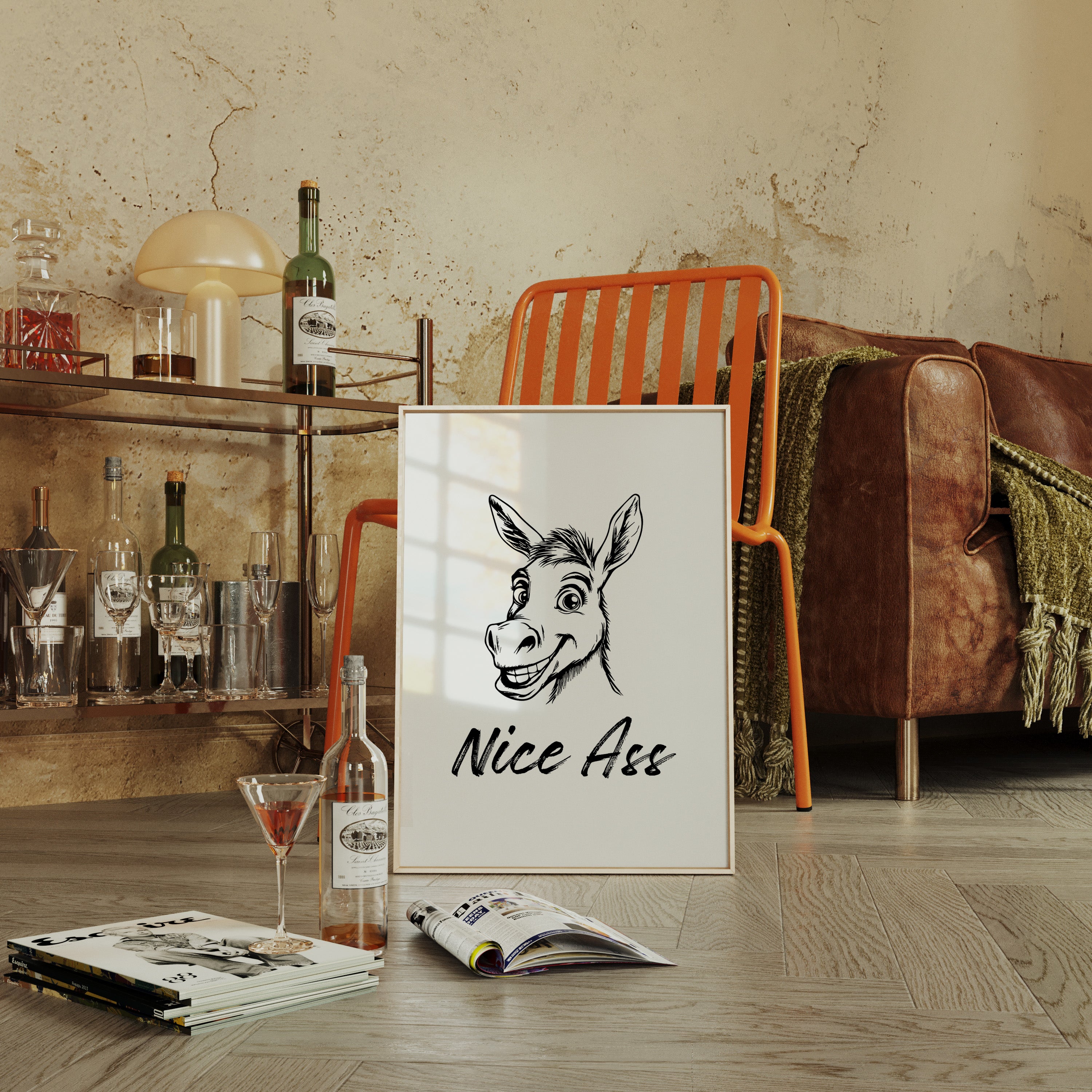 A playful smirk dances across the donkey's face, capturing that perfect moment of pure, unfiltered joy. This contemporary illustration brings a fresh twist to classic farmyard charm with bold, minimalist strokes. The expressive eyes and cheeky grin tell a story of mischief and merriment, while confident brush strokes create a striking balance of personality and artistic restraint. The piece radiates warmth and character, making it an ideal addition to a modern kitchen or cheerful breakfast nook. Its simple yet impactful design brings a dash of whimsy to any space, inviting smiles and conversation.