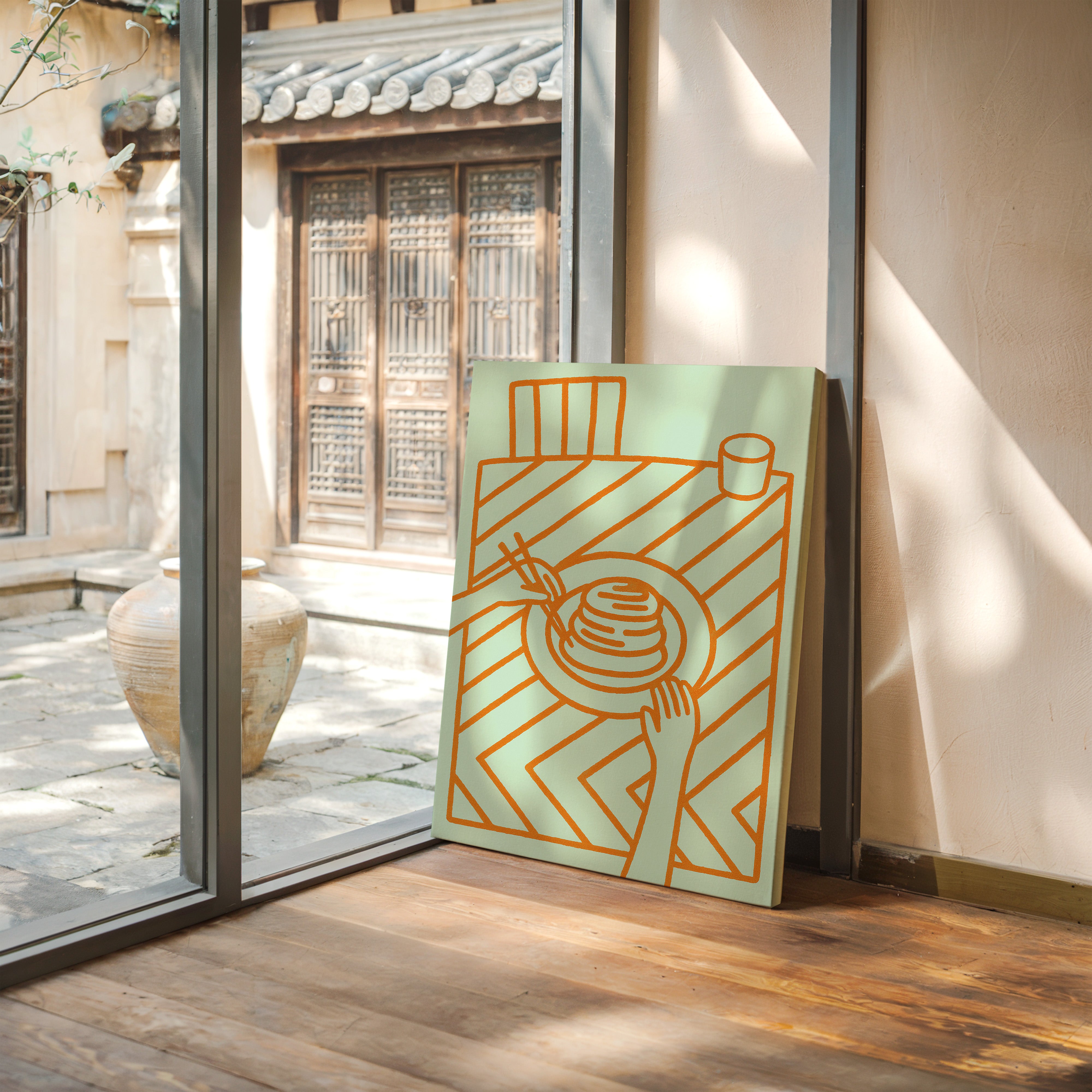 Morning Pancakes Meet Mint Lines | Gallery Canvas / 9" x 11" | $65.00