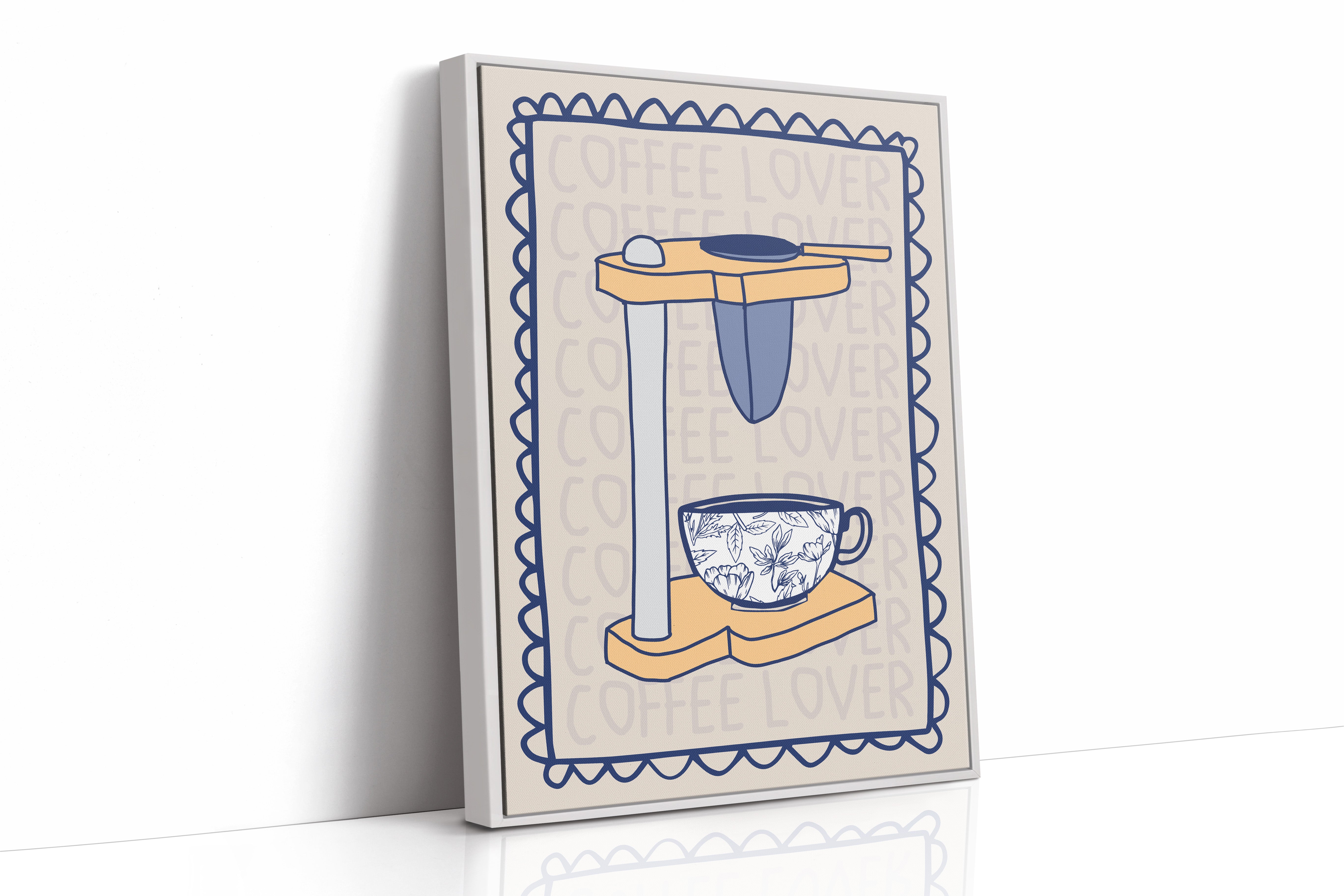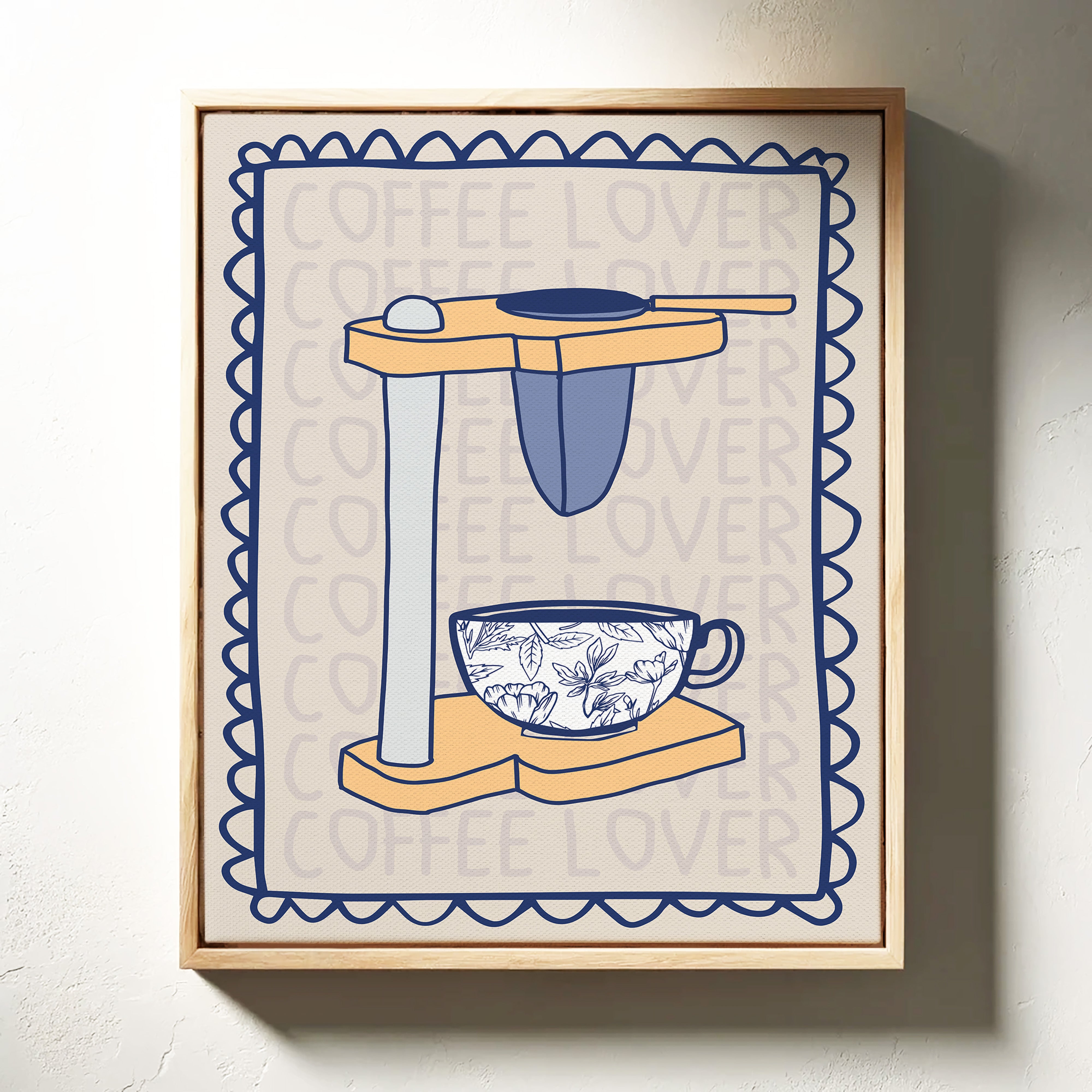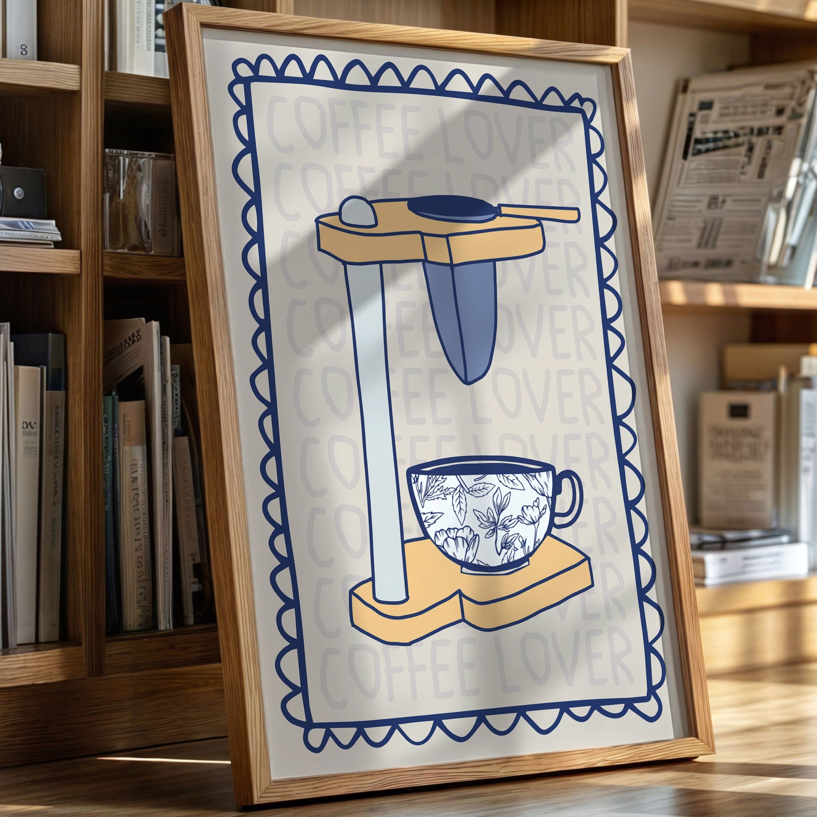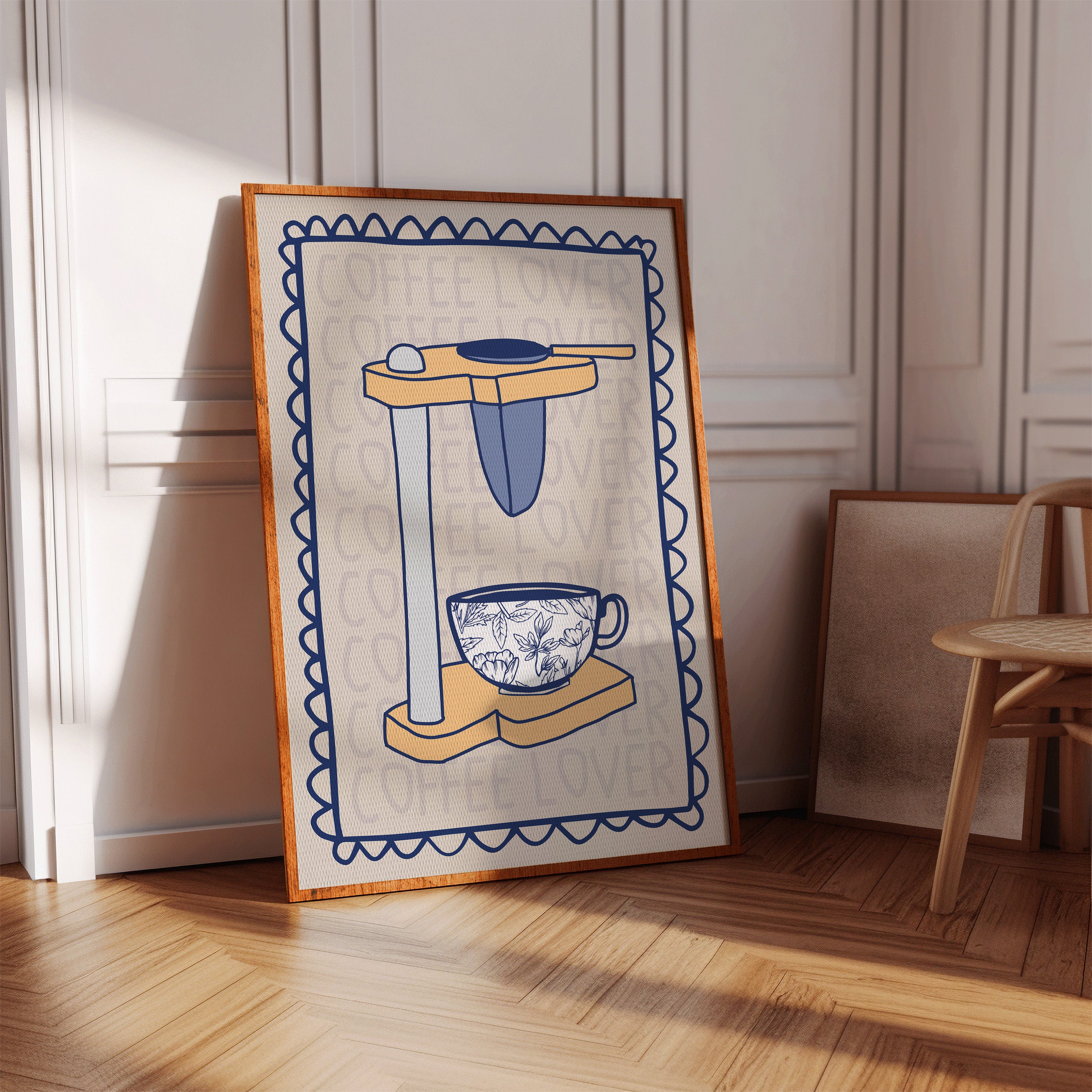 Steam rises gently from a delicately patterned cup, promising the first sacred sip of day. This piece from our Contemporary collection celebrates the cherished ritual of coffee preparation with clean lines and playful sophistication. The pour-over stand stands like a modern sculpture, while the cup below blooms with intricate botanical patterns in navy and cream, creating a harmonious dance between form and function. The scalloped border frames this daily ceremony like a treasured moment frozen in time. Perfect for adding character to a kitchen nook or bringing a touch of coffee culture charm to a dining area. Each glance reminds us to pause and savor life's simple pleasures.