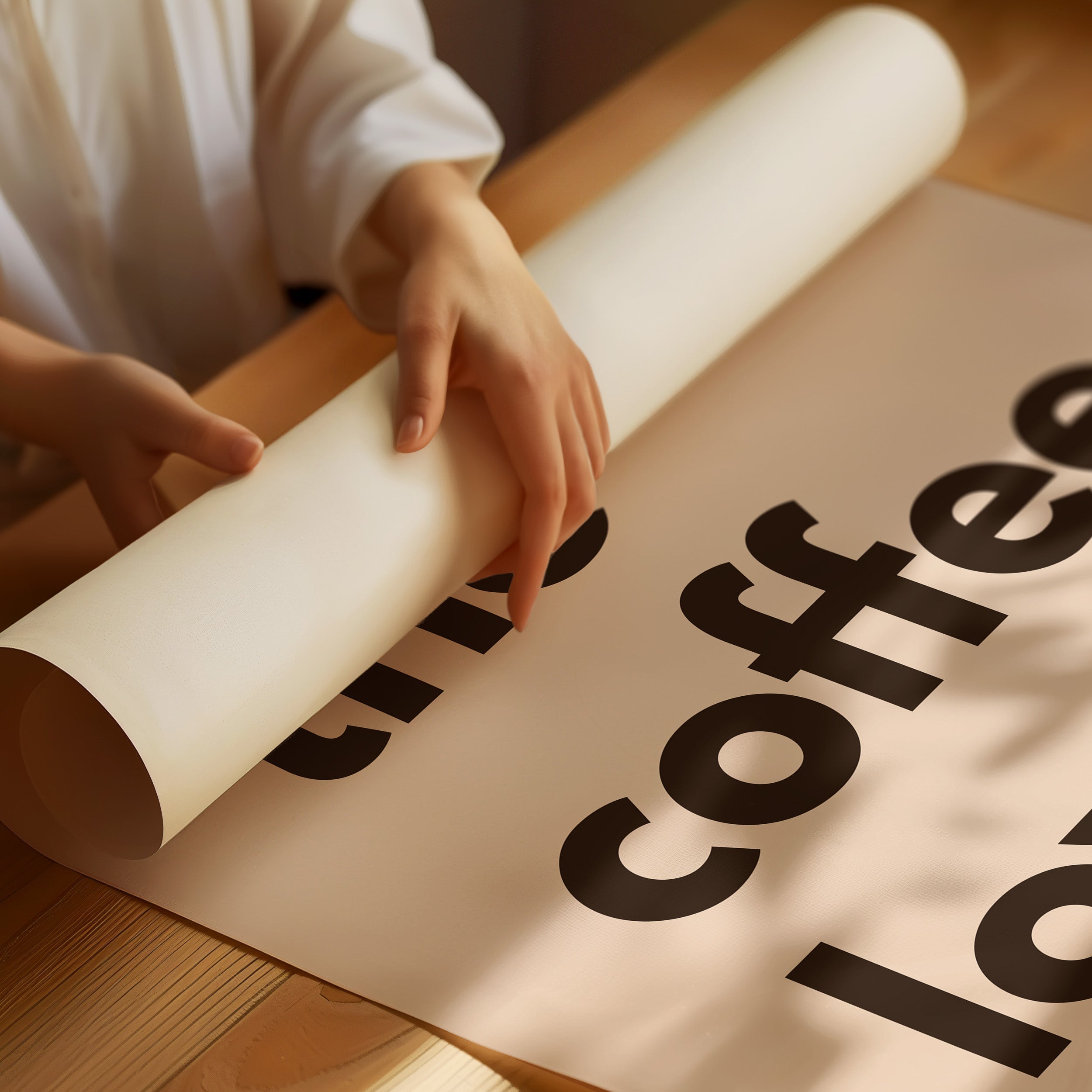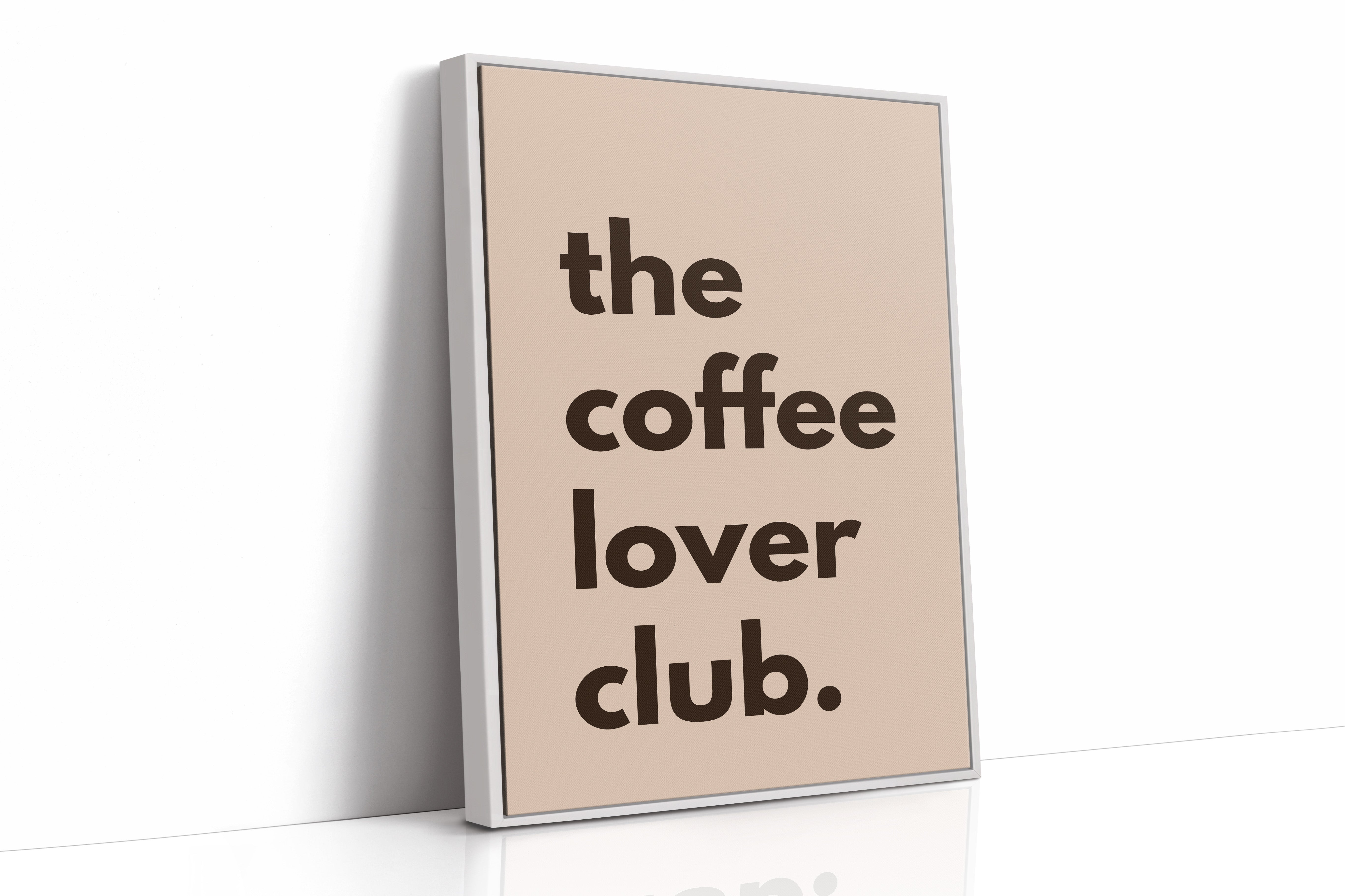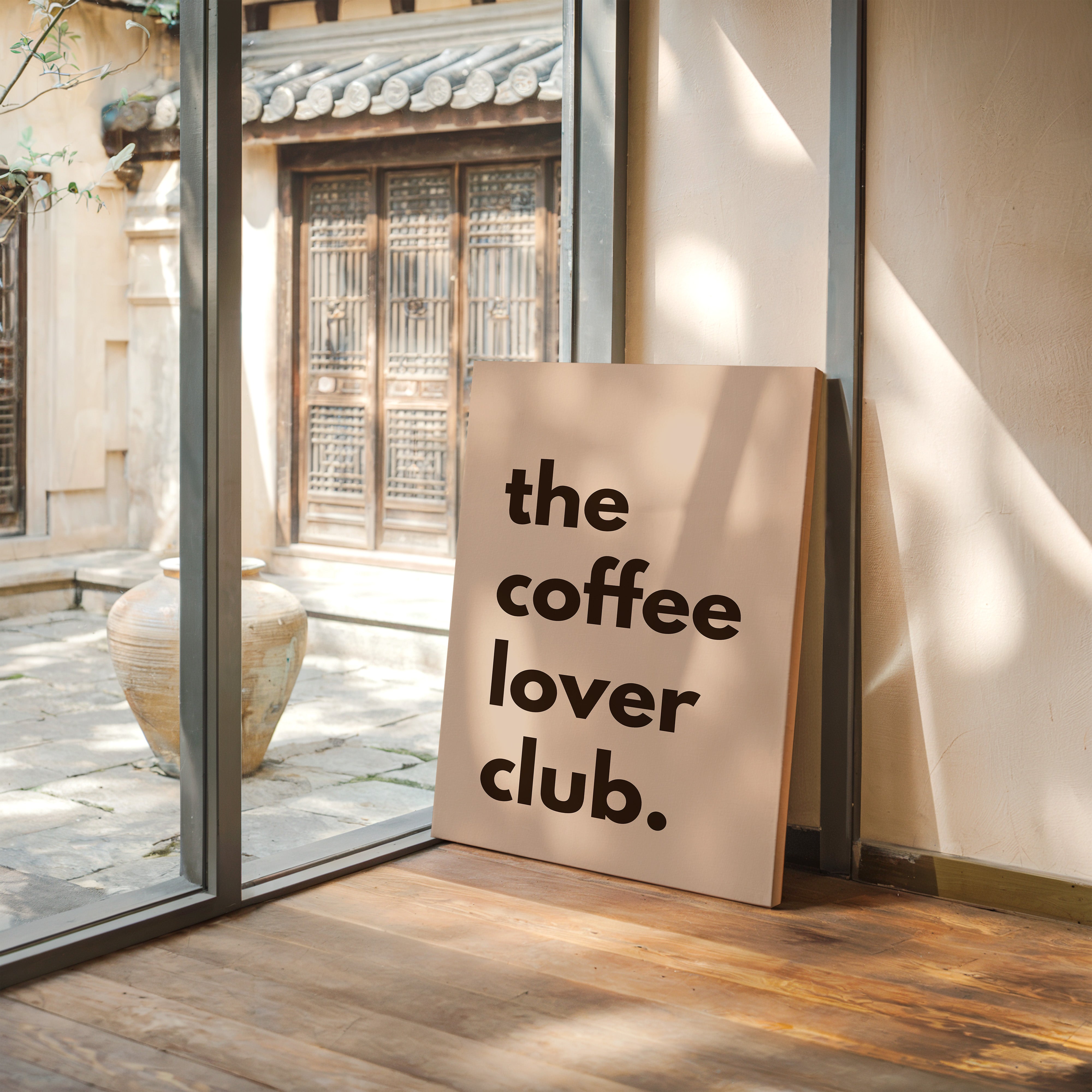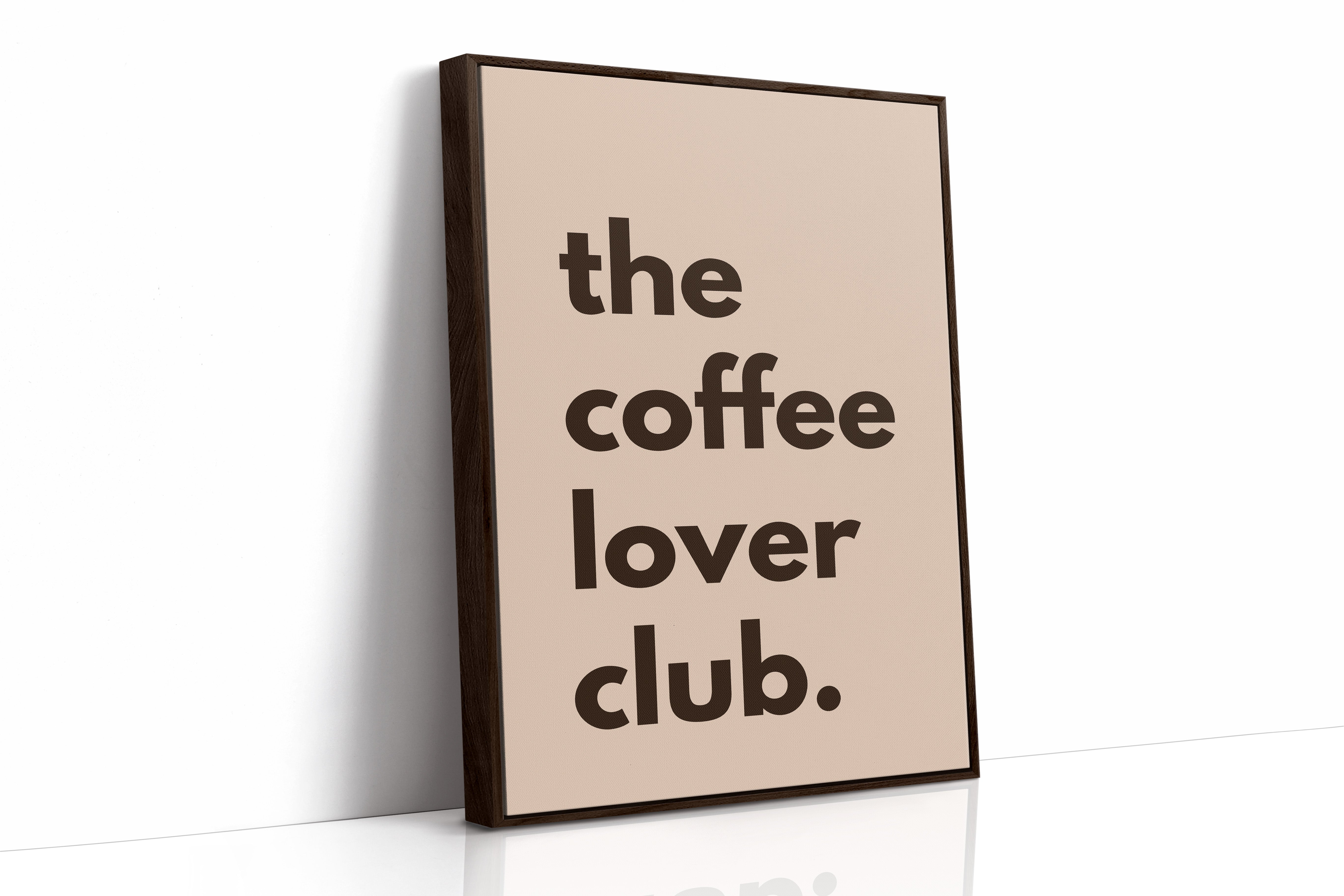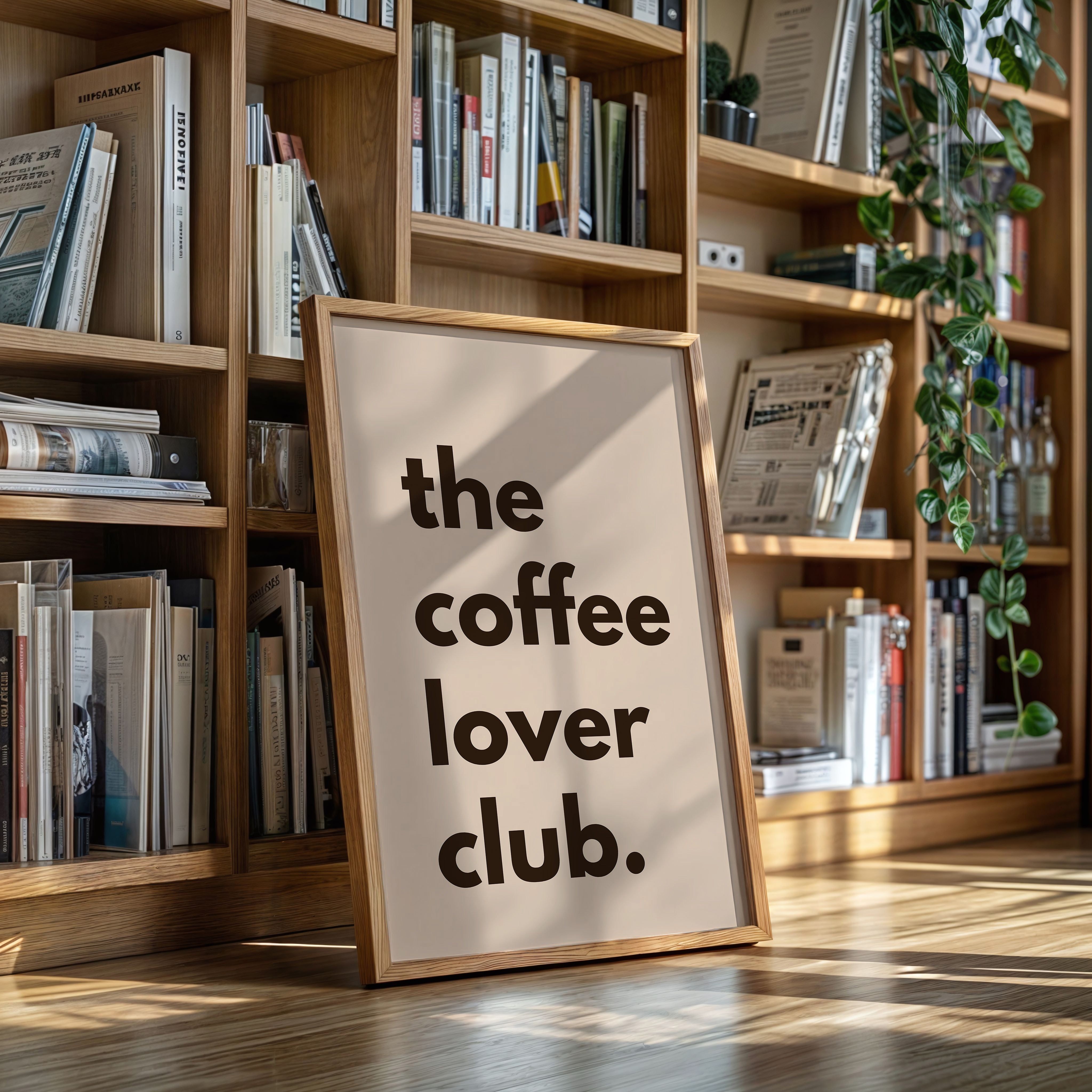 Bold letters float against a warm blush backdrop, inviting you into a moment of caffeine-fueled contemplation. This piece from our Contemporary Typography collection merges minimalist design with coffee culture's familiar comfort. The stark contrast between deep brown text and soft rose tones creates a visual rhythm that mirrors the morning ritual of that first perfect cup. The understated yet confident composition speaks to both coffee enthusiasts and lovers of clean, modern design. Perfect for kitchen spaces, coffee nooks, or any area where morning moments deserve celebration.