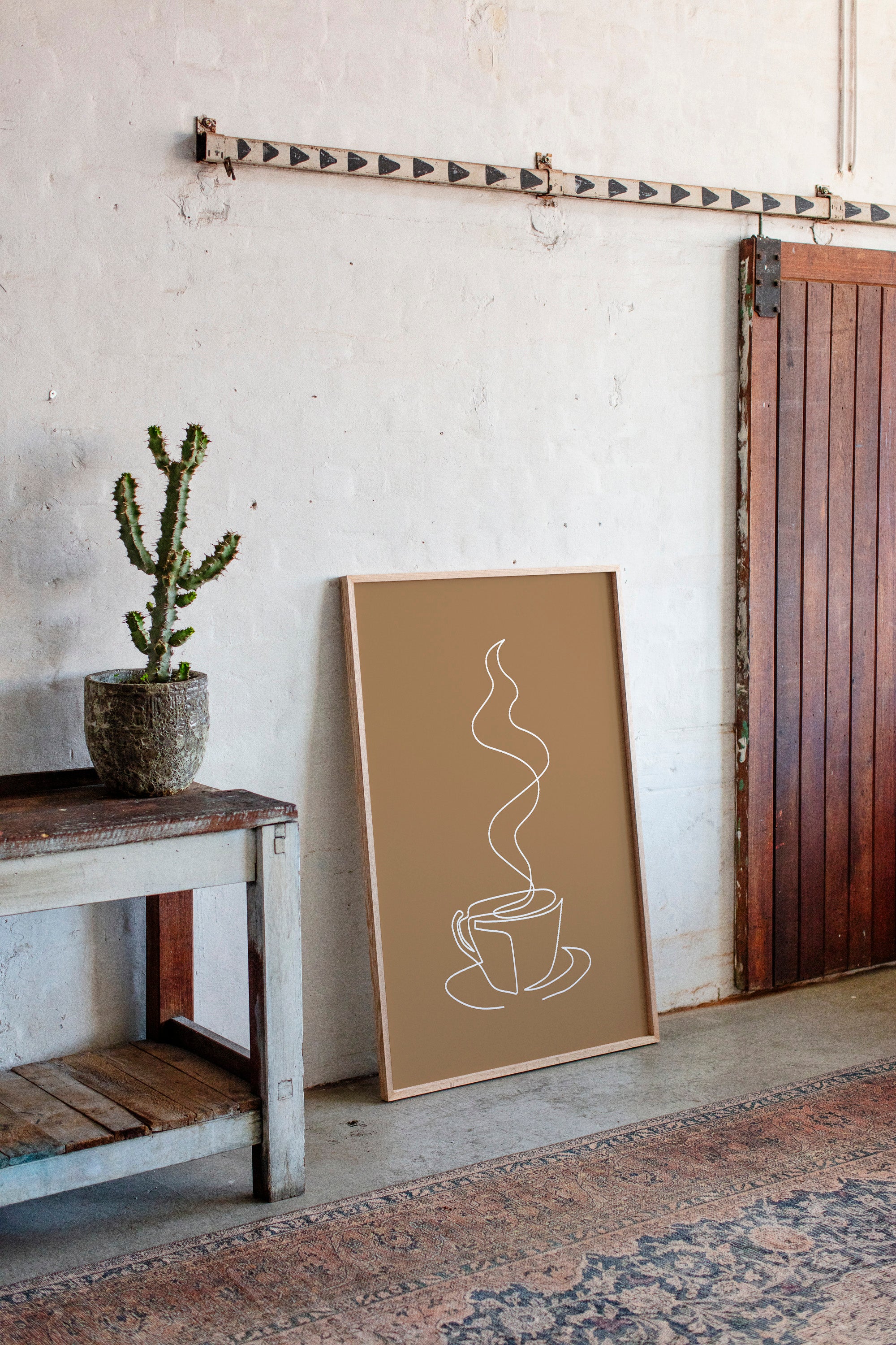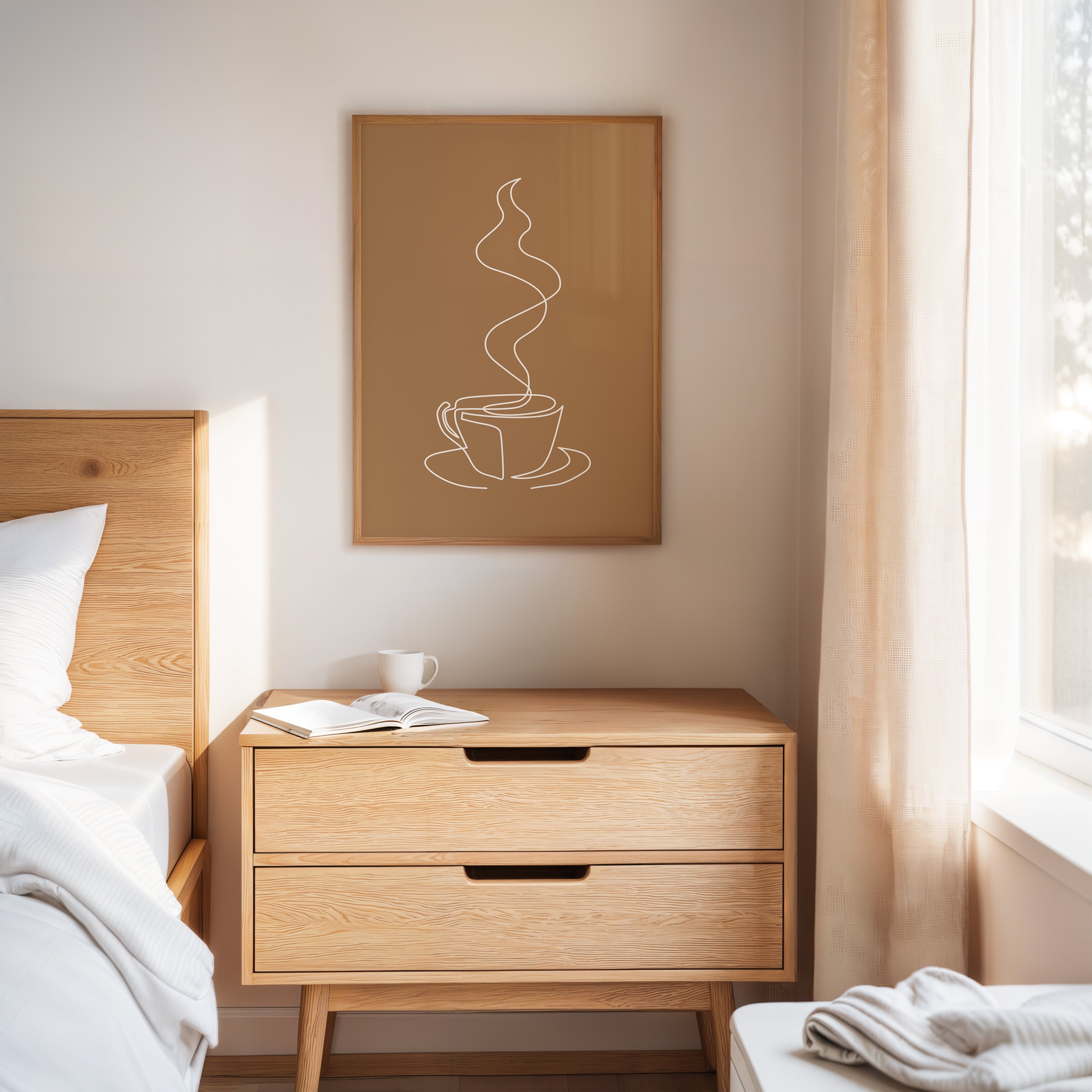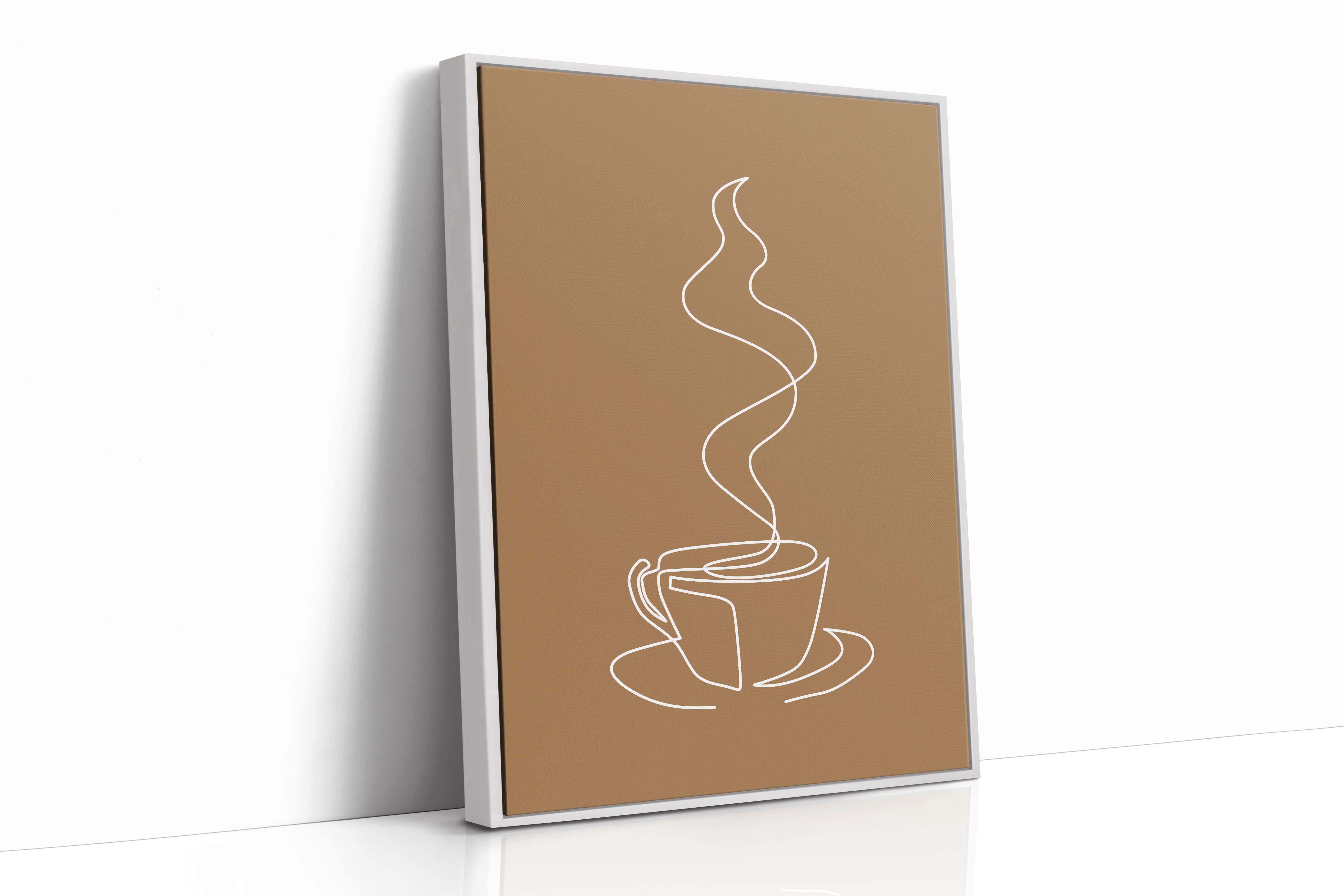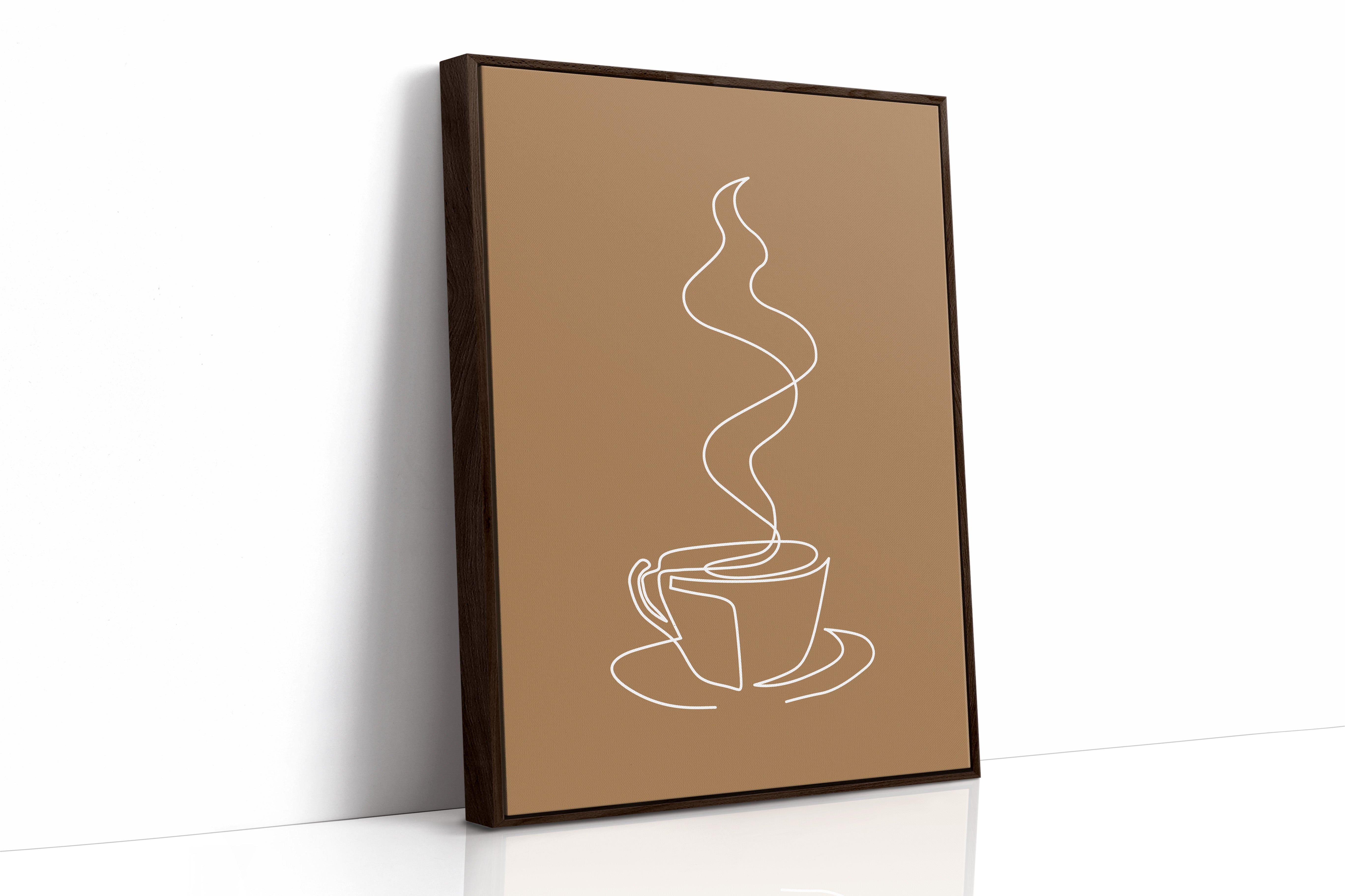 A single, elegant line traces the essence of morning ritual, where steam rises in graceful curves above a waiting cup. Part of our Geometric collection, this piece captures minimalism's power to evoke profound meaning through simplicity. The continuous white line against warm brown creates a meditative dance, telling the story of those quiet moments when the day first stirs to life. The composition transforms a everyday moment into an artistic statement of serenity and contemplation. This piece brings sophisticated calm to a breakfast nook, coffee station, or kitchen wall, creating an inviting space for morning reflection. Let its gentle curves remind you to pause and savor life's simple pleasures.