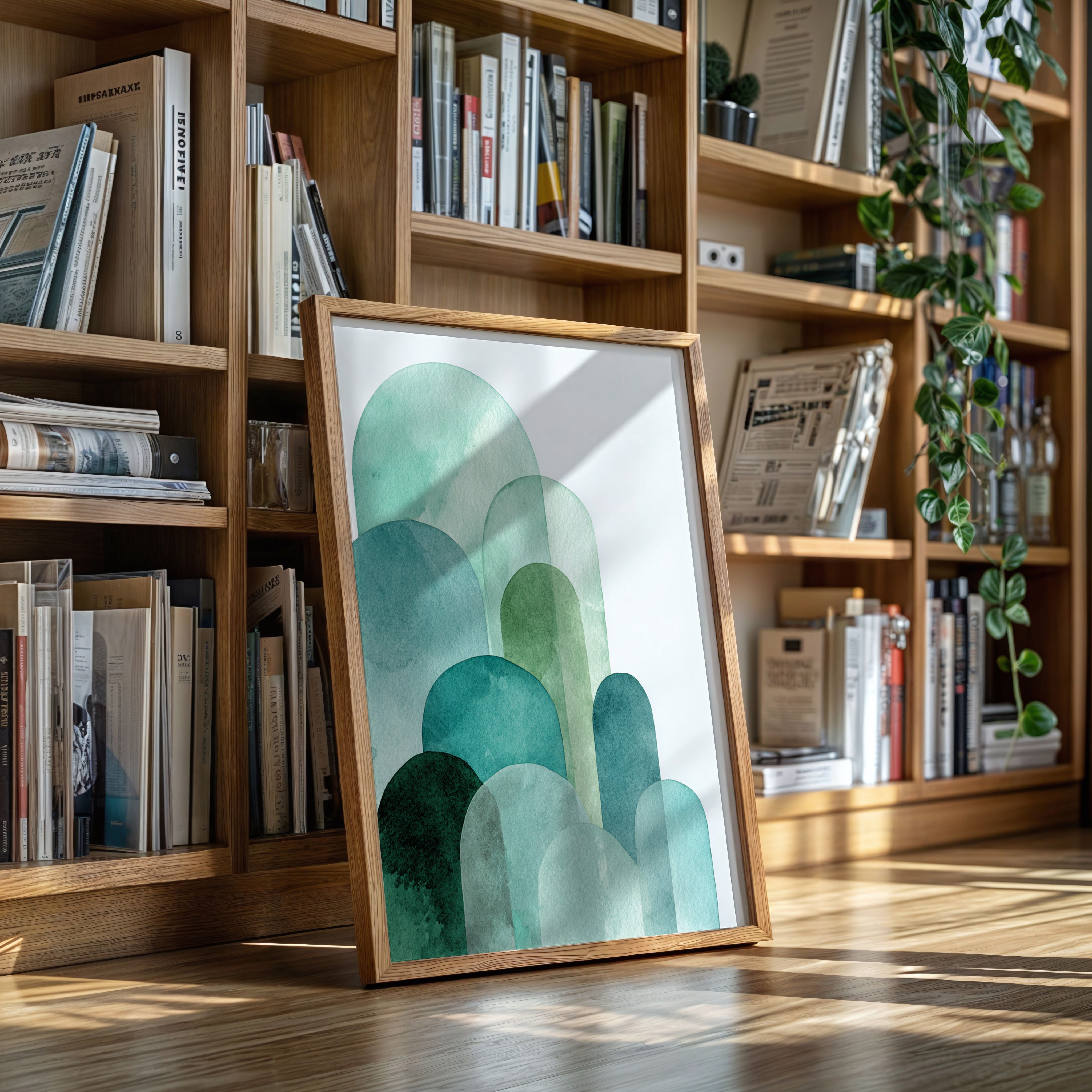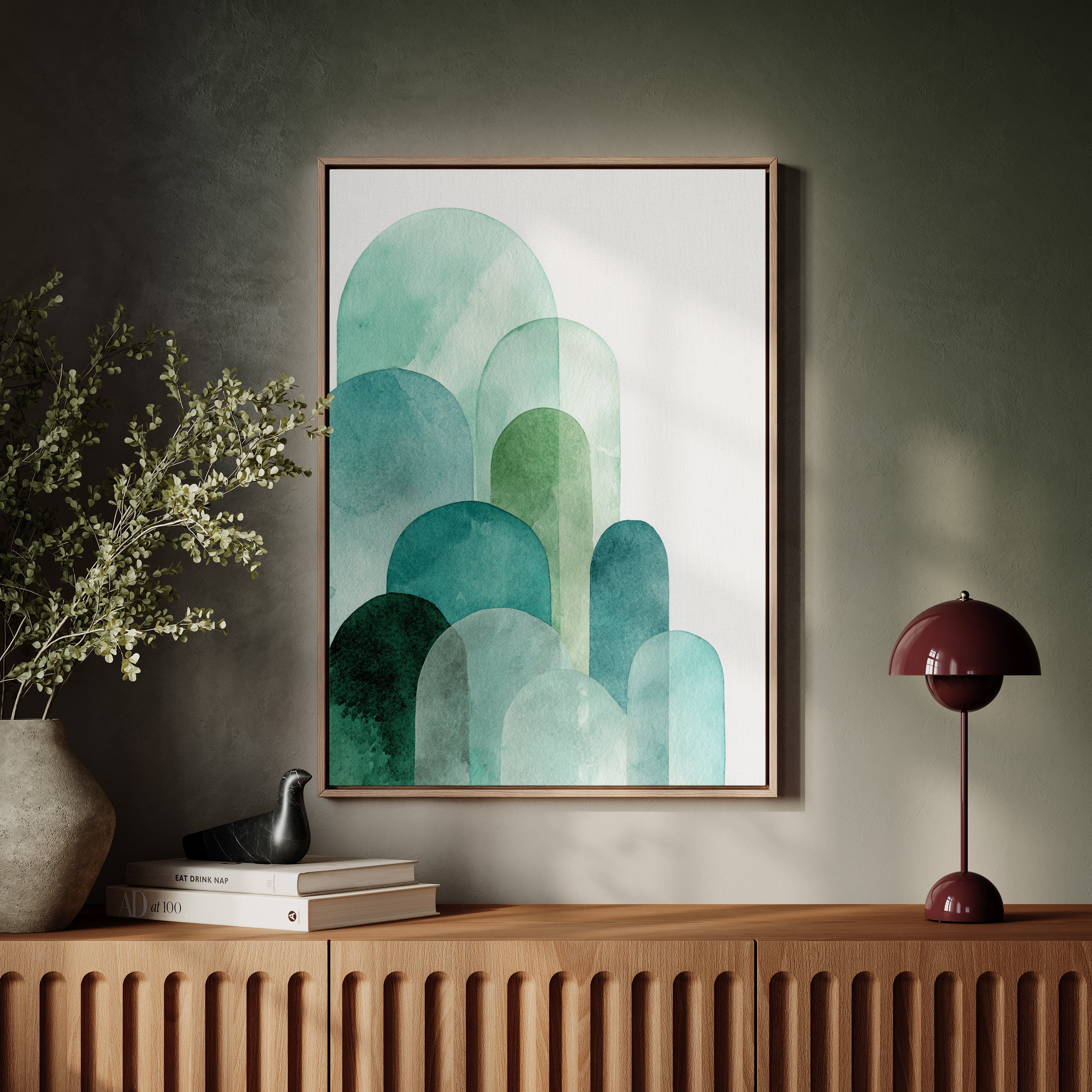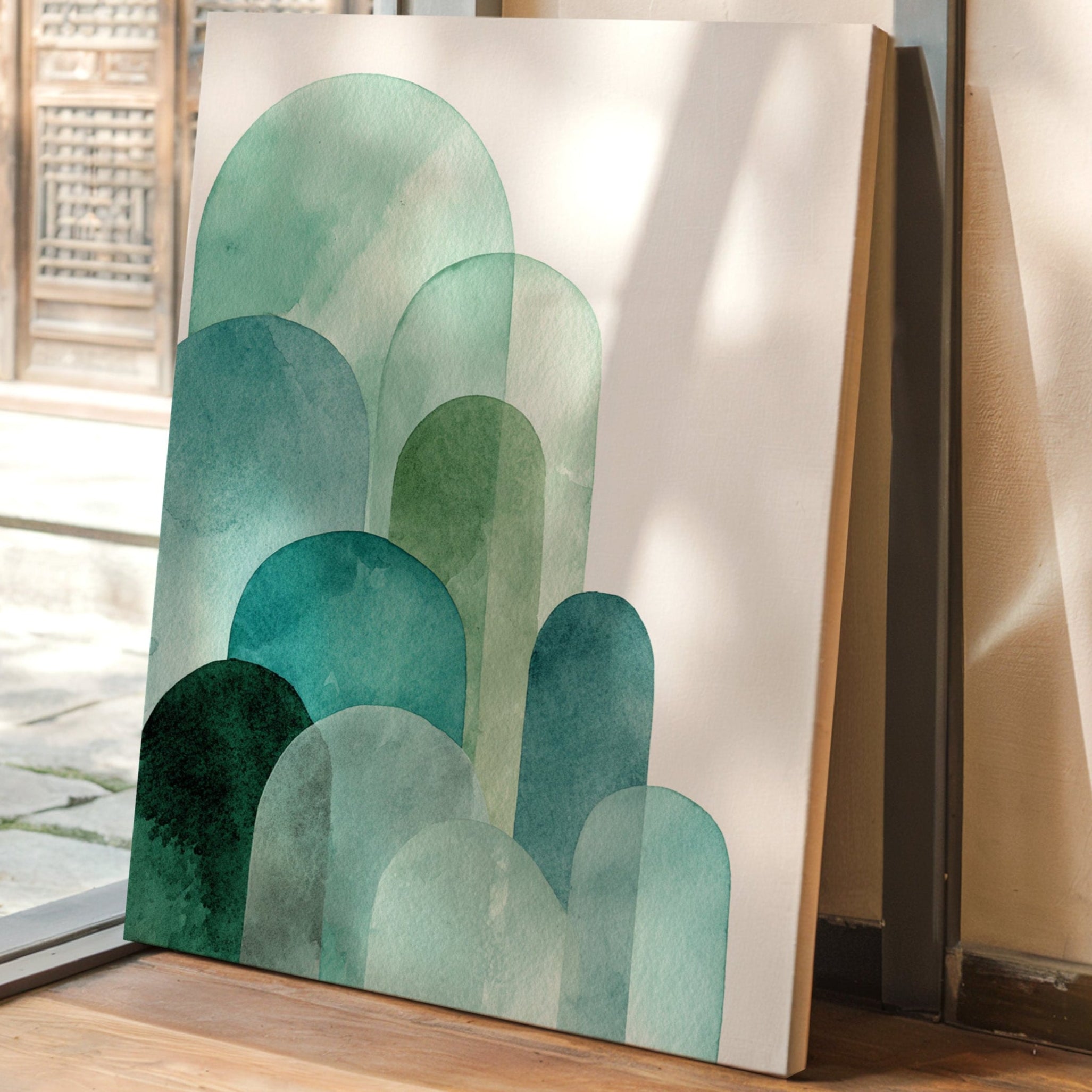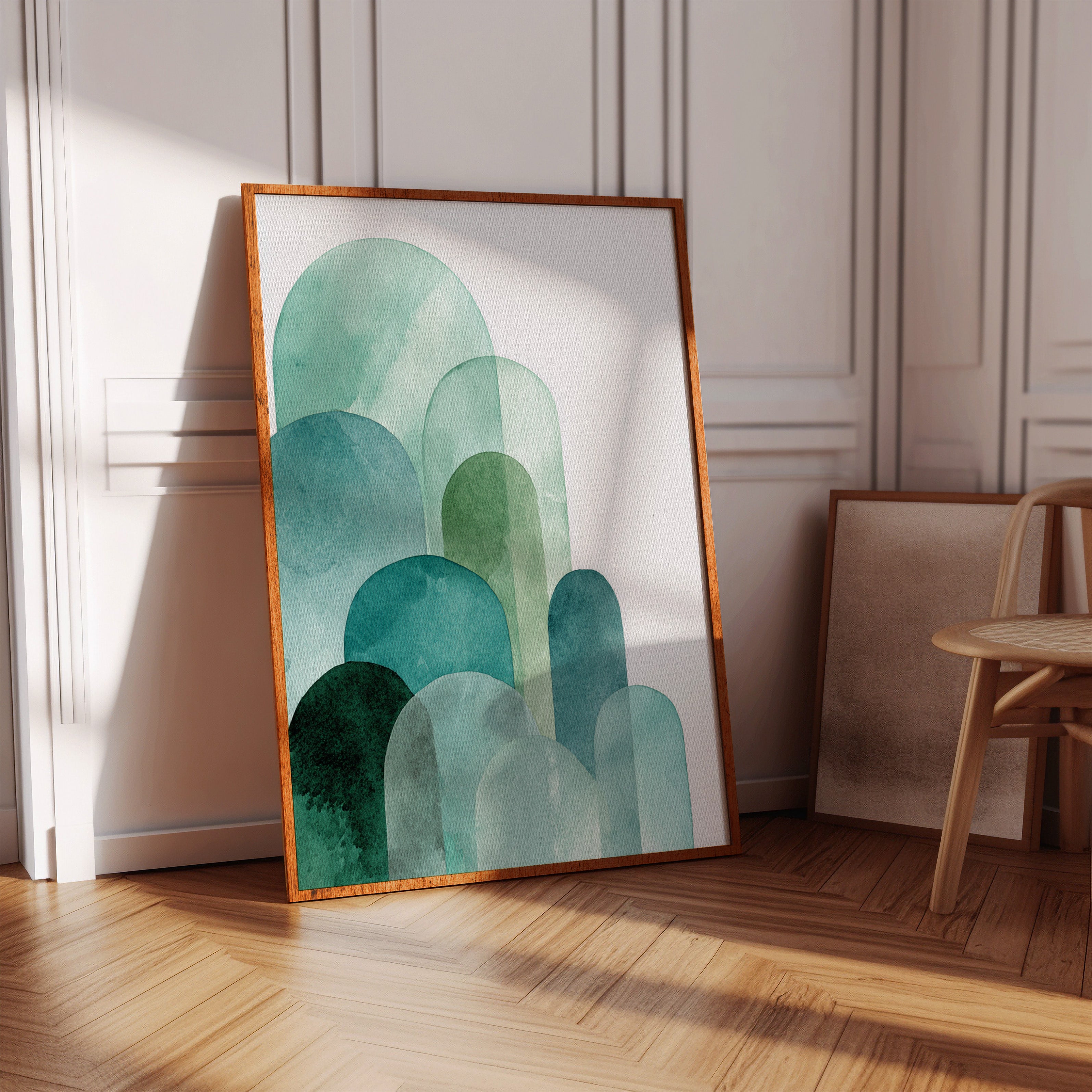 In a gentle ballet of blues and greens, this piece captures the serene rise and fall of soft hills, each curve a whisper of nature's calm. Anchored in the Artisanal collection, it embodies a handcrafted elegance that invites peace into any space. Layered textures and translucent washes create an immersive landscape, evoking the quiet strength of nature's undulating forms. Ideal for a cozy reading nook or a serene bedroom retreat, this piece brings a touch of tranquility to your surroundings.
