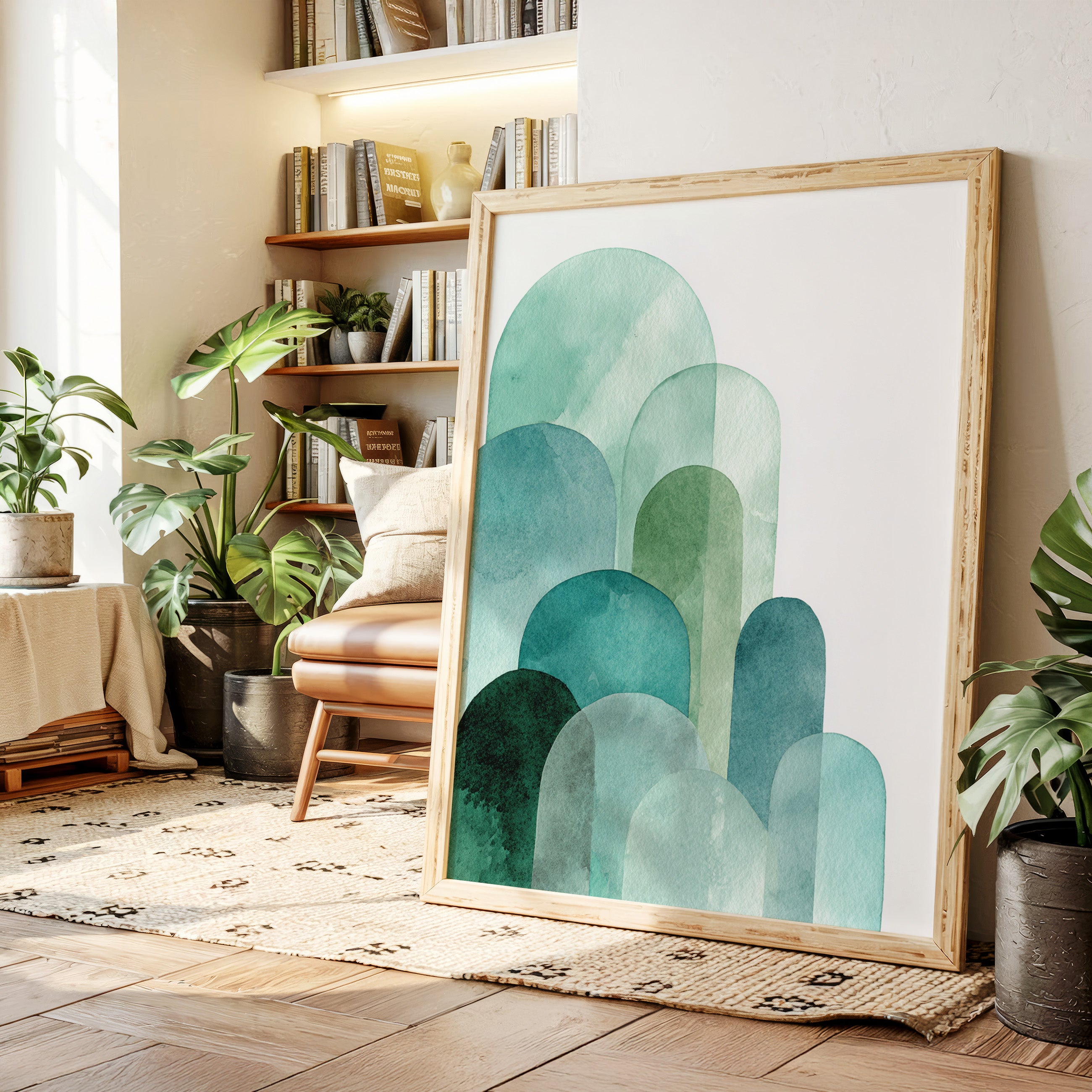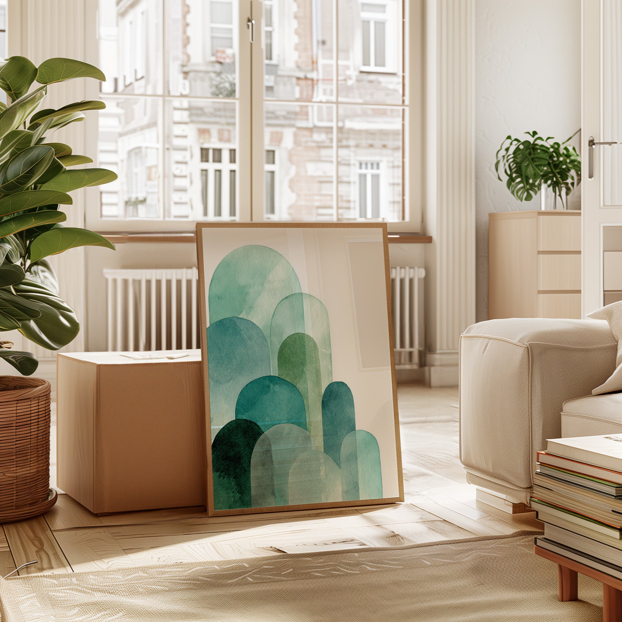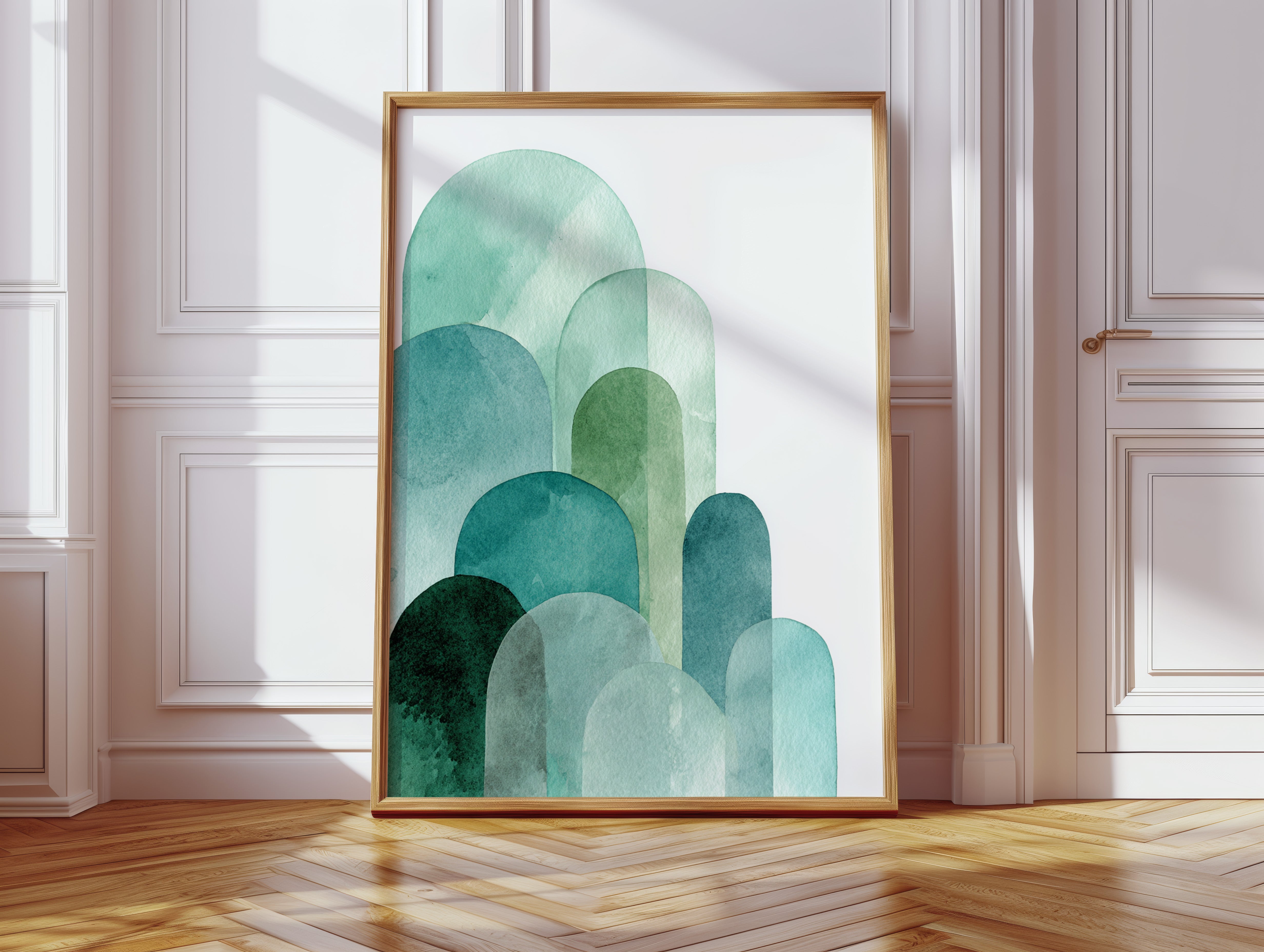 In a gentle ballet of blues and greens, this piece captures the serene rise and fall of soft hills, each curve a whisper of nature's calm. Anchored in the Artisanal collection, it embodies a handcrafted elegance that invites peace into any space. Layered textures and translucent washes create an immersive landscape, evoking the quiet strength of nature's undulating forms. Ideal for a cozy reading nook or a serene bedroom retreat, this piece brings a touch of tranquility to your surroundings.