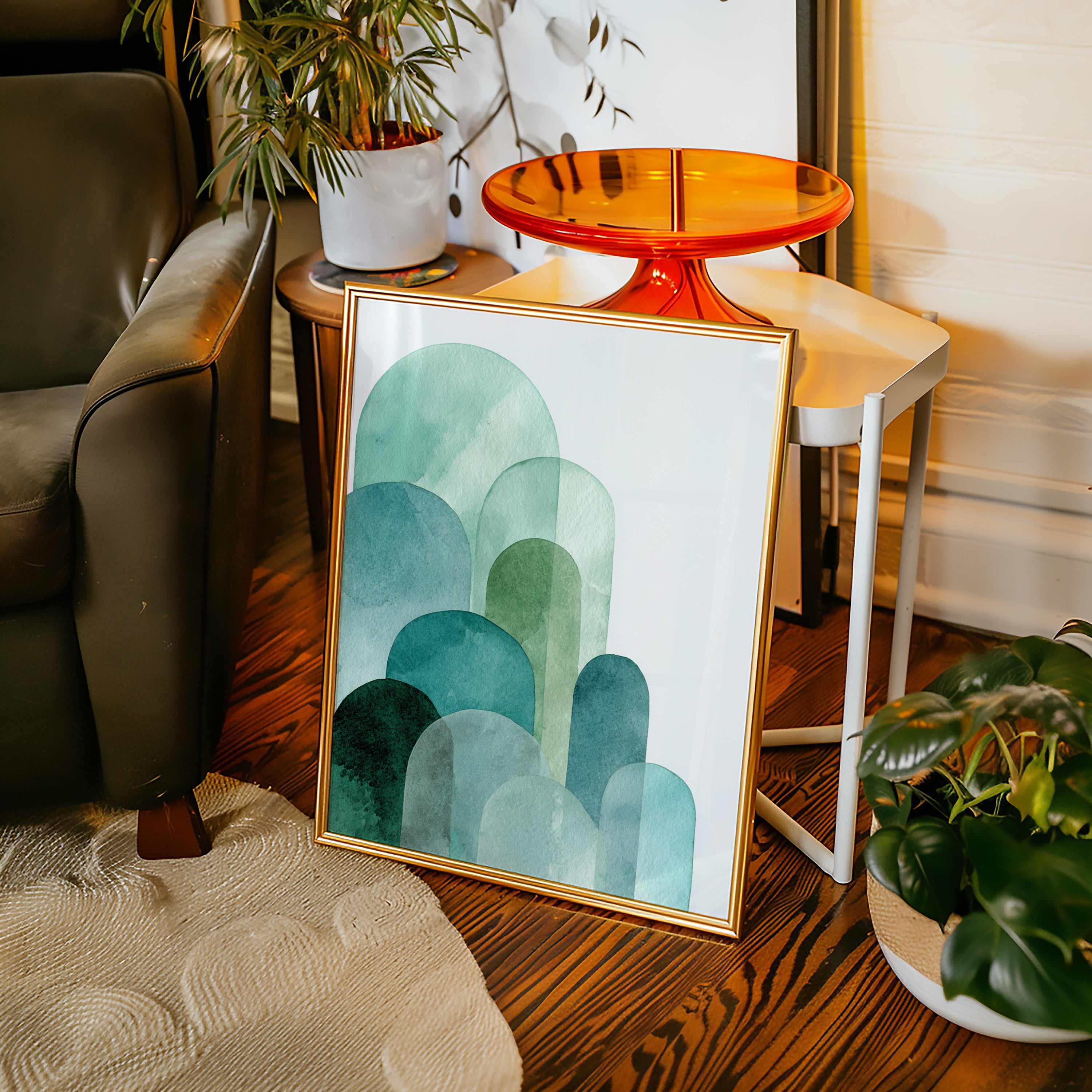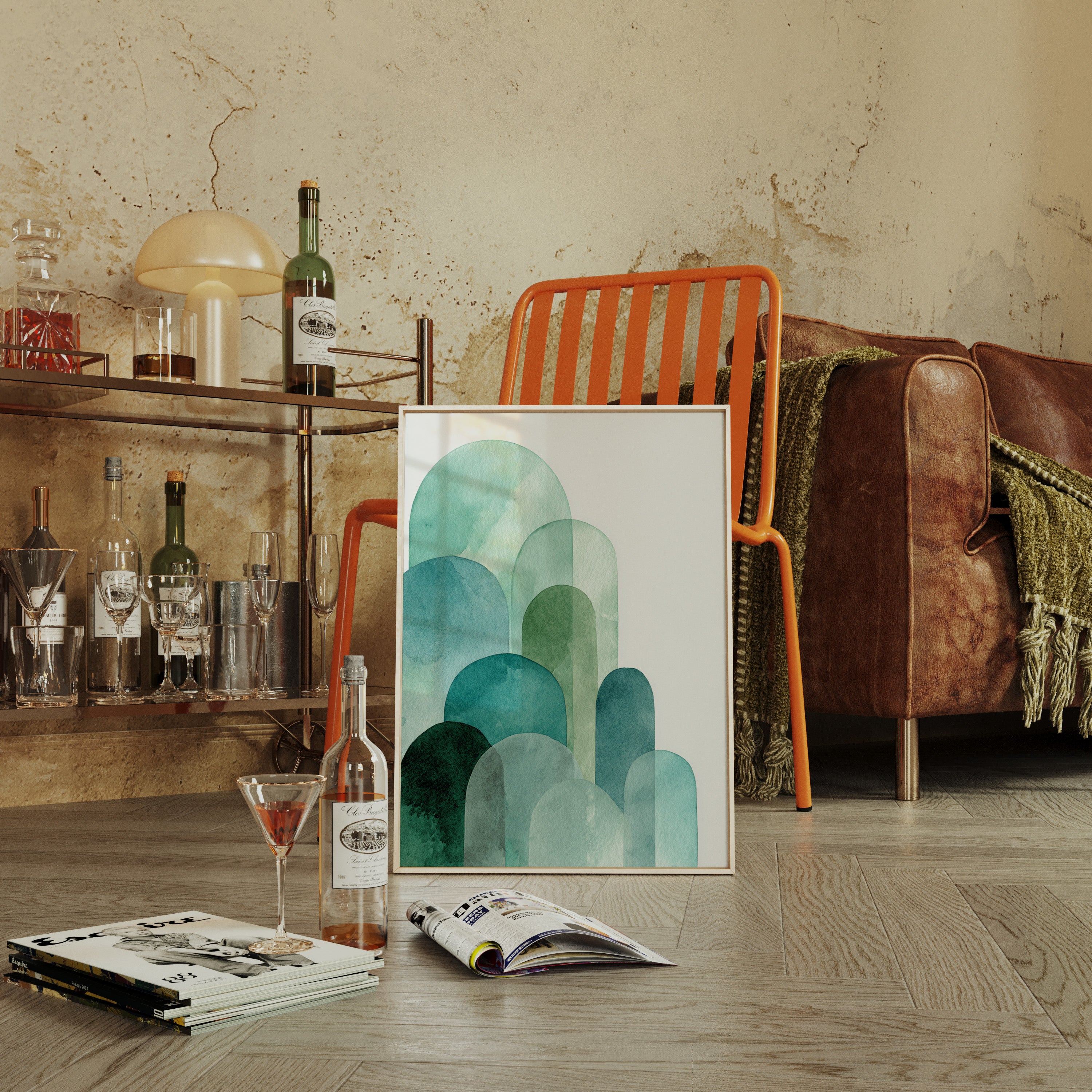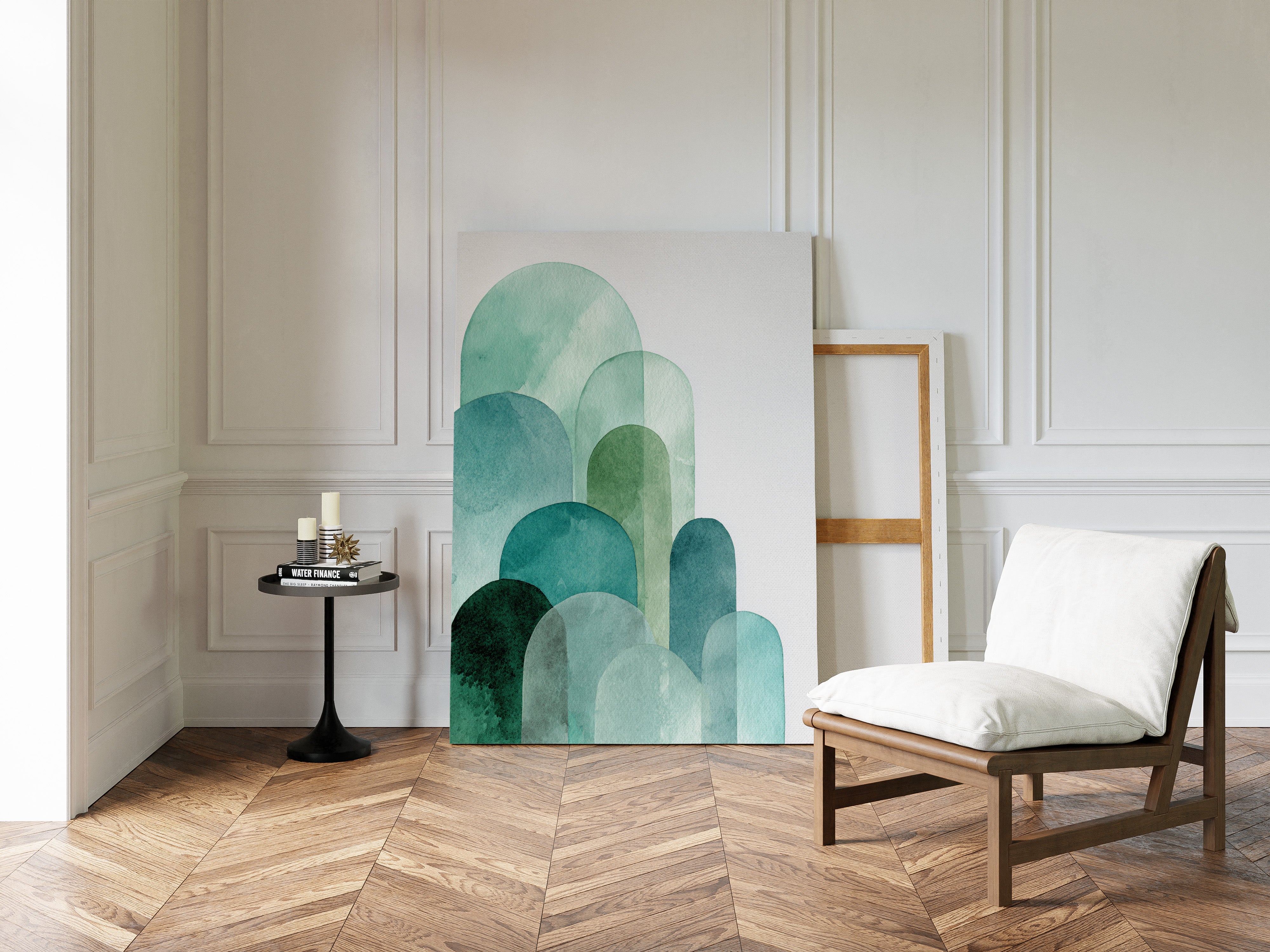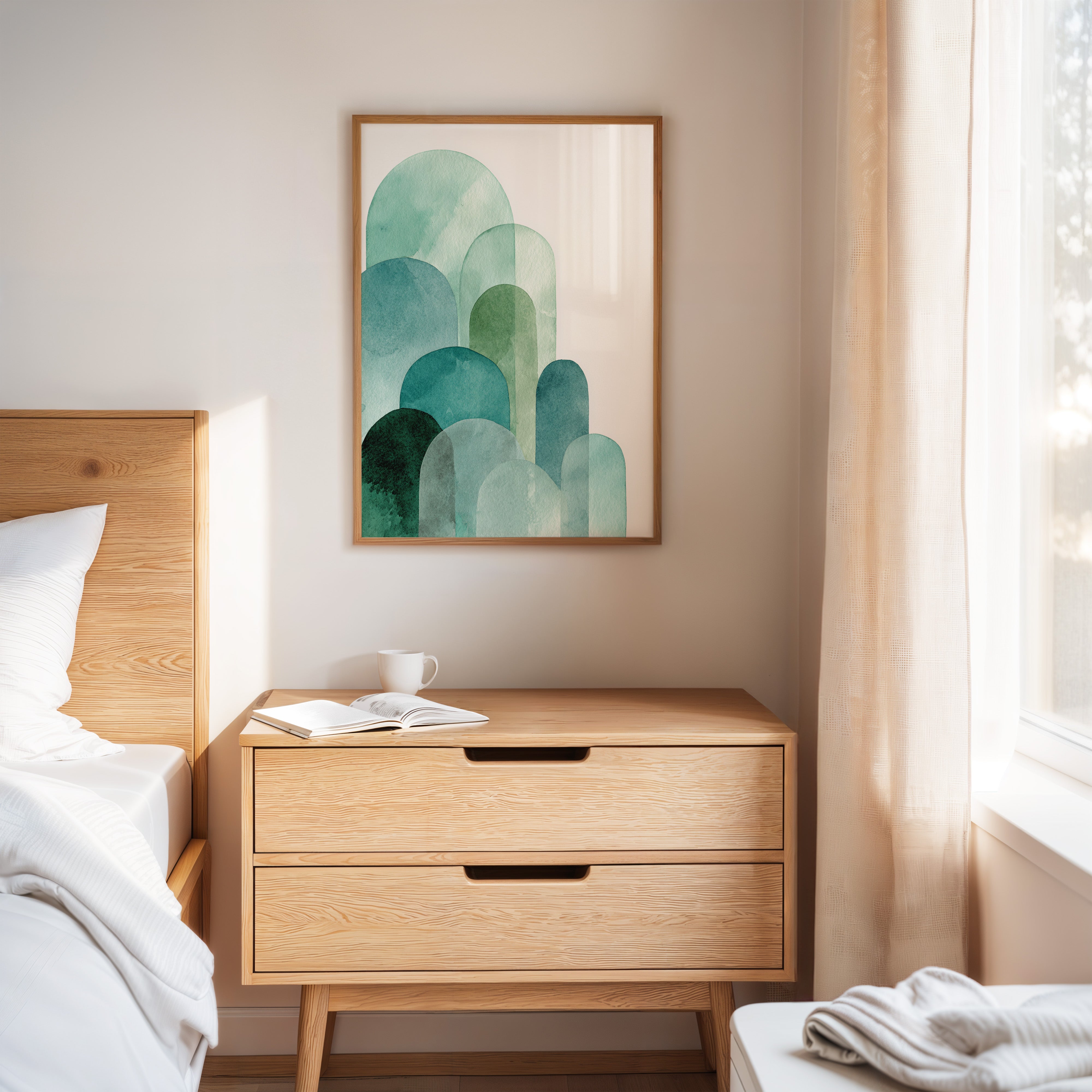 In a gentle ballet of blues and greens, this piece captures the serene rise and fall of soft hills, each curve a whisper of nature's calm. Anchored in the Artisanal collection, it embodies a handcrafted elegance that invites peace into any space. Layered textures and translucent washes create an immersive landscape, evoking the quiet strength of nature's undulating forms. Ideal for a cozy reading nook or a serene bedroom retreat, this piece brings a touch of tranquility to your surroundings.