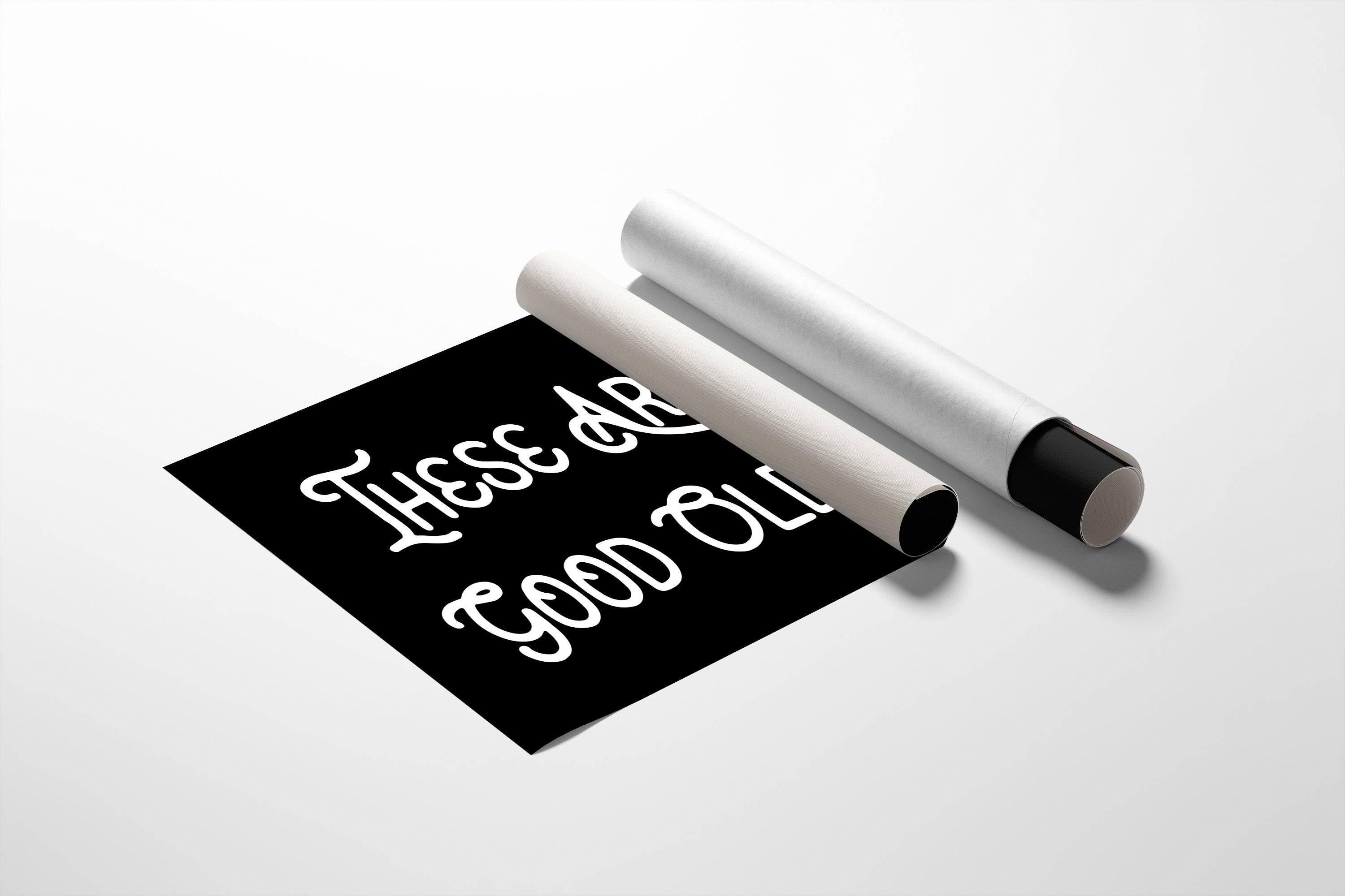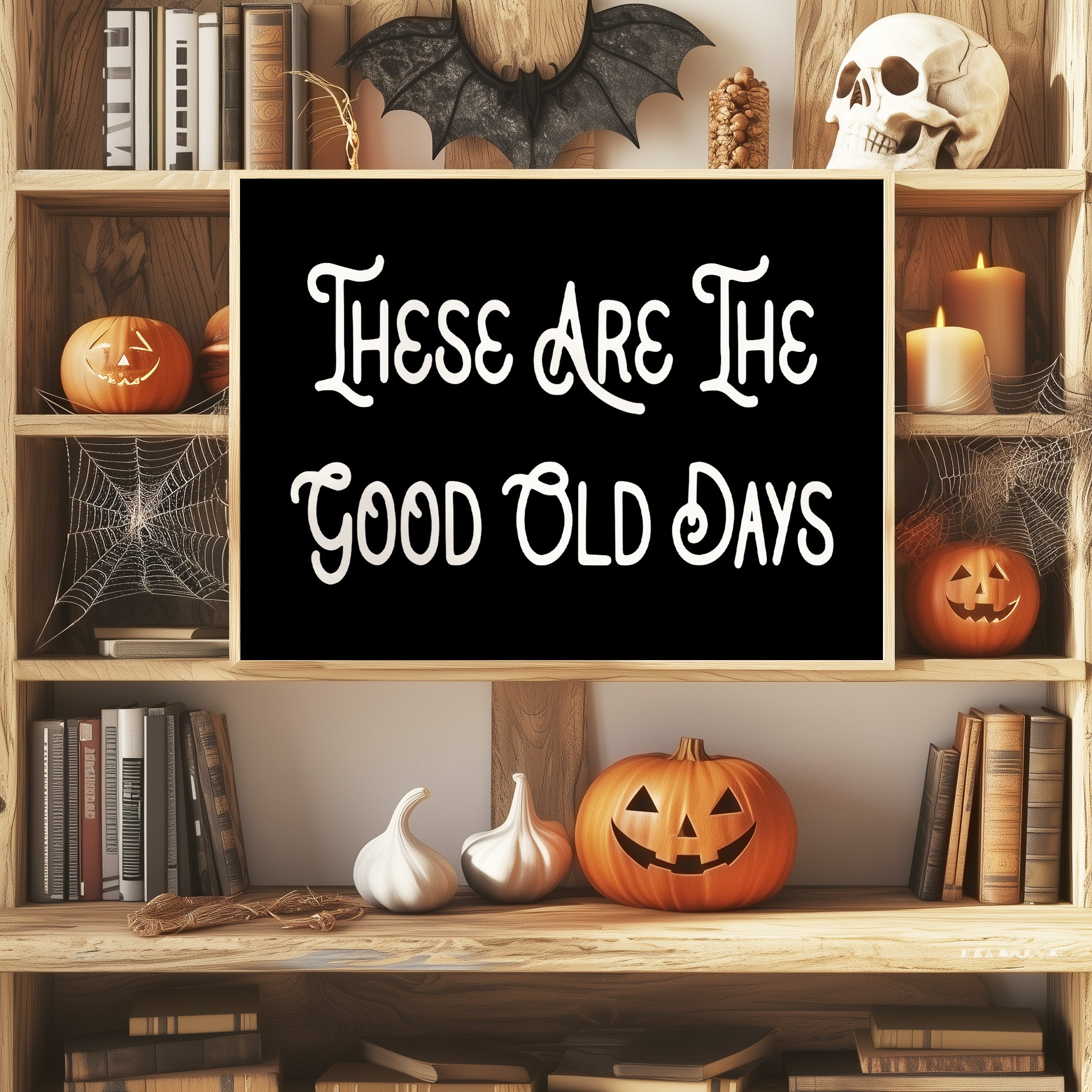 Bold typography curves against darkness, evoking the warm glow of remembered joy. The playful vintage lettering dances across the stark black background, each swirl and flourish carrying echoes of simpler times and cherished memories. This statement piece captures that bittersweet longing for days past while celebrating their enduring presence in our hearts.