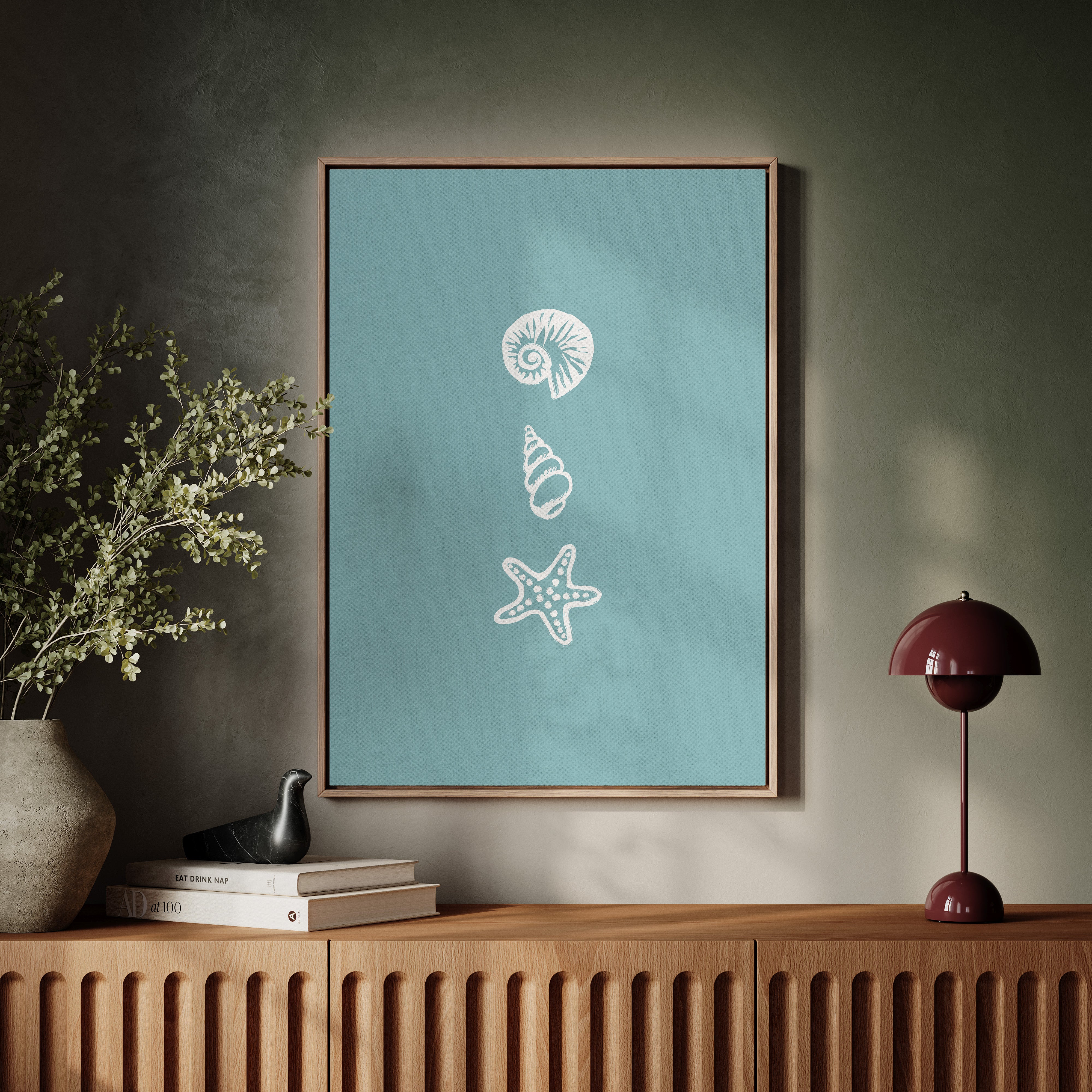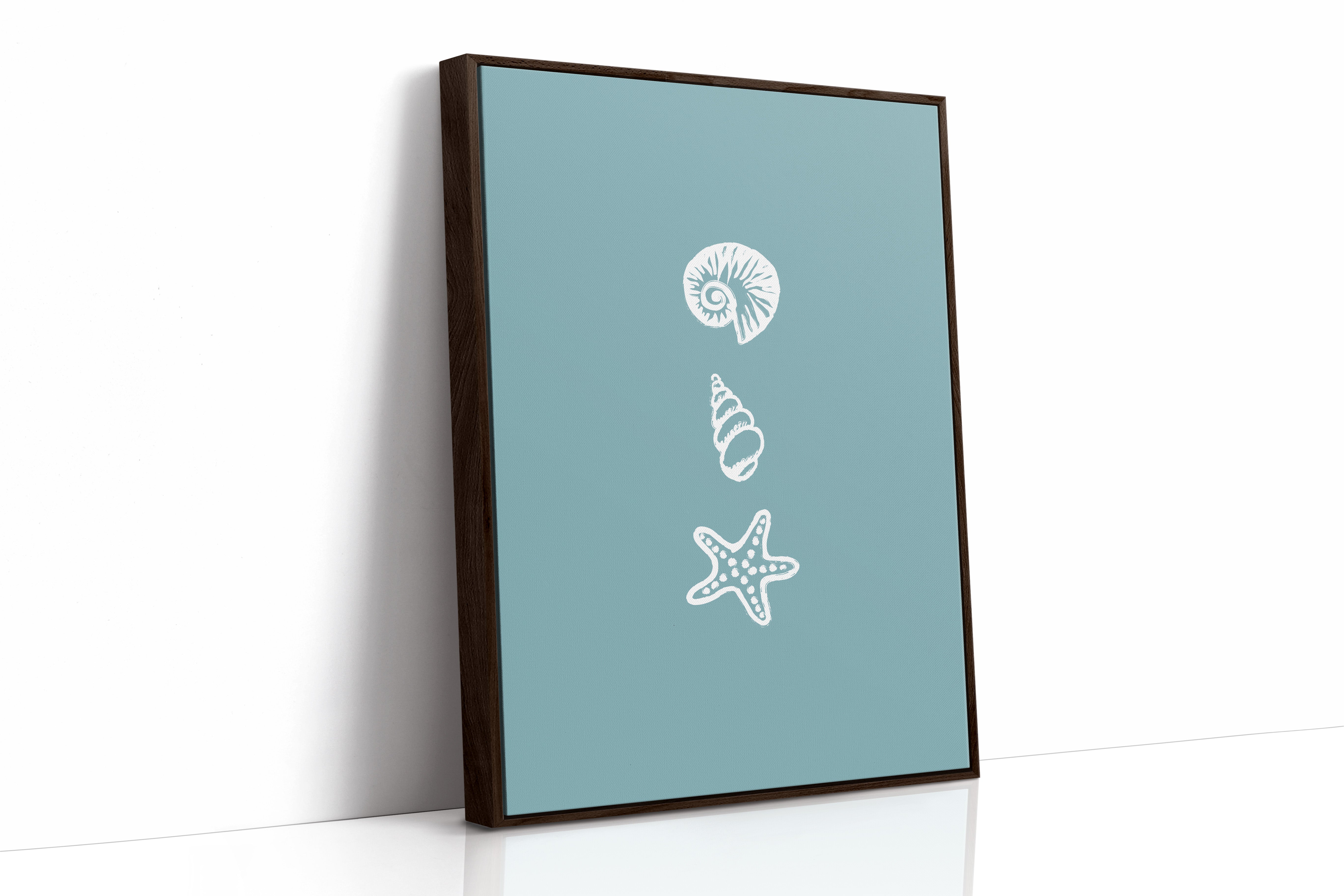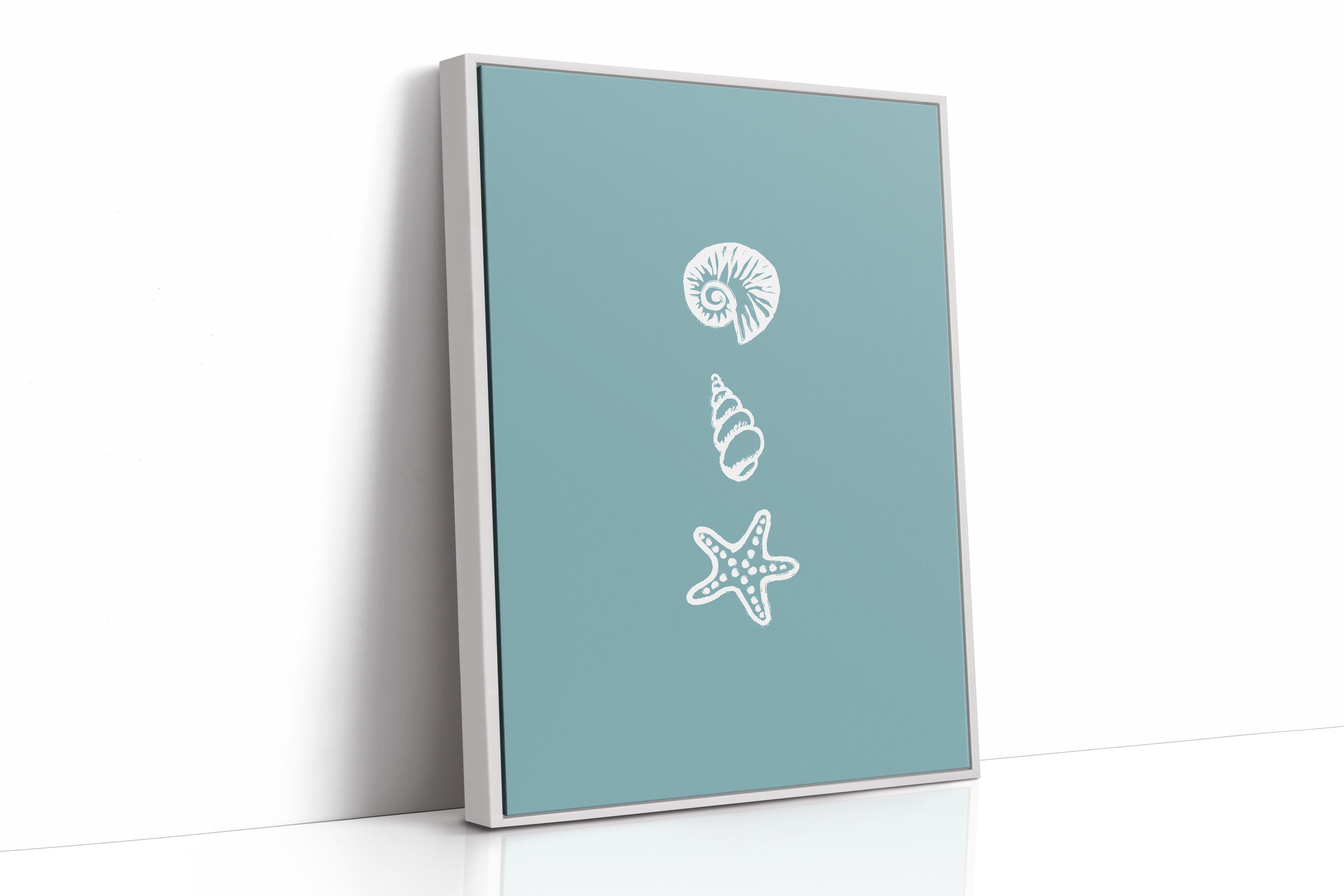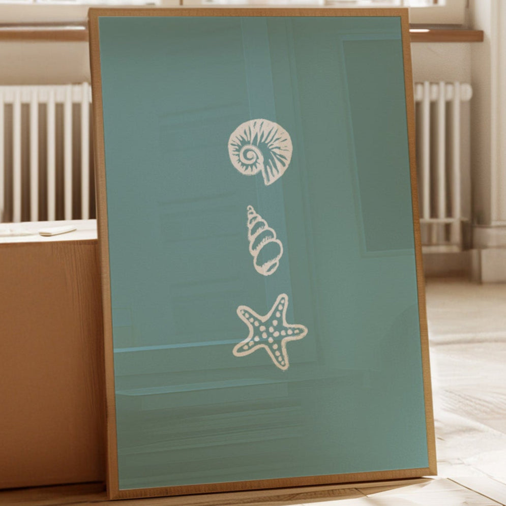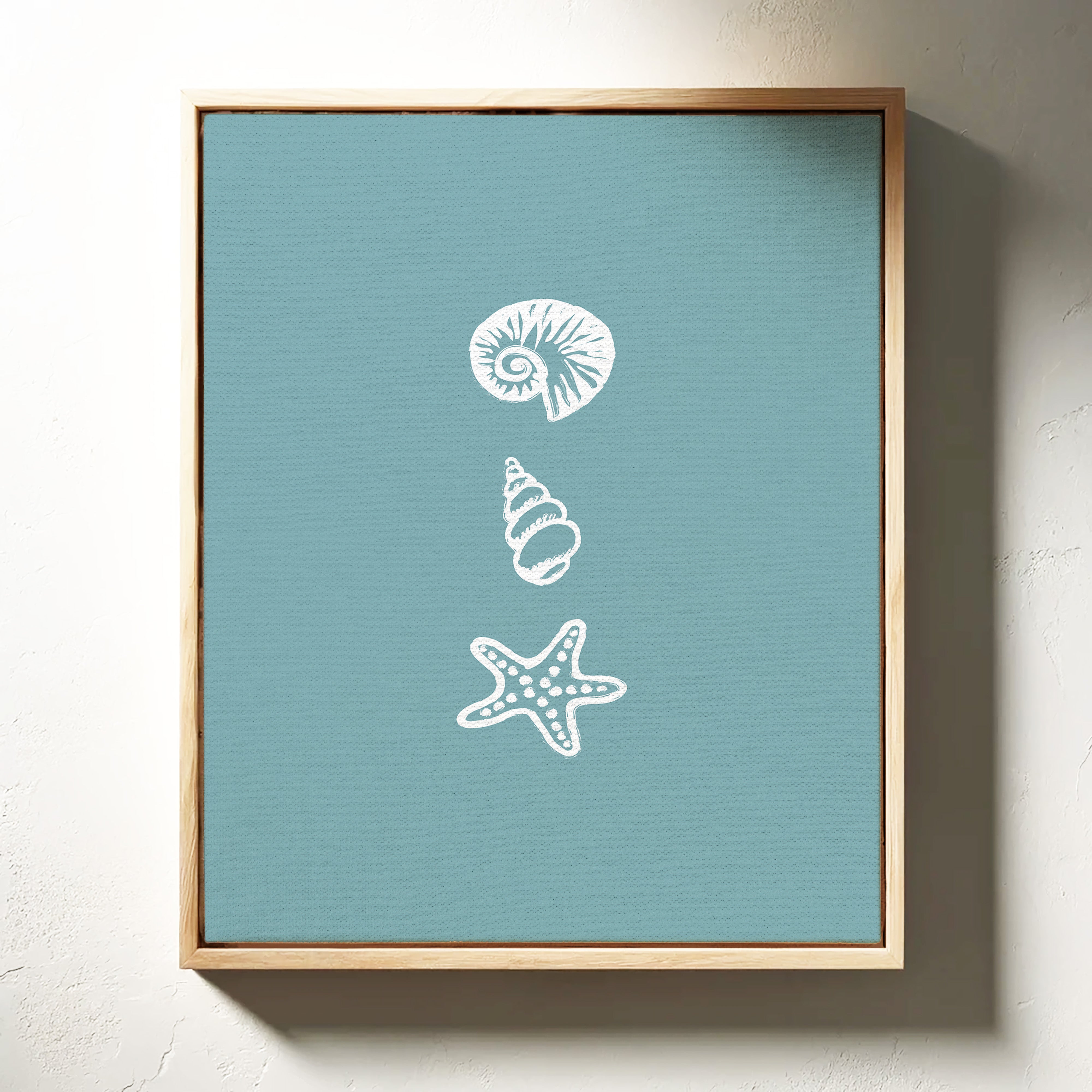 White seashells drift against a serene aqua backdrop, each one a delicate story from the deep. This piece from our Contemporary collection brings minimalist coastal elegance to modern spaces. The pristine nautical elements - a nautilus spiral, conch shell, and starfish - dance in perfect harmony against the soothing seafoam background, creating a sense of peaceful floating meditation. This calming composition would bring a touch of coastal serenity to a bathroom, bedroom, or any space seeking that perfect balance of modern simplicity and oceanic charm. Let these timeless maritime symbols remind you of peaceful days by the sea.
