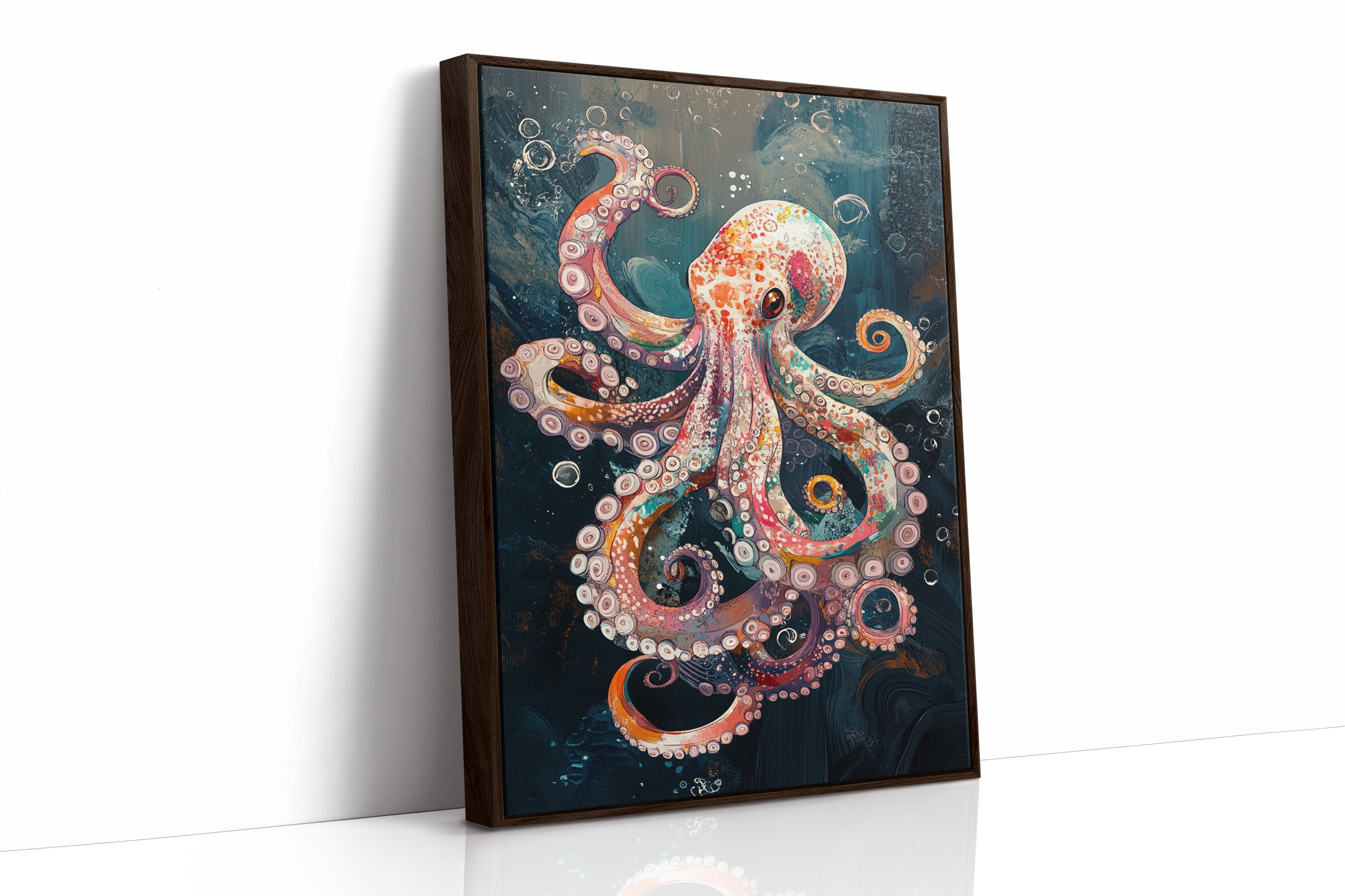 Dive into the mesmerizing depths with 'Oceanic Whirl of Dreams,' a vibrant portrayal of the sea's mysteries. This striking artwork captures the fluid grace of an octopus with swirling tendrils and a kaleidoscope of colors, set against a deep, dark ocean backdrop. The intricate details and dynamic composition make this piece a captivating focal point, perfect for adding a touch of marine wonder to any space. Let your imagination swim in the enchanting allure of underwater realms every time you gaze upon this masterpiece.