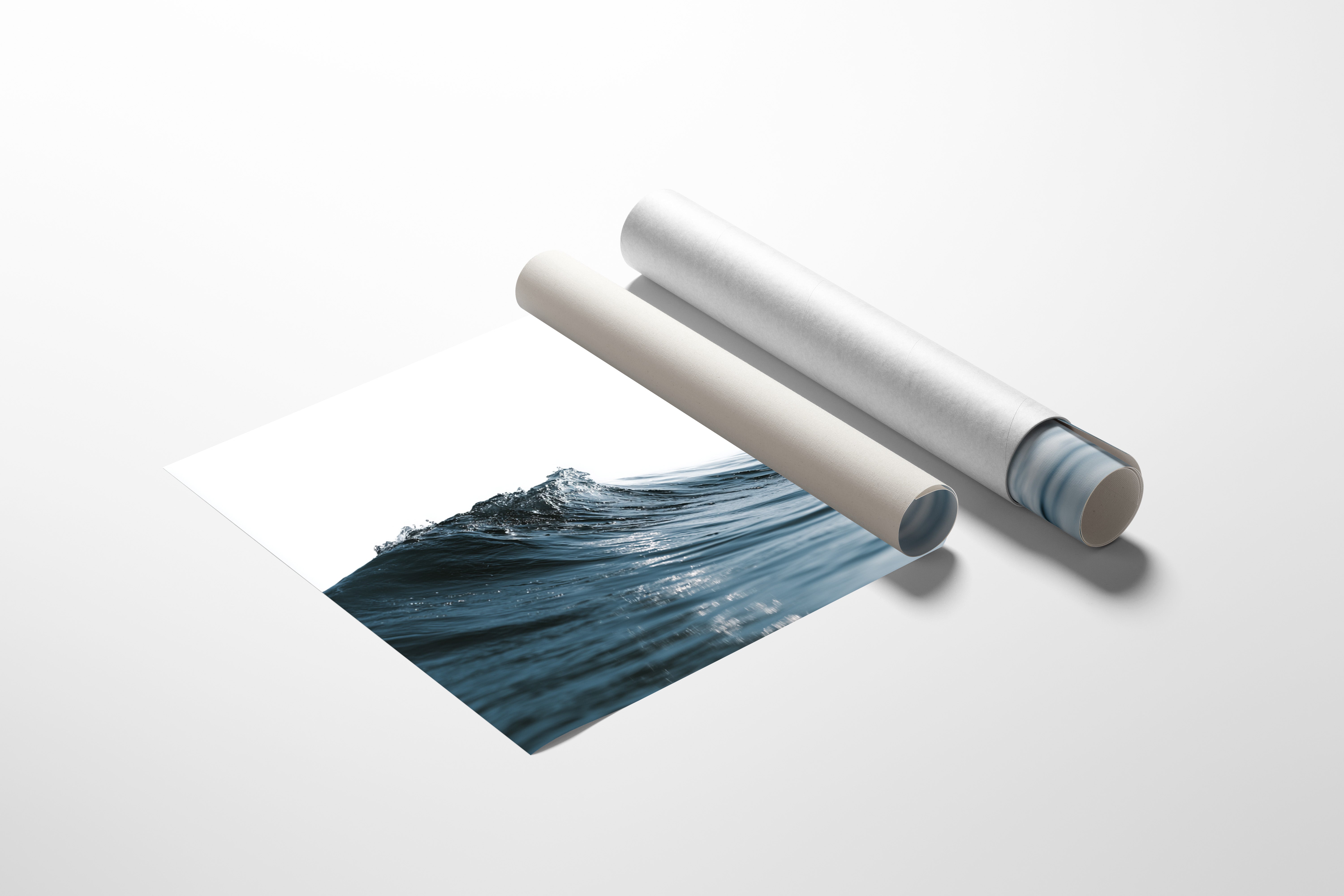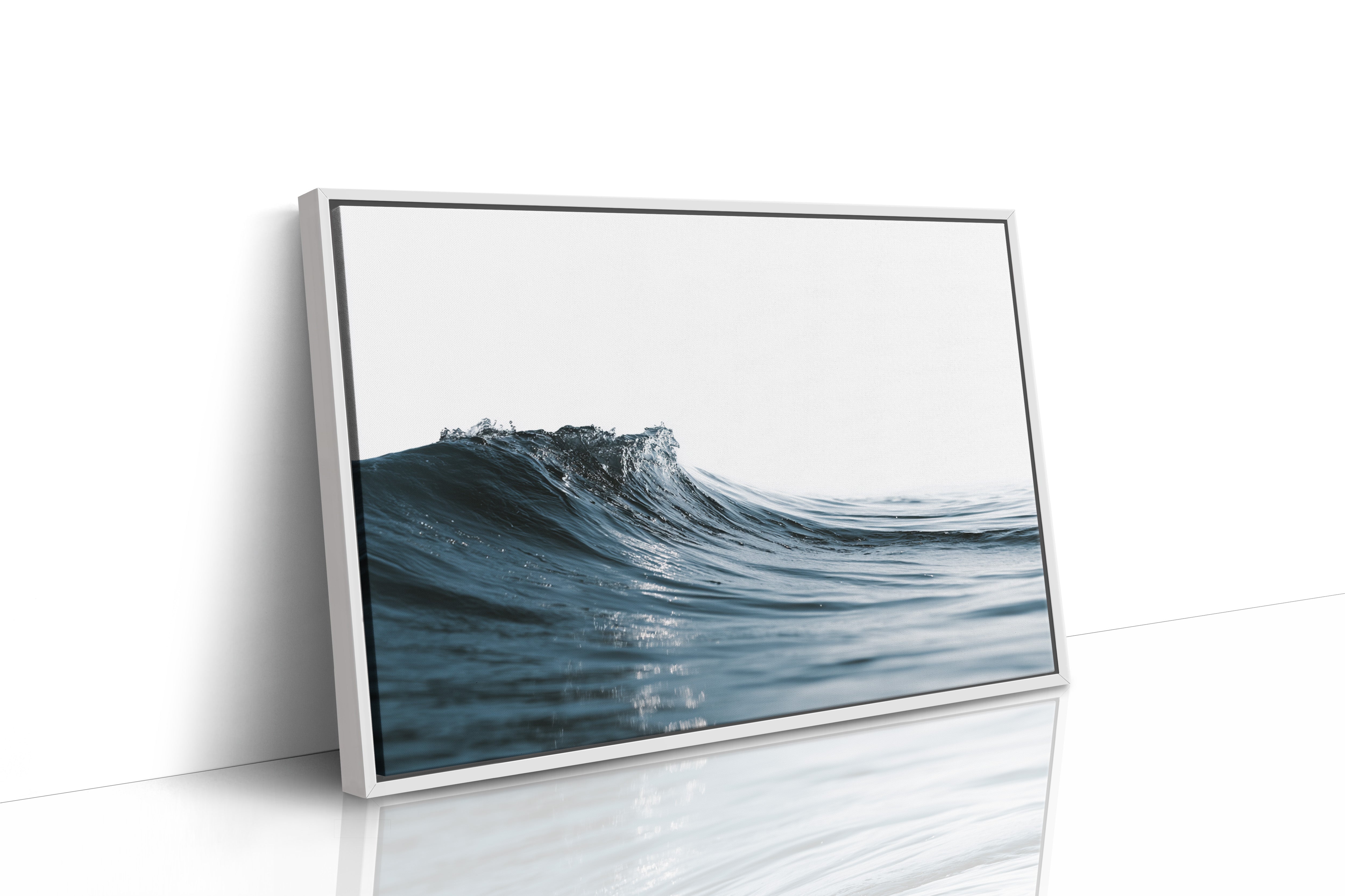 A single wave rises with quiet determination, its crest catching silvery morning light against deep indigo waters. The intimate perspective places us at water level, where we can almost feel the surge of energy building beneath the surface. Delicate droplets scatter like diamonds along the wave's edge, while smooth, fluid curves sweep across the frame in a mesmerizing display of nature's rhythm. This piece brings the raw power of the ocean into intimate focus, creating a moment of contemplative beauty.