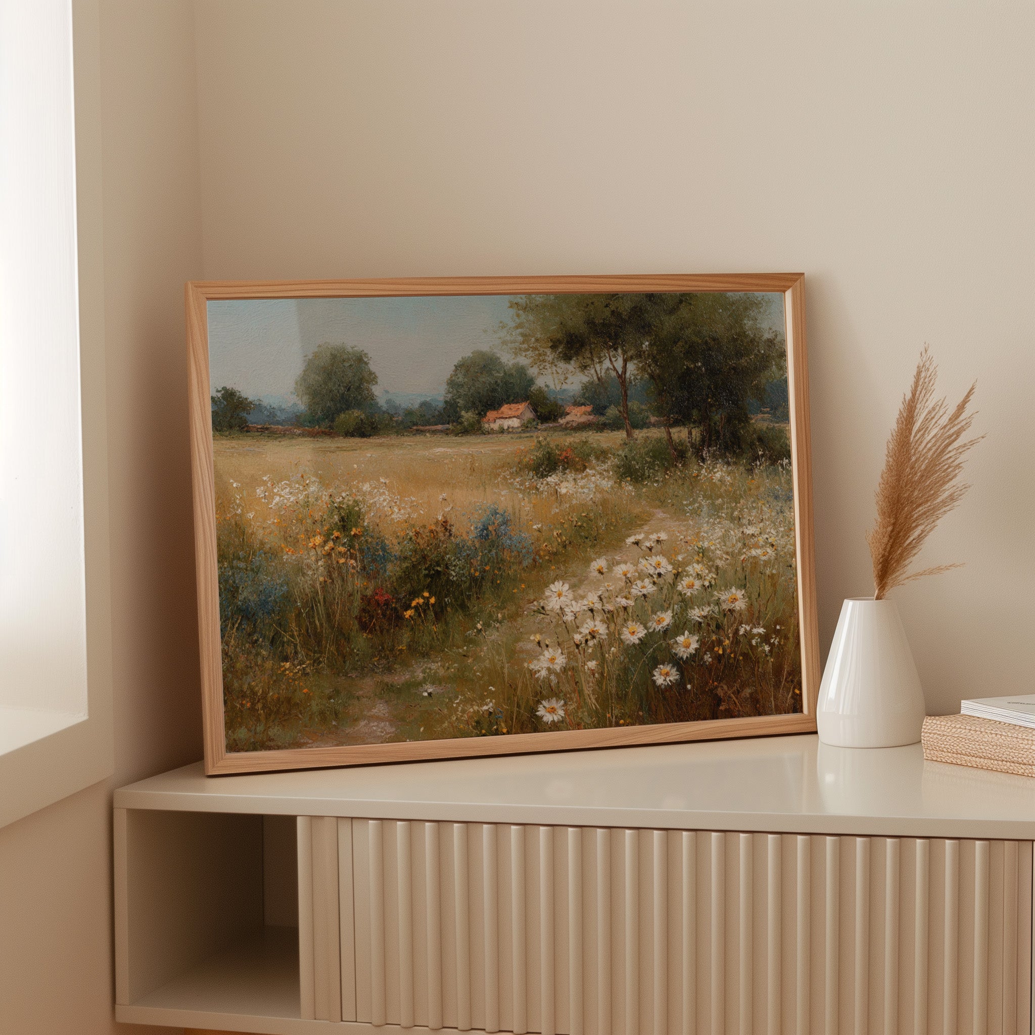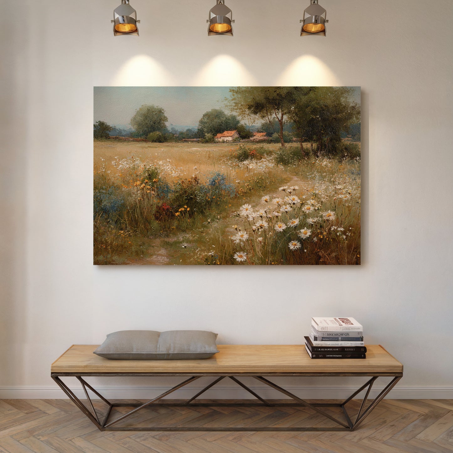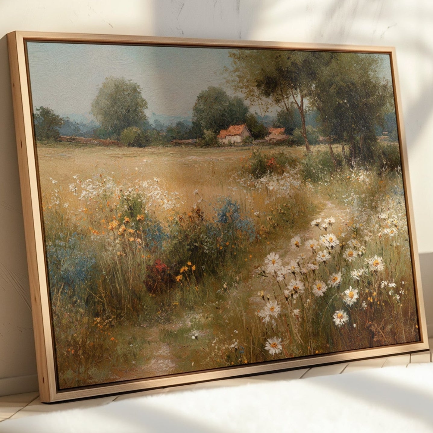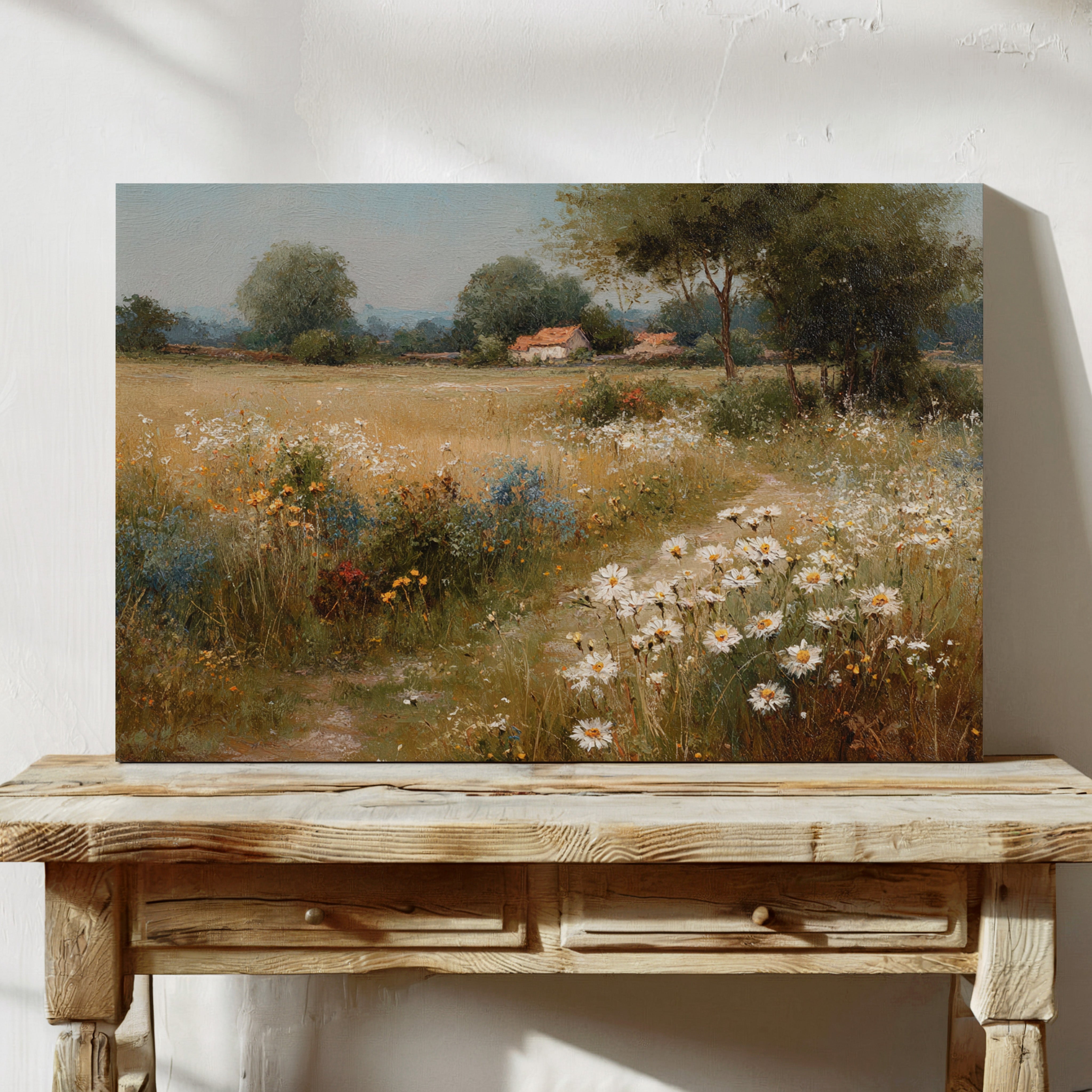 Amidst the gentle sway of wildflowers, a winding path invites wanderers to explore the serenity of rural life. This piece captures the essence of the artisanal collection, celebrating nature's untouched beauty. The vibrant daisies dance in the breeze, their petals a contrast to the golden grasses that stretch towards a distant homestead, evoking a sense of peace and nostalgia. Ideal for a cozy living room or a sunlit study, this artwork brings the warmth of the countryside indoors.