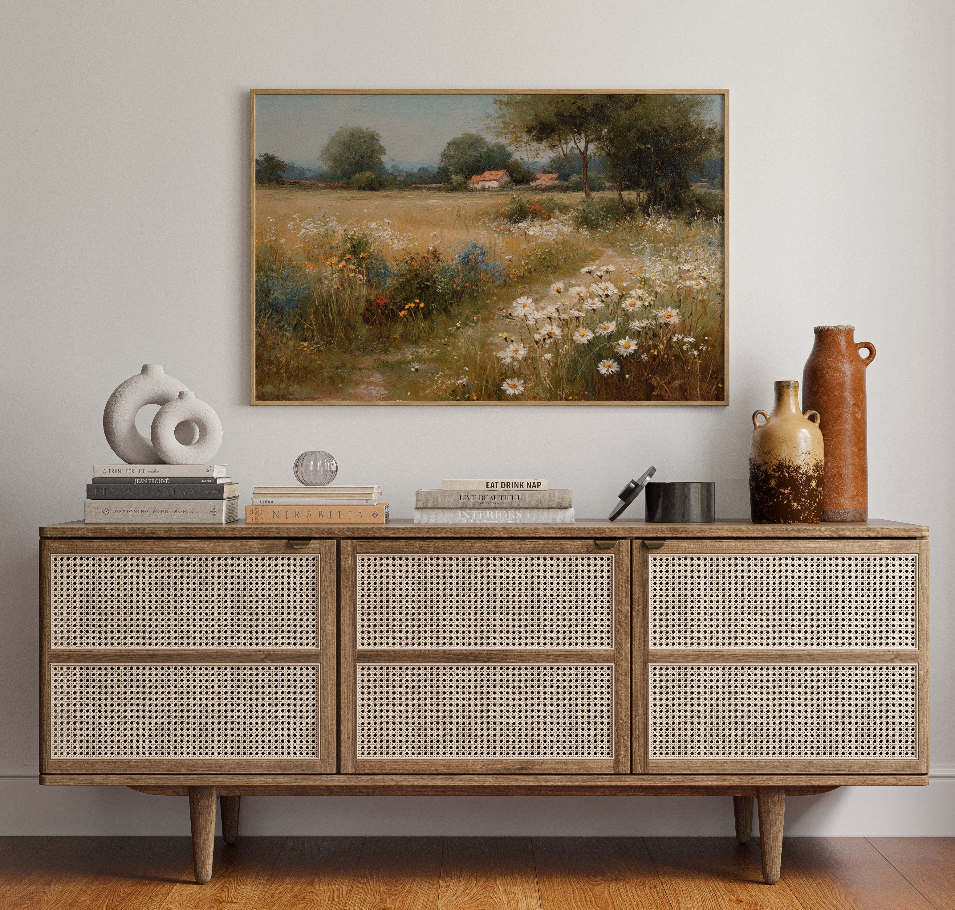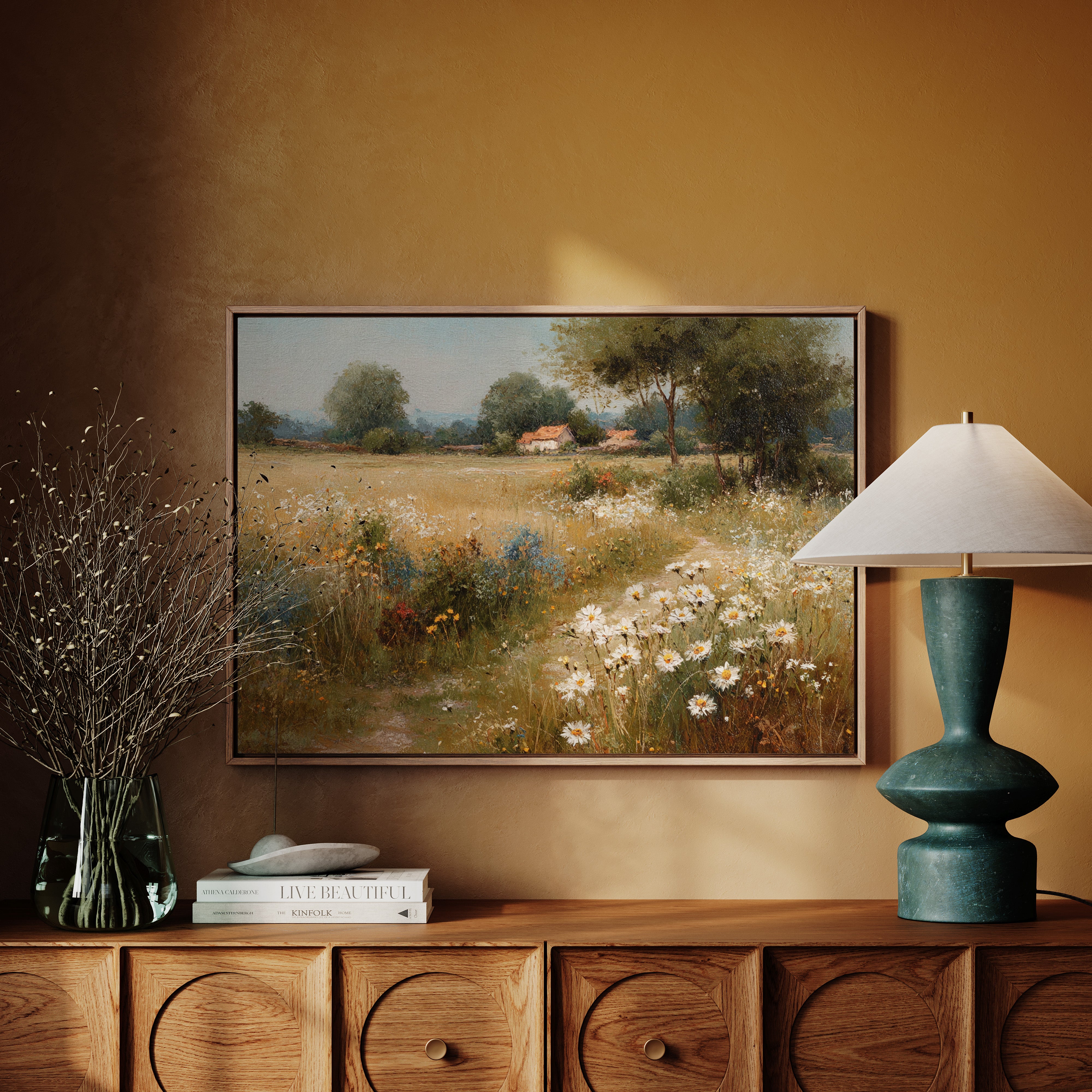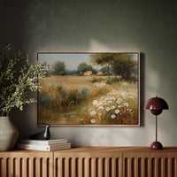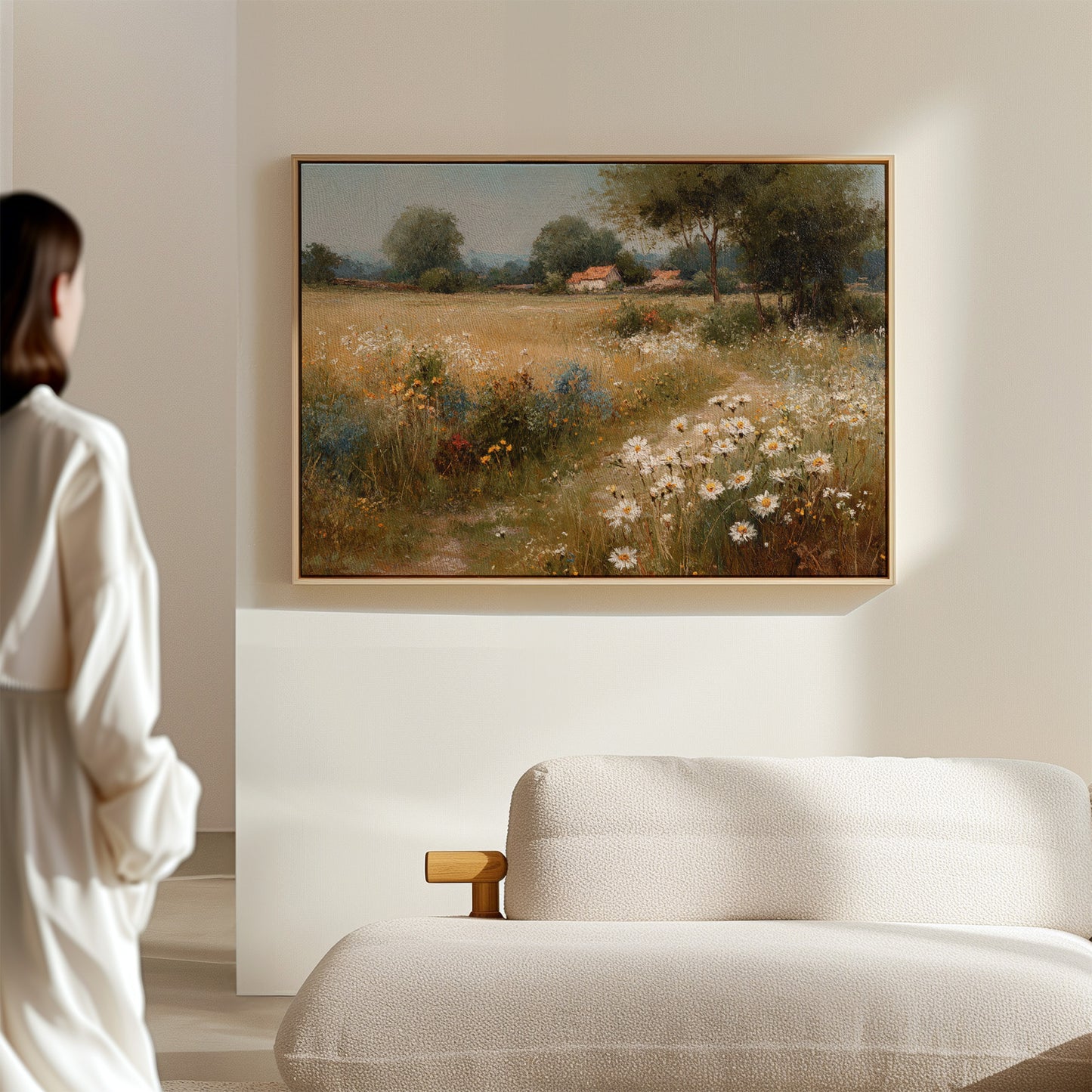 Amidst the gentle sway of wildflowers, a winding path invites wanderers to explore the serenity of rural life. This piece captures the essence of the artisanal collection, celebrating nature's untouched beauty. The vibrant daisies dance in the breeze, their petals a contrast to the golden grasses that stretch towards a distant homestead, evoking a sense of peace and nostalgia. Ideal for a cozy living room or a sunlit study, this artwork brings the warmth of the countryside indoors.