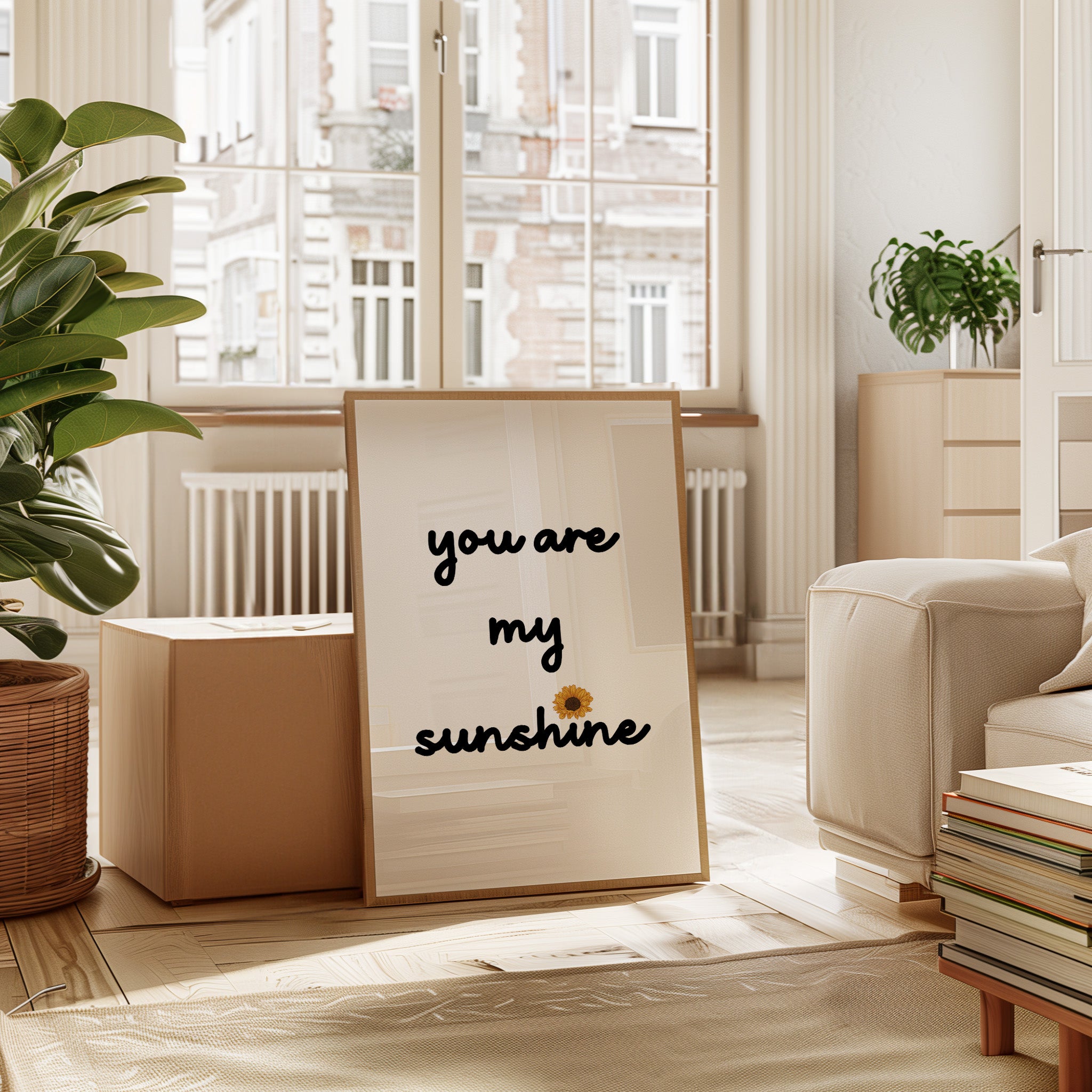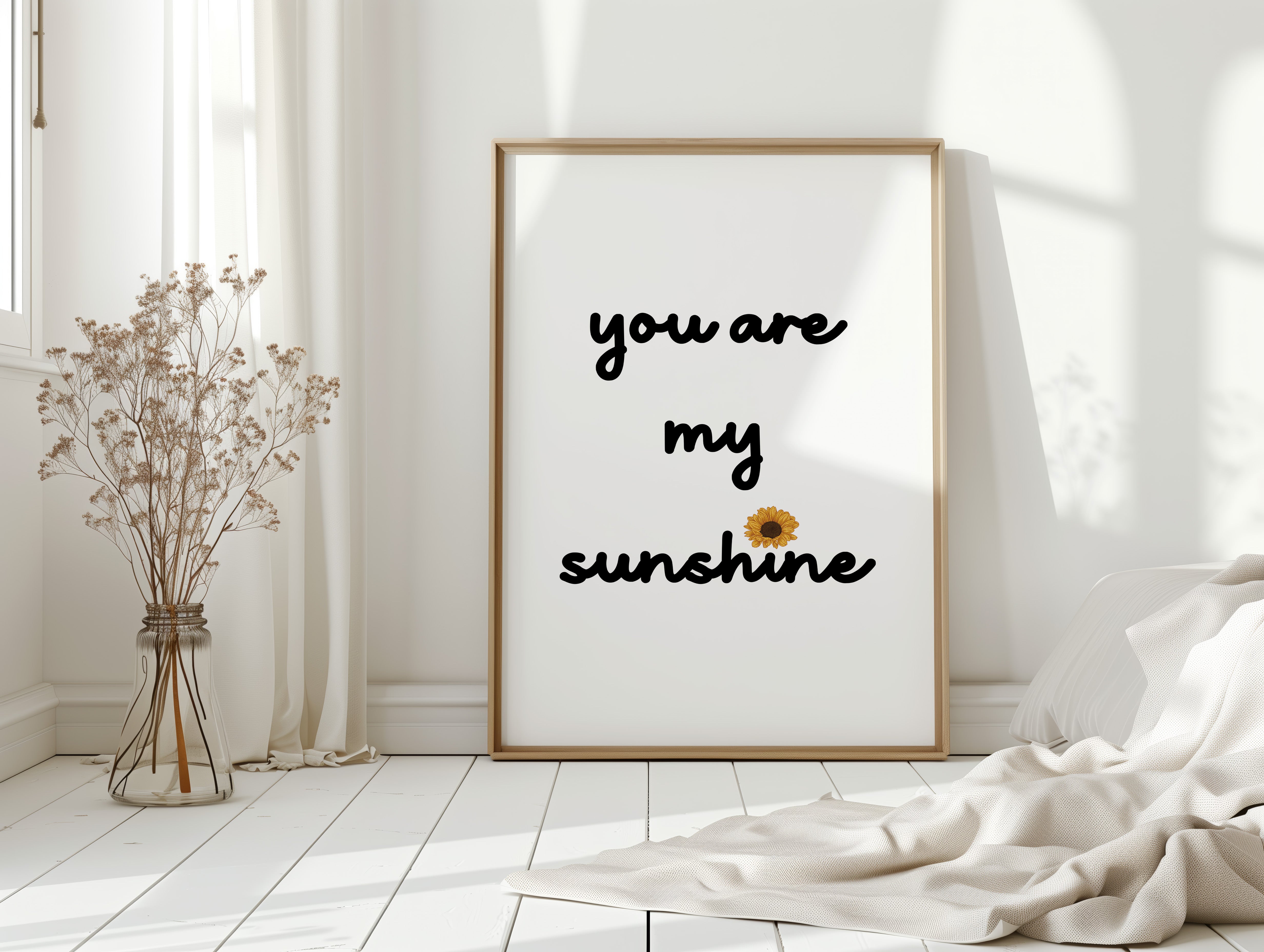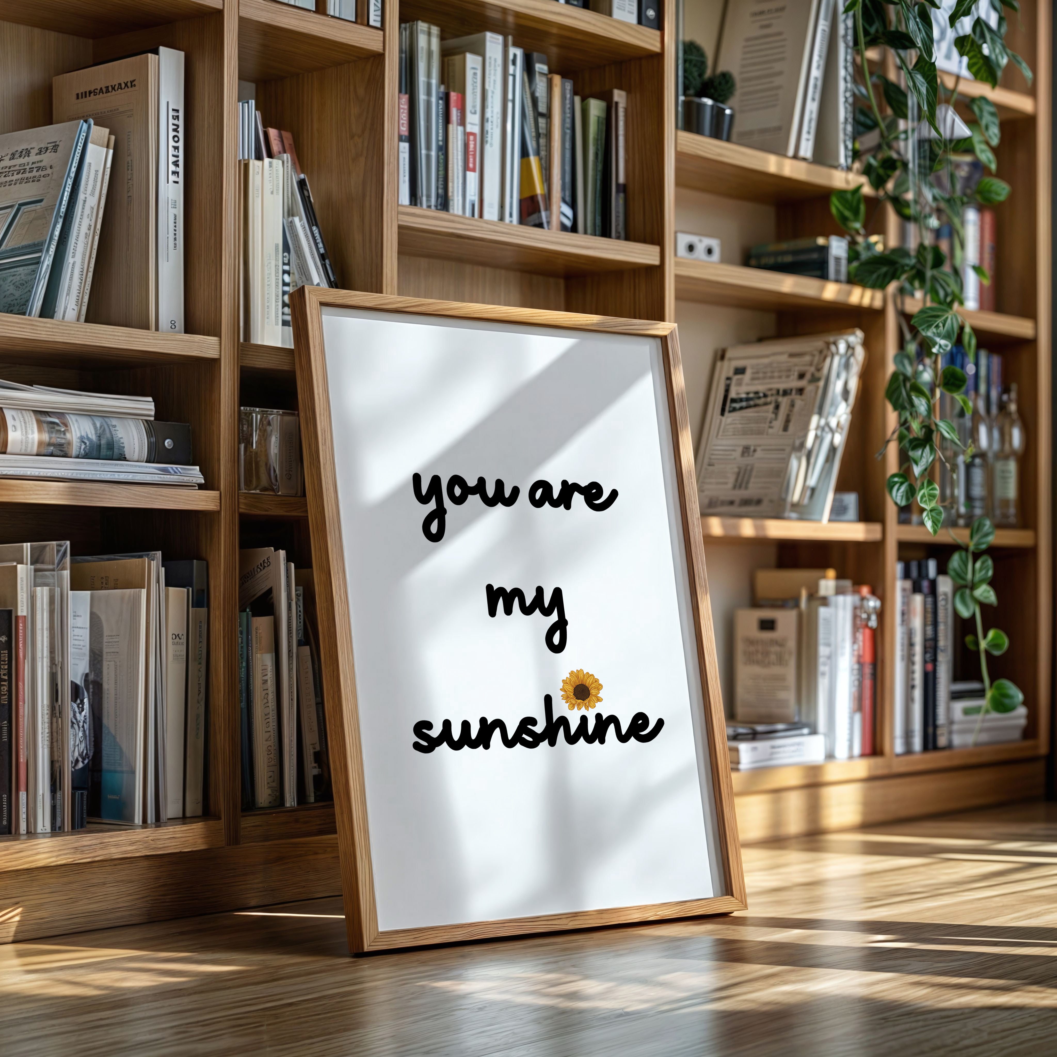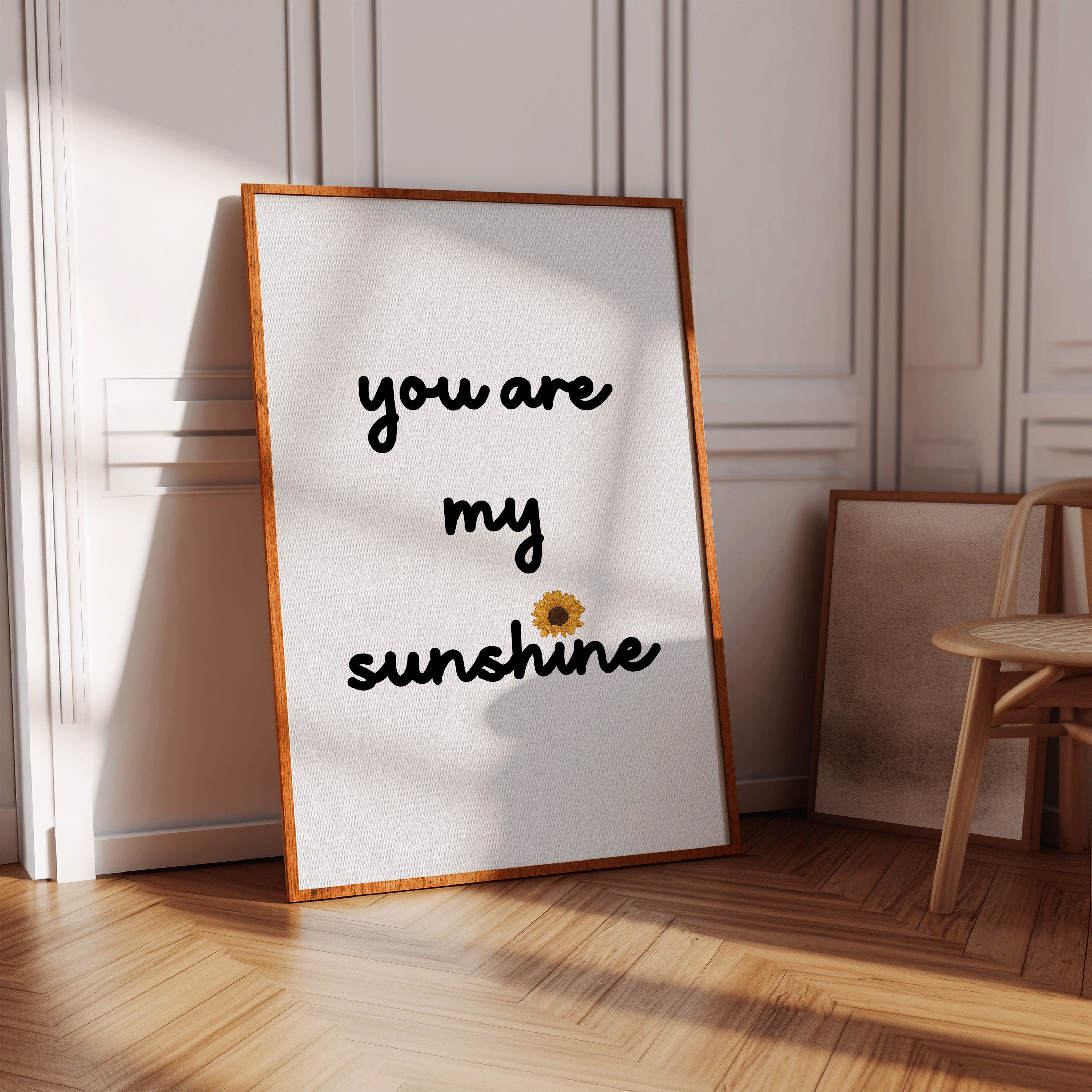 Simple words carry the weight of summer's warmth, punctuated by a single golden sunflower that speaks volumes in its simplicity. This piece exemplifies the modern minimalist approach to botanical expression. Bold black typography dances with delicate illustration, creating a perfect balance between strength and tenderness. The sunflower serves as nature's exclamation point, adding a splash of warmth and authenticity to the heartfelt message. This piece finds its perfect home in a nursery, bedroom, or any space where daily affirmations bloom into reality. Each glance serves as a gentle reminder of love's constant presence, as steady as the sun itself.