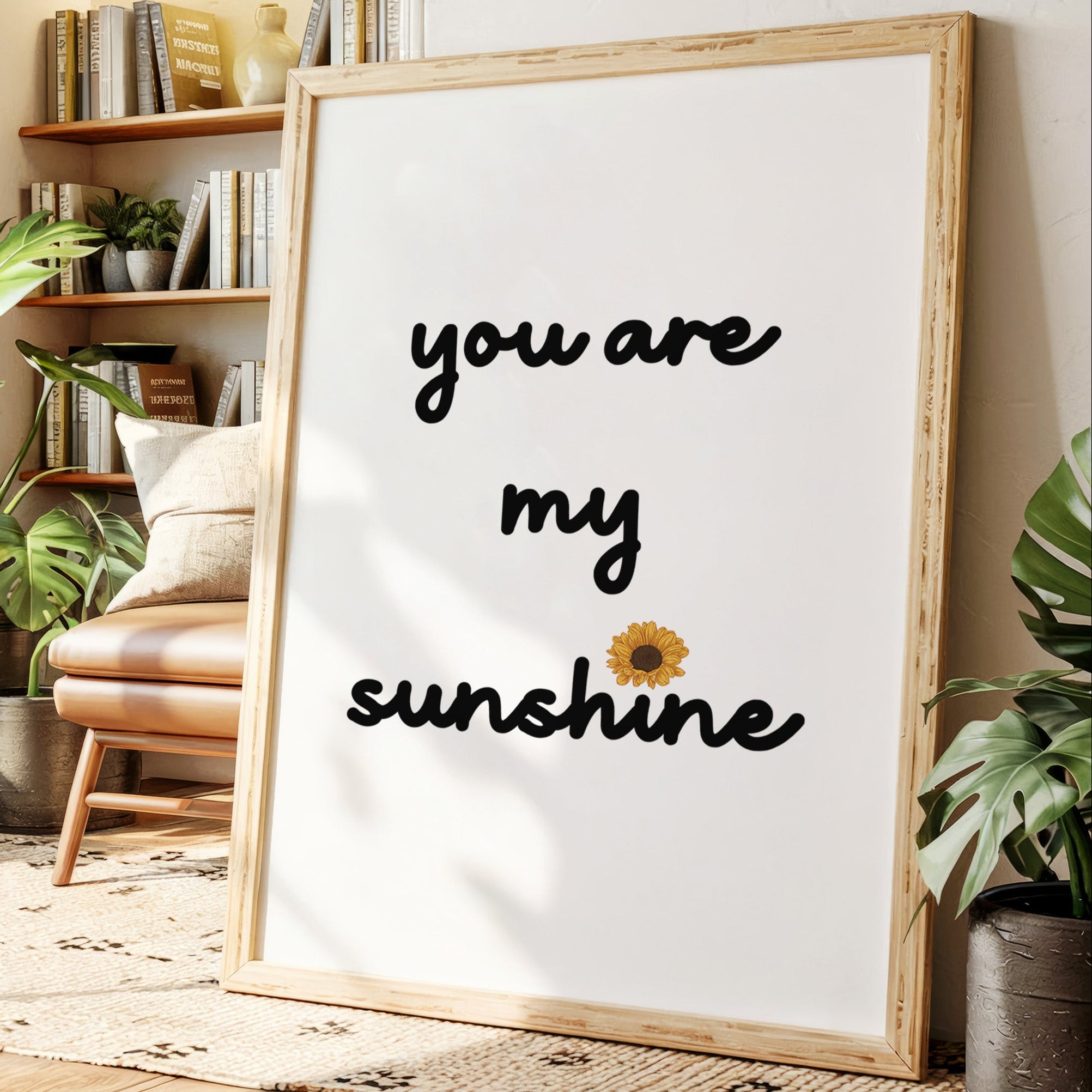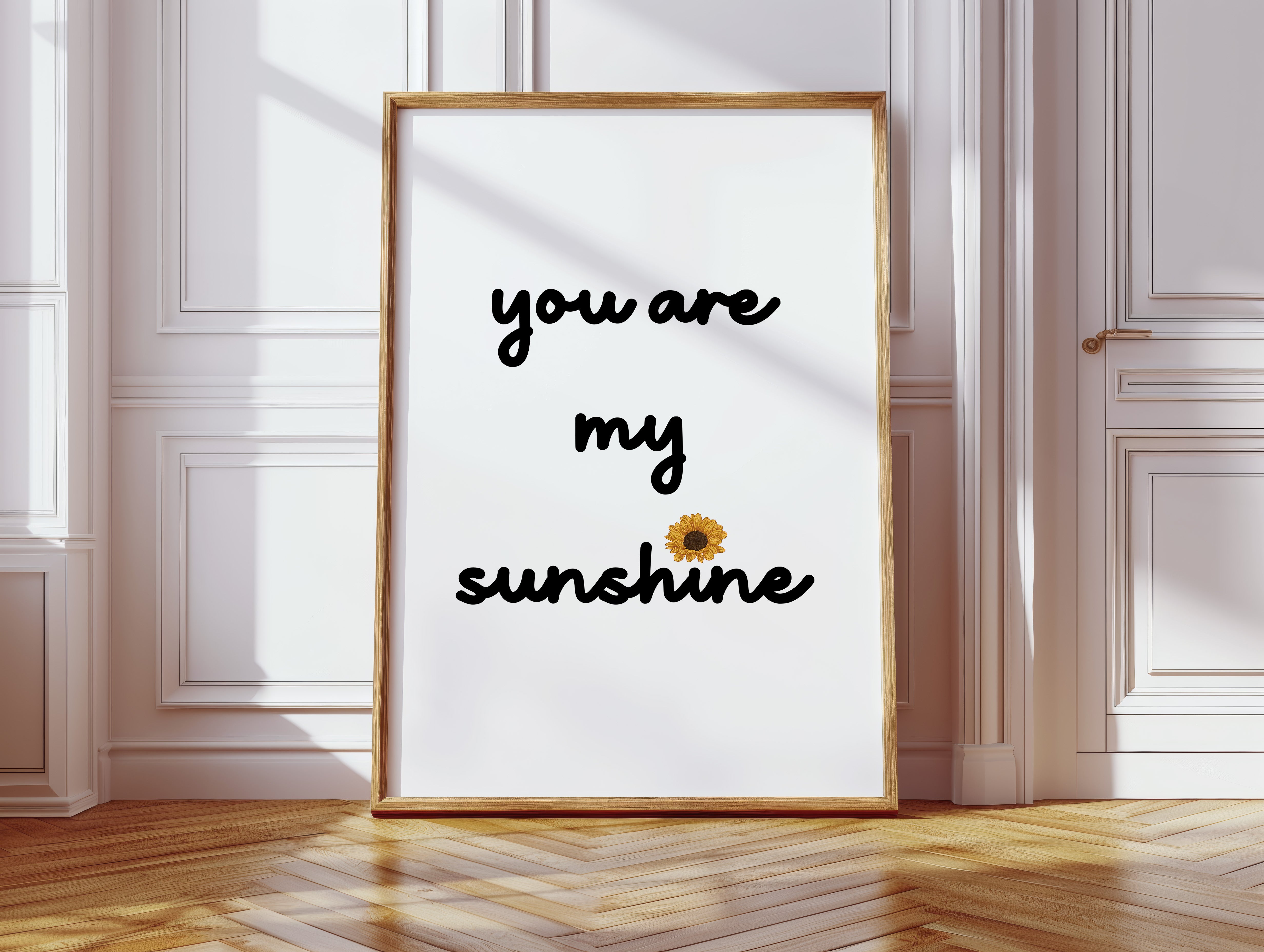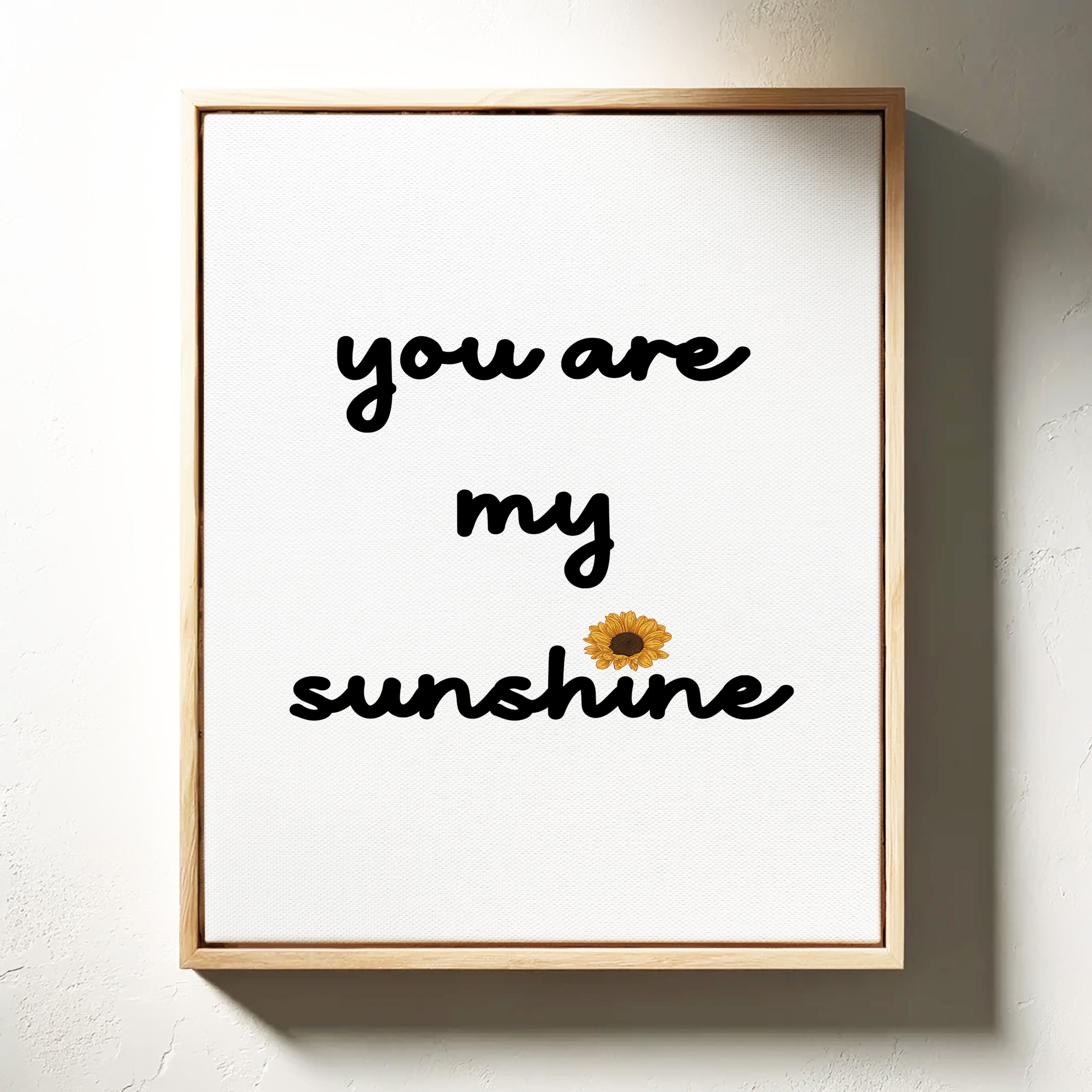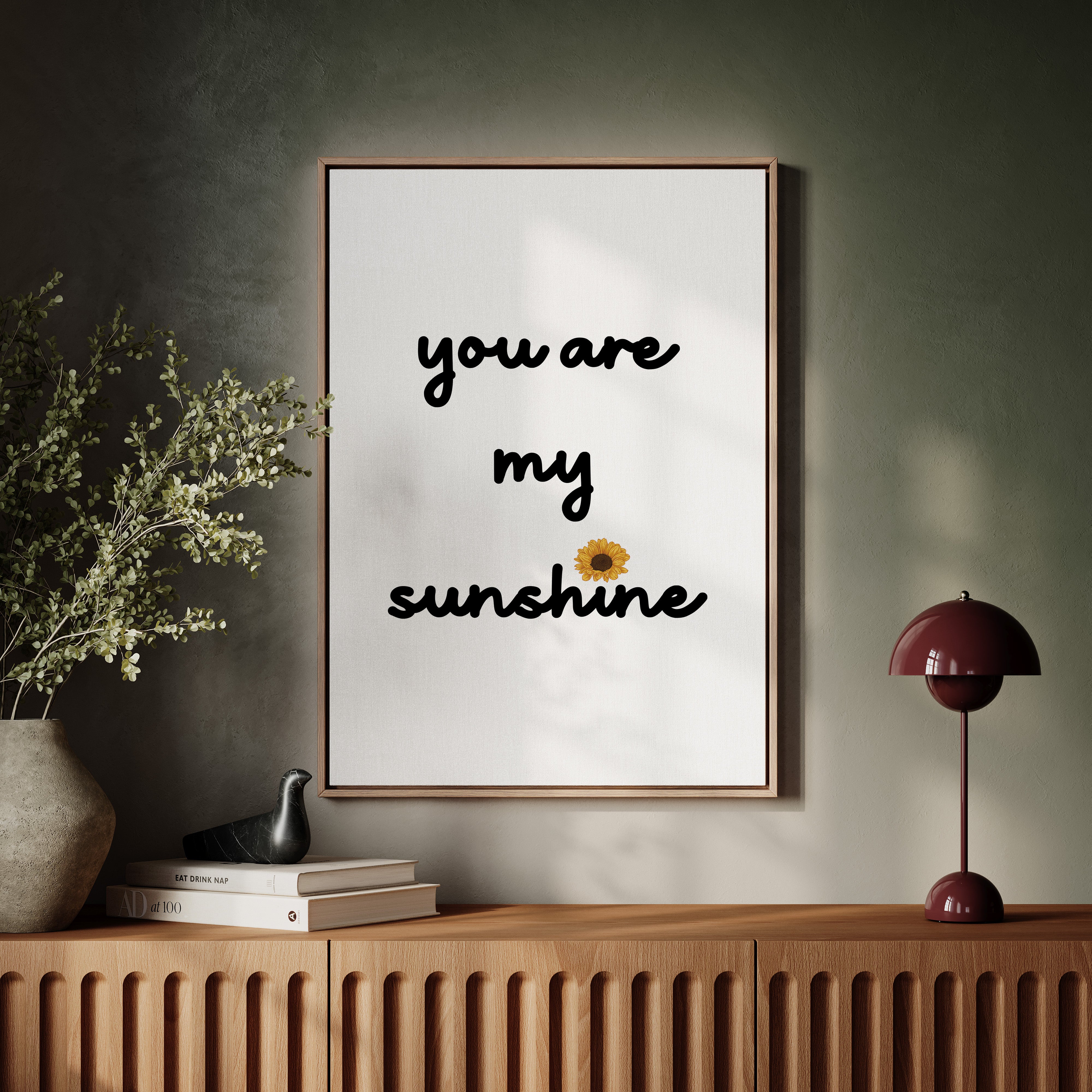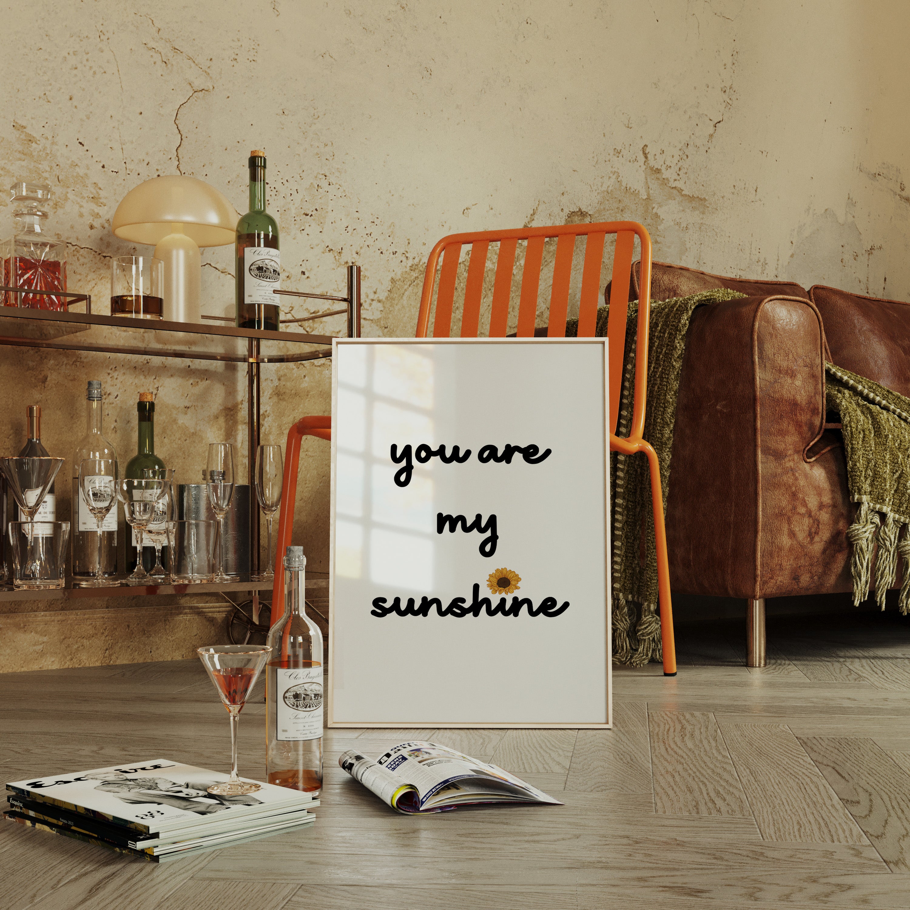 Simple words carry the weight of summer's warmth, punctuated by a single golden sunflower that speaks volumes in its simplicity. This piece exemplifies the modern minimalist approach to botanical expression. Bold black typography dances with delicate illustration, creating a perfect balance between strength and tenderness. The sunflower serves as nature's exclamation point, adding a splash of warmth and authenticity to the heartfelt message. This piece finds its perfect home in a nursery, bedroom, or any space where daily affirmations bloom into reality. Each glance serves as a gentle reminder of love's constant presence, as steady as the sun itself.