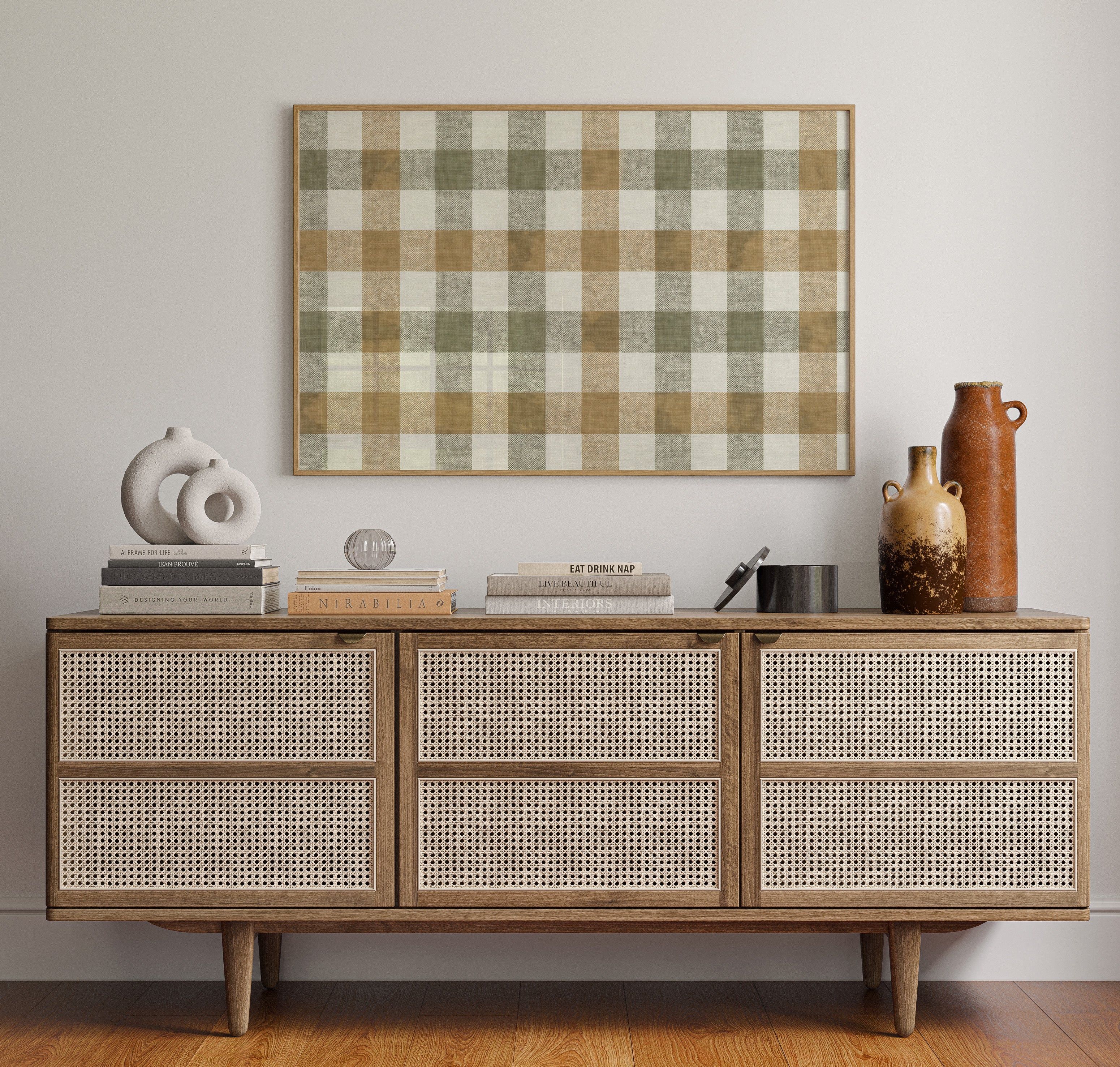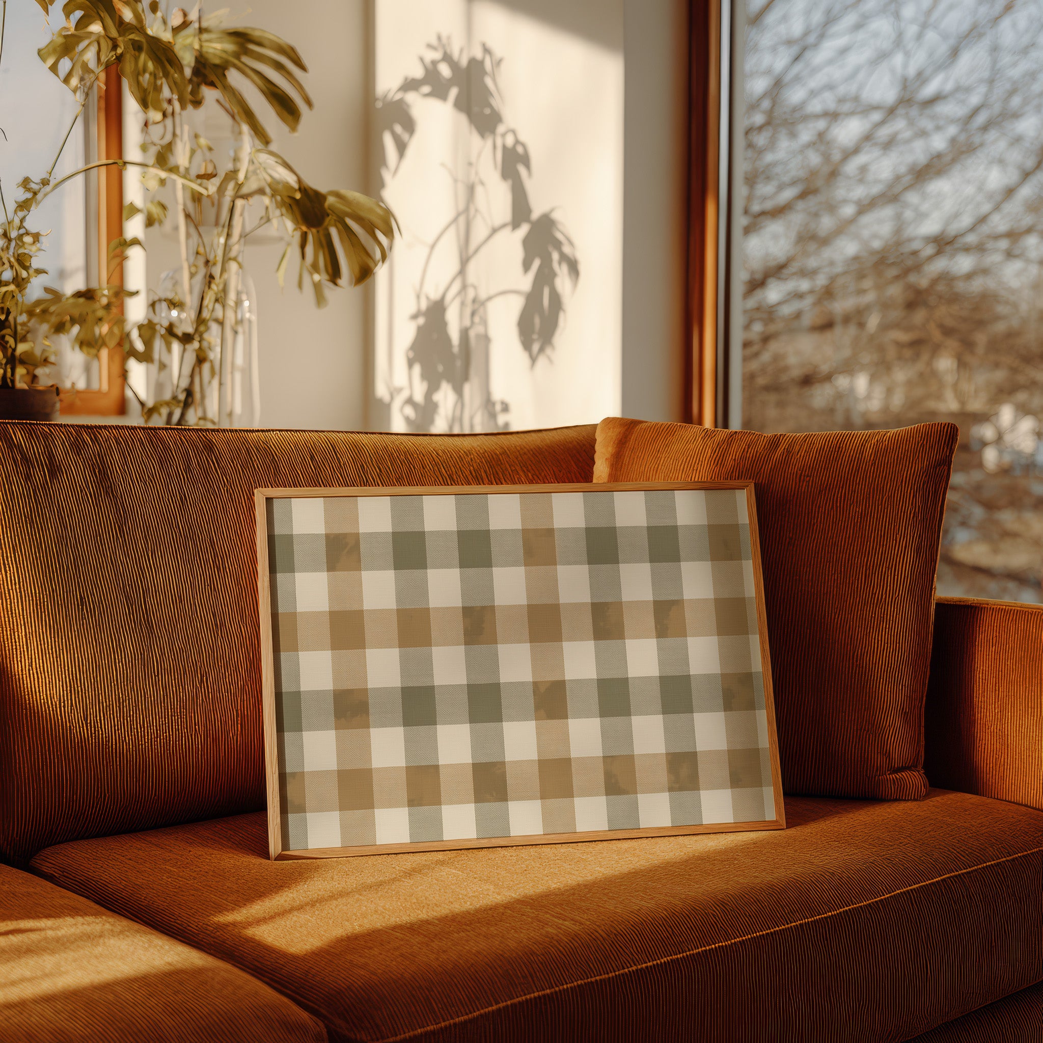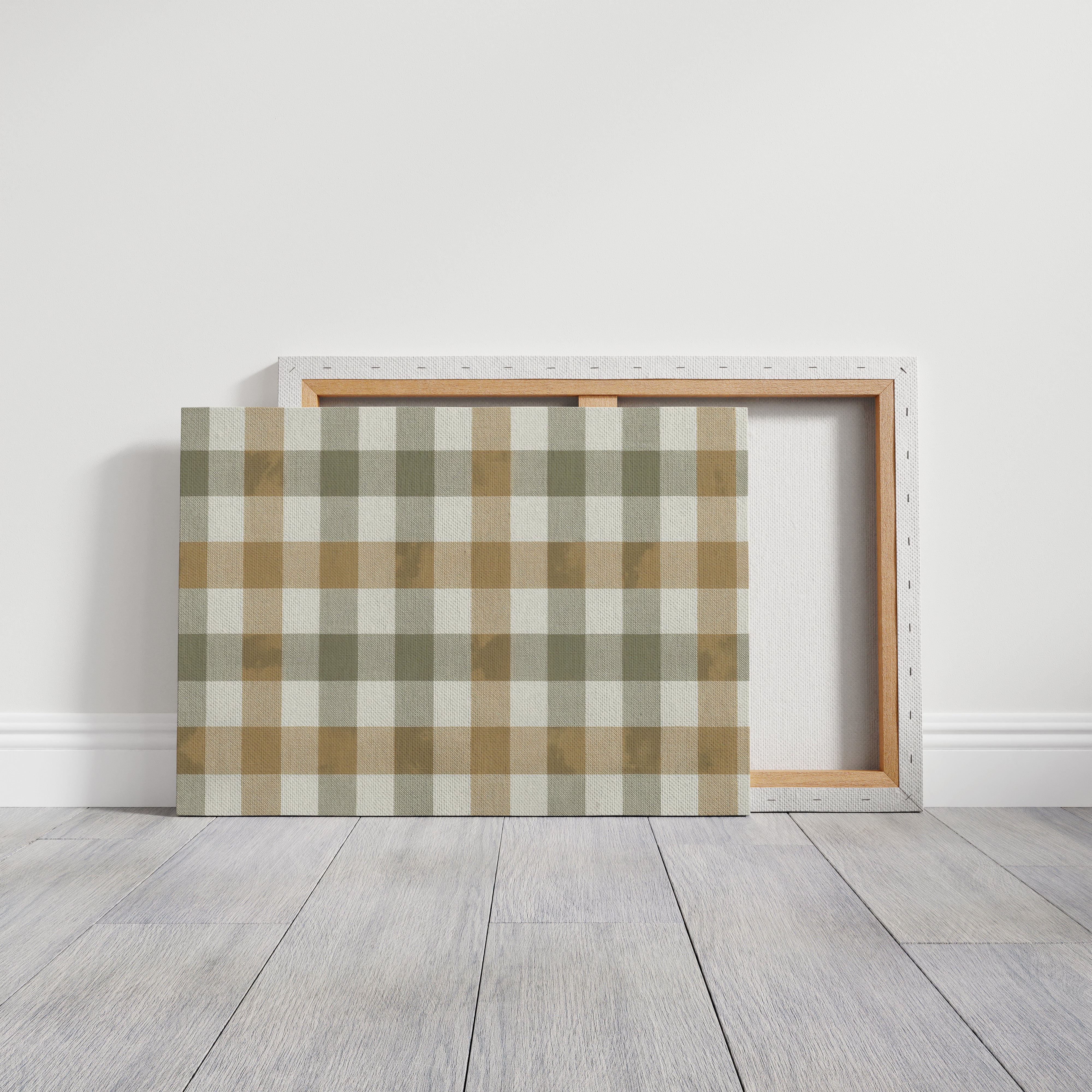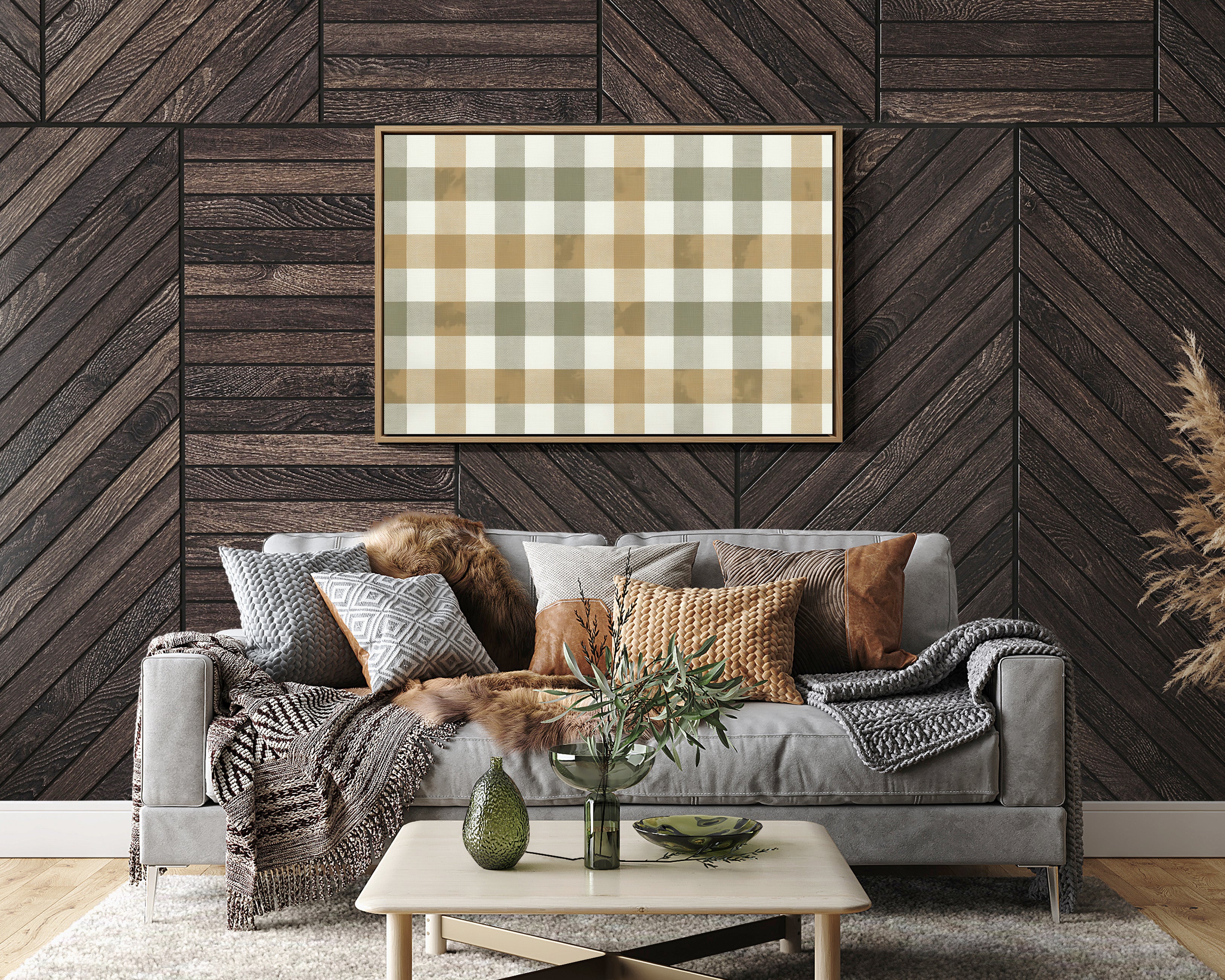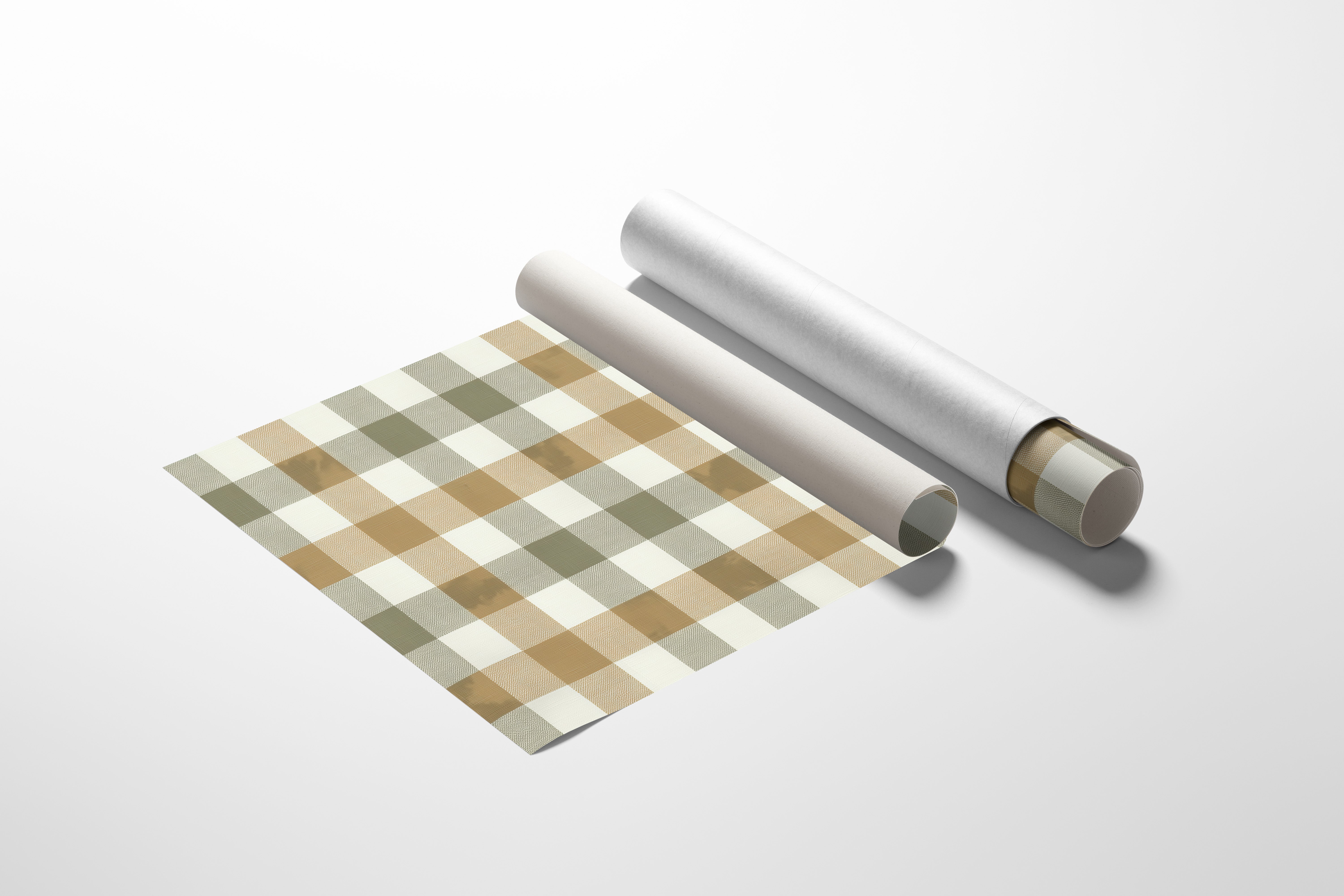 Sunlight dances across woven squares of earthy comfort, creating a gentle rhythm of sage green, warm tan, and crisp white. This contemporary take on classic gingham brings farmhouse charm into modern spaces. The pattern speaks of lazy afternoon picnics and countryside comfort, where each intersecting line tells a story of traditional design meeting fresh sophistication. The soft, muted palette creates a sense of timeless tranquility, perfect for spaces seeking both warmth and elegance. This piece brings pastoral poetry to dining rooms, breakfast nooks, or country-inspired living spaces, offering a touch of nostalgic comfort with contemporary appeal.