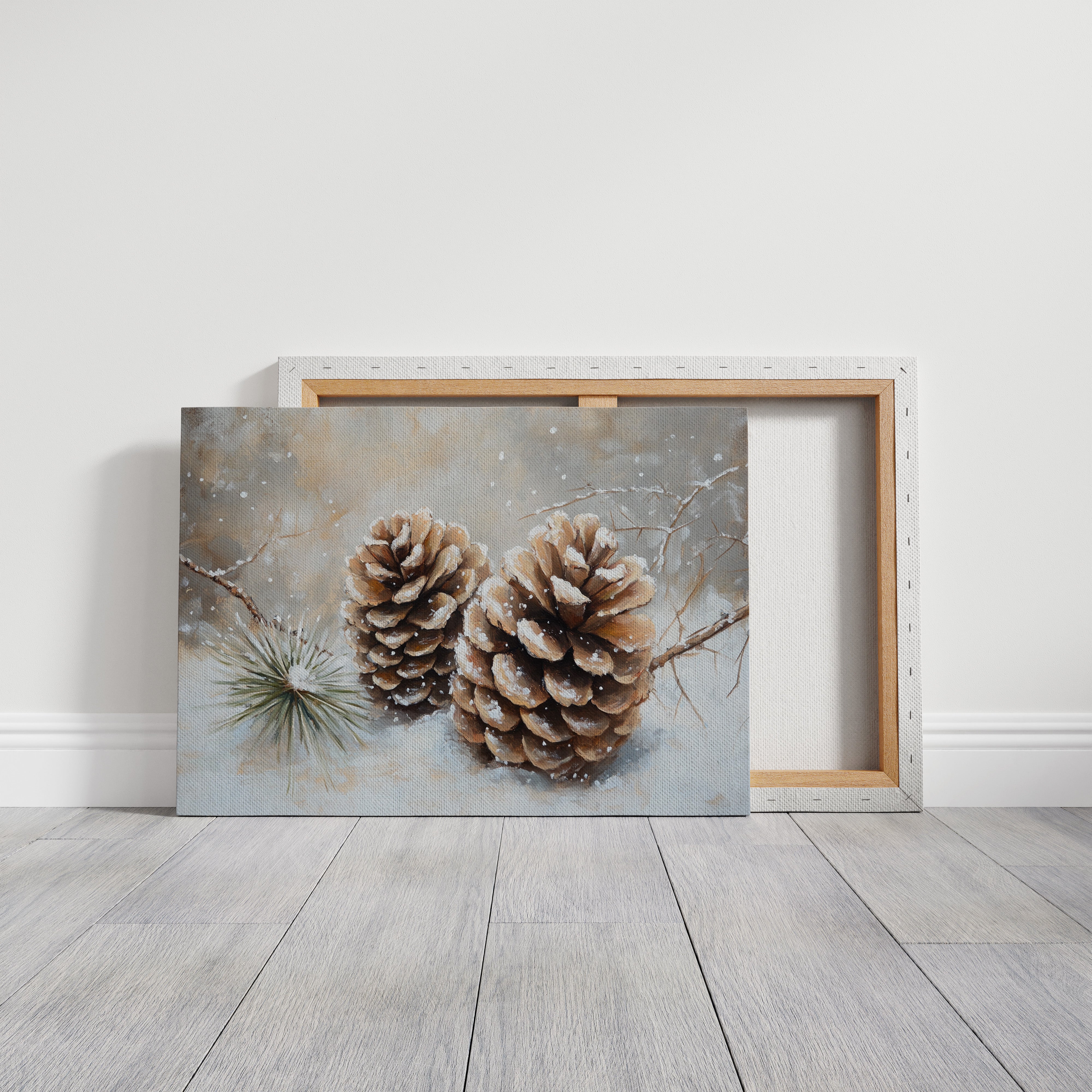 Pine Cones Catch December's First Snow | Gallery Canvas / 11" x 9" | $65.00