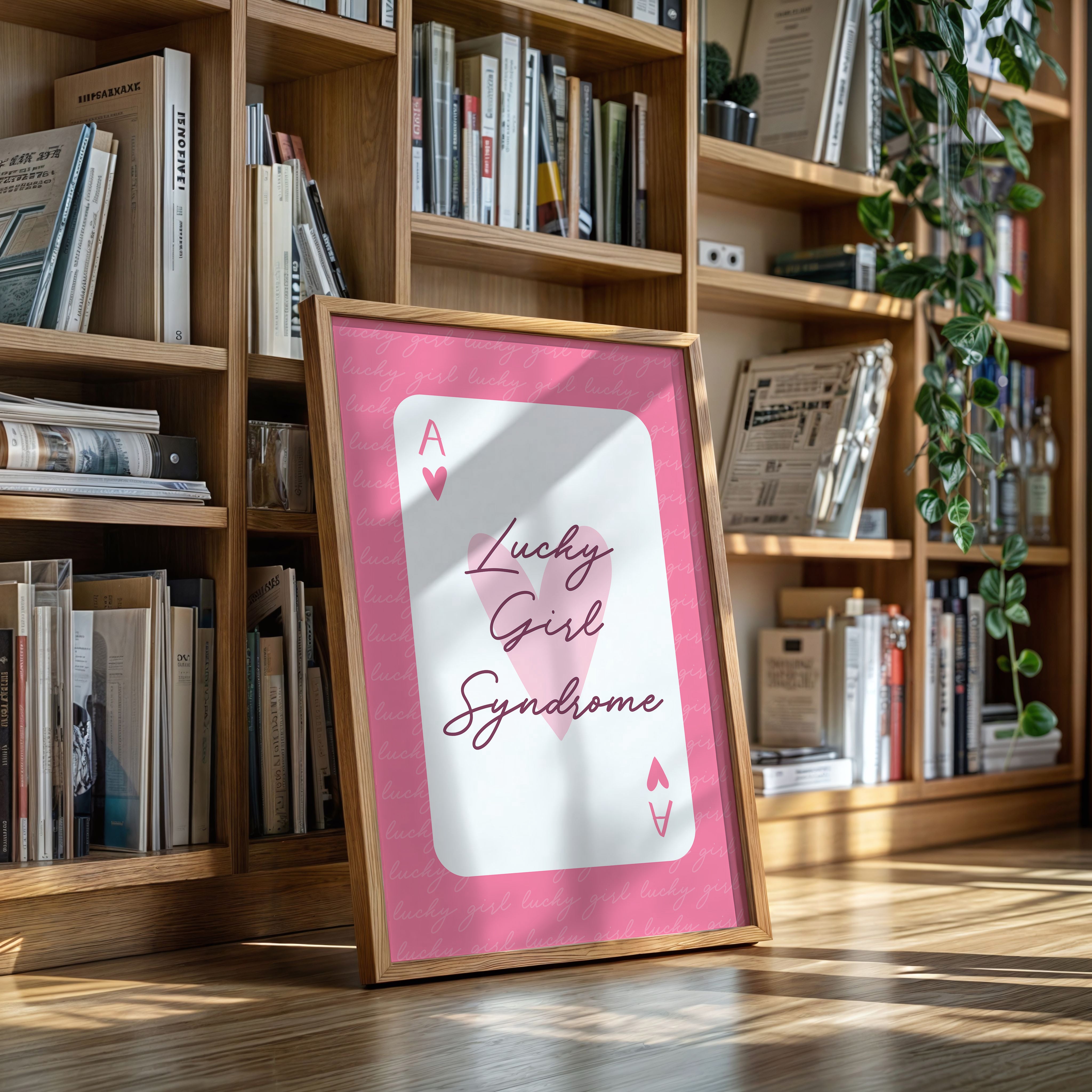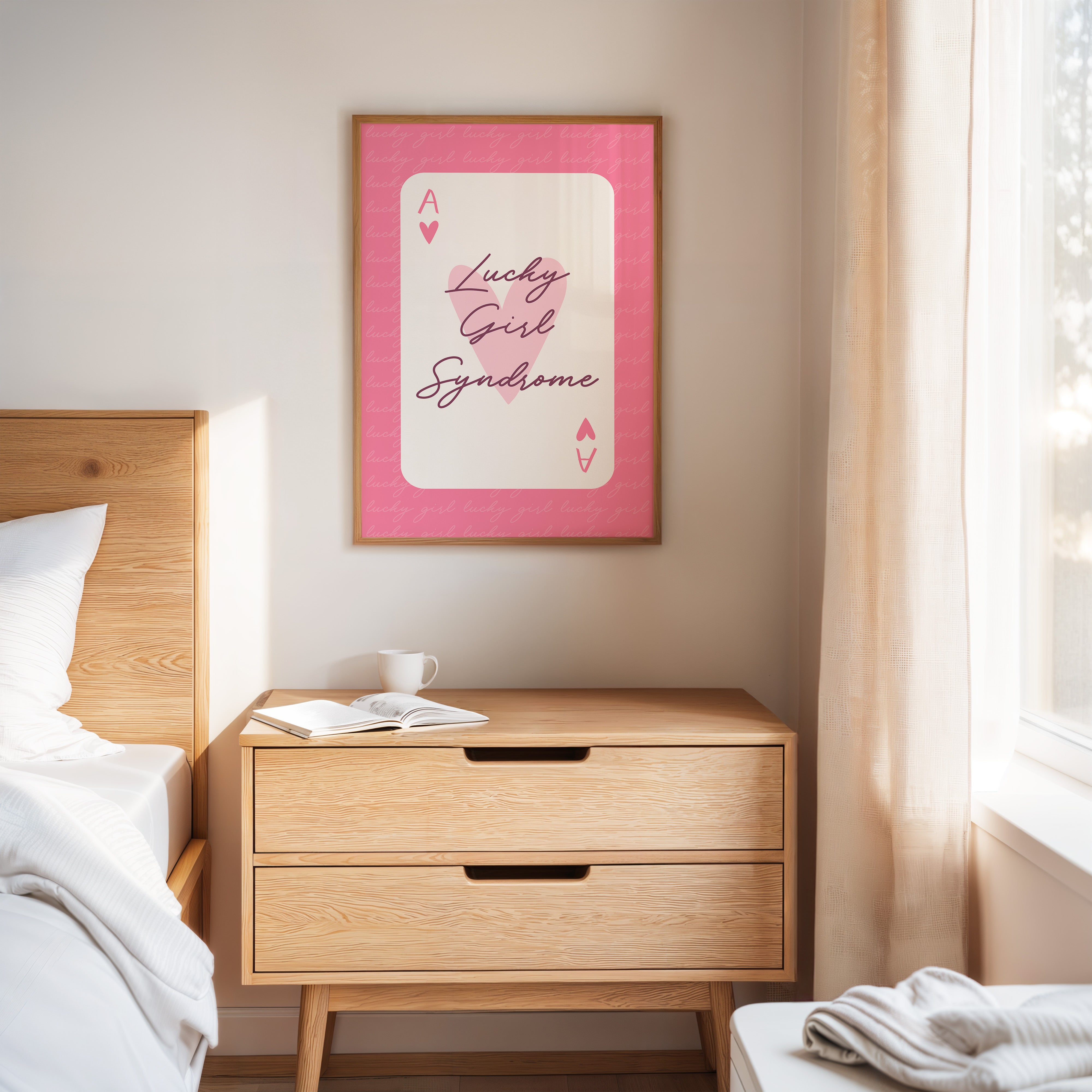 A playful ace of hearts emerges from a sea of bubblegum pink, carrying promises of luck and possibility. This piece from our Contemporary collection merges modern typography with classic playing card imagery. The bold script dances across a pristine white canvas, creating a perfect balance between whimsy and sophistication, while the soft pink heart becomes both backdrop and focal point. This statement piece brings feminine power and positive energy to any space, making it perfect for a home office, dressing room, or creative studio. Let it serve as your daily reminder that fortune favors the bold.