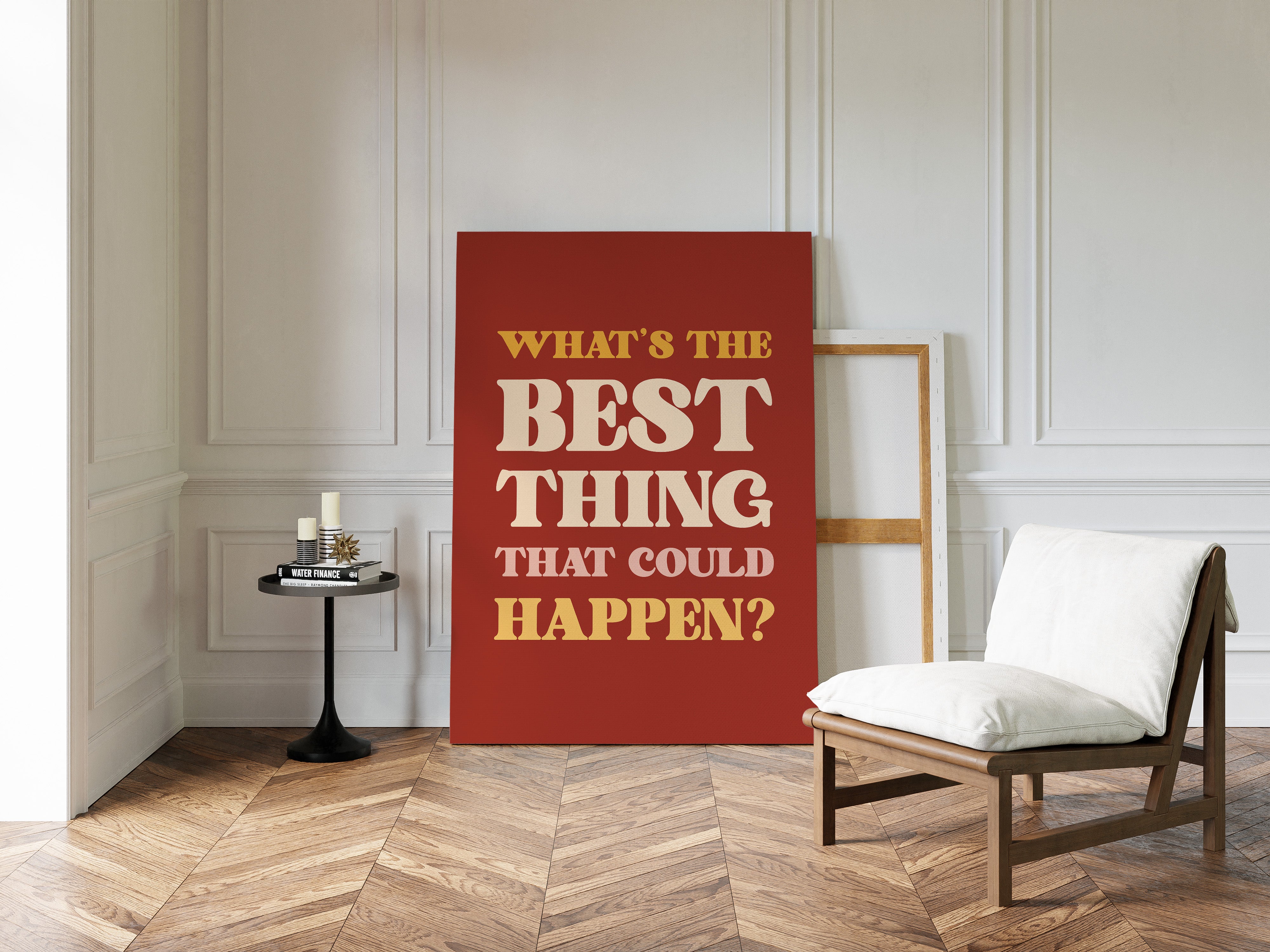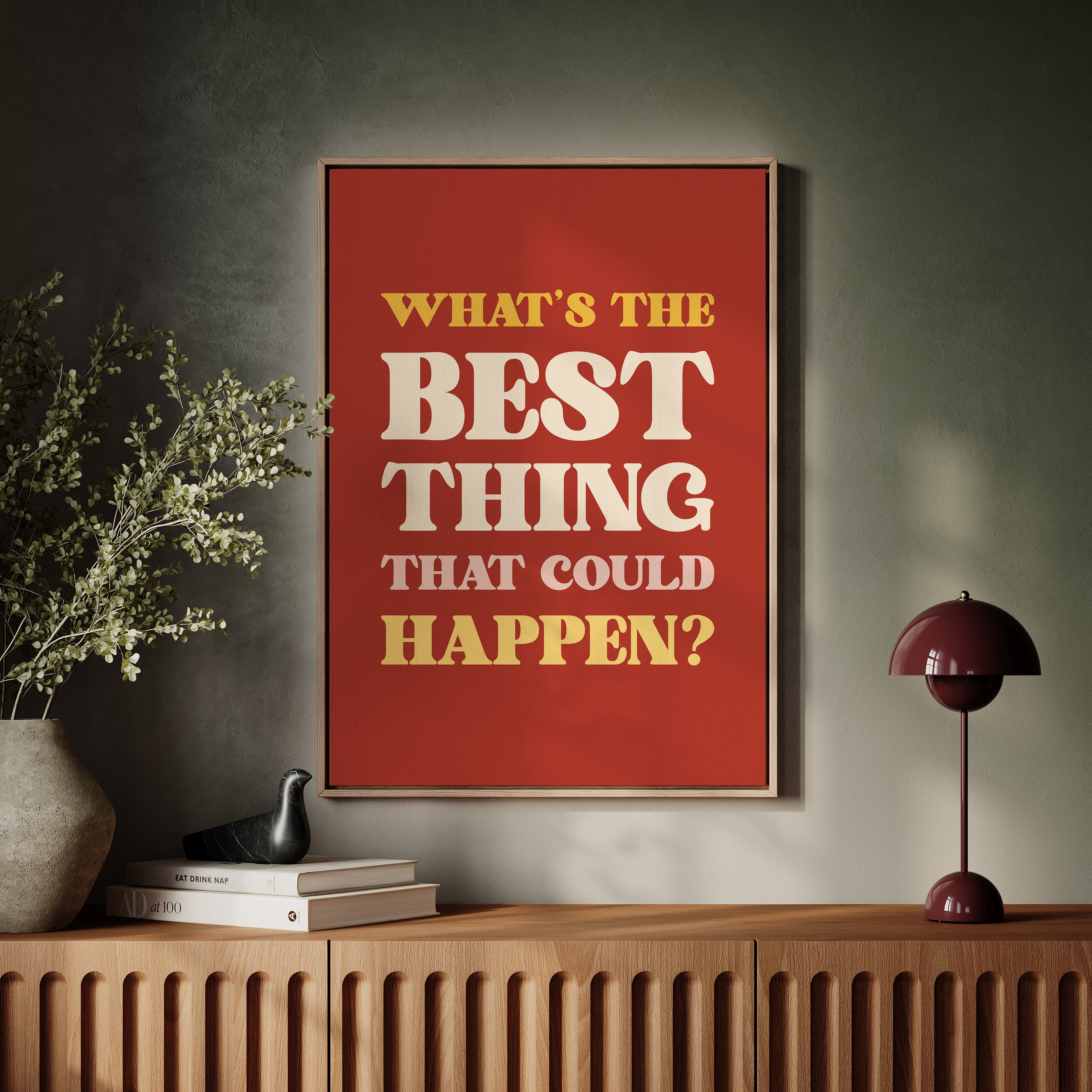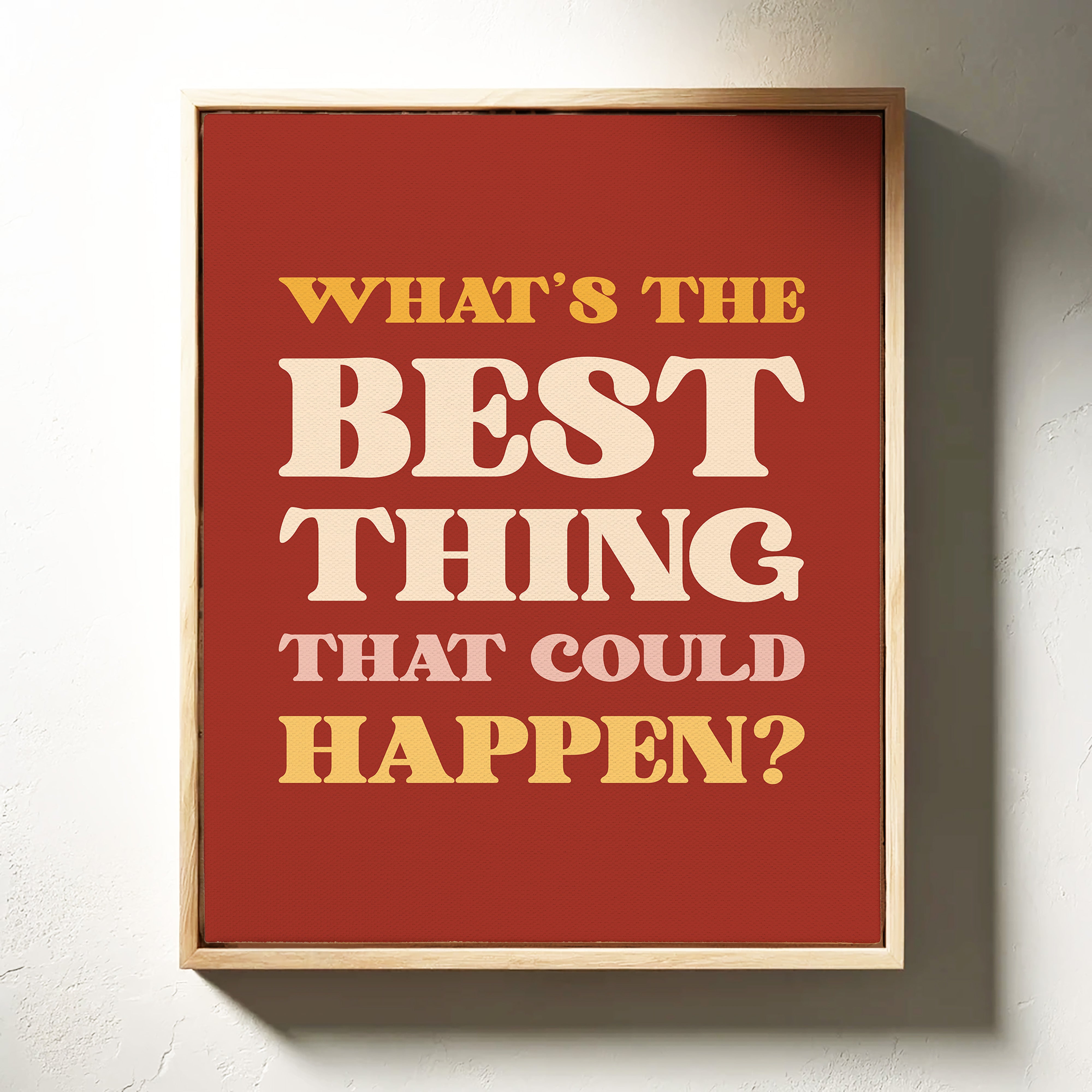 A question hangs in the air like the first rays of sunrise, filled with anticipation and wonder. This piece from our Contemporary collection captures the bold optimism of modern typography against rich earthen tones. The interplay of golden yellows and warm terracotta creates a dialogue between hope and possibility, while graduated text sizes build dramatic tension that draws the eye upward. This statement piece radiates positive energy, perfect for an inspiring home office or creative workspace where big ideas take flight. Let it serve as a daily reminder that amazing things await just around the corner.
